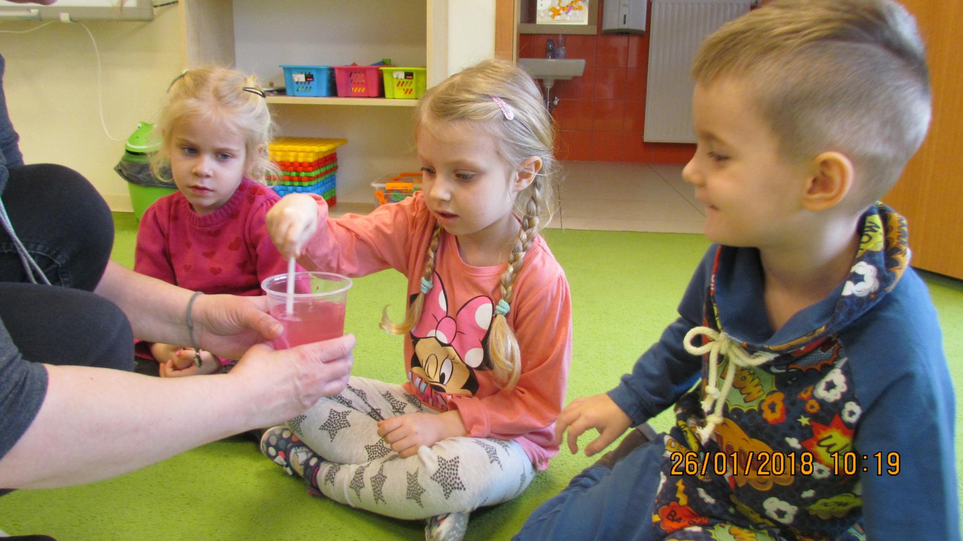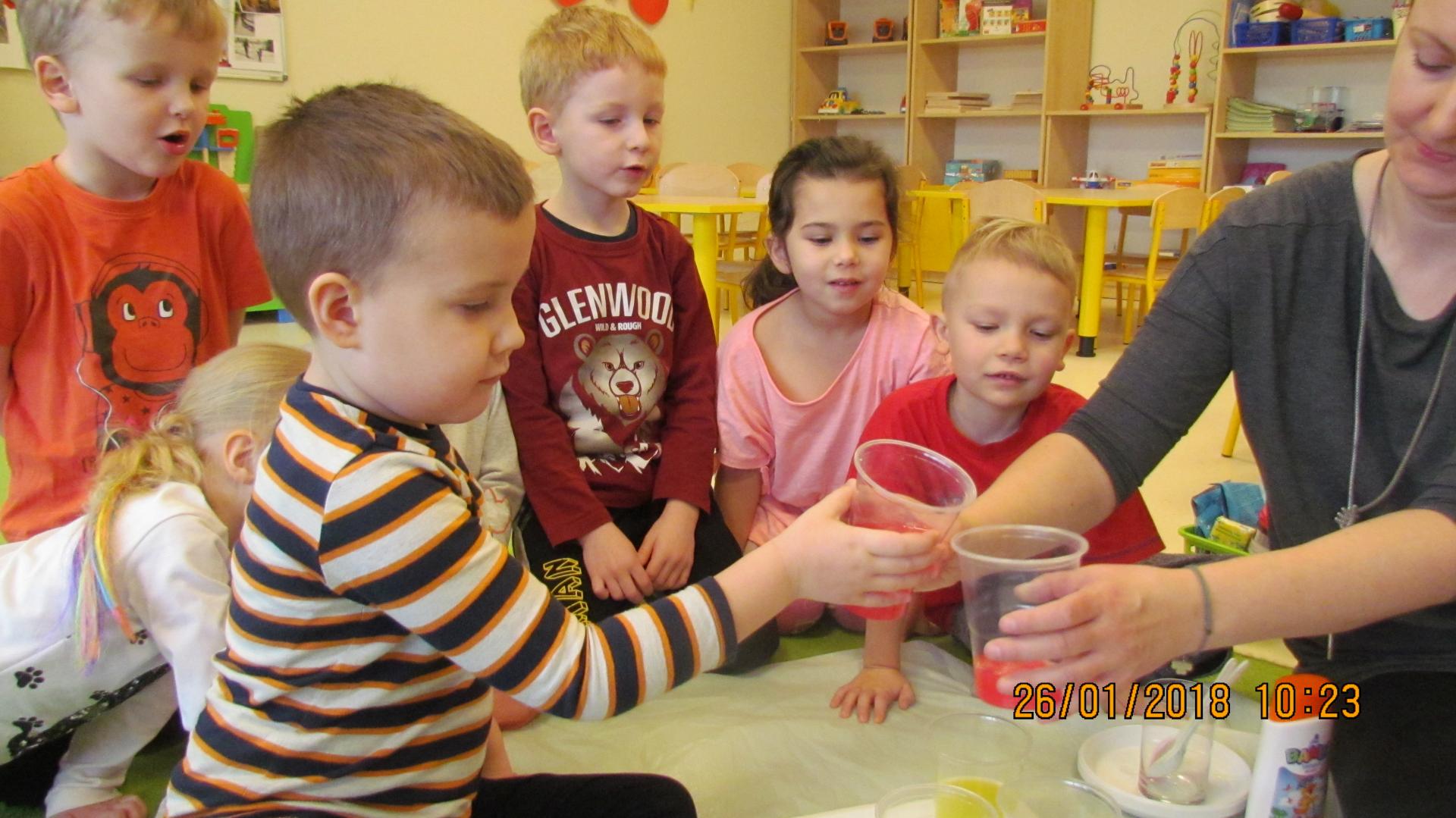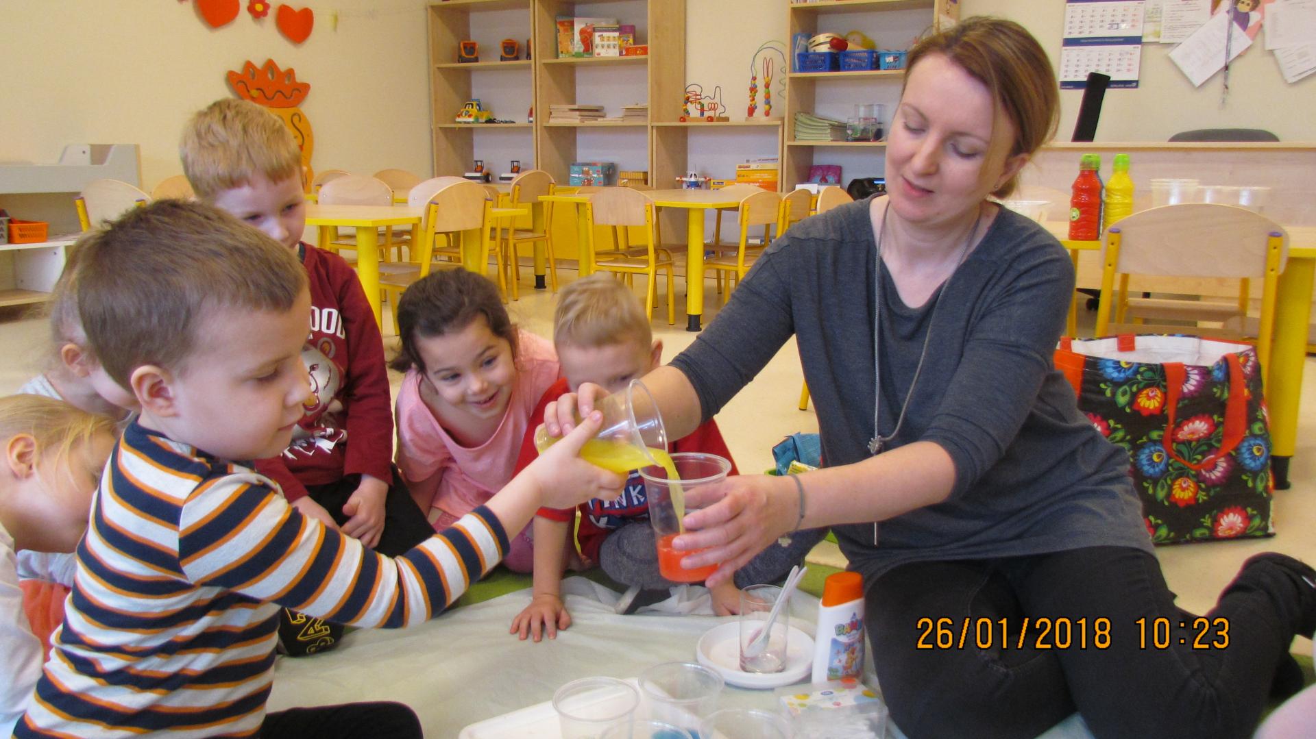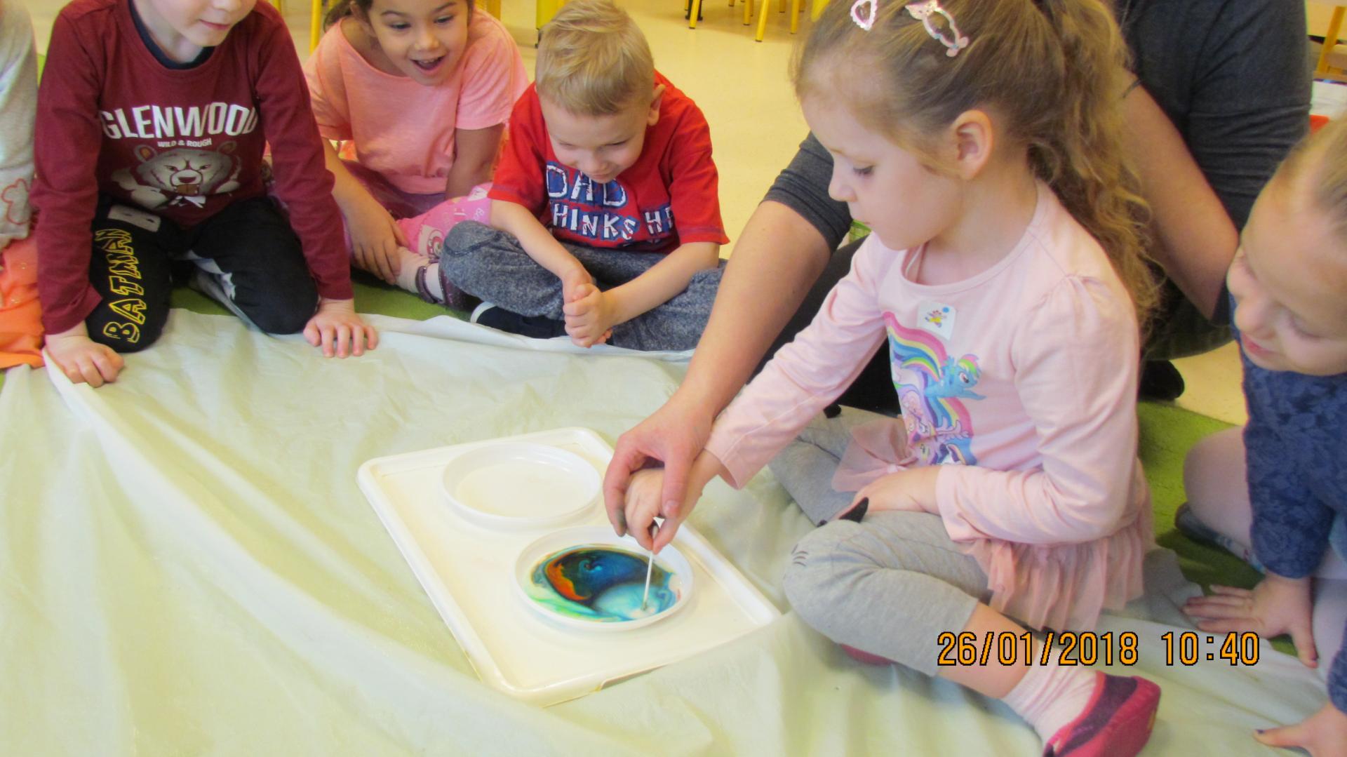 W dniu 26 stycznia w naszym przedszkolu odbyły się zajęcia interdyscyplinarne " Kolorowe czary - mary". Poprowadziła je Pani Sylwia Wypchło- Perzyńska. Było to dla nas niezwykłe i bardzo interesujące dświadczenie. Za pomoc w organizacji zajęć dziękujemy p. Katarzynie Gawlikowskiej.