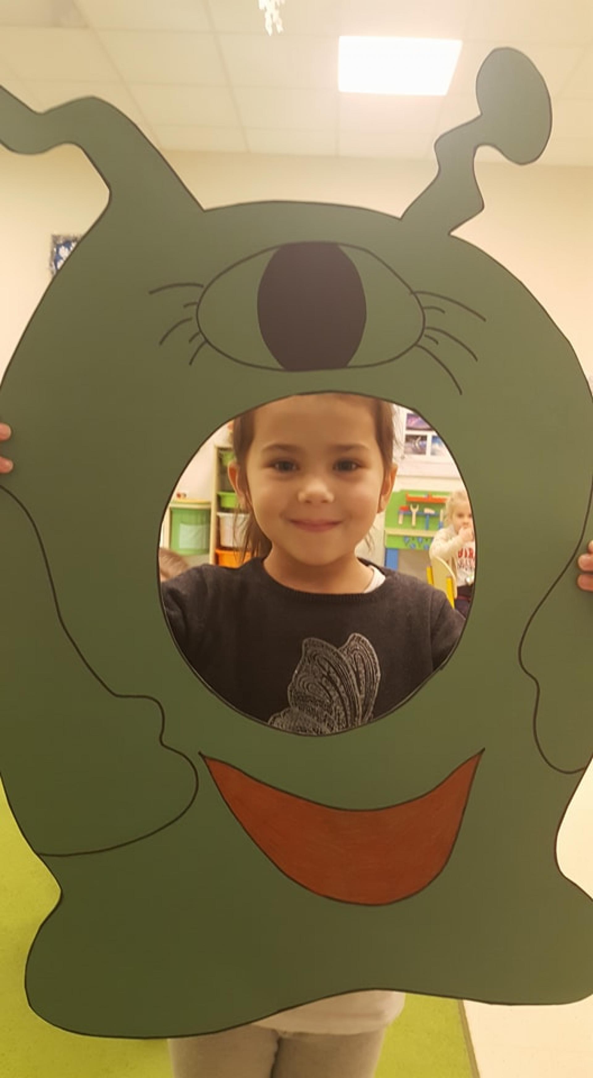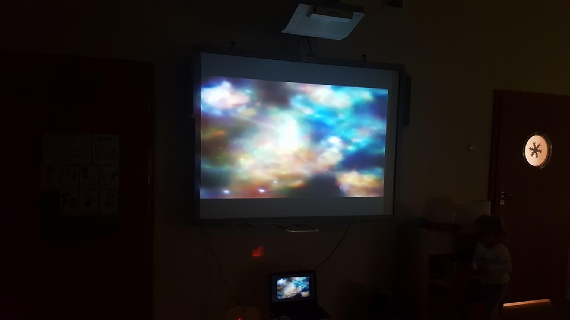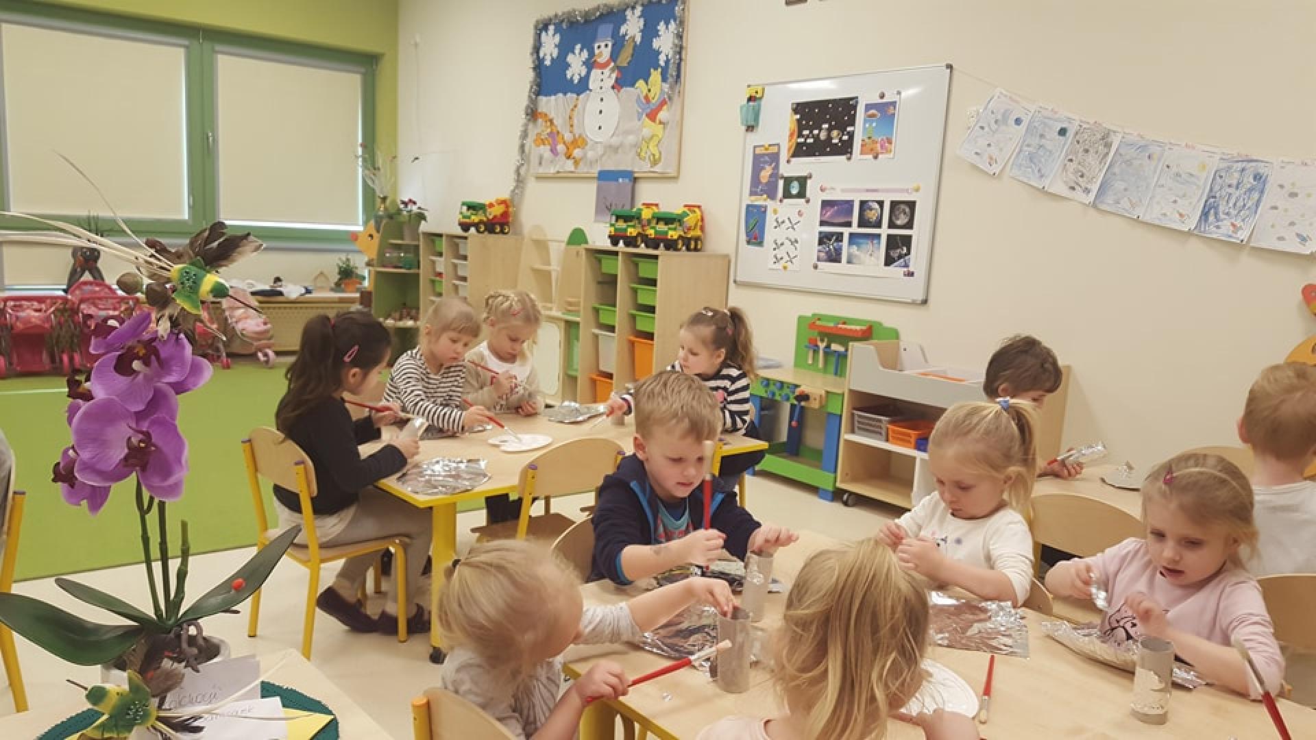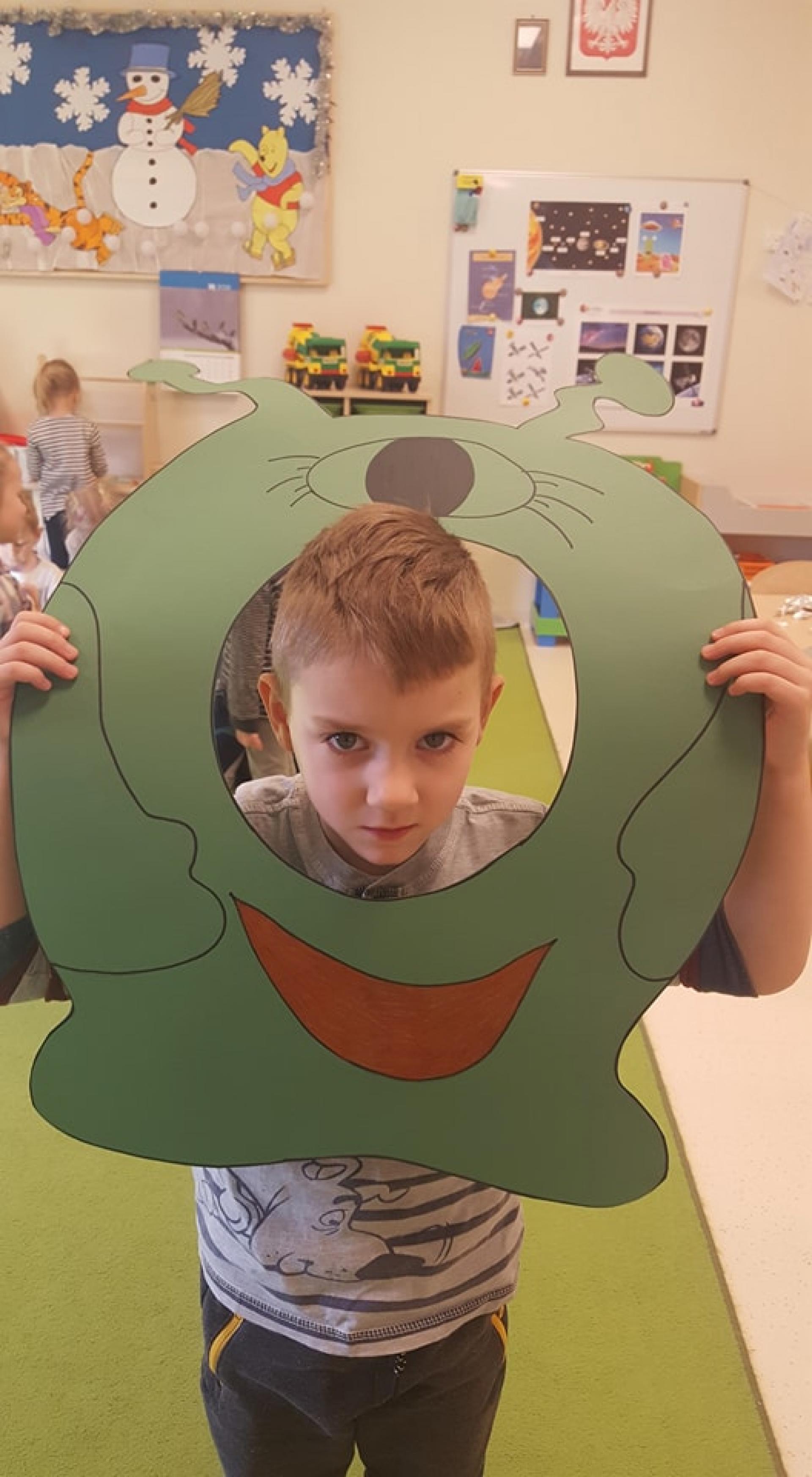 Dzisiejszy dzień upłynął Żabkom pod hasłem „Poznajemy kosmos”. Zajęcia miały na celu rozbudzenie zainteresowań dzieci otaczającym nas wszechświatem. Dzieci oglądały filmy, zdjęcia i prezentacje multimedialne o podróżach kosmicznych, lądowaniu człowieka na Księżycu, a także o planecie Mars, zastanawiając się, czy życie na innych planetach jest możliwe i czy UFO istnieje. W trakcie różnego rodzaju zabaw i zajęć poznały planety układu słonecznego, dowiedziały się, że Ziemia cały czas krąży nie tylko wokół Słońca, ale także wokół własnej osi. Każdy miał okazję zbudować swój własny pojazd kosmiczny, także obejrzeć niezwykły teatr cienia. To był dzień wspaniałych wrażeń i mnóstwa nowych doświadczeń…