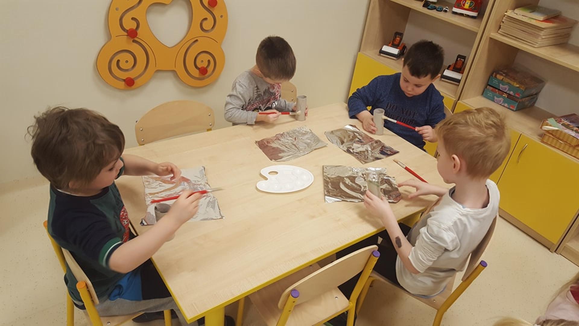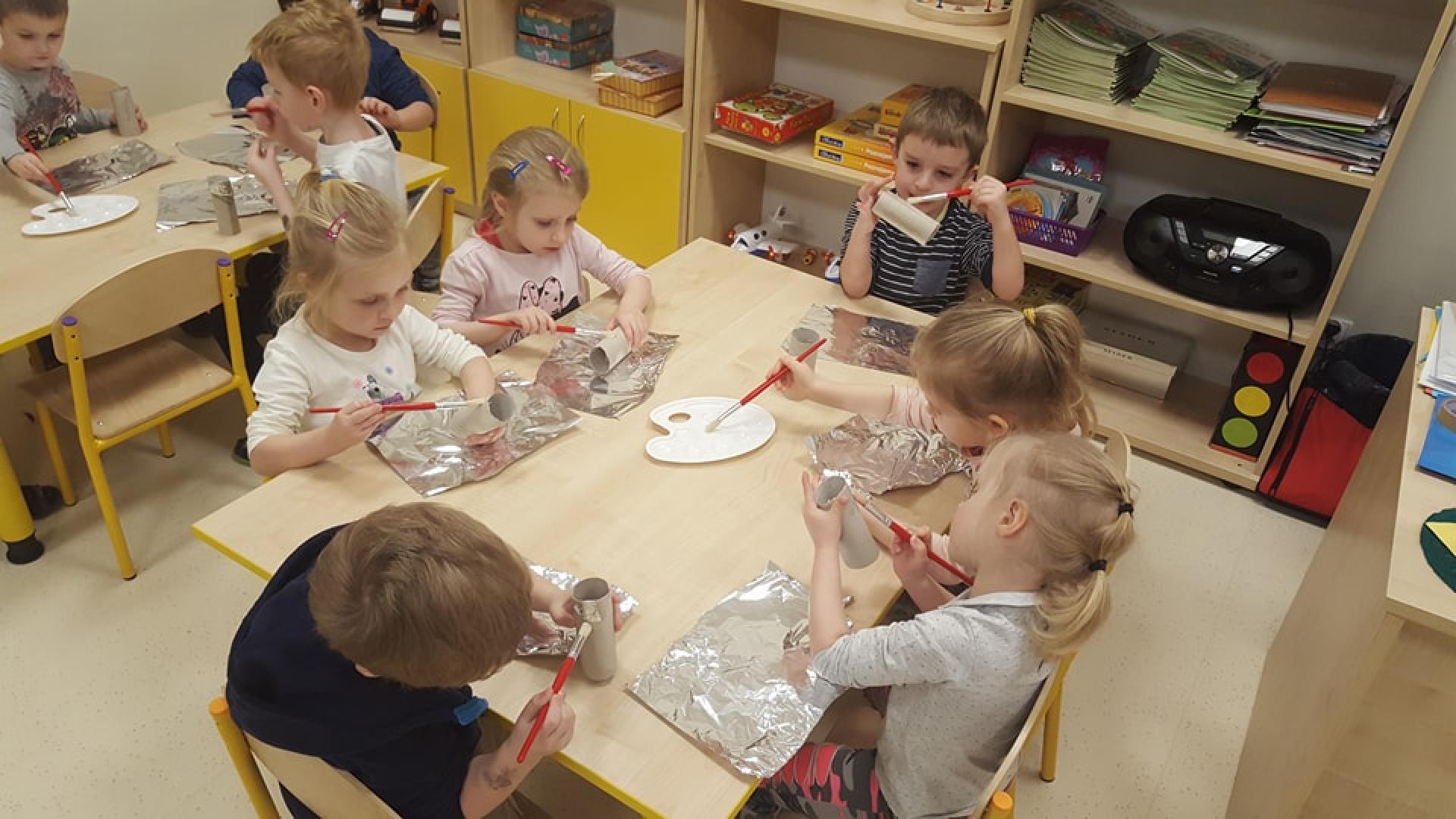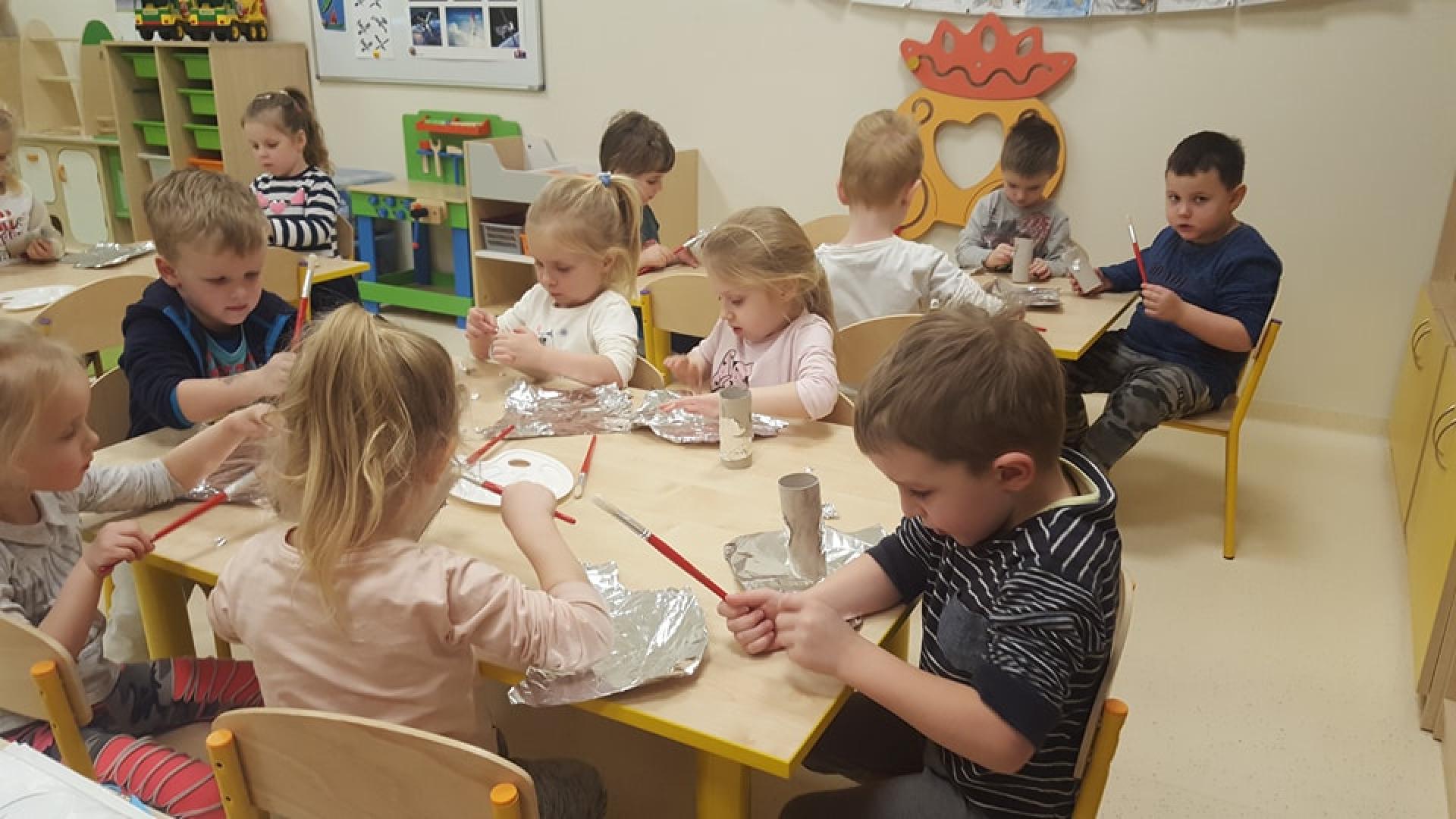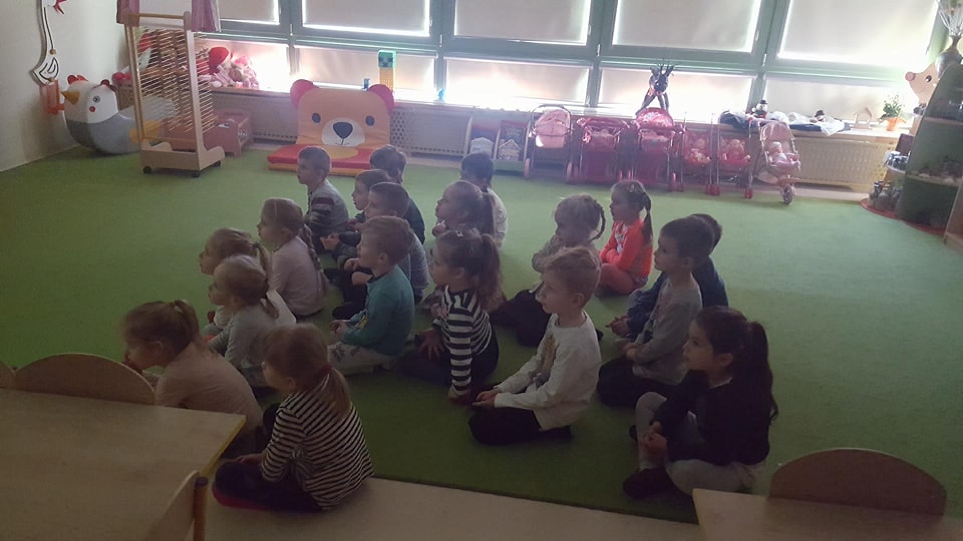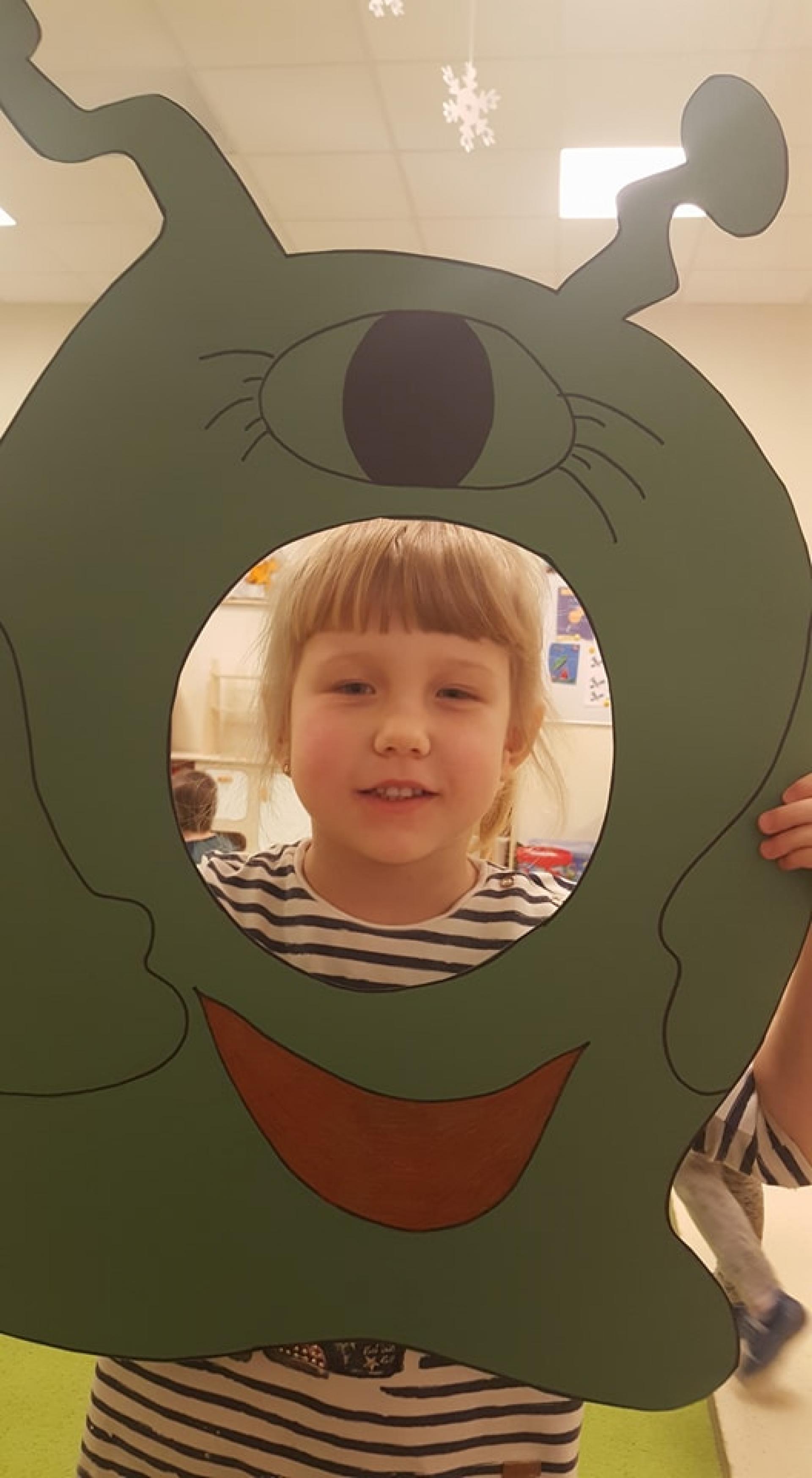 Dzisiejszy dzień upłynął Żabkom pod hasłem „Poznajemy kosmos”. Zajęcia miały na celu rozbudzenie zainteresowań dzieci otaczającym nas wszechświatem. Dzieci oglądały filmy, zdjęcia i prezentacje multimedialne o podróżach kosmicznych, lądowaniu człowieka na Księżycu, a także o planecie Mars, zastanawiając się, czy życie na innych planetach jest możliwe i czy UFO istnieje. W trakcie różnego rodzaju zabaw i zajęć poznały planety układu słonecznego, dowiedziały się, że Ziemia cały czas krąży nie tylko wokół Słońca, ale także wokół własnej osi. Każdy miał okazję zbudować swój własny pojazd kosmiczny, także obejrzeć niezwykły teatr cienia. To był dzień wspaniałych wrażeń i mnóstwa nowych doświadczeń…