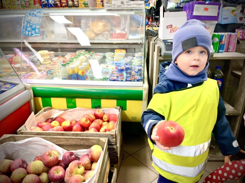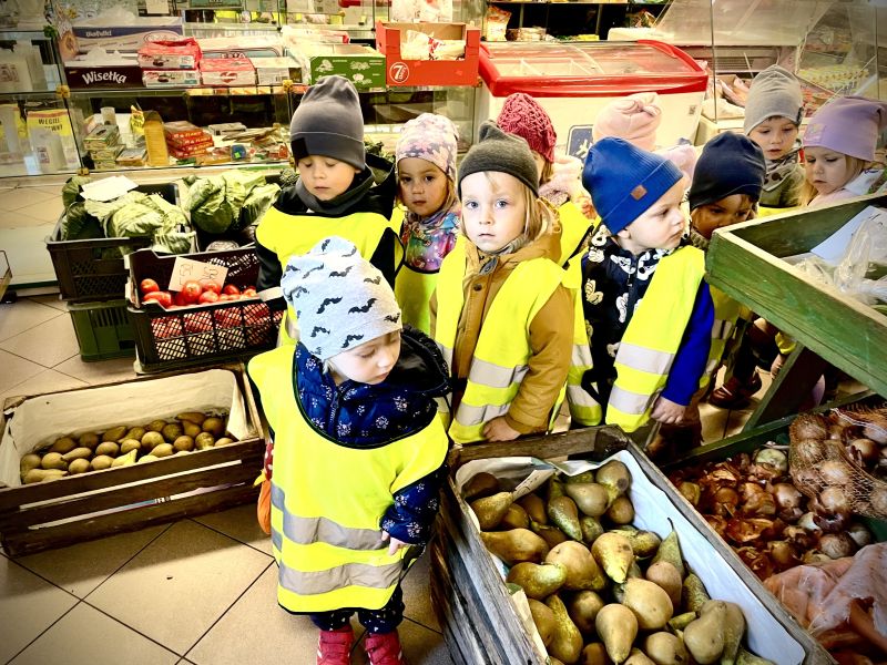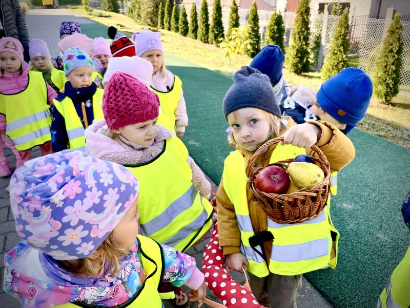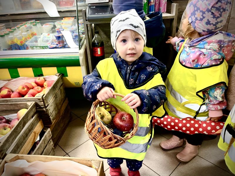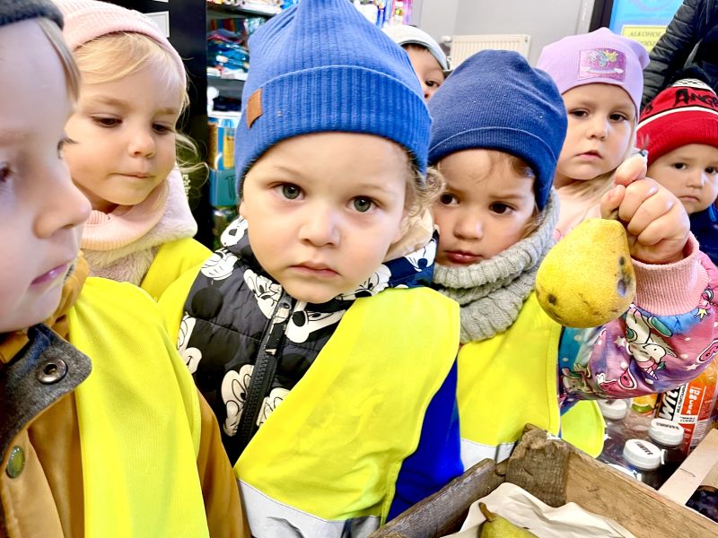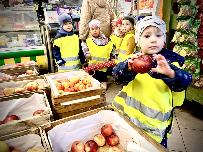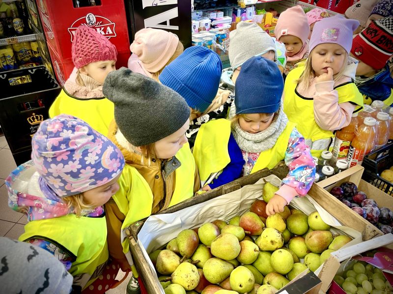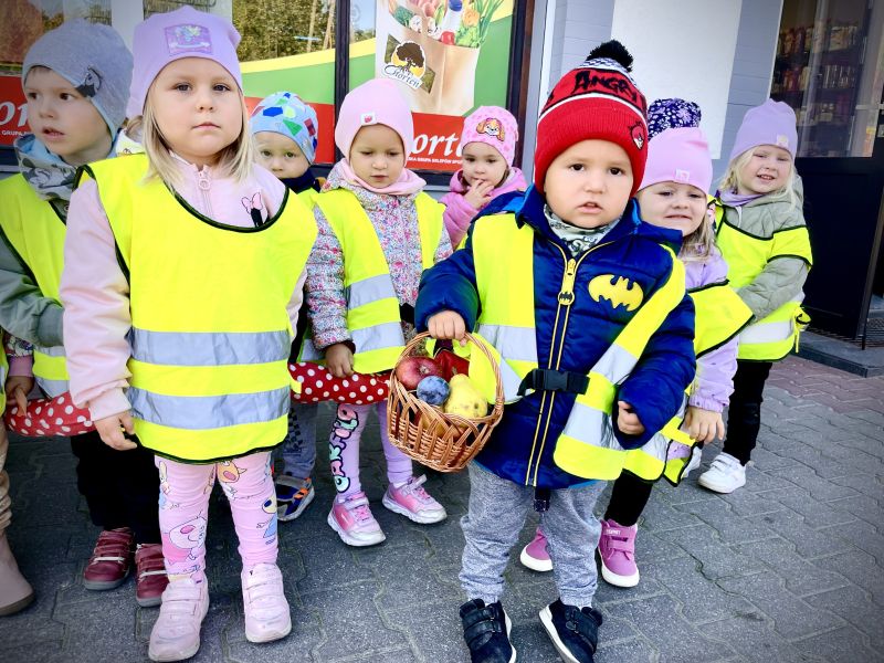 Dnia 2 października 2025 r. wybraliśmy się do pobliskiego sklepu spożywczego. Naszym celem było zakupienie owoców sezonowych według sporządzonej wspólnie listy. Kupiliśmy rumiane jabłuszka, soczyste gruszki oraz słodkie  śliweczki.