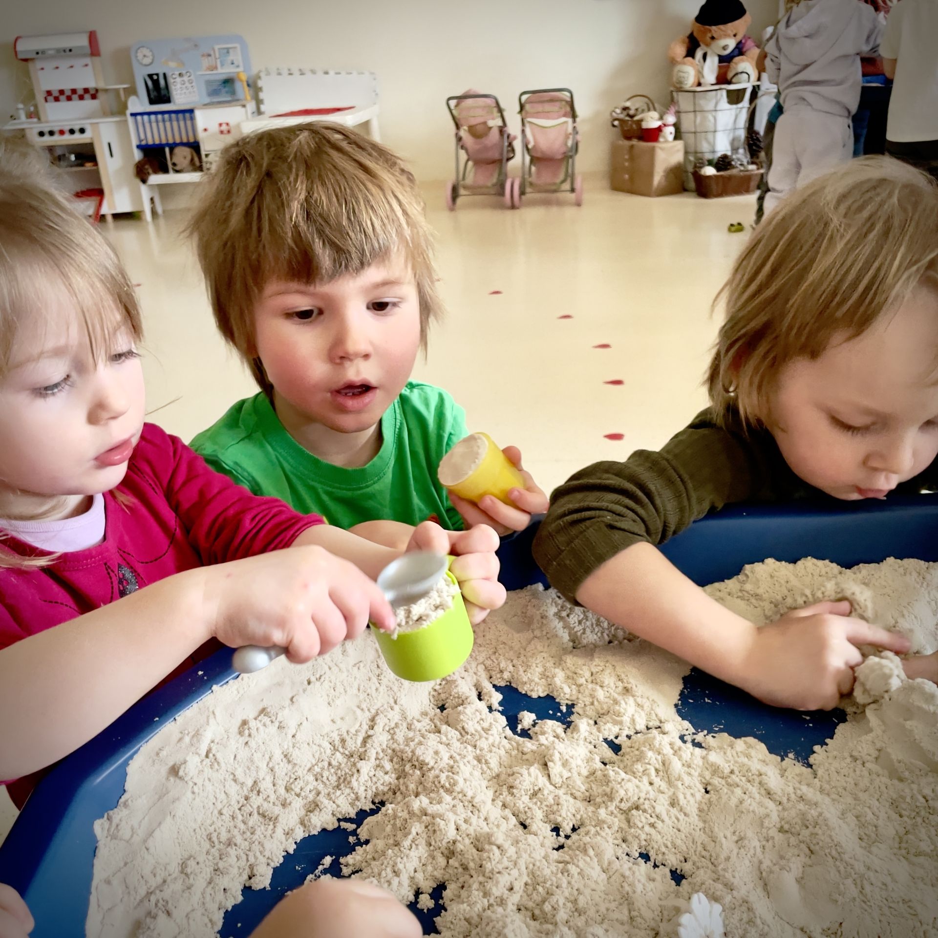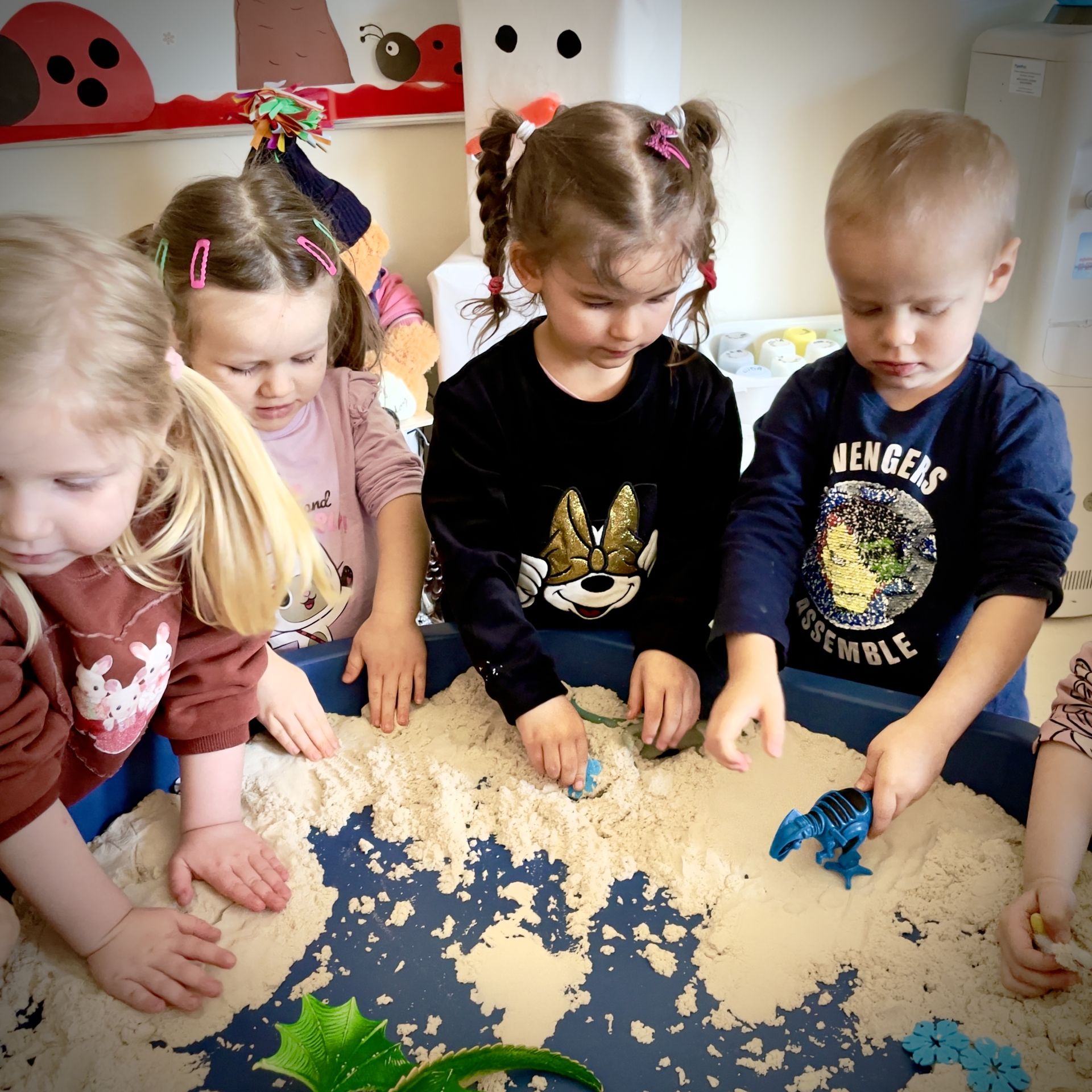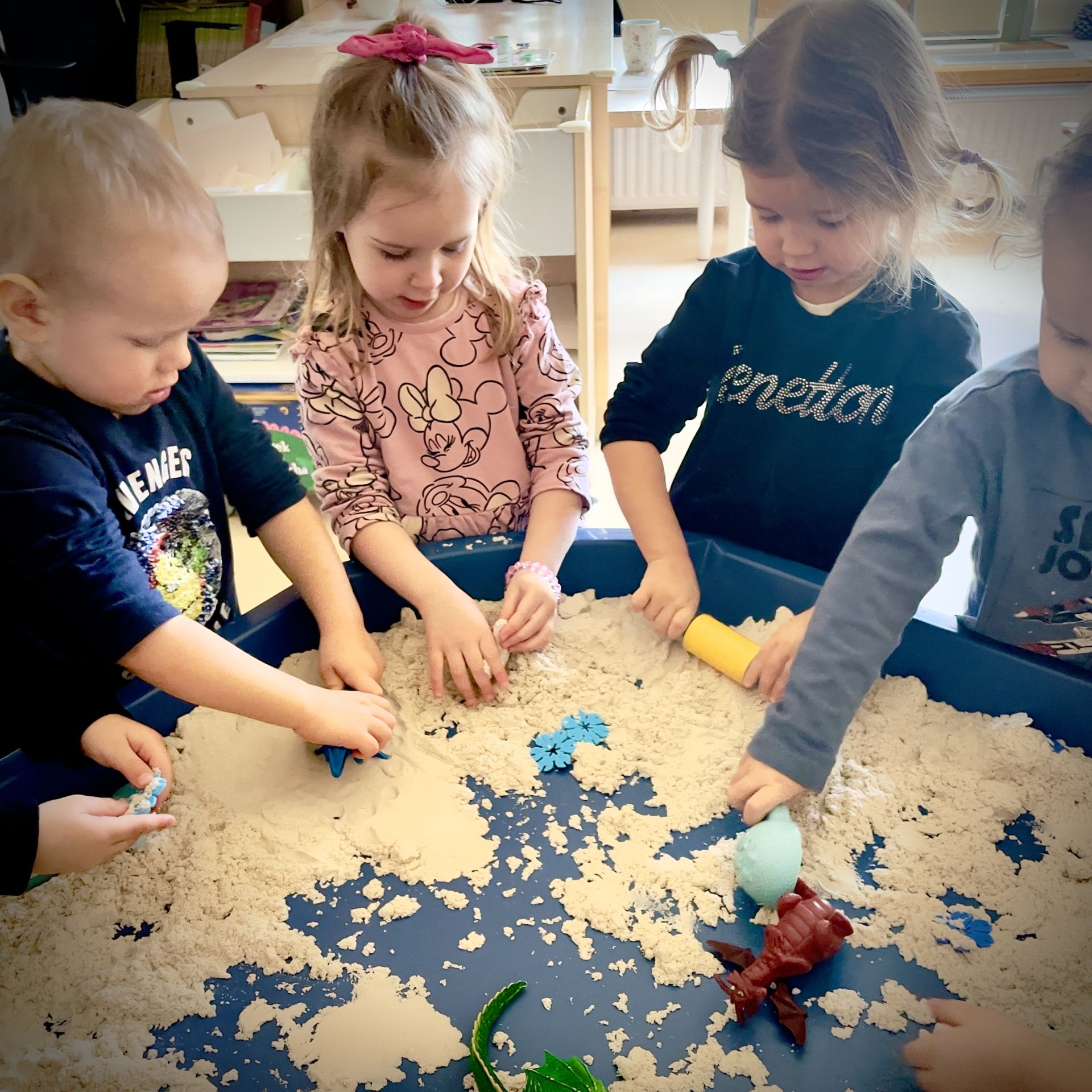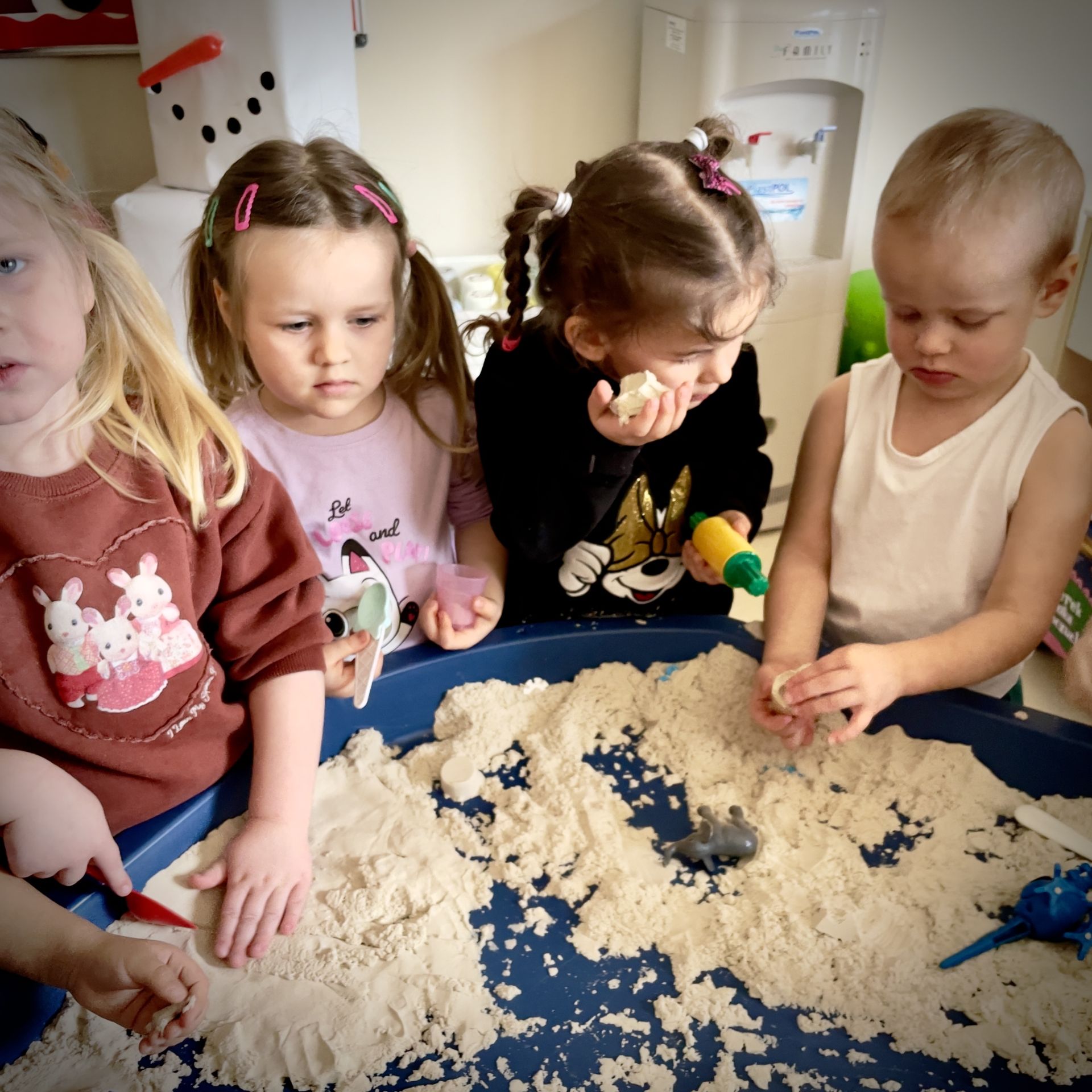 Dnia 25 lutego 2026 r. z wielką radością przystąpiliśmy do mini wykopalisk w naszym przedszkolu. Naszym zadaniem było odszukanie ukrytych w piasku kinetycznym dinozaurów oraz tropienie ich śladów na piasku.
