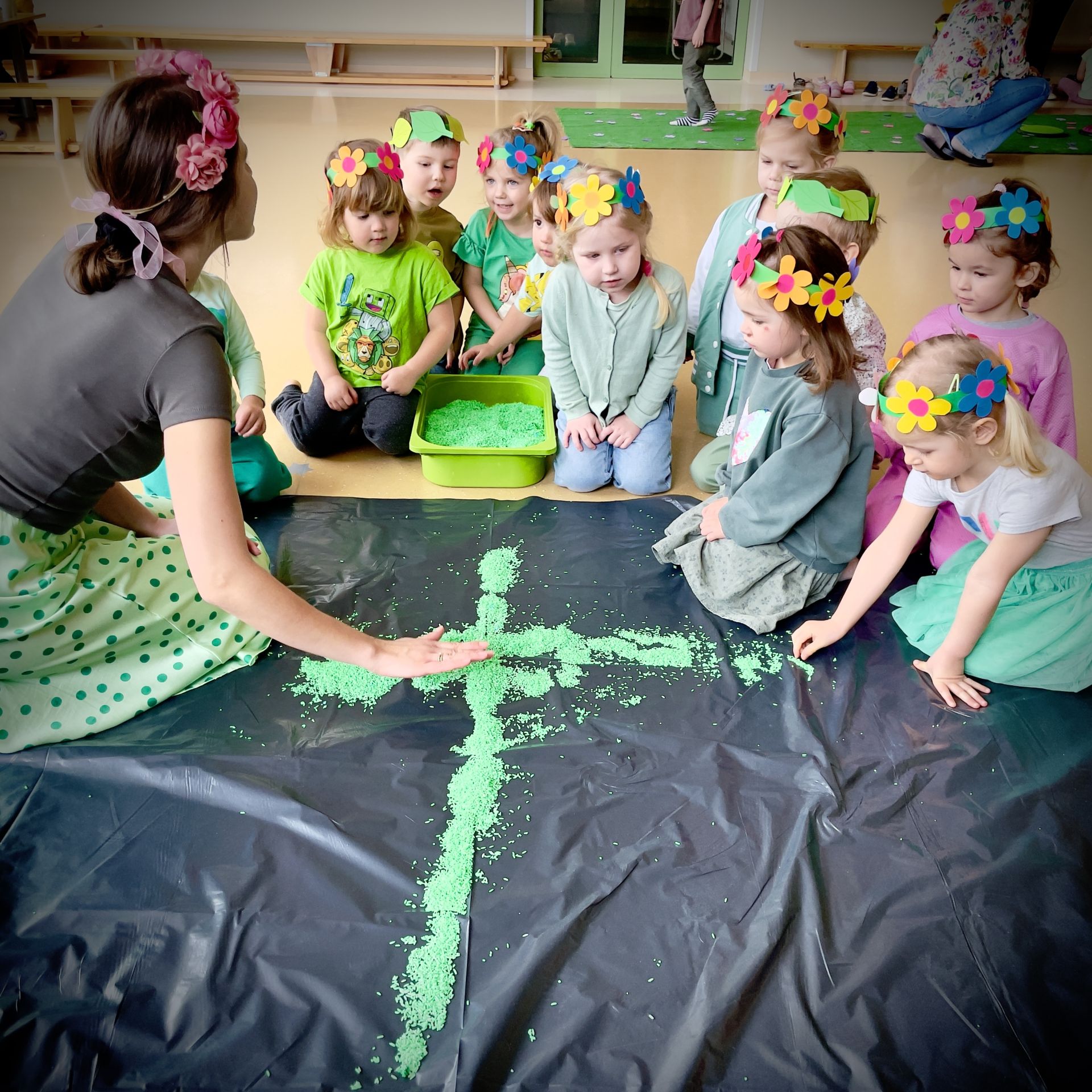Dnia 20 marca 2026 r. z wielką radością powitaliśmy długo wyczekiwaną wiosnę. Z tej okazji uczestniczyliśmy w kreatywnych zajęciach sensoplastycznych pobudzających nasze zmysły.