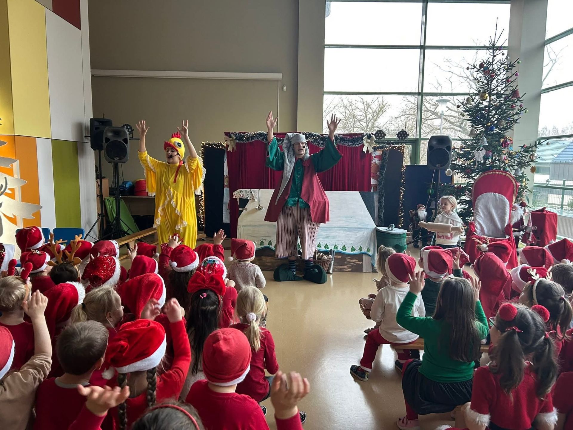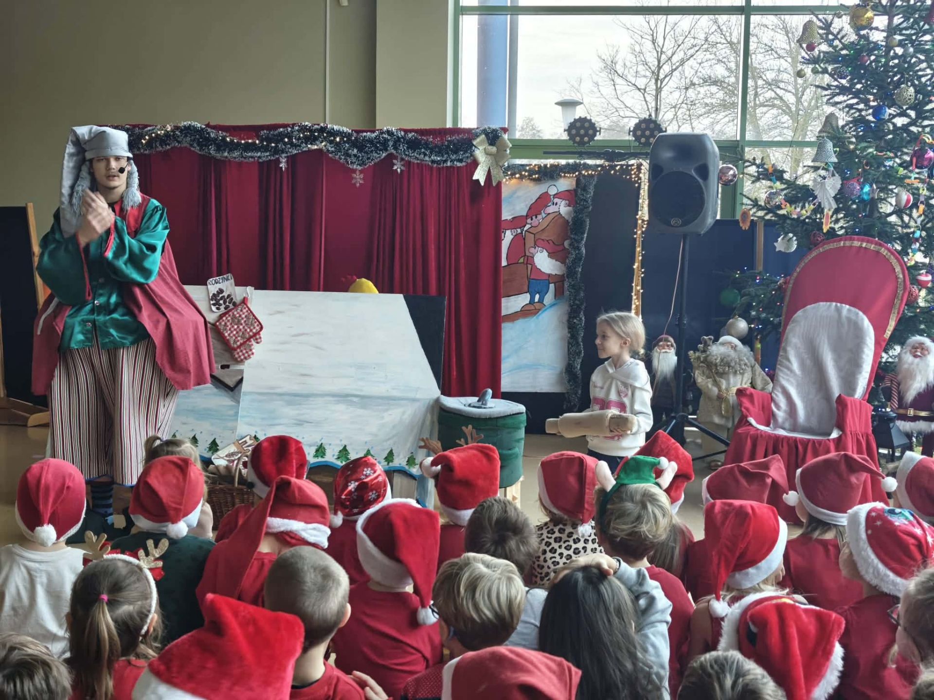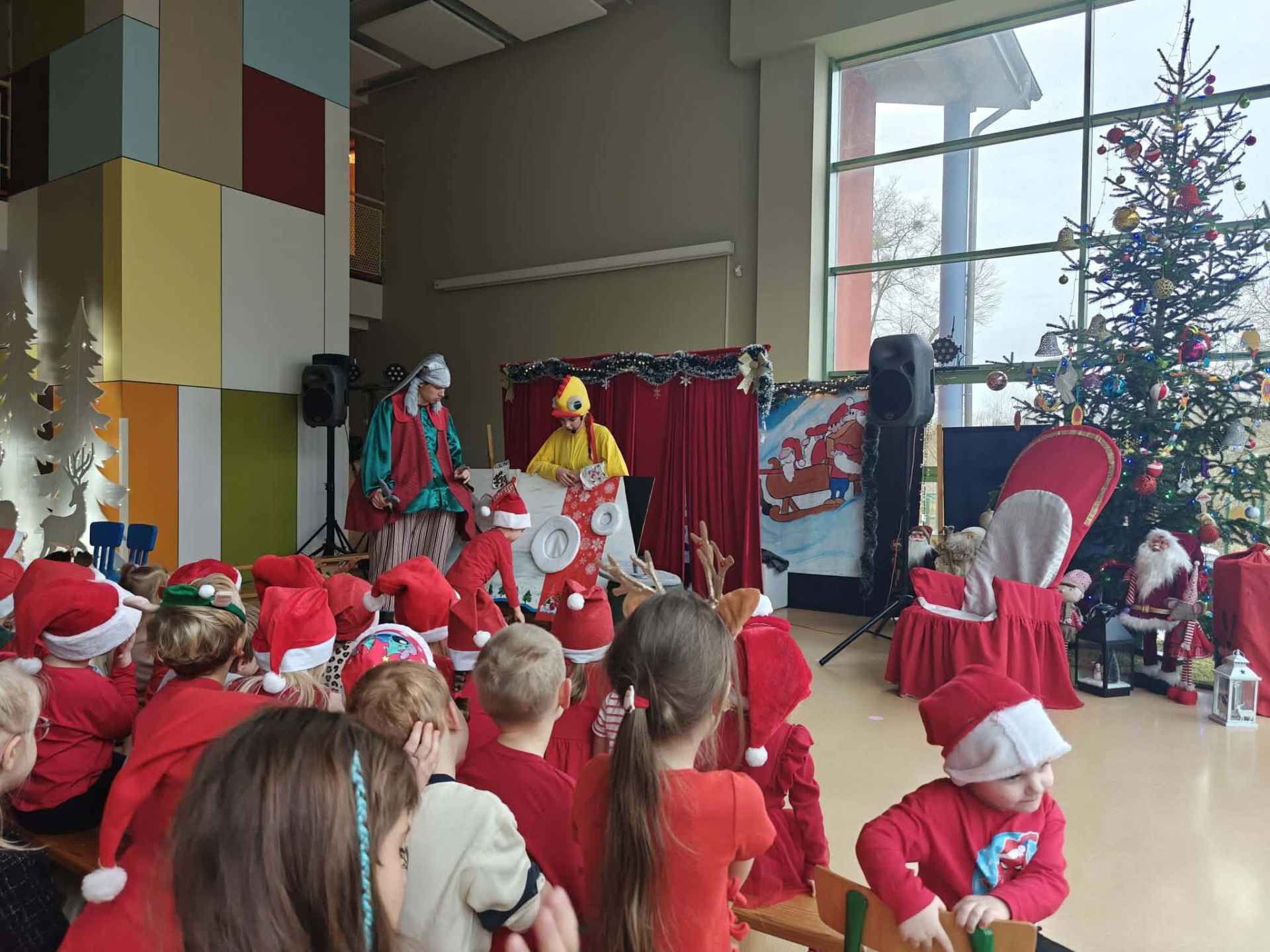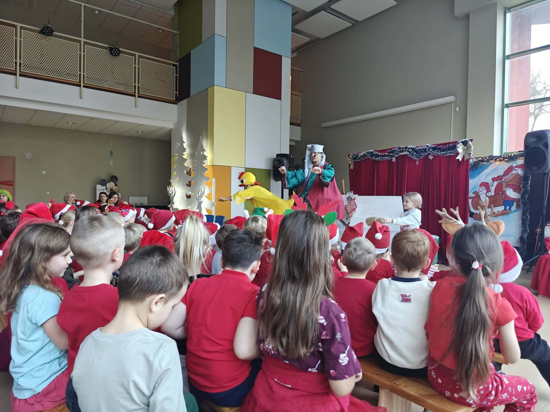 Dziś w naszym przedszkolu odbyły się Mikołajki. Od samego rana na dzieci czekały słodkie upominki w szatni. Po śniadaniu wszystkie przedszkolaki zostały zaproszone na świąteczny spektakl sfinansowany przez Radę Rodziców.