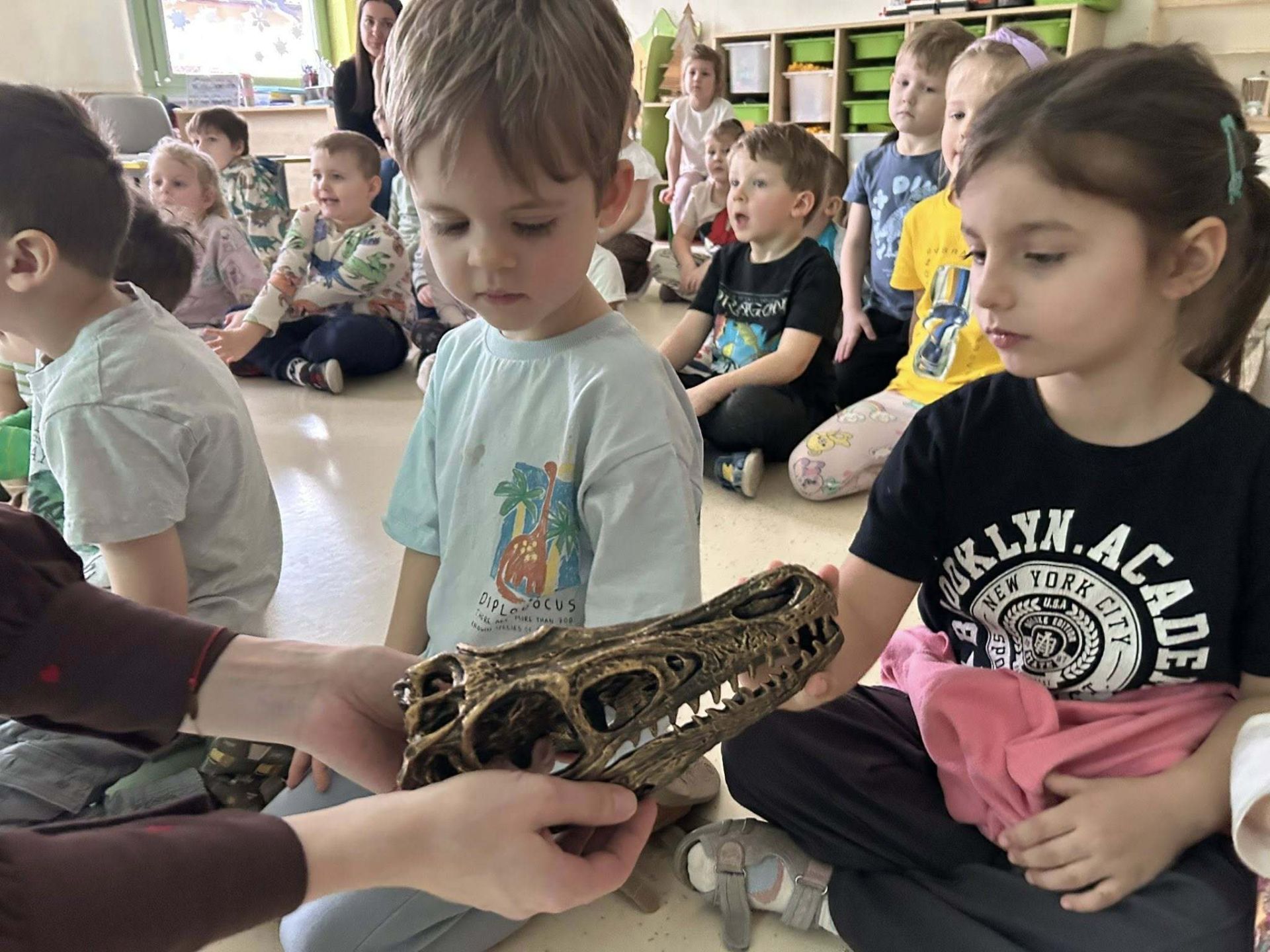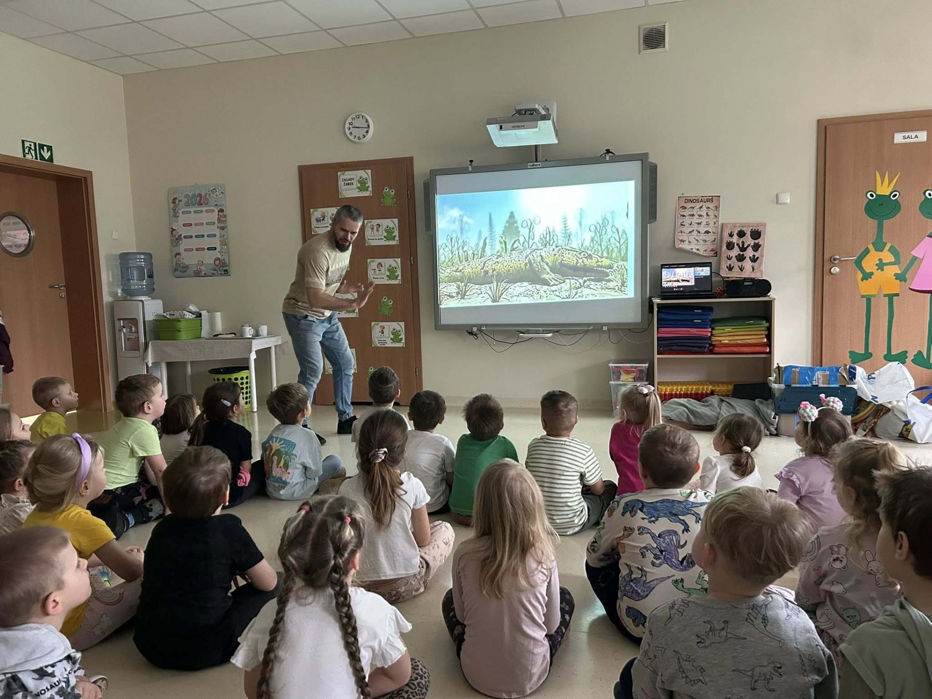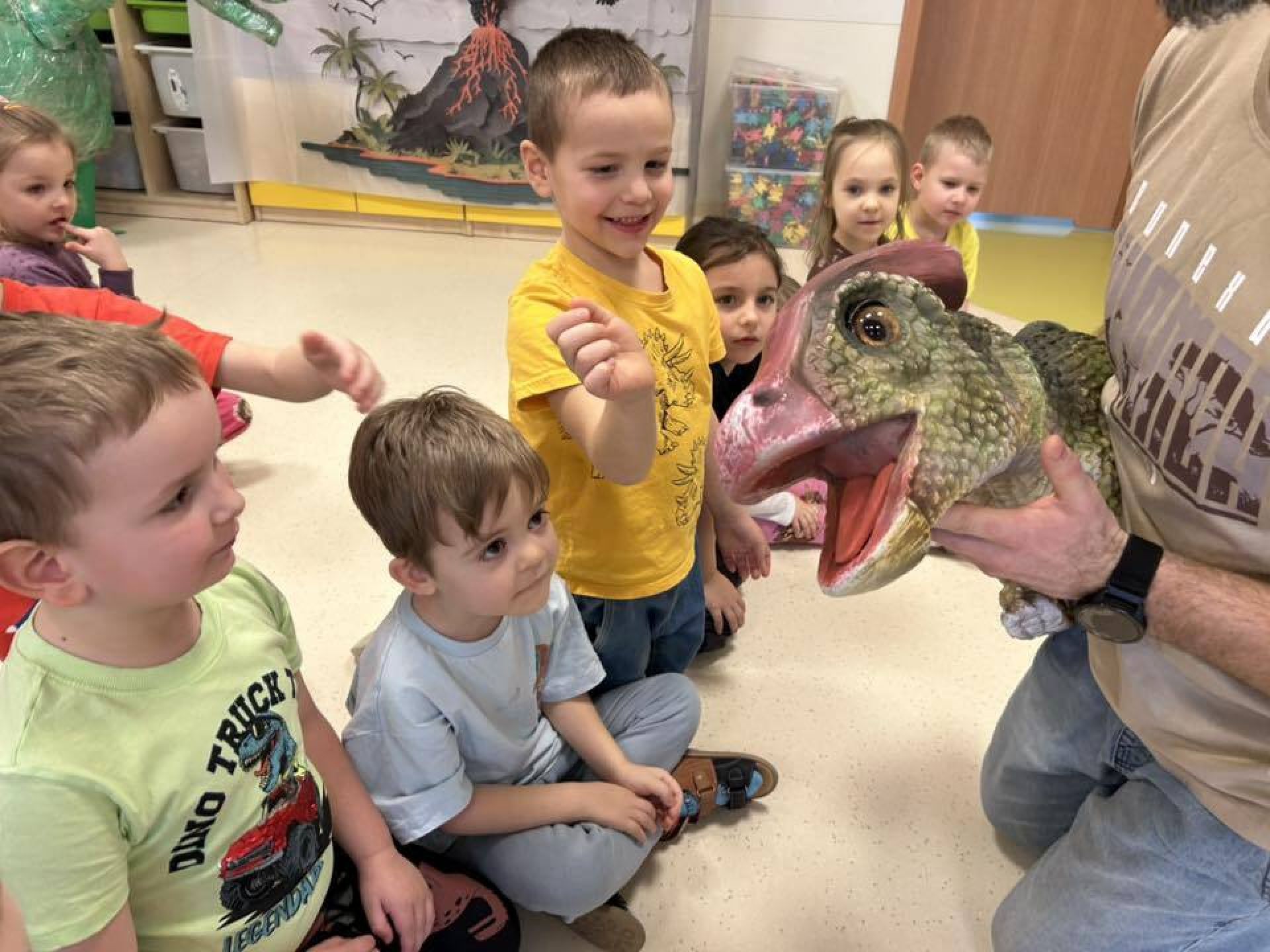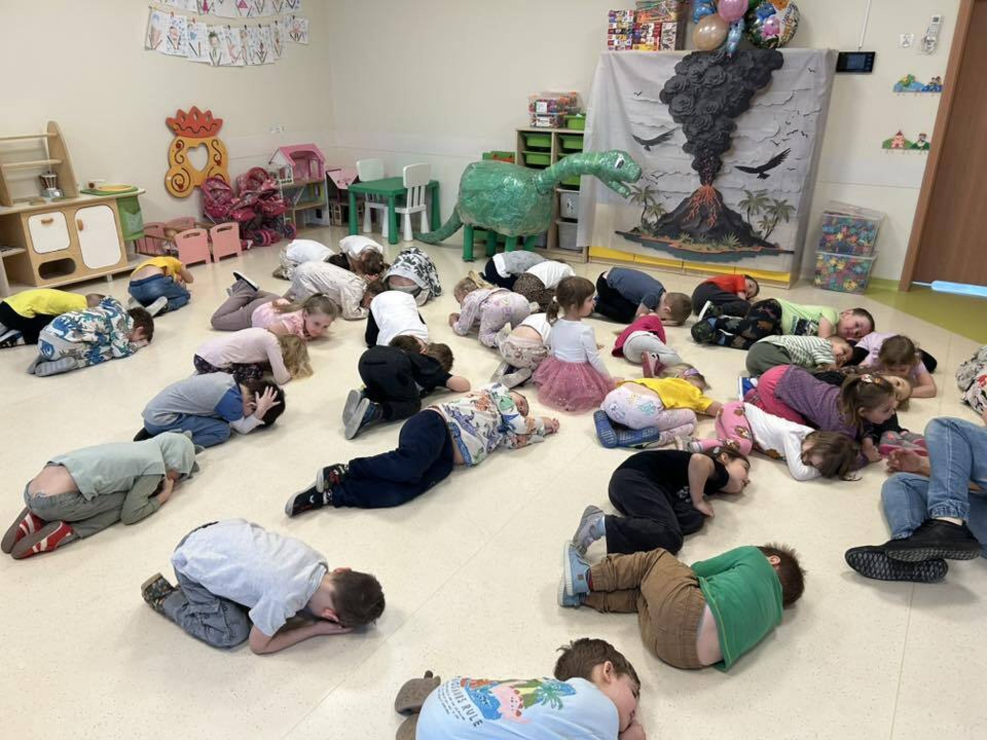 Dziś nasze przedszkole zmieniło się w prehistoryczny świat. Ruch, zabawa, wybuch wulkanu i spotkanie z dinozaurem, który "ożywa". Przedszkolaki brały udział w paleontologicznej przygodzie i przeniosły się do świata dinozaurów.