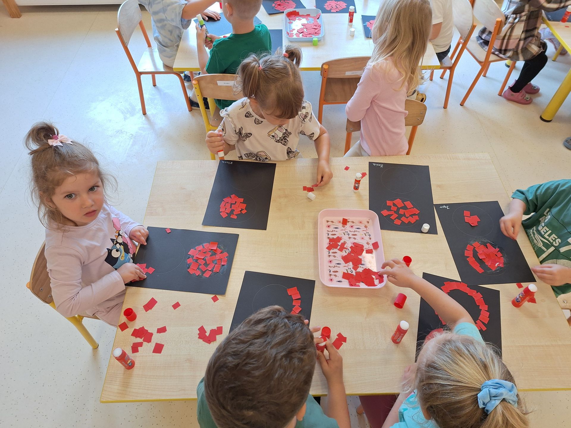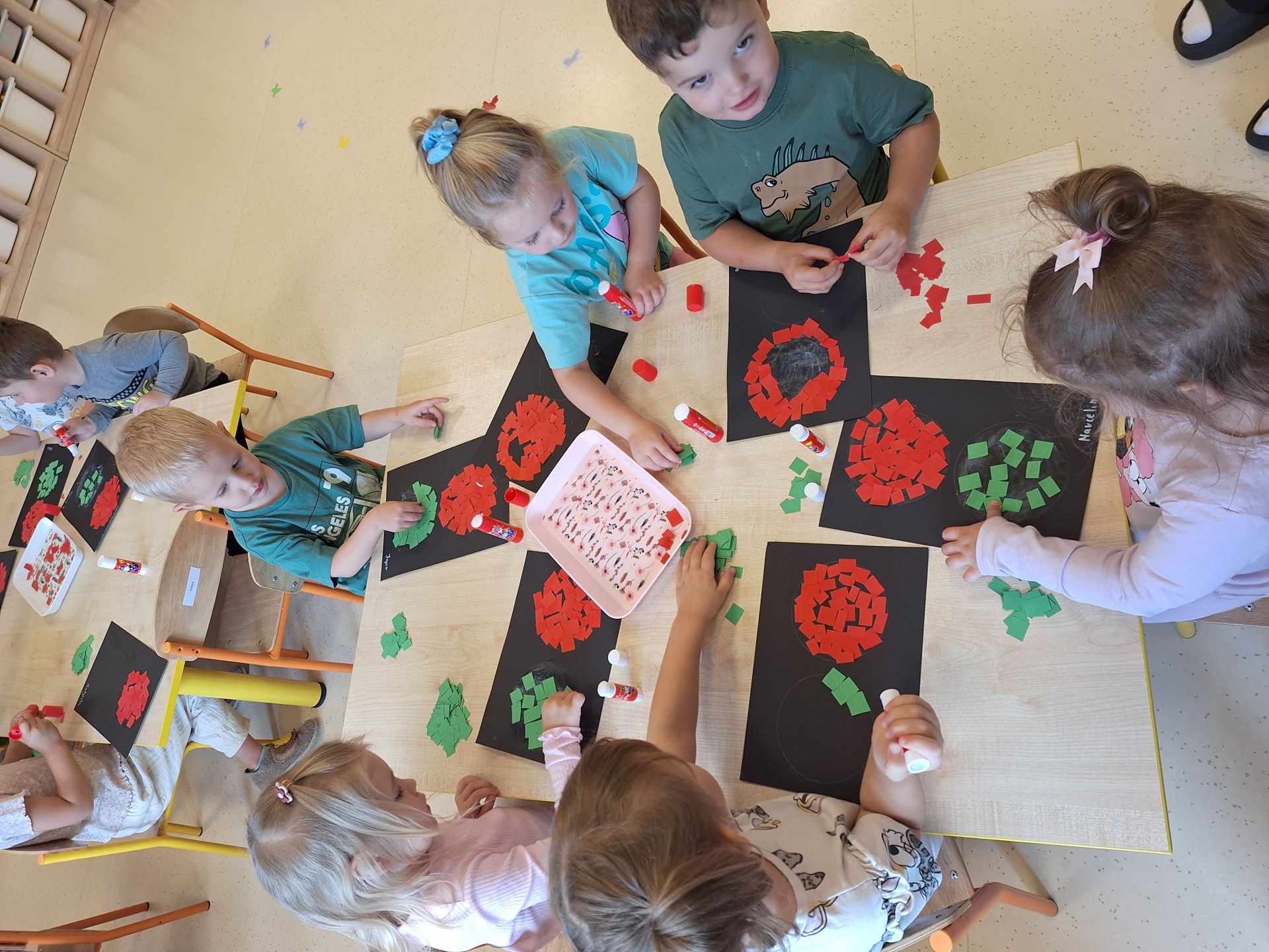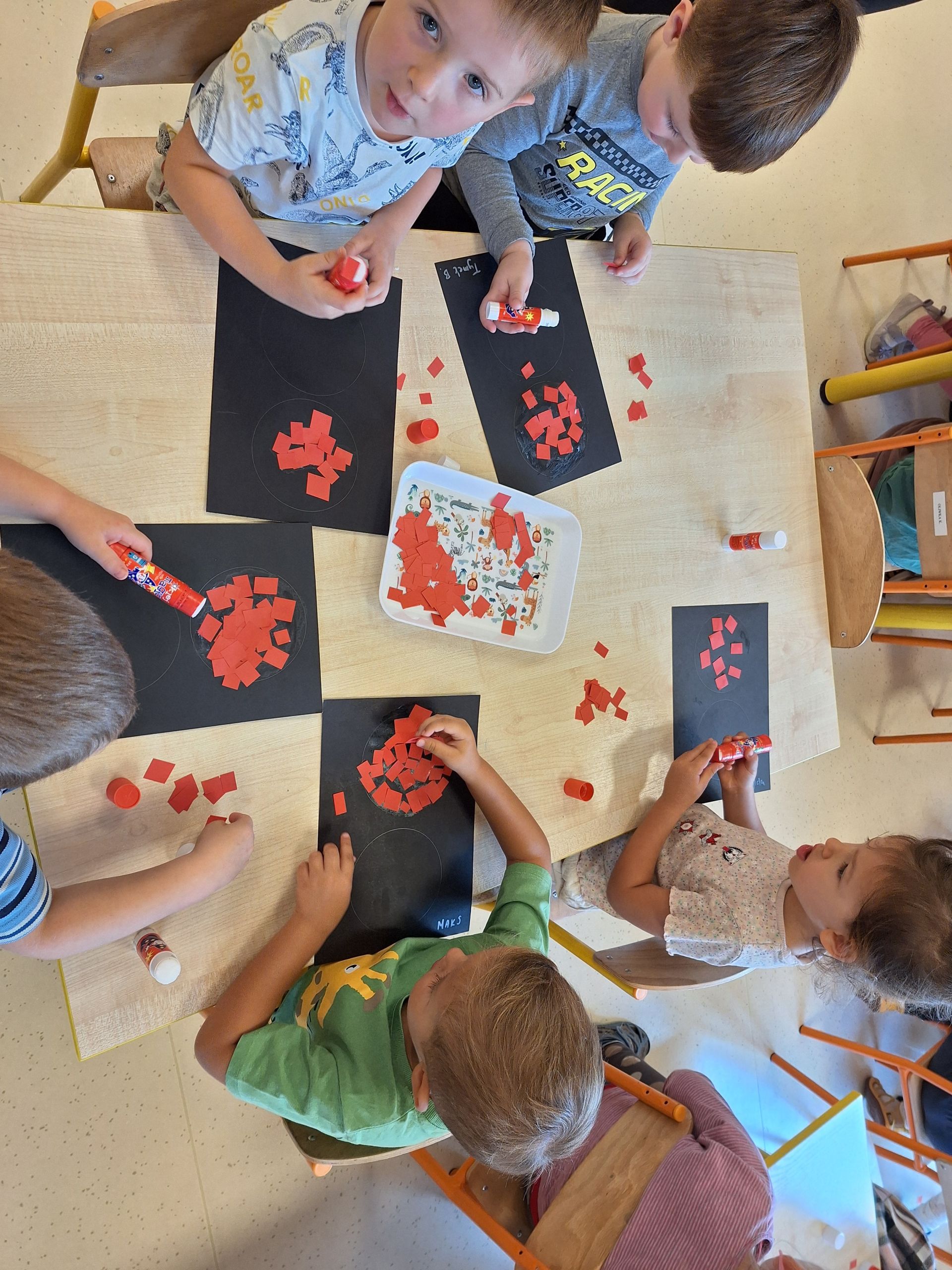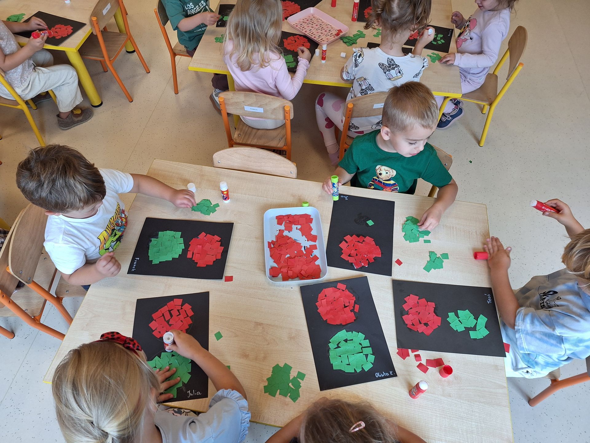 Dziś poznaliśmy zasady bezpiecznego przejścia przez ulicę. Każdy przedszkolak wie, że bezpiecznie przechodzimy na świetle zielonym. Wykonaliśmy pracę plastyczną, wydzierankę "Sygnalizator"