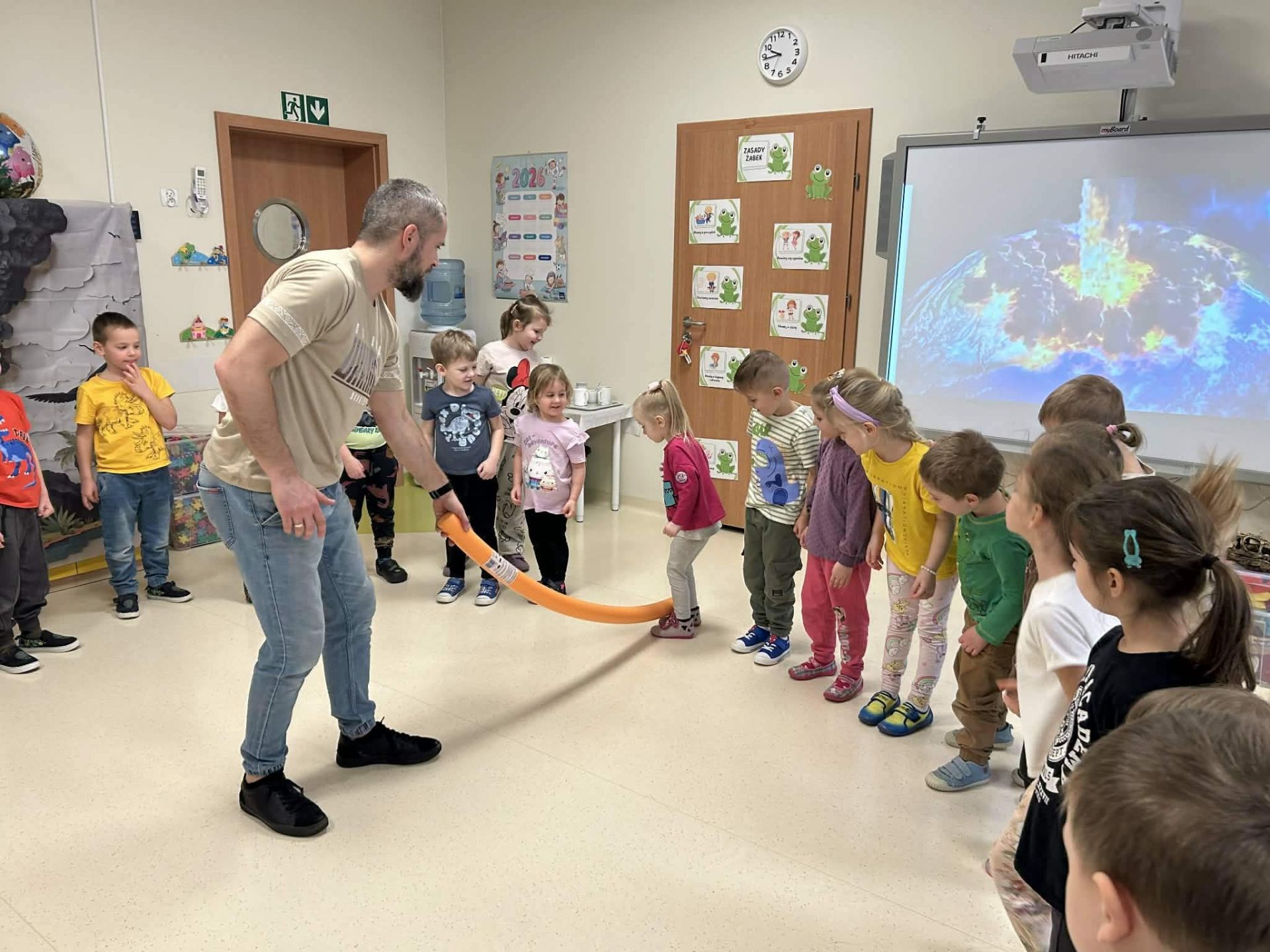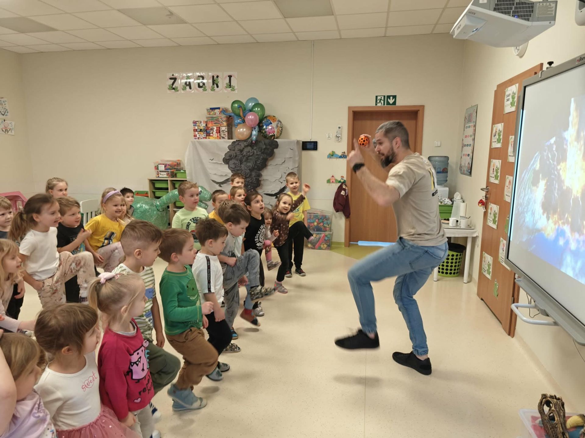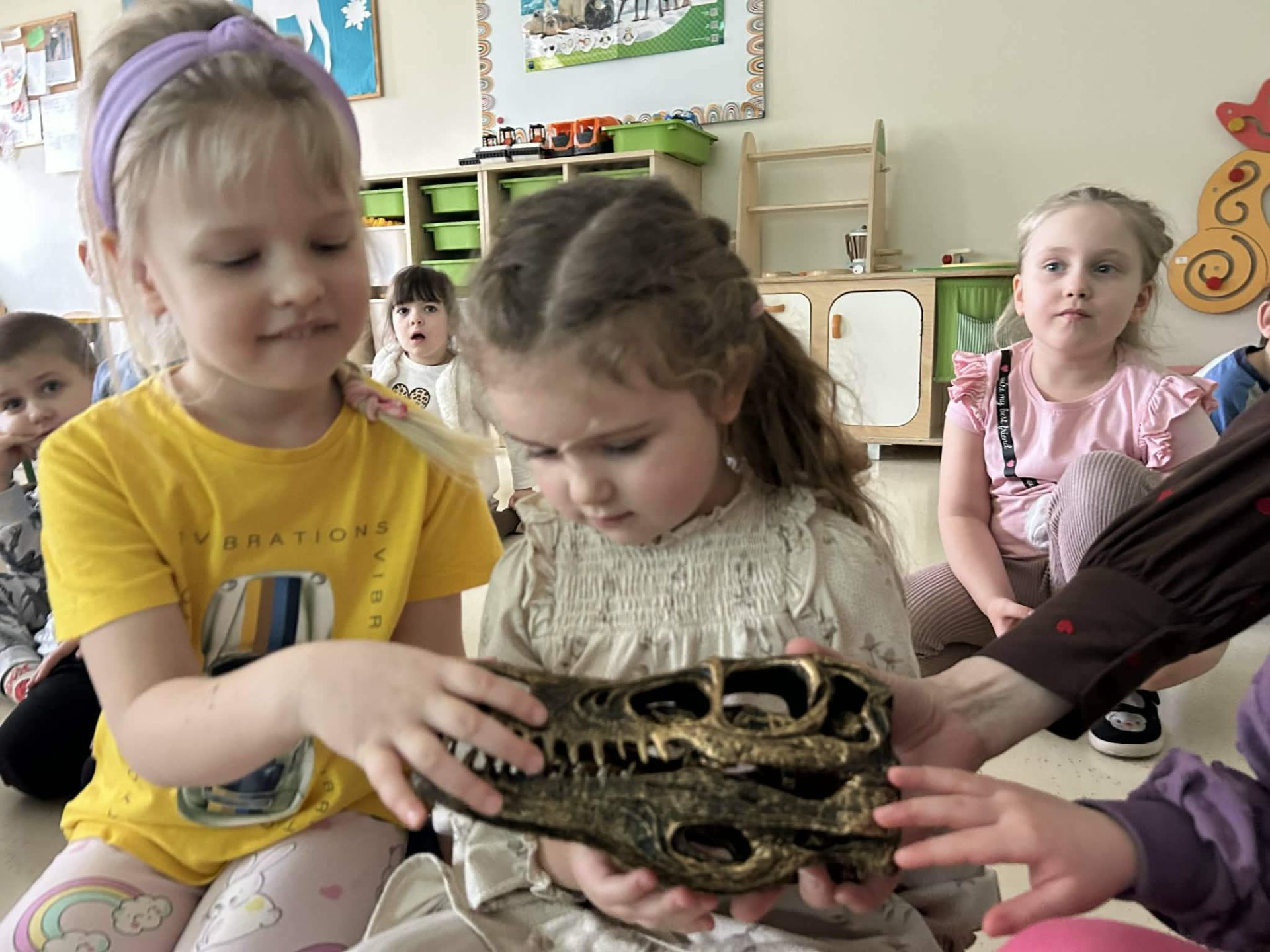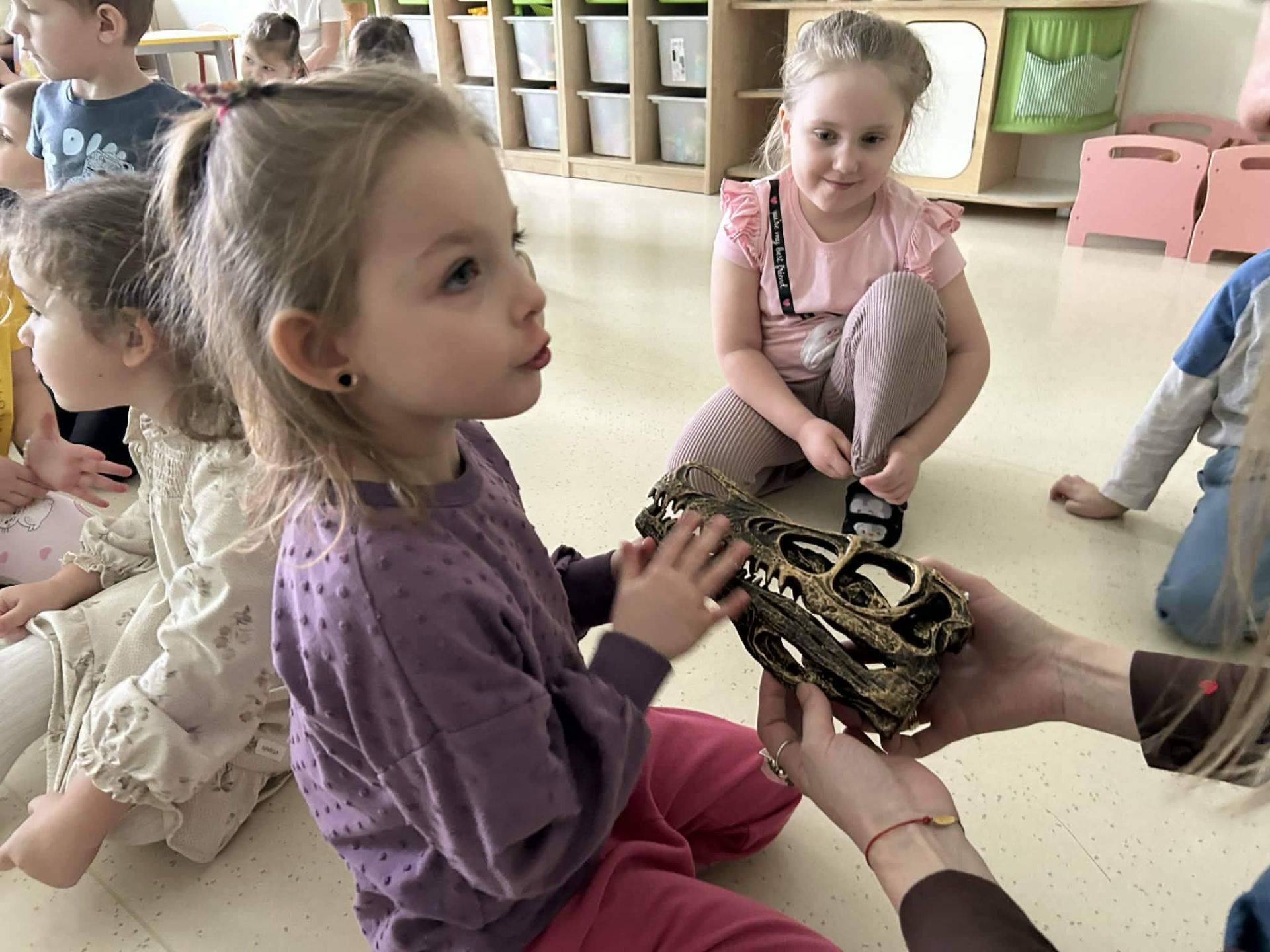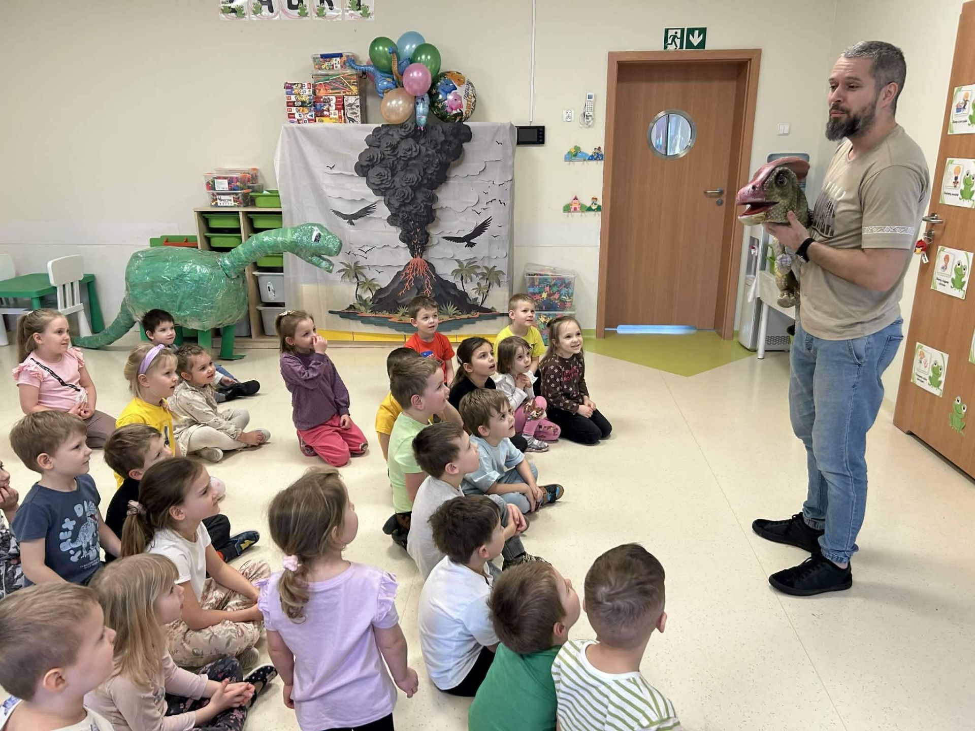 Dzieci podczas warsztatów poznały zagadnienia paleontologii i dowiedziały się jak nazywały się zwierzęta z tamtego okresu ,jak wyglądały, co jadły, jak się poruszały. Warsztaty wsparte tablicą multimedialną, spotkaniem z dinozaurem, oglądaniem skamieniałości oraz wspólnym tworzeniem wybuchów- aktywnych wulkanów. Na koniec każde dziecko otrzymało breloczek z dinozaurem.