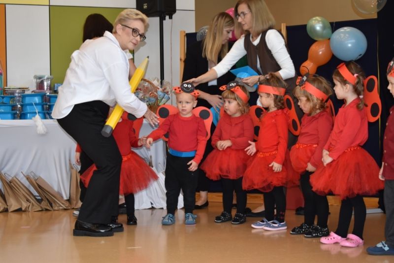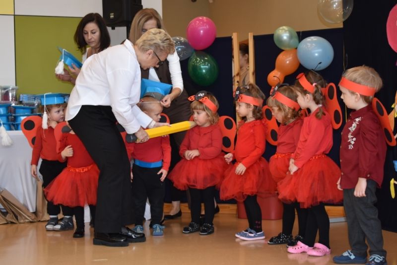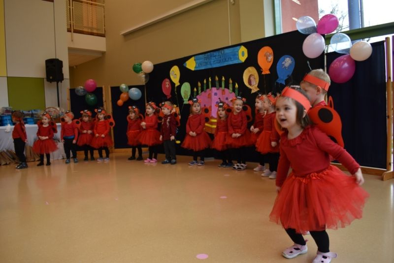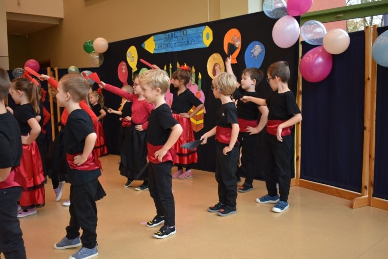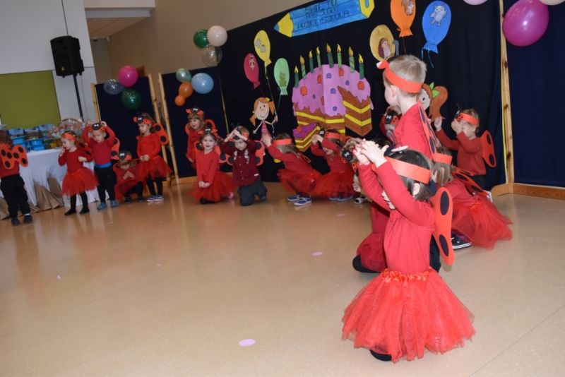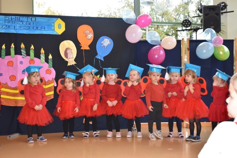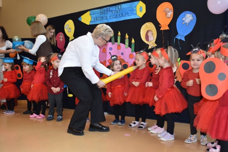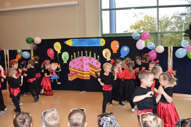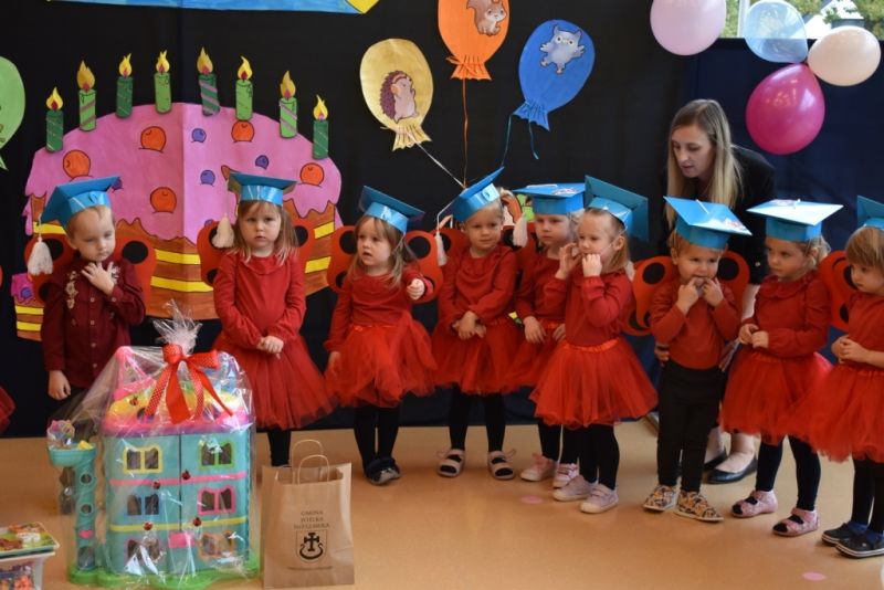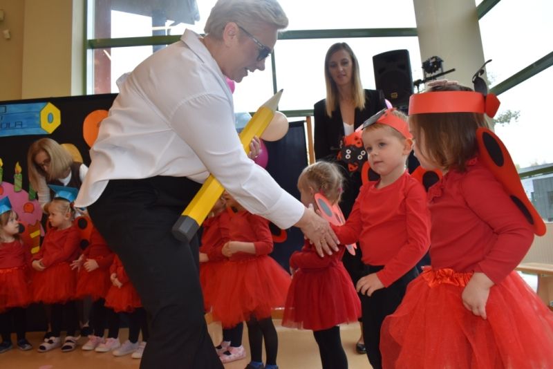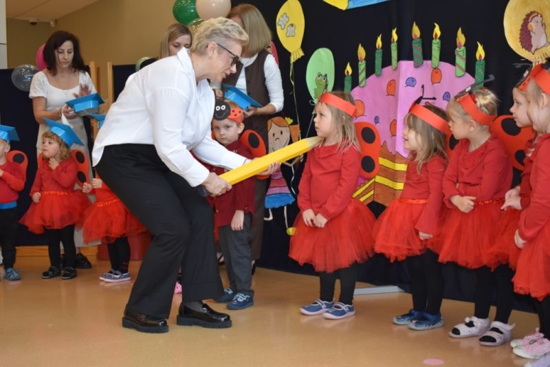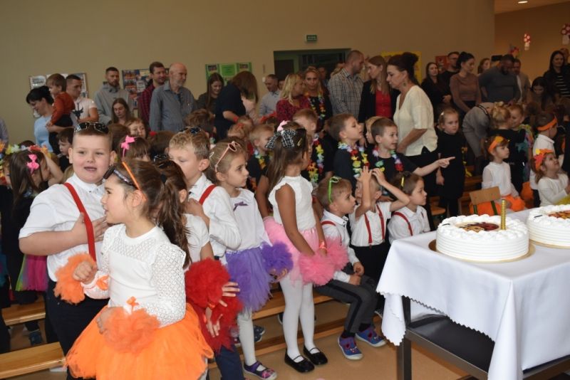 24 października świętowaliśmy 8 urodziny naszego przedszkola. Przybyli do nas wspaniali goście (sekretarz Gminy Wielka Nieszawka Pan Maciej Borowy, Przewodniczący Rady Gminy Pan Michał Dąbrowski, Wicedyrektor Szkoły Podstawowej im. Jana Pawła II w Małej Nieszawce Pani Jolanta Telak oraz Dyrektor Gminnej Biblioteki Publicznej z Małej Nieszawce Pani Maria Miłoszewicz) i rodzice najmłodszych przedszkolaków. Z tej okazji wszystkie grupy zaprezentowały swoje umiejętności wokalno-taneczno- muzyczne. Tego właśnie dnia odbyło się również pasowanie na przedszkolaka Biedronek. Maluszki zaprezentowały swoje umiejętności – dając tym samym dowód, jak dużo już potrafią. Po części artystycznej, dzieci obiecały: zgodnie bawić się w przedszkolu, przychodzić każdego dnia z uśmiechem, słuchać pani i pomagać kolegom, być dzielnym przedszkolakiem. Następnie pani dyrektor Barbara Mrugalska dokonała uroczystego pasowania każdego dziecka na przedszkolaka. Na pamiątkę tego ważnego wydarzenia każdy przedszkolak otrzymał dyplom pasowania, birety oraz wspaniałe słodki upominki. Były również torty dla wszystkich grup oraz prezenty dla każdej z grup. Wszystkim gościom towarzyszył na twarzy uśmiech, chociaż w niejednym oku pojawiły się łzy wzruszenia.