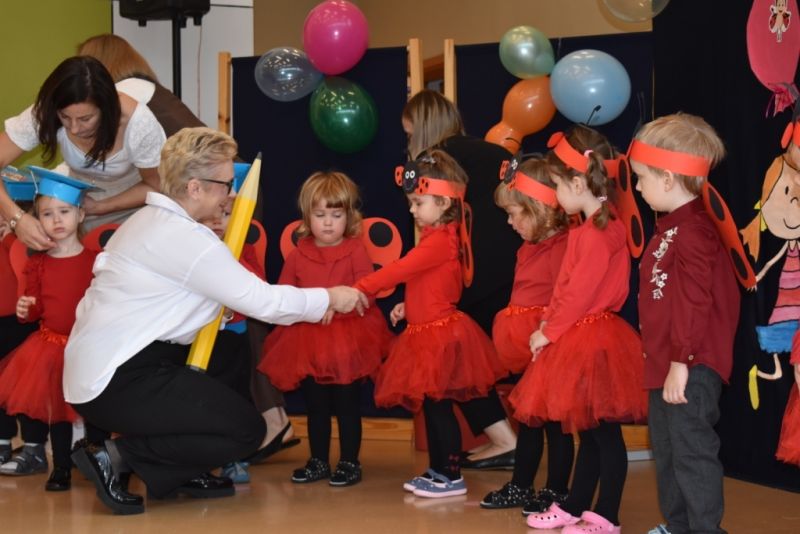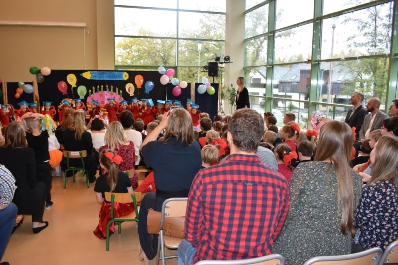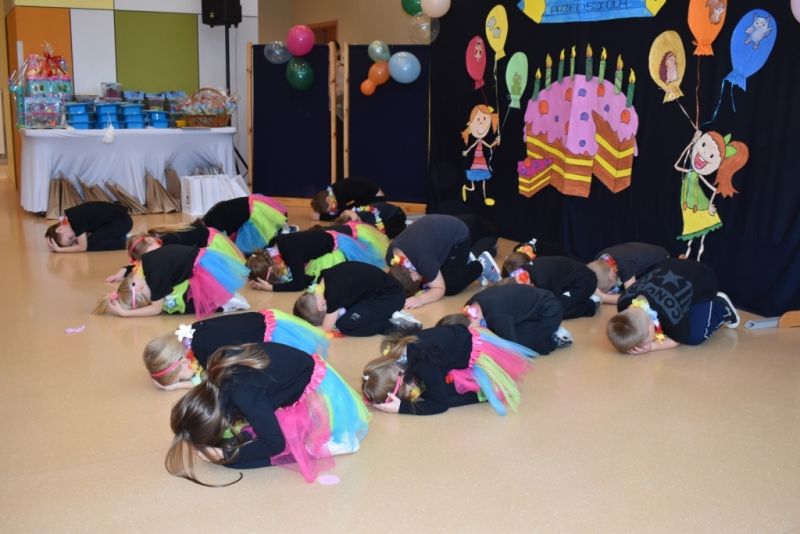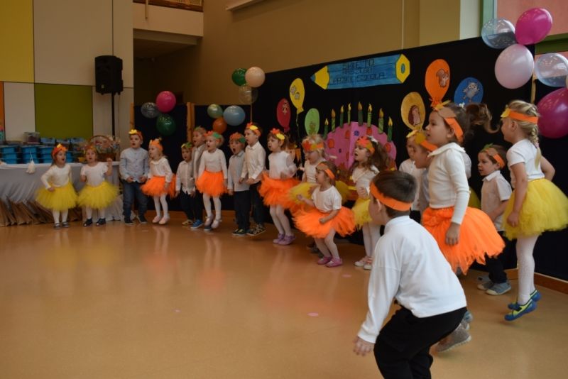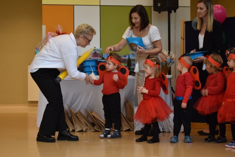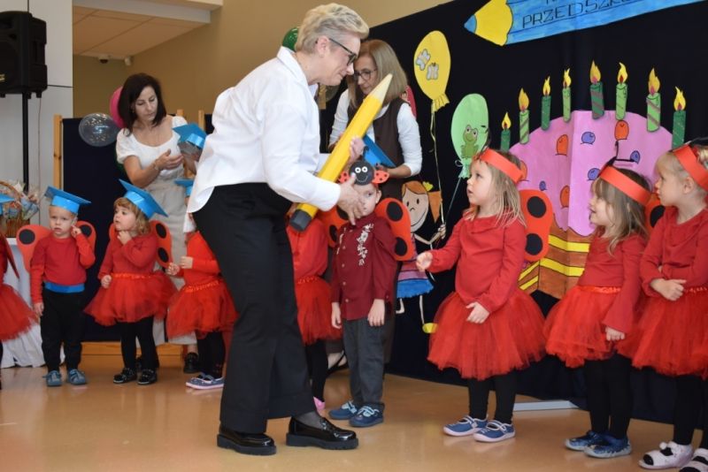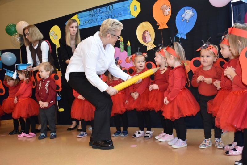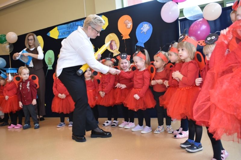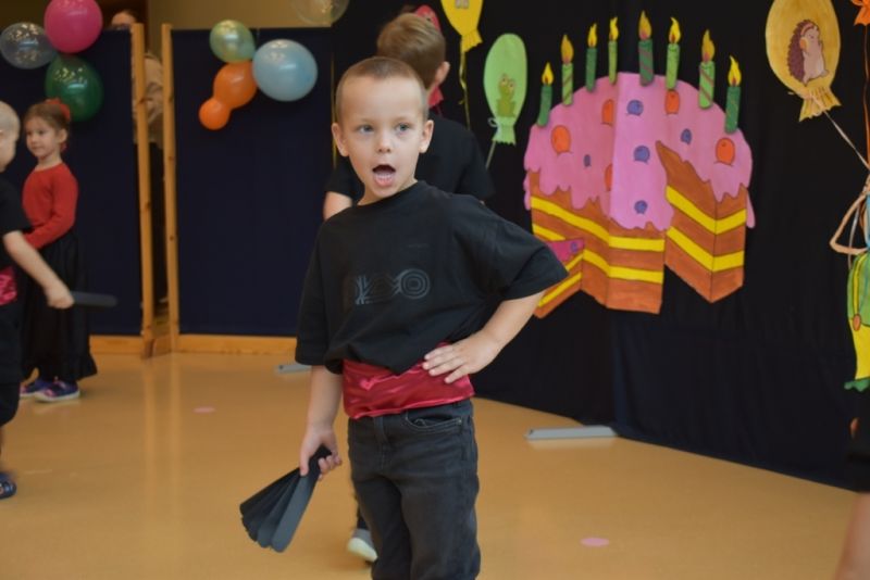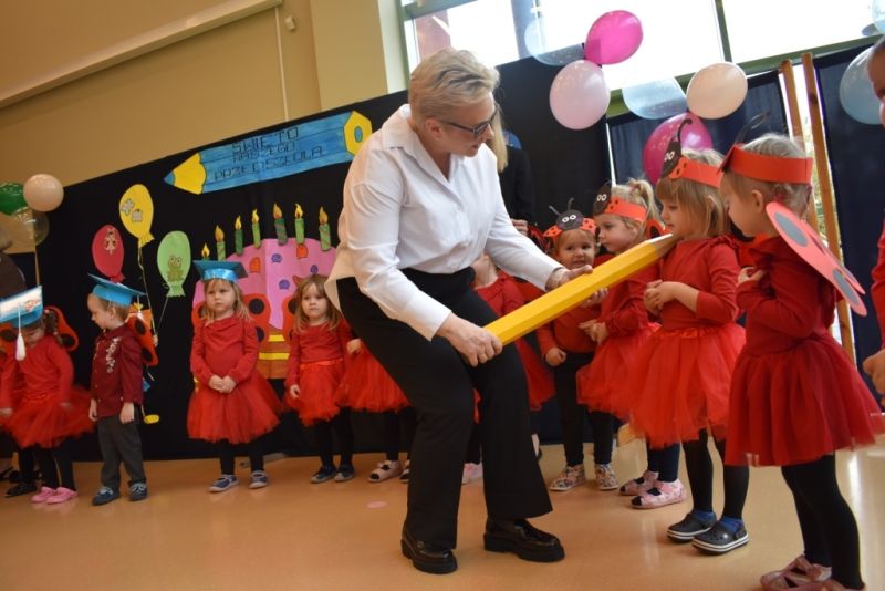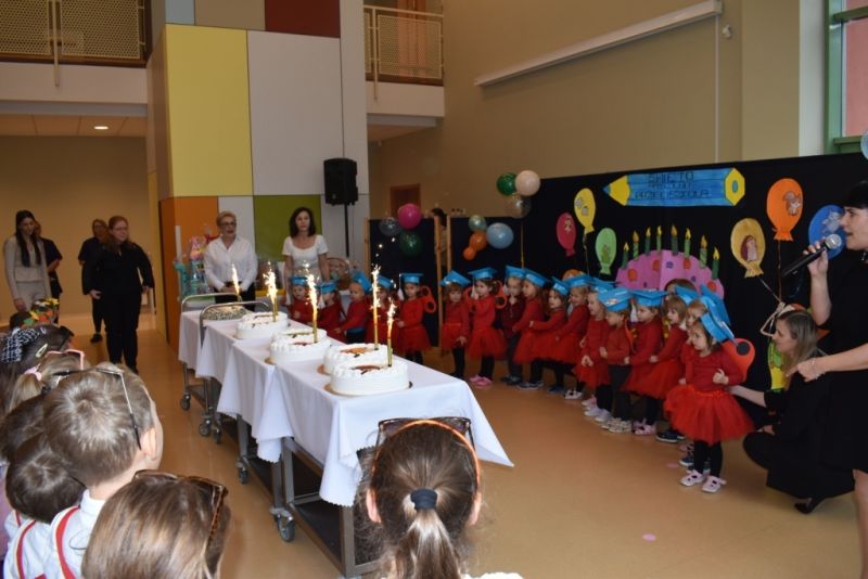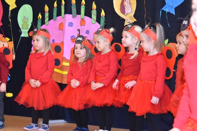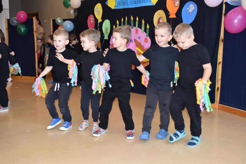 24 października świętowaliśmy 8 urodziny naszego przedszkola. Przybyli do nas wspaniali goście (sekretarz Gminy Wielka Nieszawka Pan Maciej Borowy, Przewodniczący Rady Gminy Pan Michał Dąbrowski, Wicedyrektor Szkoły Podstawowej im. Jana Pawła II w Małej Nieszawce Pani Jolanta Telak oraz Dyrektor Gminnej Biblioteki Publicznej z Małej Nieszawce Pani Maria Miłoszewicz) i rodzice najmłodszych przedszkolaków. Z tej okazji wszystkie grupy zaprezentowały swoje umiejętności wokalno-taneczno- muzyczne. Tego właśnie dnia odbyło się również pasowanie na przedszkolaka Biedronek. Maluszki zaprezentowały swoje umiejętności – dając tym samym dowód, jak dużo już potrafią. Po części artystycznej, dzieci obiecały: zgodnie bawić się w przedszkolu, przychodzić każdego dnia z uśmiechem, słuchać pani i pomagać kolegom, być dzielnym przedszkolakiem. Następnie pani dyrektor Barbara Mrugalska dokonała uroczystego pasowania każdego dziecka na przedszkolaka. Na pamiątkę tego ważnego wydarzenia każdy przedszkolak otrzymał dyplom pasowania, birety oraz wspaniałe słodki upominki. Były również torty dla wszystkich grup oraz prezenty dla każdej z grup. Wszystkim gościom towarzyszył na twarzy uśmiech, chociaż w niejednym oku pojawiły się łzy wzruszenia.