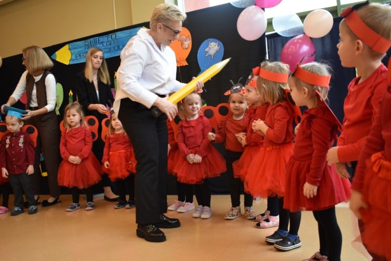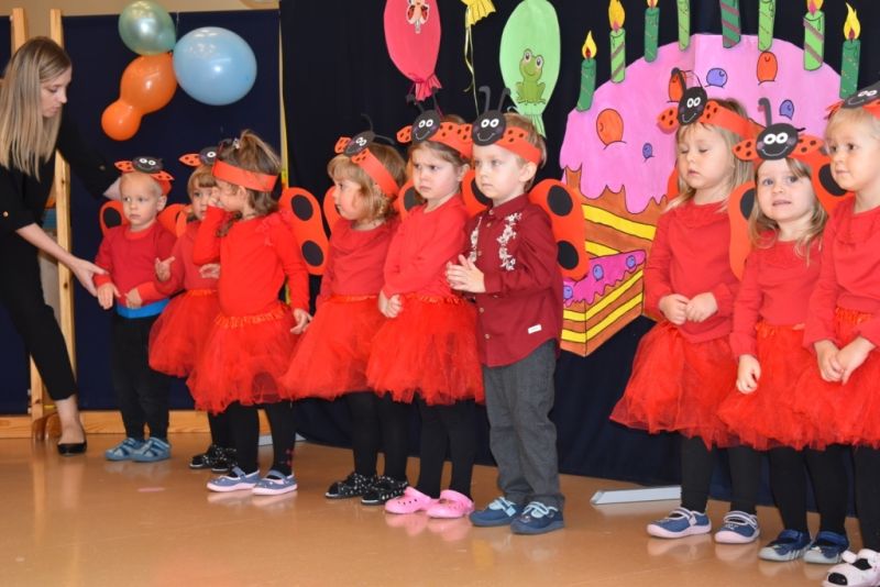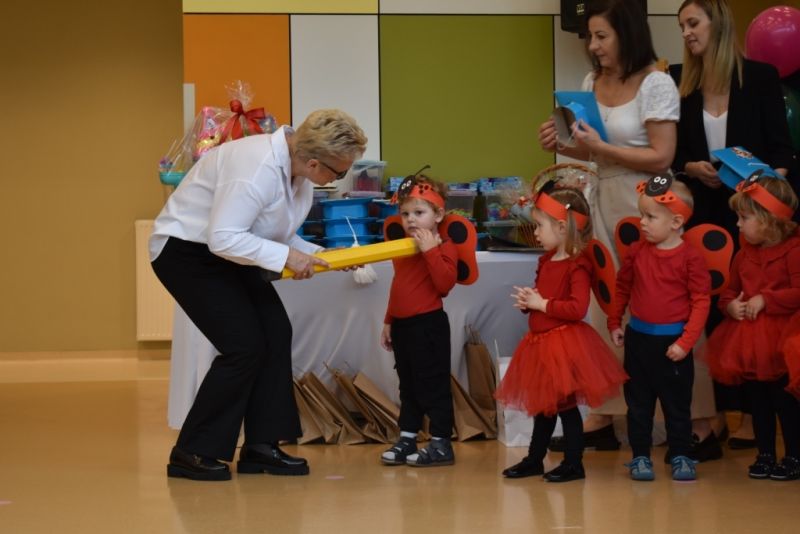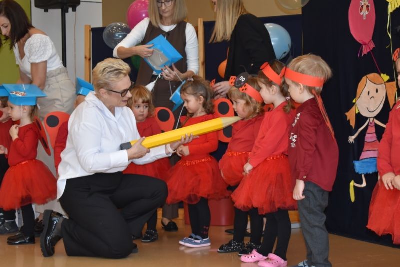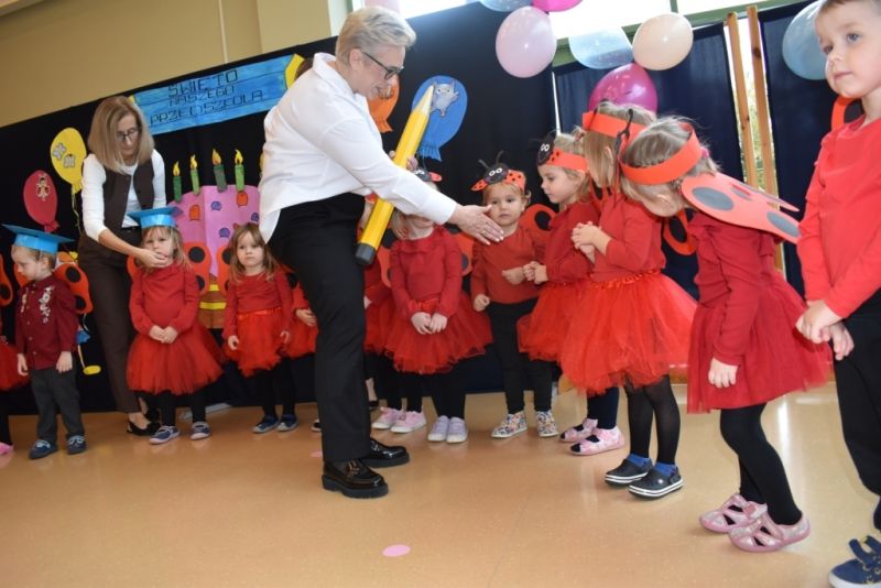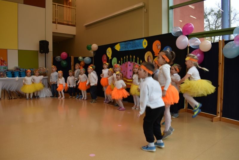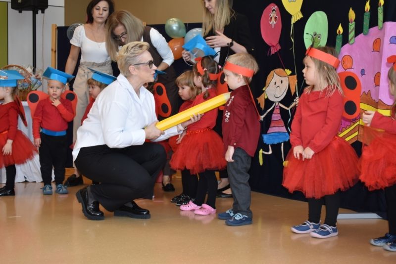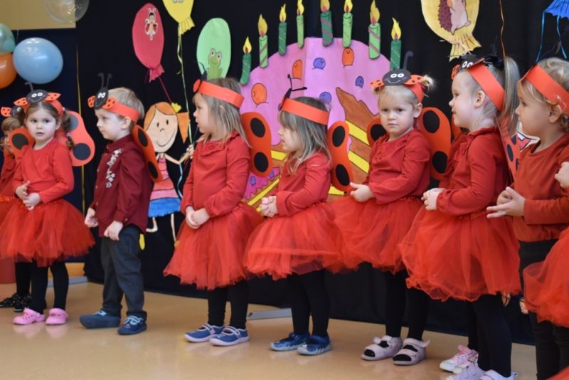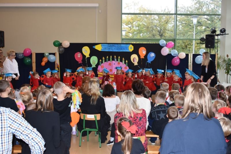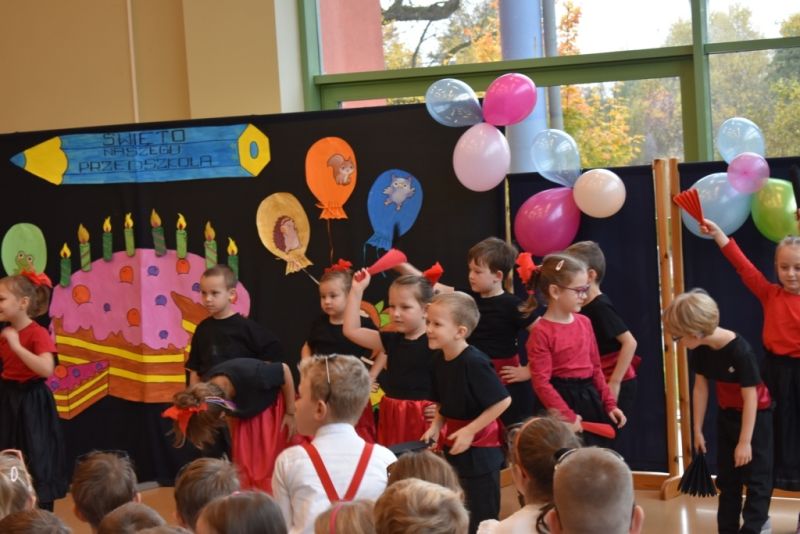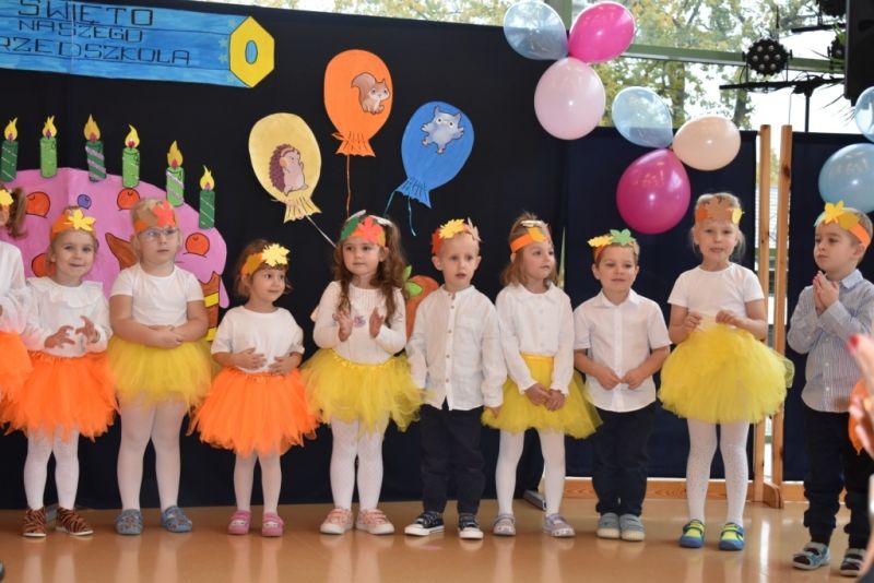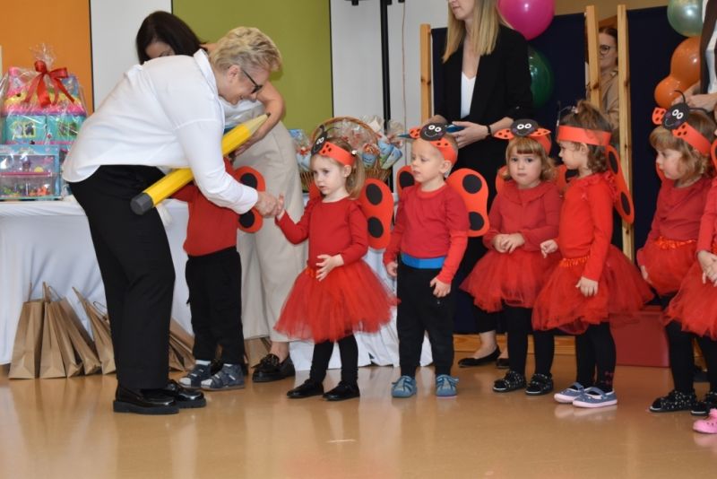 24 października świętowaliśmy 8 urodziny naszego przedszkola. Przybyli do nas wspaniali goście (sekretarz Gminy Wielka Nieszawka Pan Maciej Borowy, Przewodniczący Rady Gminy Pan Michał Dąbrowski, Wicedyrektor Szkoły Podstawowej im. Jana Pawła II w Małej Nieszawce Pani Jolanta Telak oraz Dyrektor Gminnej Biblioteki Publicznej z Małej Nieszawce Pani Maria Miłoszewicz) i rodzice najmłodszych przedszkolaków. Z tej okazji wszystkie grupy zaprezentowały swoje umiejętności wokalno-taneczno- muzyczne. Tego właśnie dnia odbyło się również pasowanie na przedszkolaka Biedronek. Maluszki zaprezentowały swoje umiejętności – dając tym samym dowód, jak dużo już potrafią. Po części artystycznej, dzieci obiecały: zgodnie bawić się w przedszkolu, przychodzić każdego dnia z uśmiechem, słuchać pani i pomagać kolegom, być dzielnym przedszkolakiem. Następnie pani dyrektor Barbara Mrugalska dokonała uroczystego pasowania każdego dziecka na przedszkolaka. Na pamiątkę tego ważnego wydarzenia każdy przedszkolak otrzymał dyplom pasowania, birety oraz wspaniałe słodki upominki. Były również torty dla wszystkich grup oraz prezenty dla każdej z grup. Wszystkim gościom towarzyszył na twarzy uśmiech, chociaż w niejednym oku pojawiły się łzy wzruszenia.