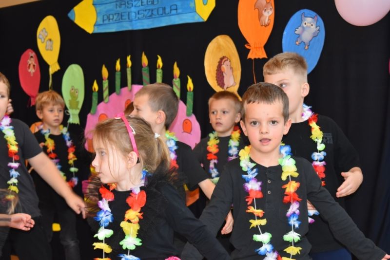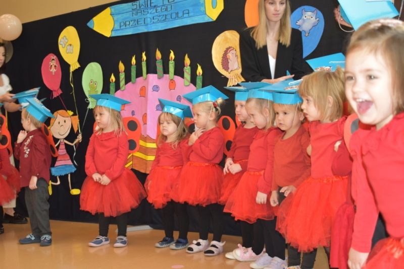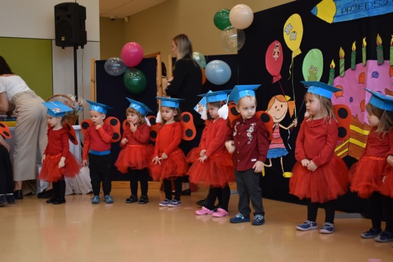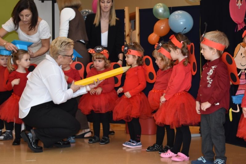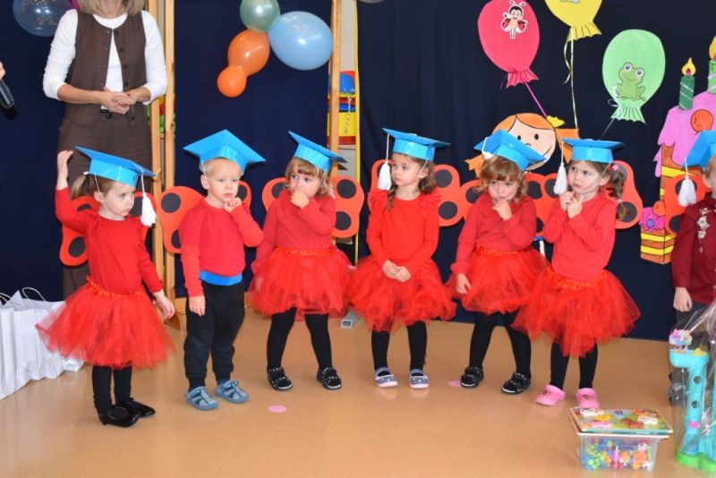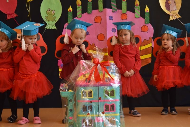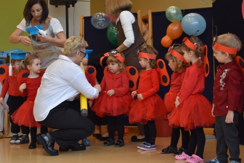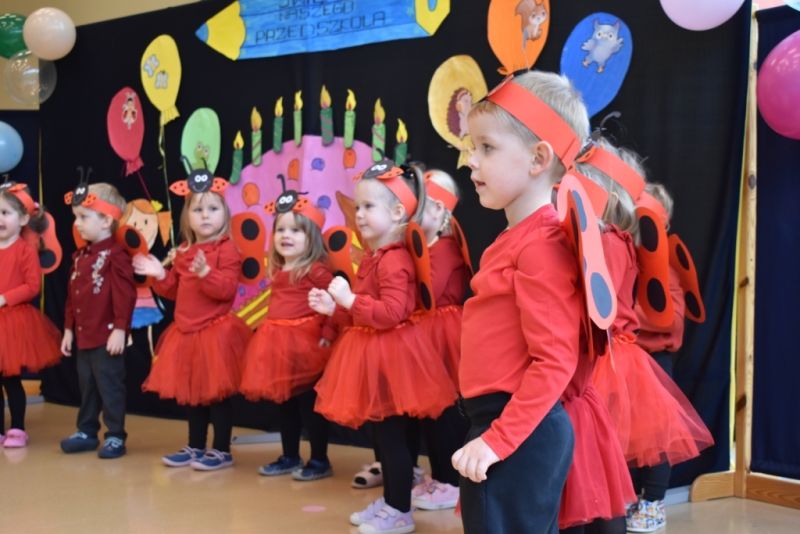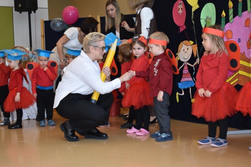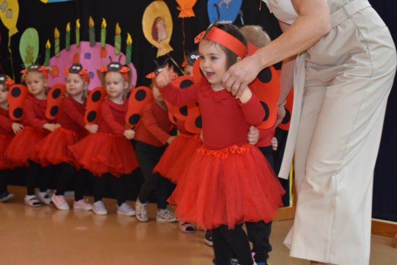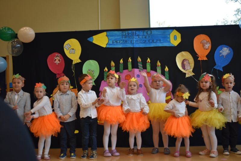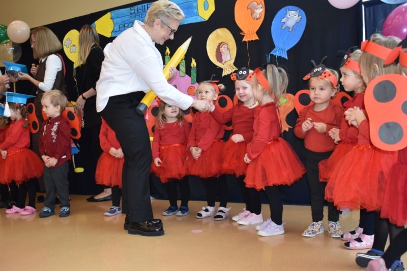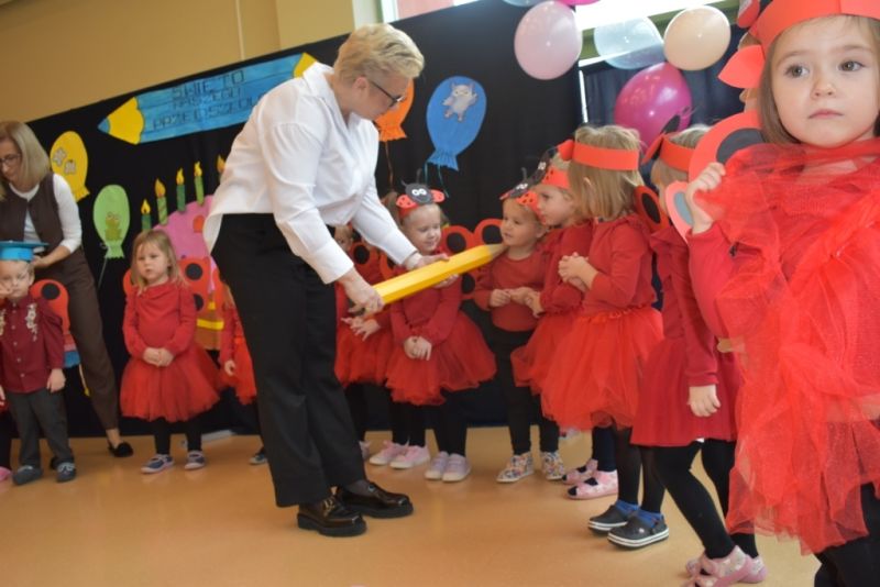 24 października świętowaliśmy 8 urodziny naszego przedszkola. Przybyli do nas wspaniali goście (sekretarz Gminy Wielka Nieszawka Pan Maciej Borowy, Przewodniczący Rady Gminy Pan Michał Dąbrowski, Wicedyrektor Szkoły Podstawowej im. Jana Pawła II w Małej Nieszawce Pani Jolanta Telak oraz Dyrektor Gminnej Biblioteki Publicznej z Małej Nieszawce Pani Maria Miłoszewicz) i rodzice najmłodszych przedszkolaków. Z tej okazji wszystkie grupy zaprezentowały swoje umiejętności wokalno-taneczno- muzyczne. Tego właśnie dnia odbyło się również pasowanie na przedszkolaka Biedronek. Maluszki zaprezentowały swoje umiejętności – dając tym samym dowód, jak dużo już potrafią. Po części artystycznej, dzieci obiecały: zgodnie bawić się w przedszkolu, przychodzić każdego dnia z uśmiechem, słuchać pani i pomagać kolegom, być dzielnym przedszkolakiem. Następnie pani dyrektor Barbara Mrugalska dokonała uroczystego pasowania każdego dziecka na przedszkolaka. Na pamiątkę tego ważnego wydarzenia każdy przedszkolak otrzymał dyplom pasowania, birety oraz wspaniałe słodki upominki. Były również torty dla wszystkich grup oraz prezenty dla każdej z grup. Wszystkim gościom towarzyszył na twarzy uśmiech, chociaż w niejednym oku pojawiły się łzy wzruszenia.