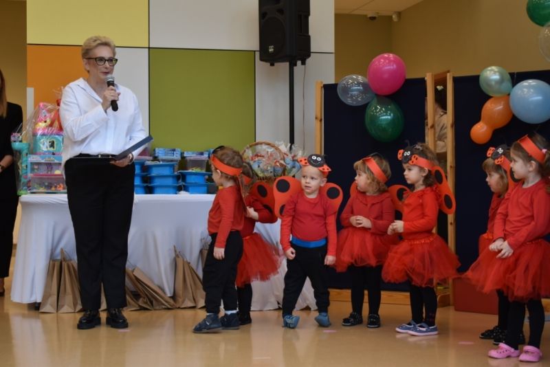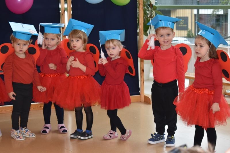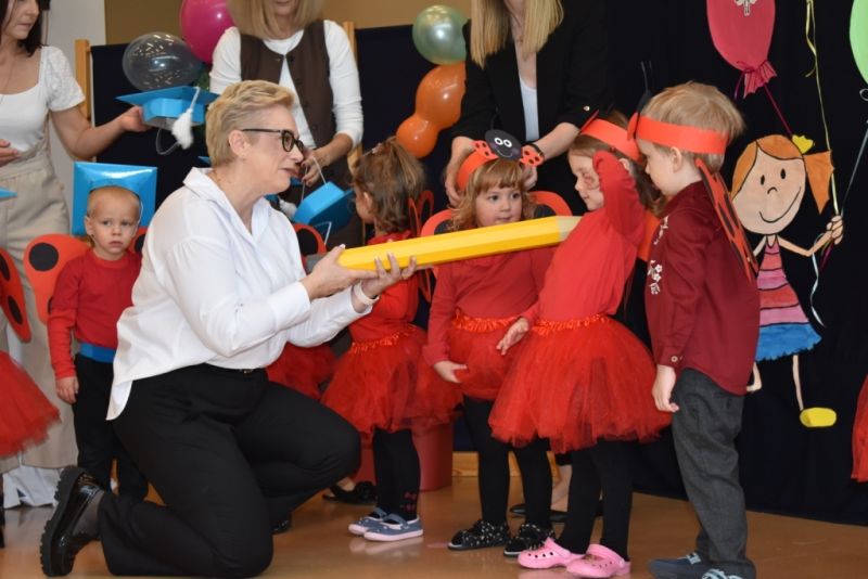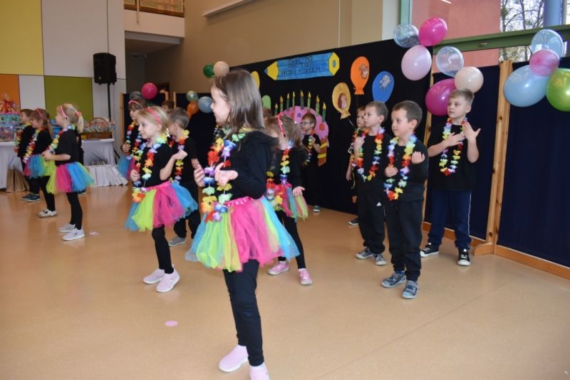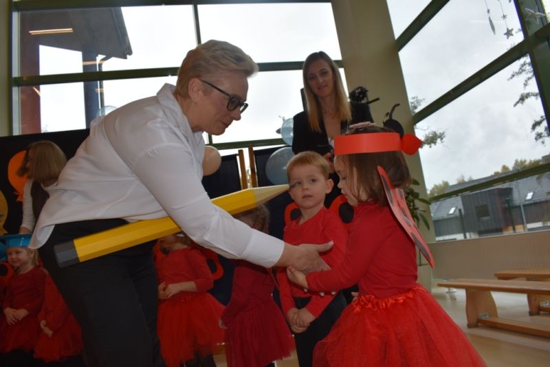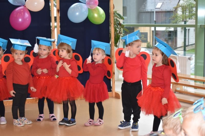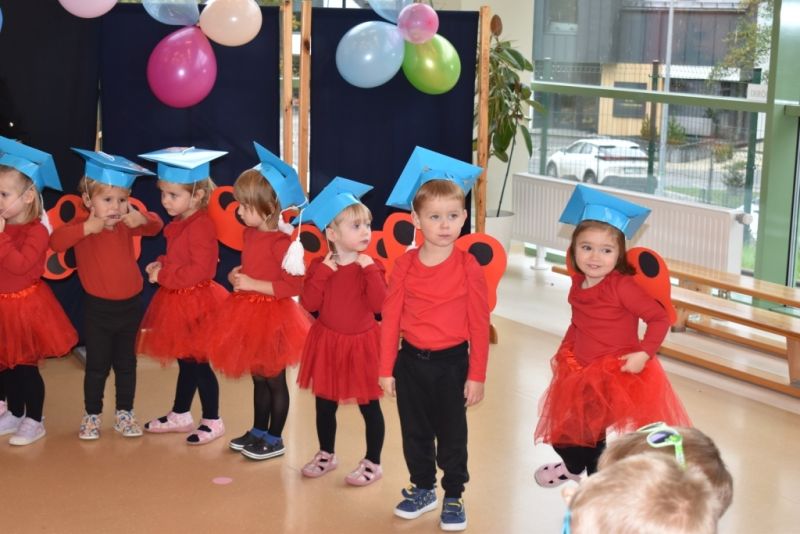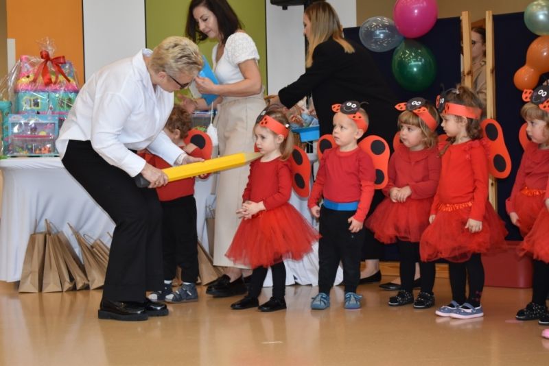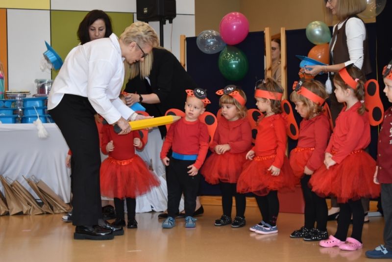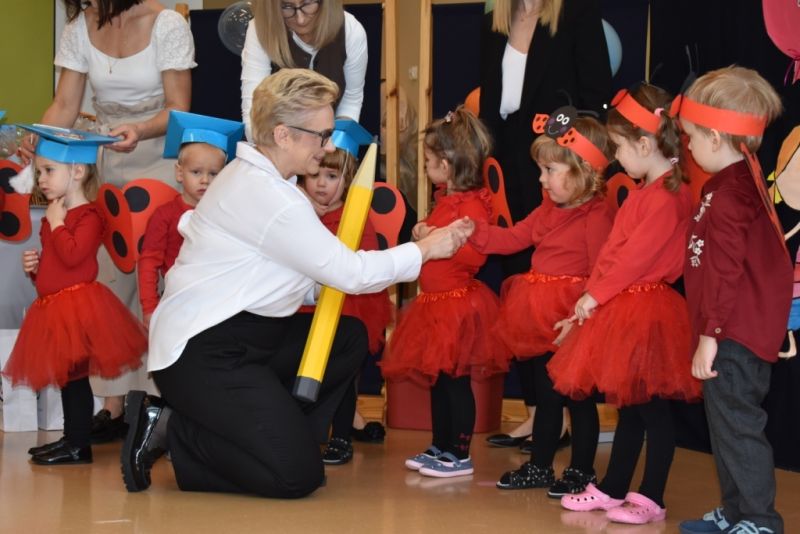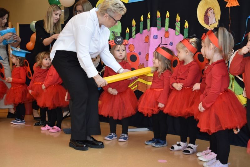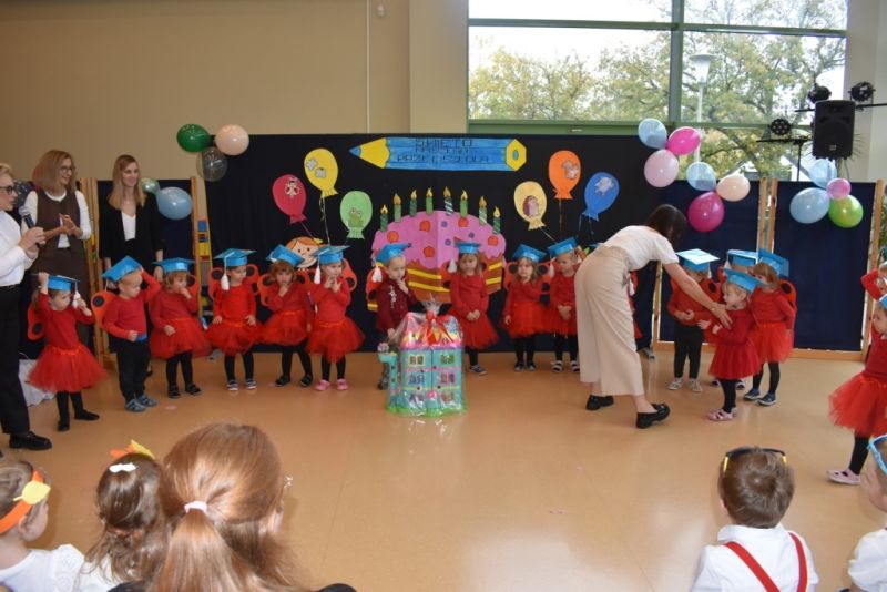 24 października świętowaliśmy 8 urodziny naszego przedszkola. Przybyli do nas wspaniali goście (sekretarz Gminy Wielka Nieszawka Pan Maciej Borowy, Przewodniczący Rady Gminy Pan Michał Dąbrowski, Wicedyrektor Szkoły Podstawowej im. Jana Pawła II w Małej Nieszawce Pani Jolanta Telak oraz Dyrektor Gminnej Biblioteki Publicznej z Małej Nieszawce Pani Maria Miłoszewicz) i rodzice najmłodszych przedszkolaków. Z tej okazji wszystkie grupy zaprezentowały swoje umiejętności wokalno-taneczno- muzyczne. Tego właśnie dnia odbyło się również pasowanie na przedszkolaka Biedronek. Maluszki zaprezentowały swoje umiejętności – dając tym samym dowód, jak dużo już potrafią. Po części artystycznej, dzieci obiecały: zgodnie bawić się w przedszkolu, przychodzić każdego dnia z uśmiechem, słuchać pani i pomagać kolegom, być dzielnym przedszkolakiem. Następnie pani dyrektor Barbara Mrugalska dokonała uroczystego pasowania każdego dziecka na przedszkolaka. Na pamiątkę tego ważnego wydarzenia każdy przedszkolak otrzymał dyplom pasowania, birety oraz wspaniałe słodki upominki. Były również torty dla wszystkich grup oraz prezenty dla każdej z grup. Wszystkim gościom towarzyszył na twarzy uśmiech, chociaż w niejednym oku pojawiły się łzy wzruszenia.