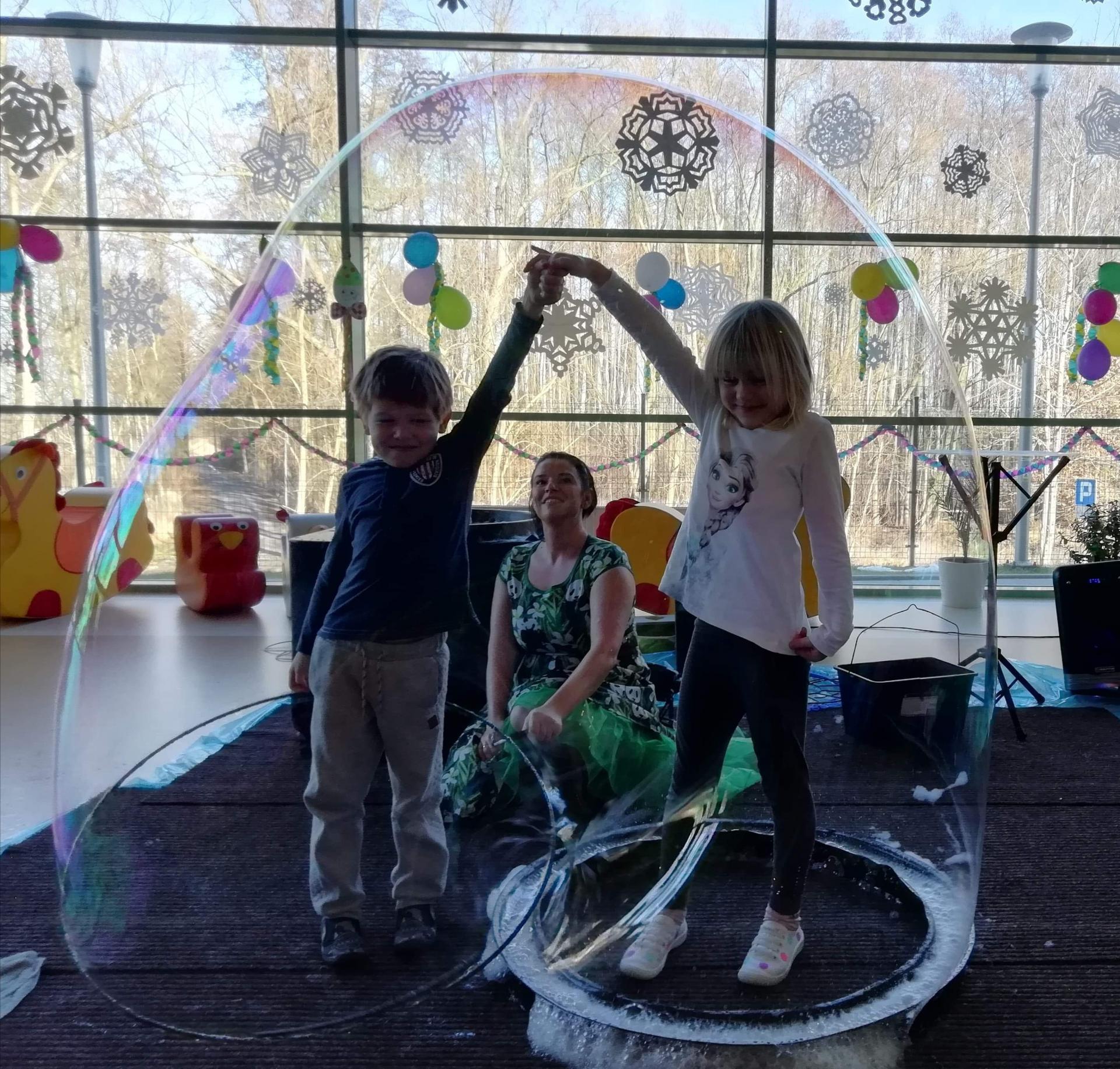 Dziś 12 lutego odbył się u nas w przedszkolu zaczarowany pokaz z bańkami mydlanymi w roli głównej. Pani Maja wyczarowała dla nas prawdziwe cuda, małe i duże a nawet z ogniem!