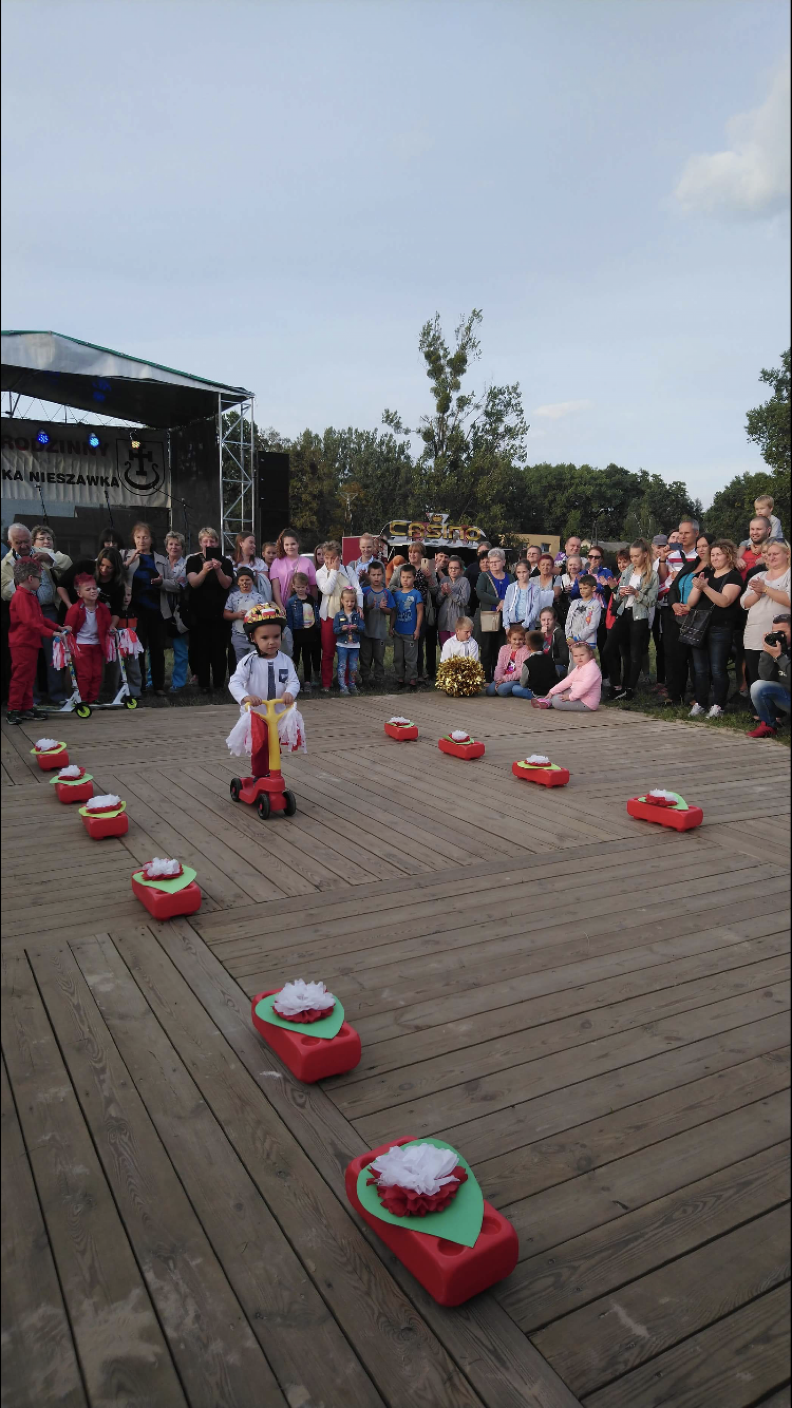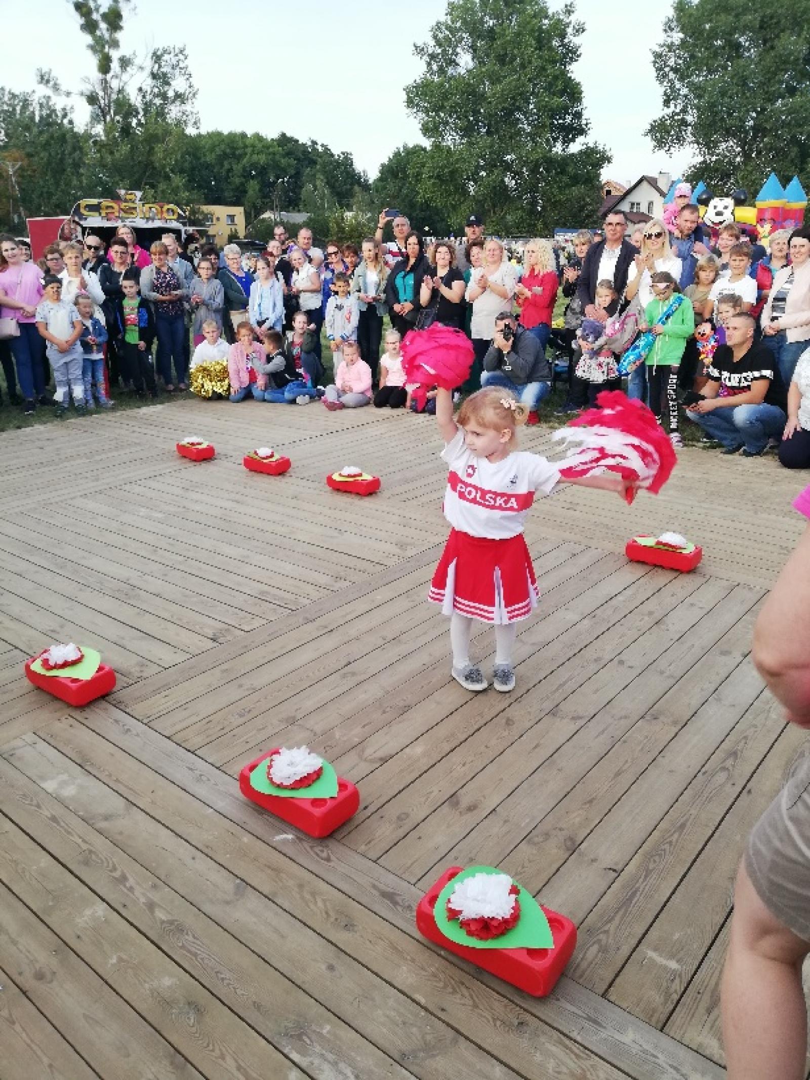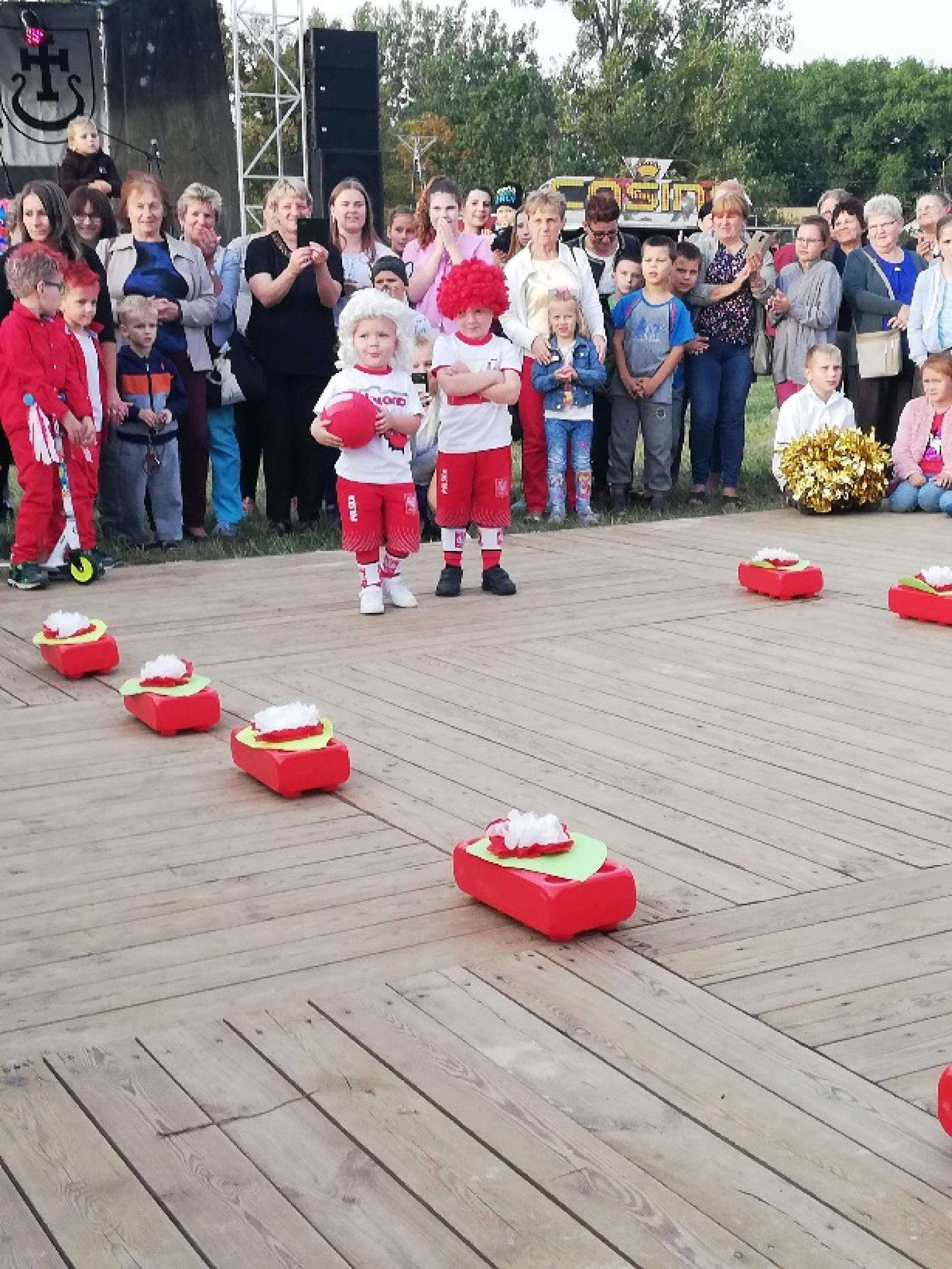 Dnia 15.09.2018r. na boisku przy Gminnym Ośrodku Kultury odbył się Festyn Dożynkowy, podczas którego dzieci z naszego przedszkola zaprezentowały pokaz mody w barwach partiotycznych. Dzieci z humorem przeszły po czerwonym dywanie uzyskując nóstwo gorących oklasków publiczności. Zabawa była wyśmienita.