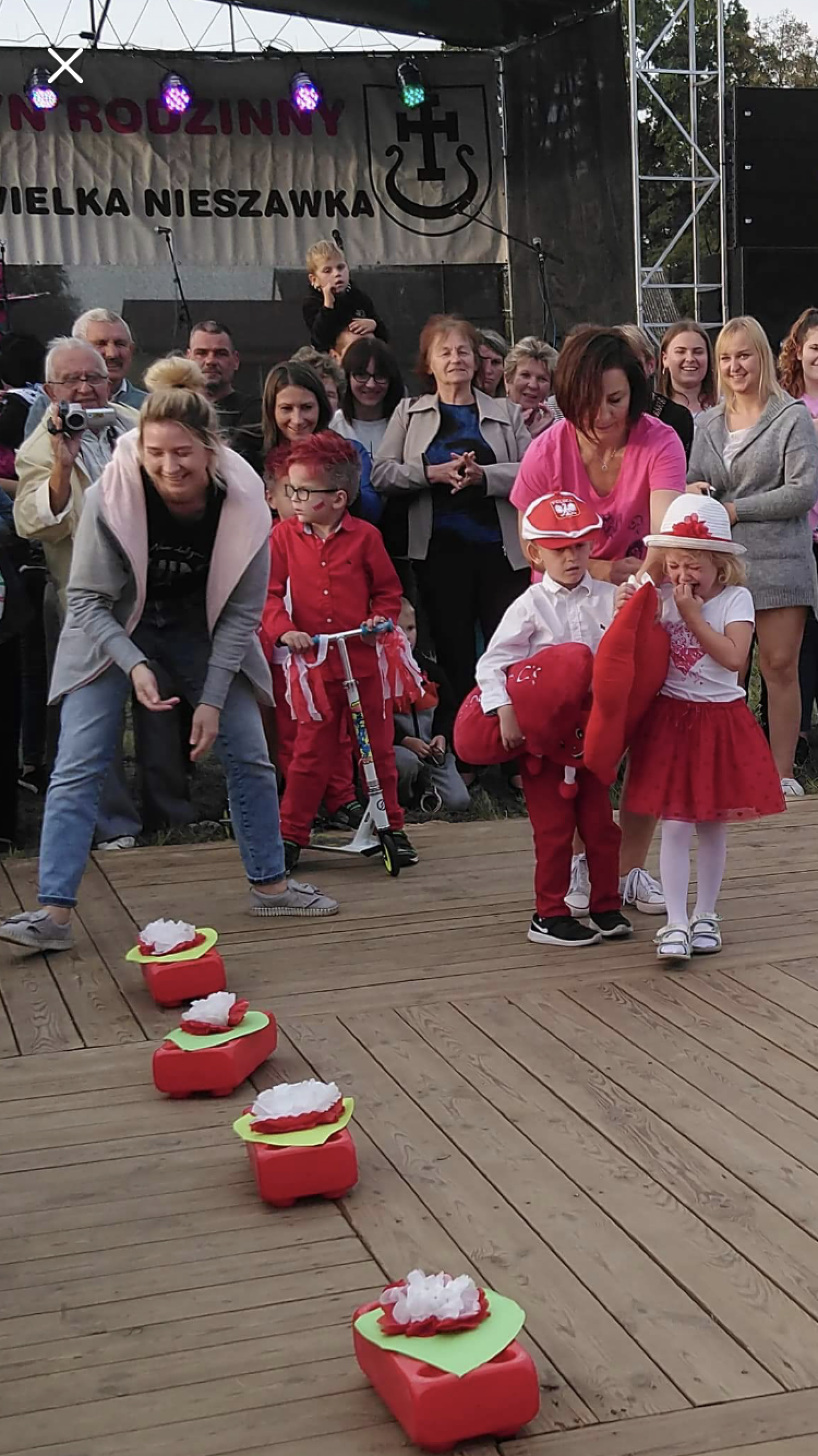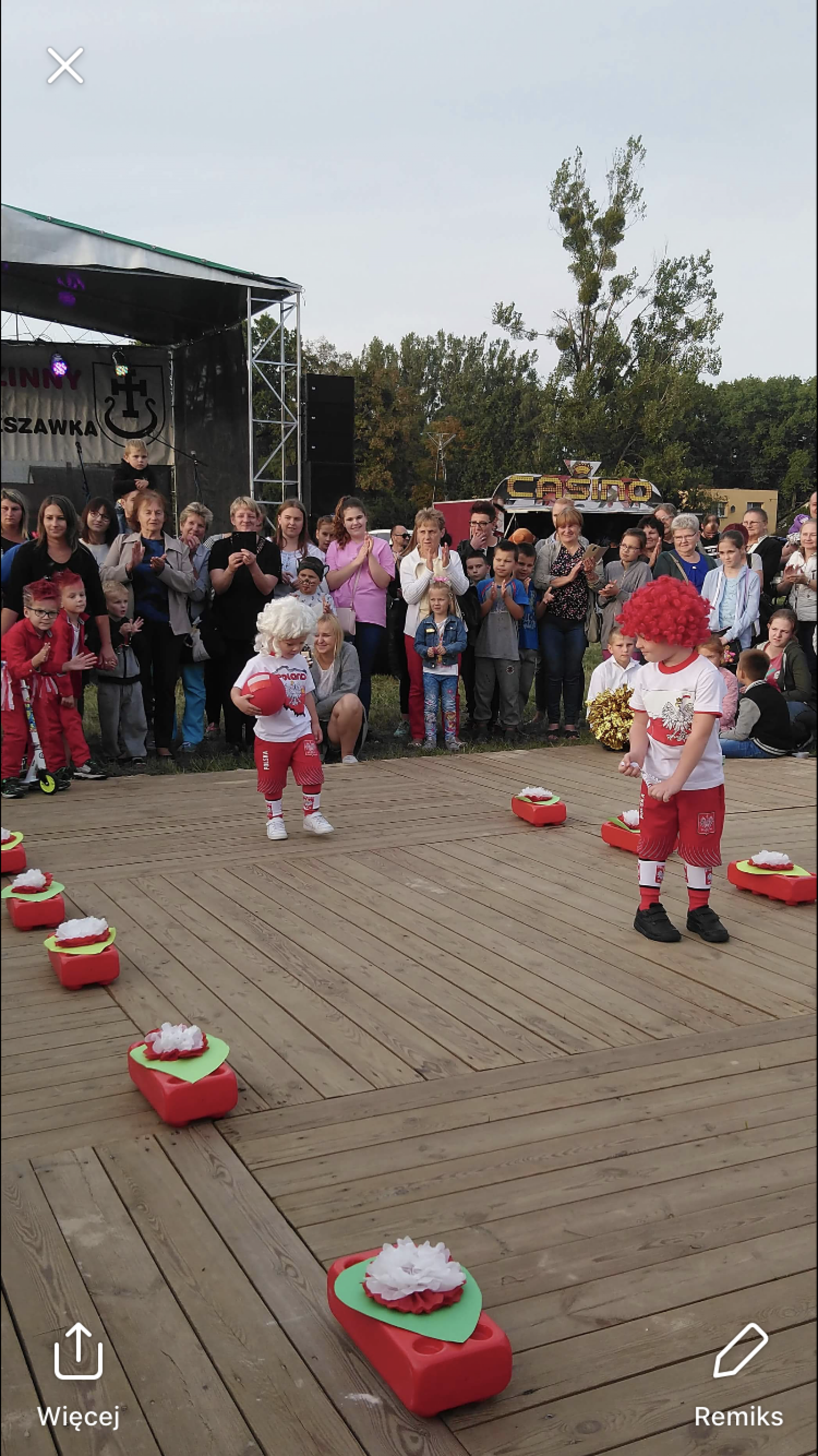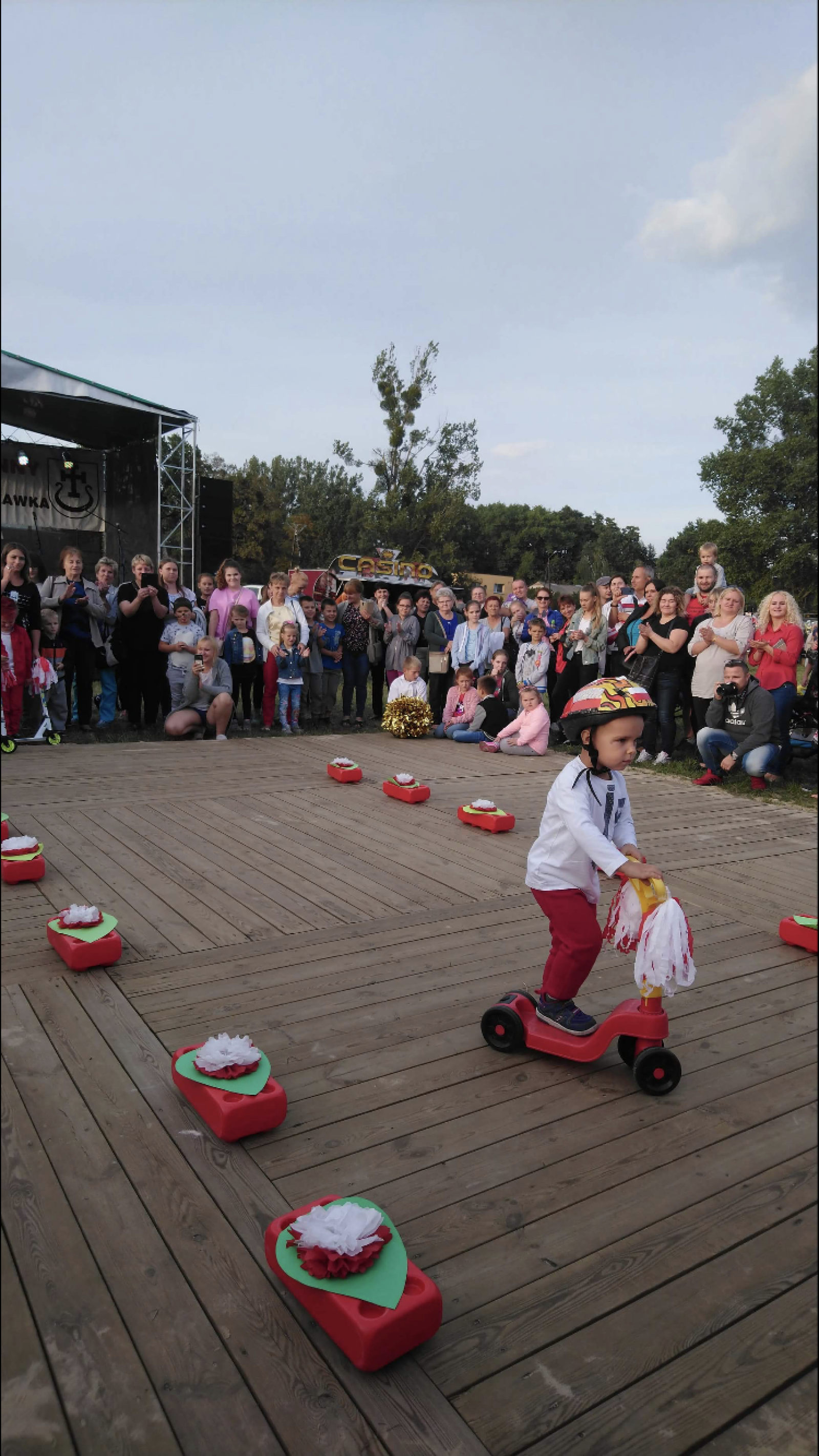 Dnia 15.09.2018r. na boisku przy Gminnym Ośrodku Kultury odbył się Festyn Dożynkowy, podczas którego dzieci z naszego przedszkola zaprezentowały pokaz mody w barwach partiotycznych. Dzieci z humorem przeszły po czerwonym dywanie uzyskując nóstwo gorących oklasków publiczności. Zabawa była wyśmienita.