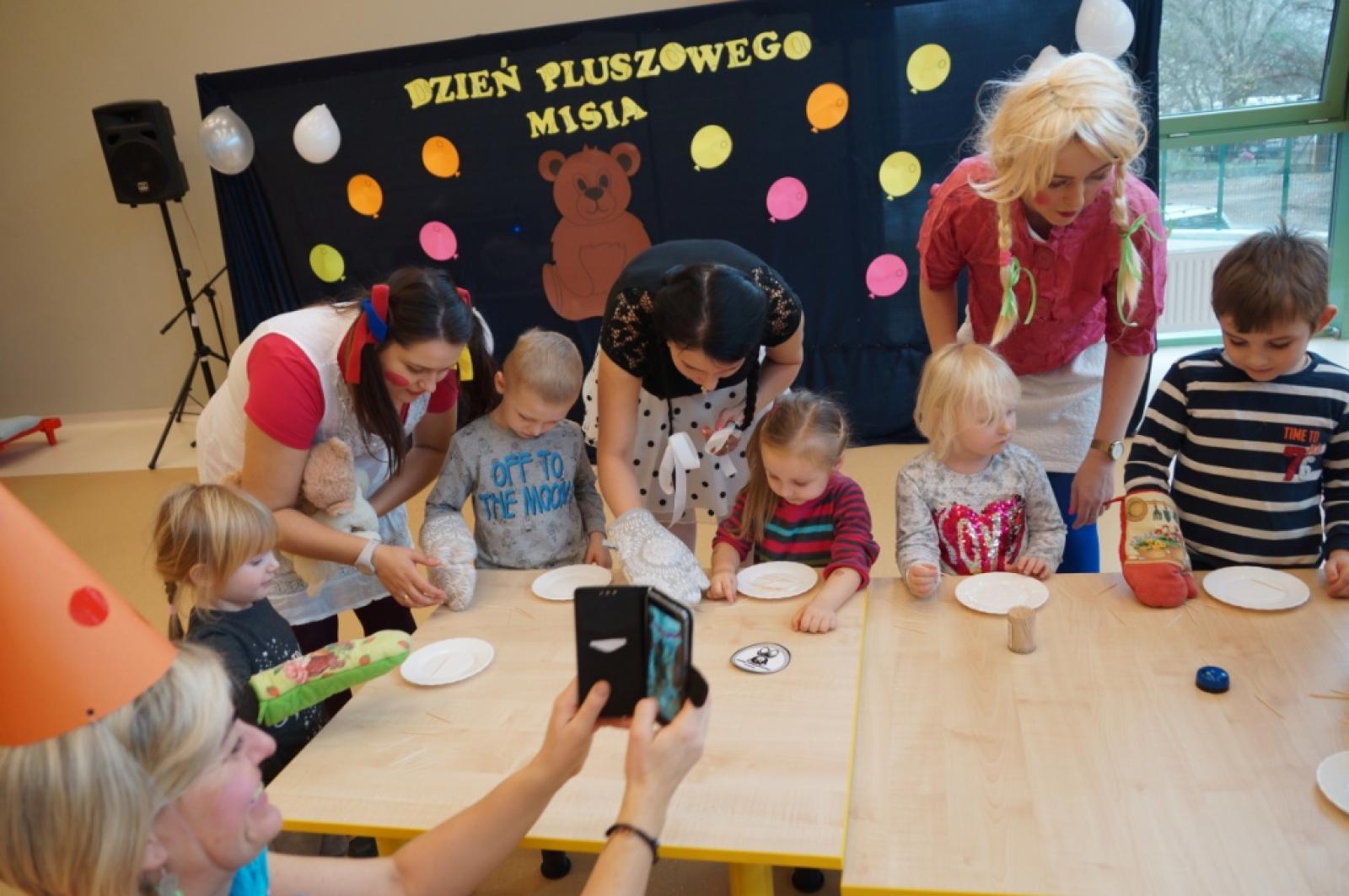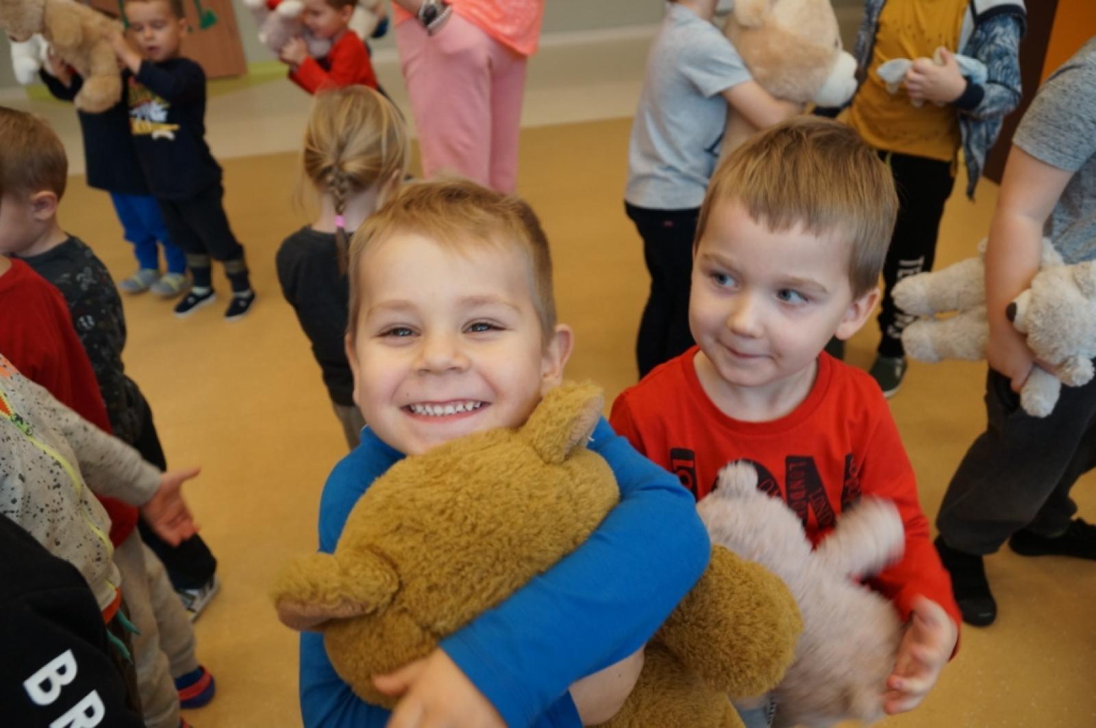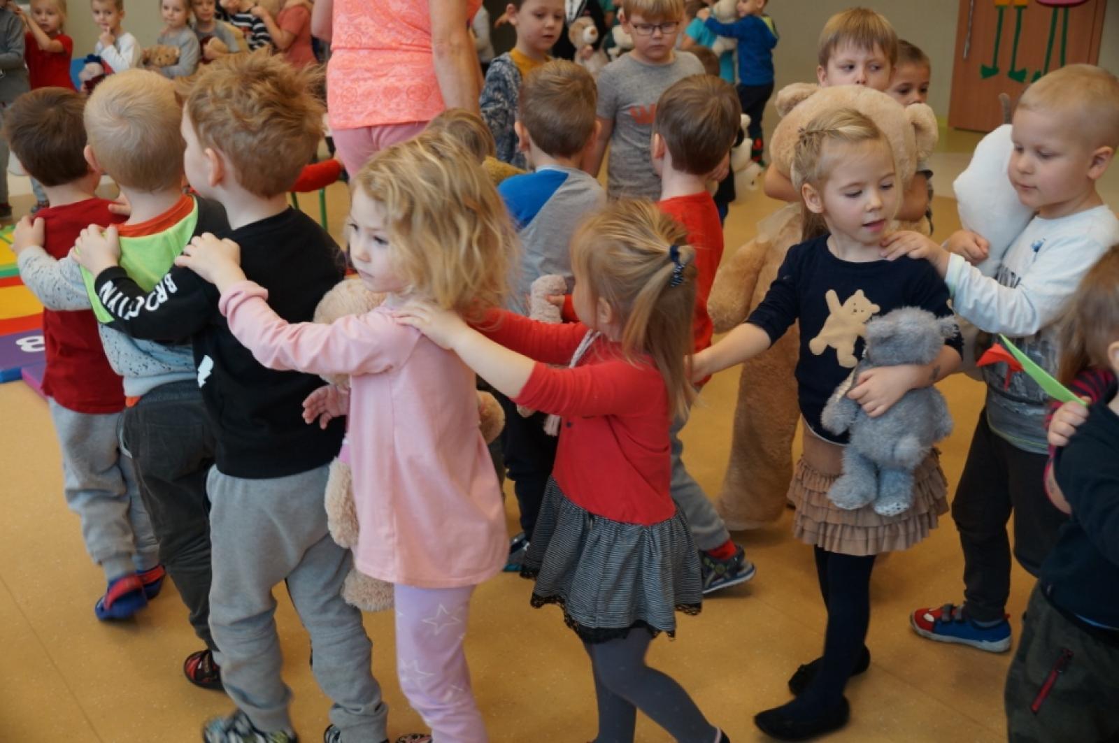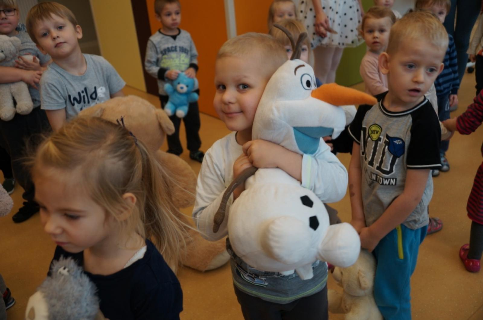 Dnia 26.11.2018r. świętowaliśmy w przedszkolu Dzień Pluszowego Misia. Każdy z nas przyniósł ze sobą tego dnia swojego pluszowego przyjaciela, z którym uczestniczył w zabawach integracyjnych zorganizowanych w auli przedszkola. Nasz Panie nauczycielki przygotowały dla nas ciekawe przedstawienie teatralne o Misiu Uszatku oraz balu zabawek. Zlizywaliśmy pyszny miodek z talerzyków bez pomocy rąk oraz zbieraliśmy drobne wykałaczki grubymi rękawicami kuchennymi. Za zakończenie wszystkie przyniesione przez nas misie wzięły udział w balu. Zabawa była wyśmienita.