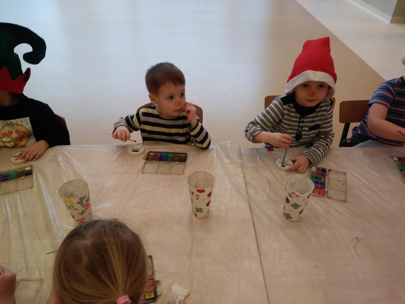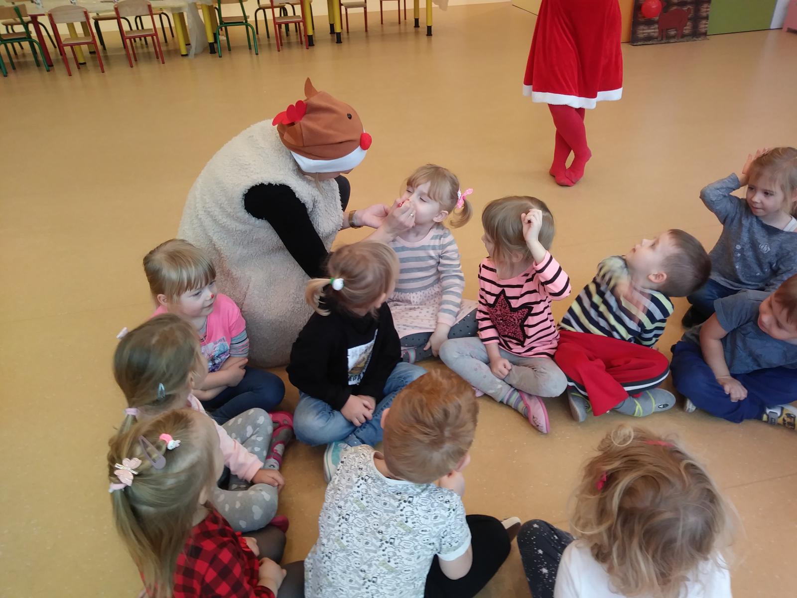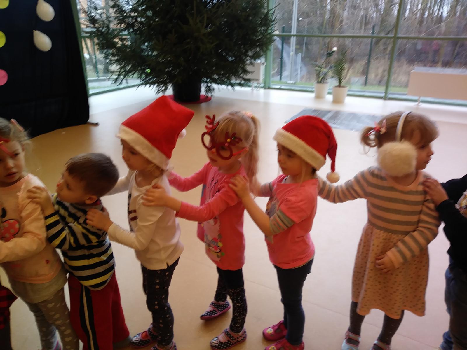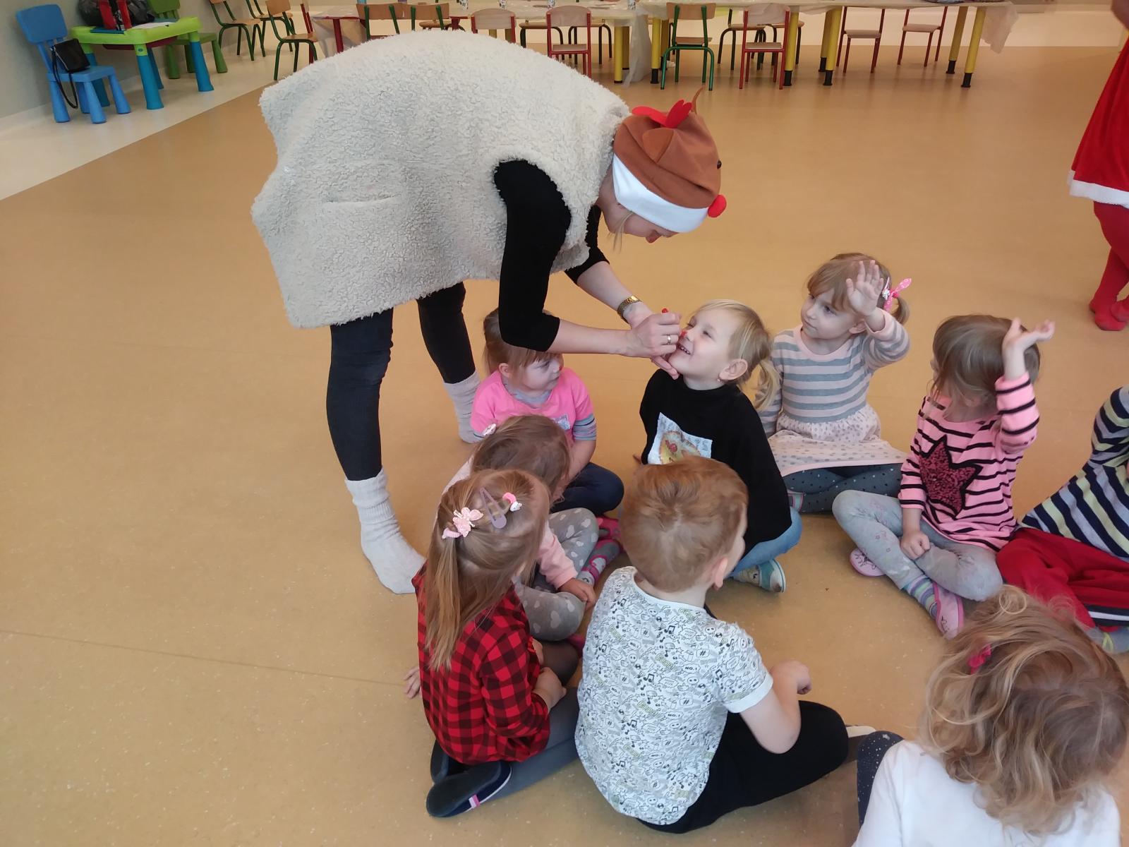 Dnia 04.12.2018r. mieliśmy okazję już po raz drugi uczestniczyć w zajęciach sensoplastycznych, które łączą ruch, muzykę oraz zajęcia plastyczne. Tym razem zajęcia te miały charakter świąteczny...wszyscy przebraliśmy się za renifery, Mikołaje oraz elfy i wspólnie, w rytmie muzyki uczestniczyliśmy w wielu ciekawych zabawach plastycznych.