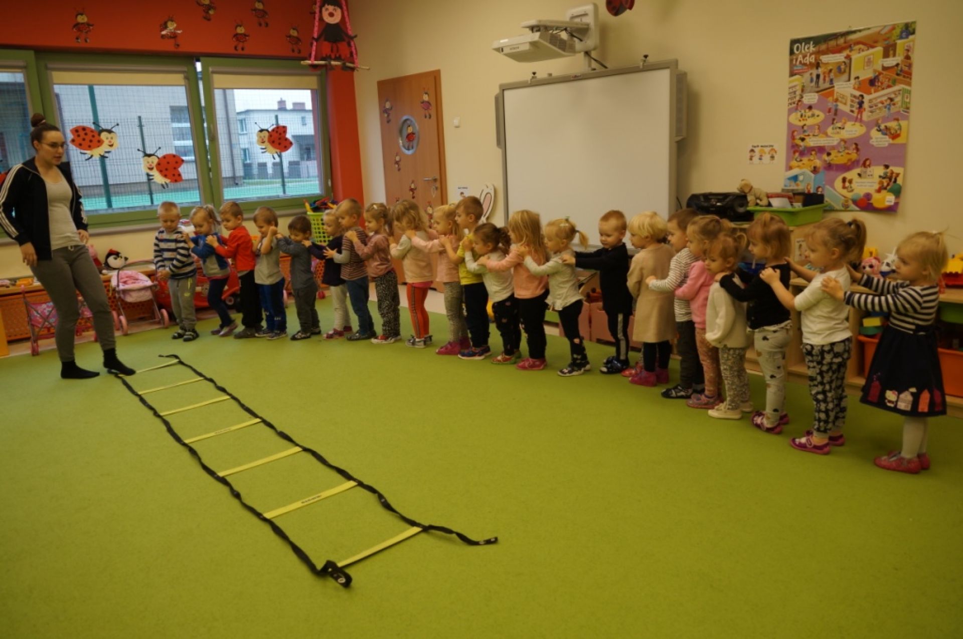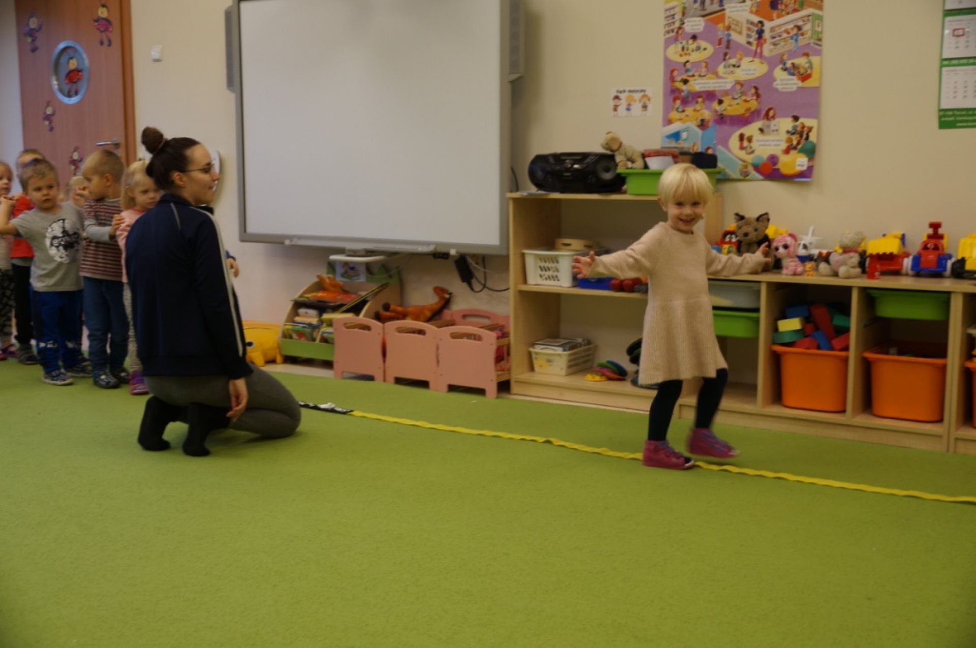 Dzisiaj w naszej grupie odbyły się zajęcia sportowe z trenerem, które bardzo nam się podobały. Wszyscy aktywnie w nich uczestniczyli.