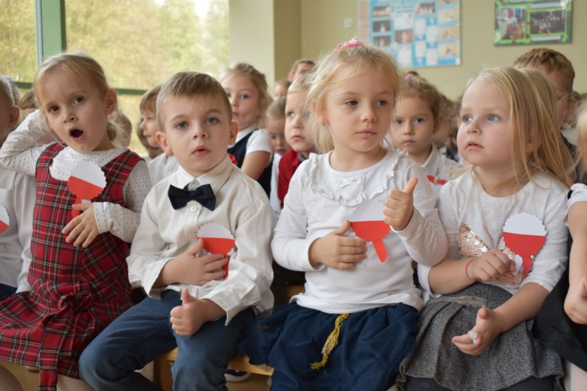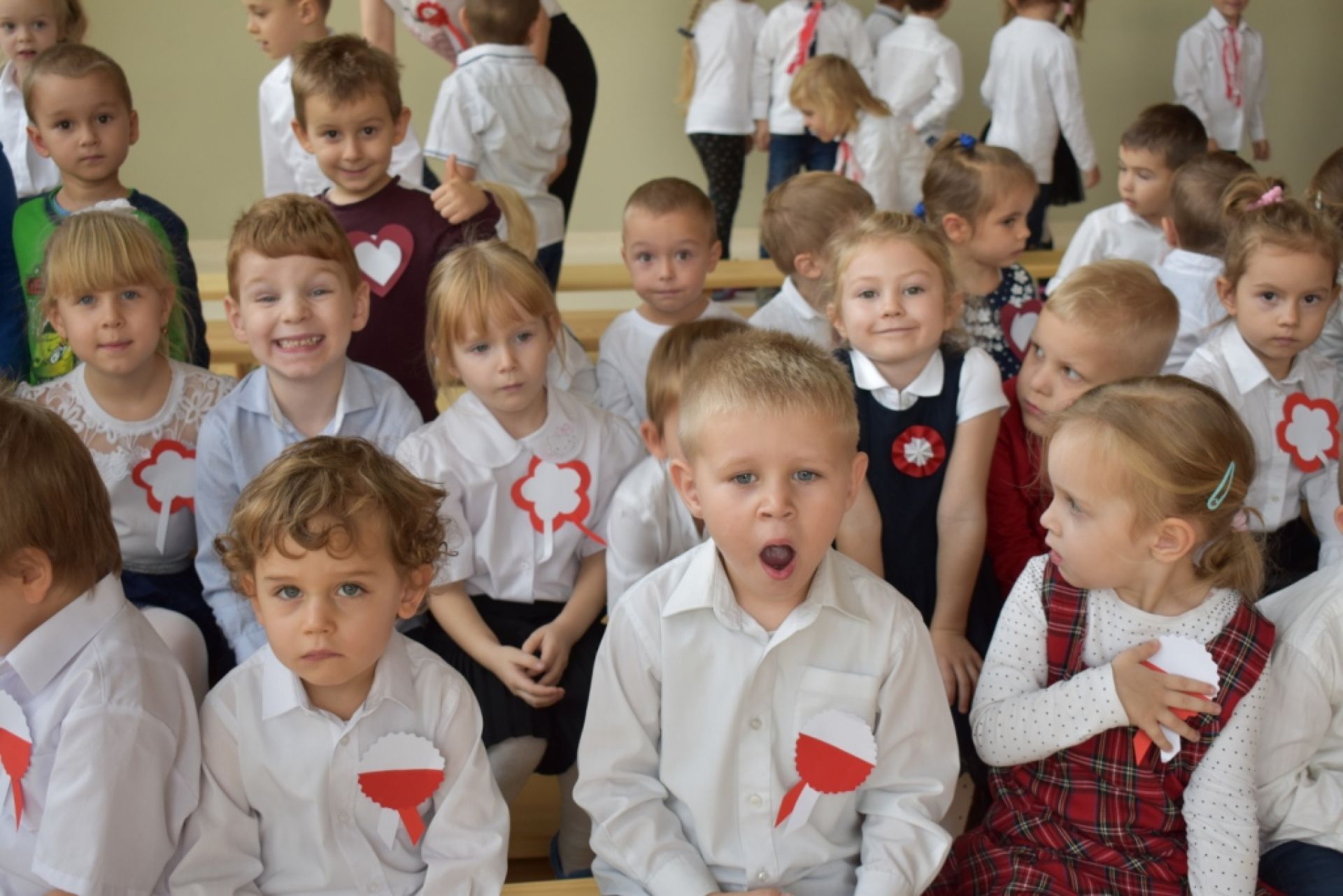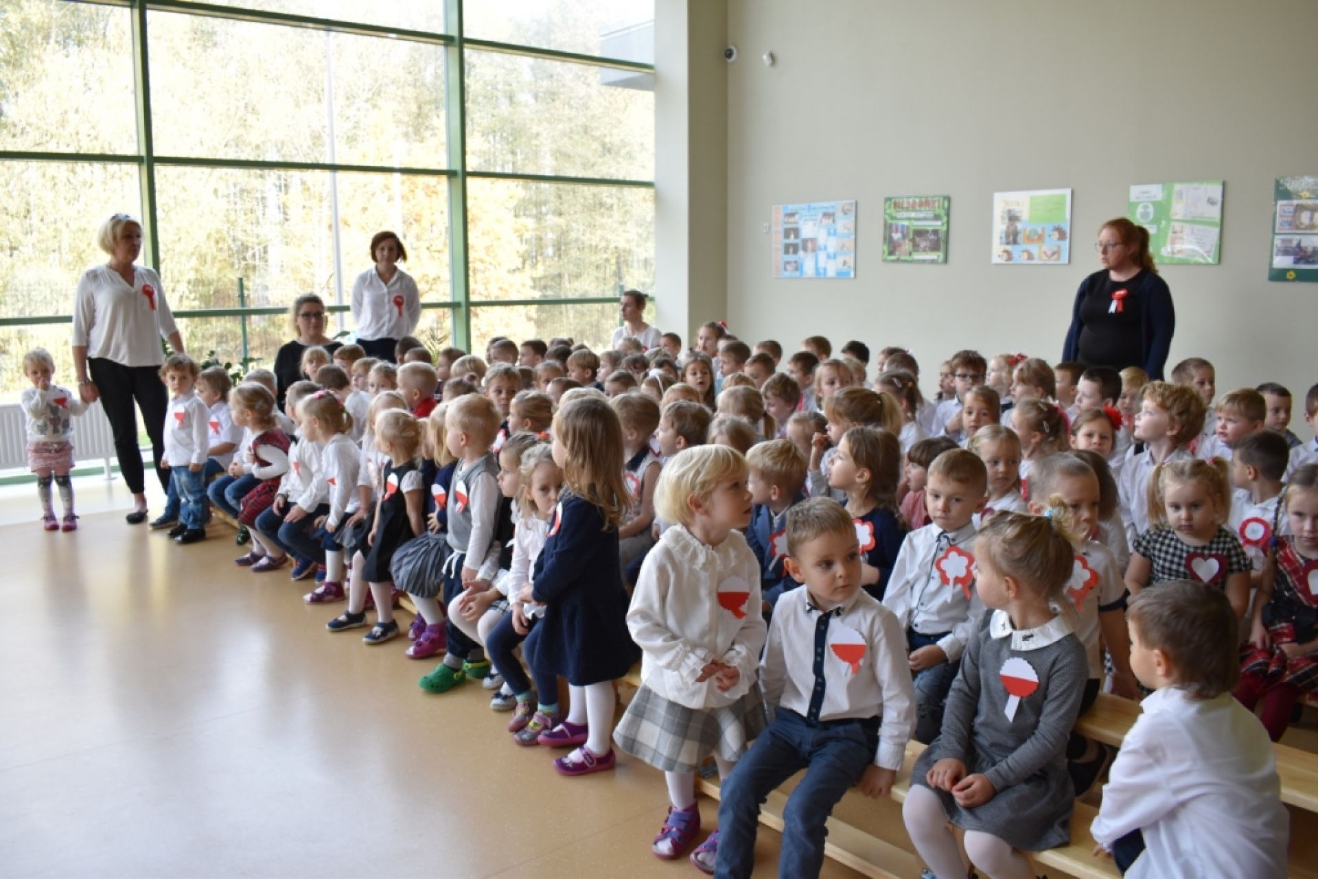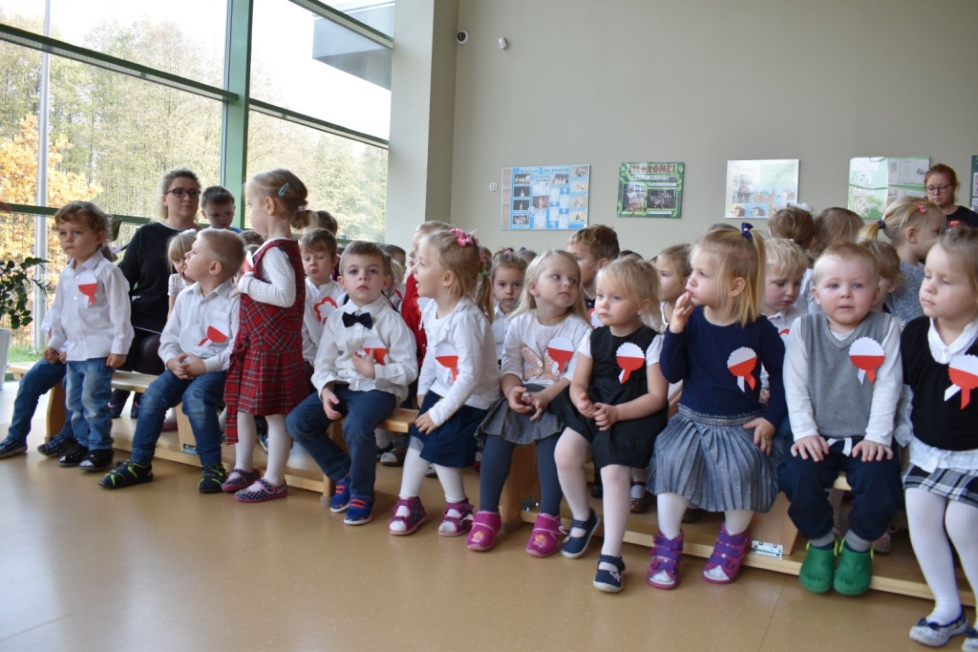 Dzisiaj w naszym przedszkolu obchodziliśmy Święto Niepodległości. O godzinie 11:11 odśpiewaliśmy wspólnie Hymn Polski. Póżniej obejrzeliśmy program artystyczny przygotowany przez "Delfinki". Następnie wysłuchaliśmy audycji muzycznej "Polska moja Ojczyzna".