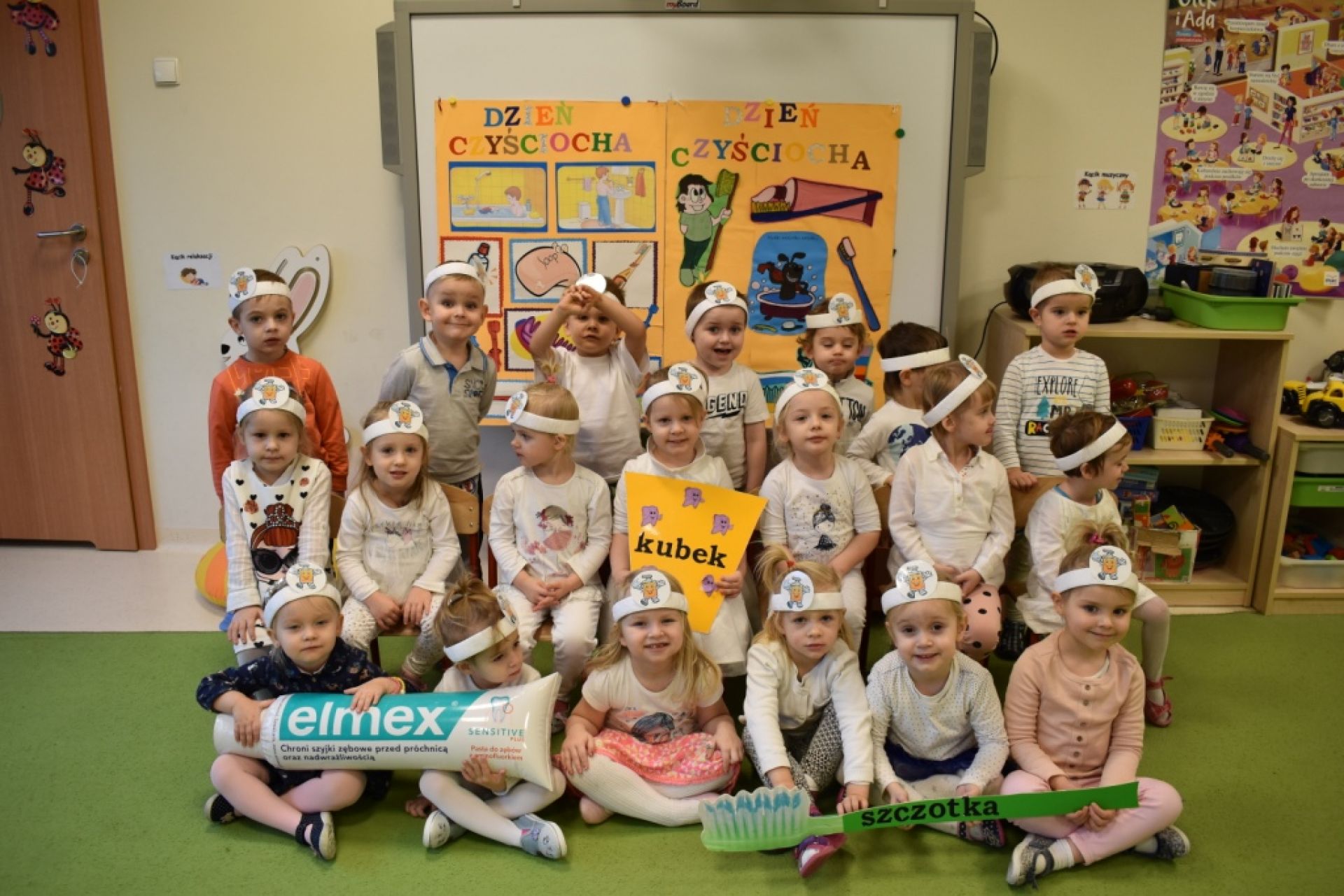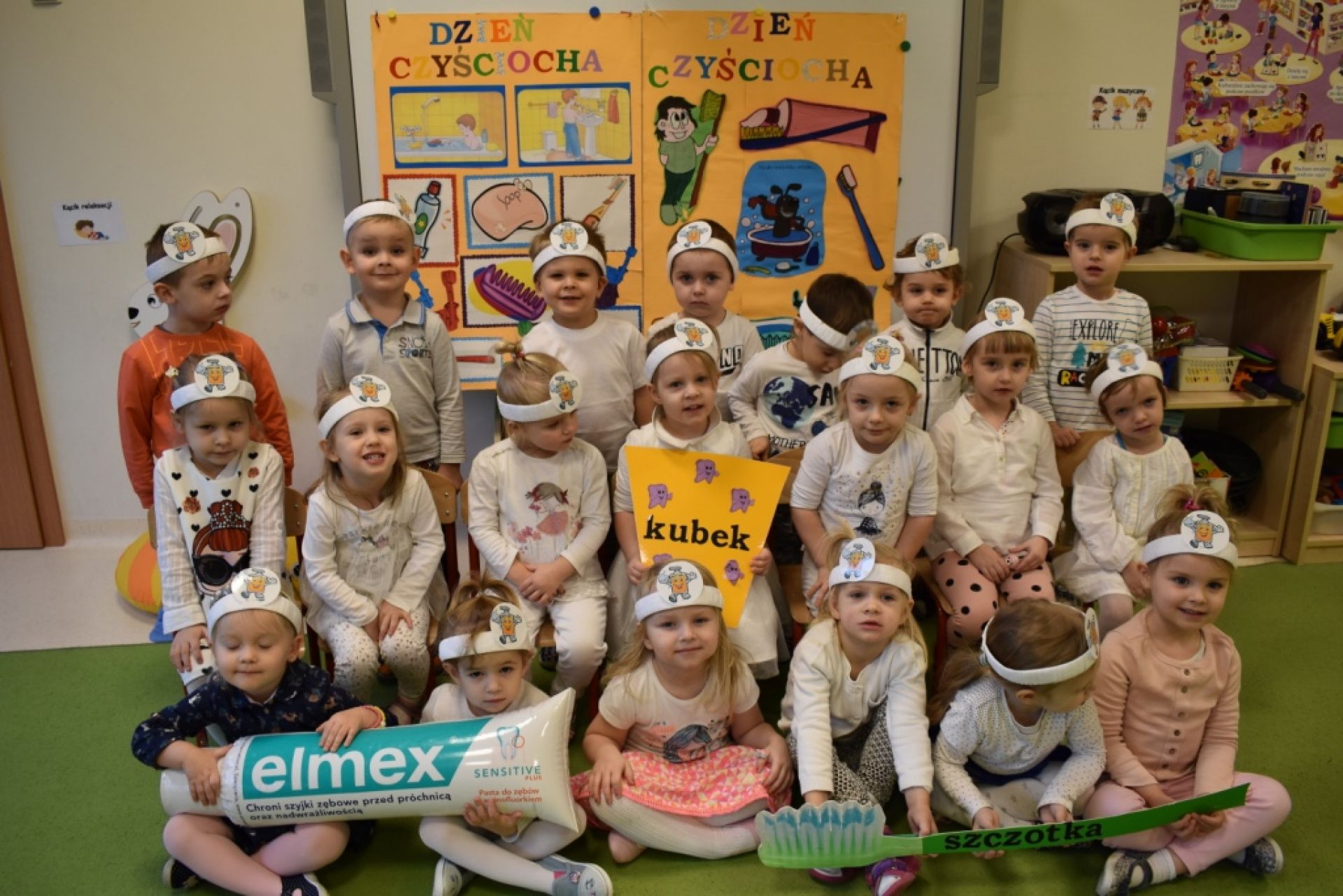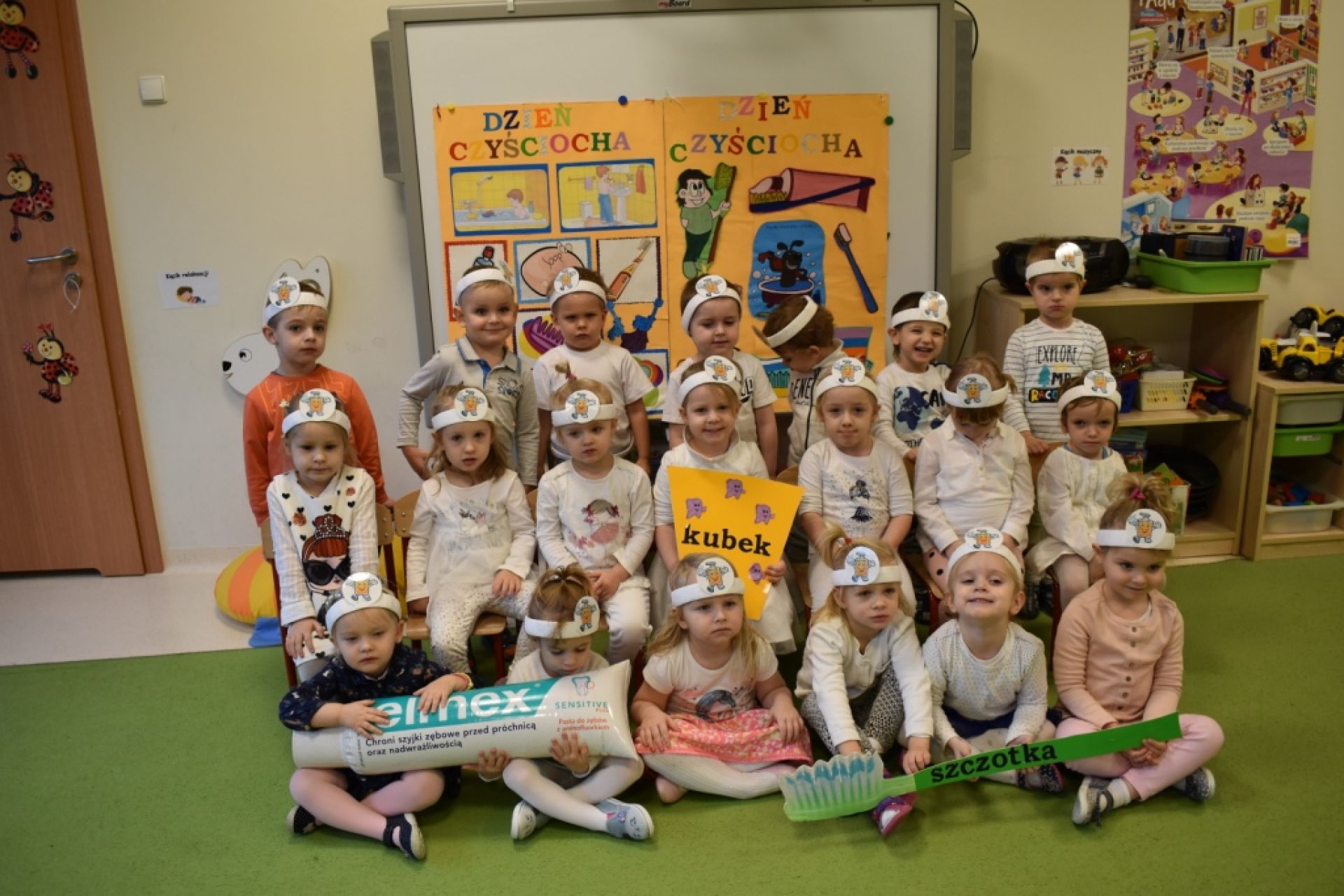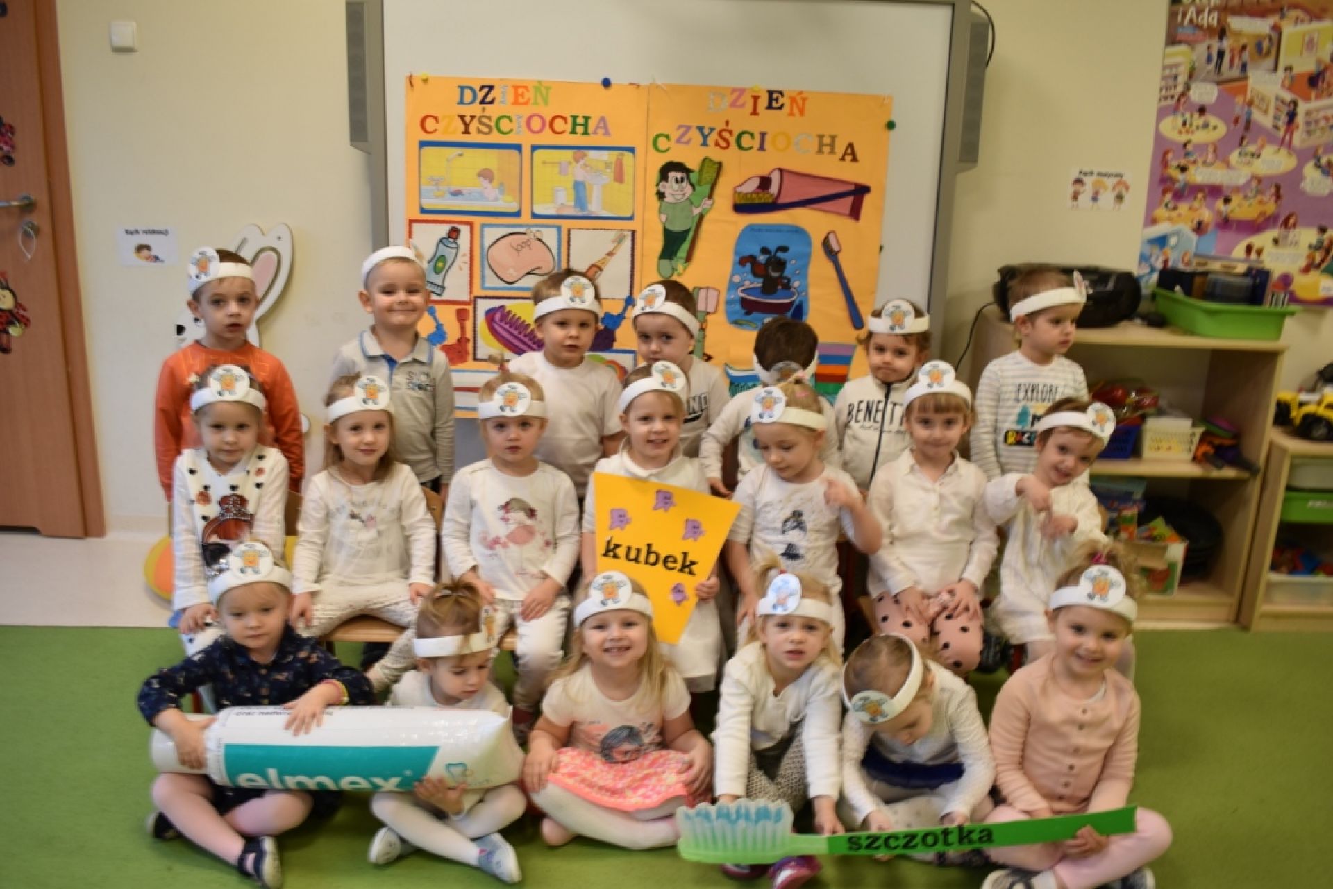 Dzisiaj w naszej grupie świętowaliśmy Dzień Czyściocha. Dzieci słuchały i śpiewały piosenki o czystości, odgadywały zagadki oraz słuchały opowiadań nauczyciela. Na koniec obejrzały audycję o czystości "Domisie".