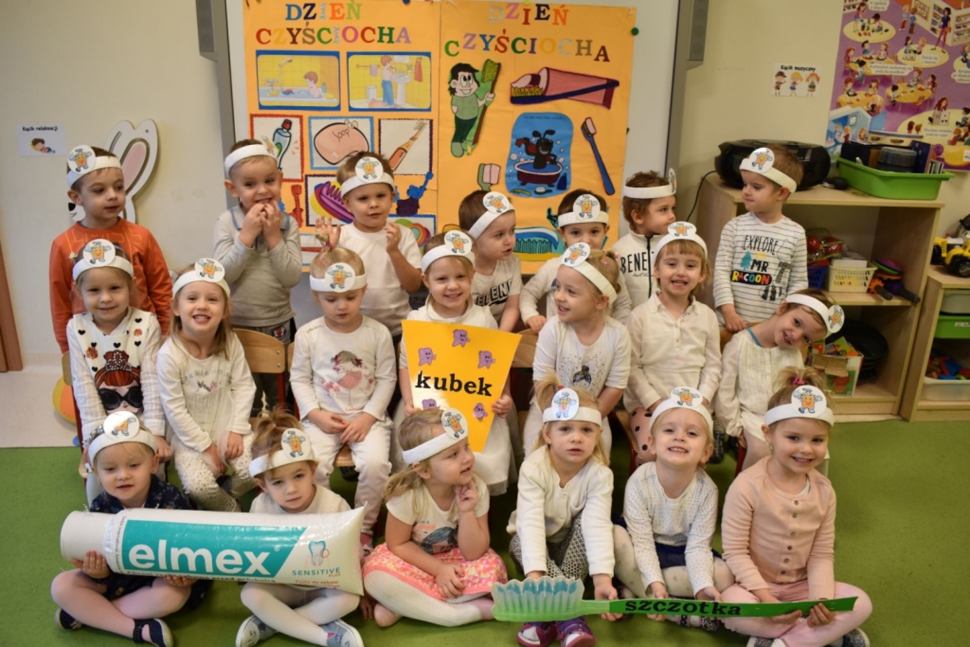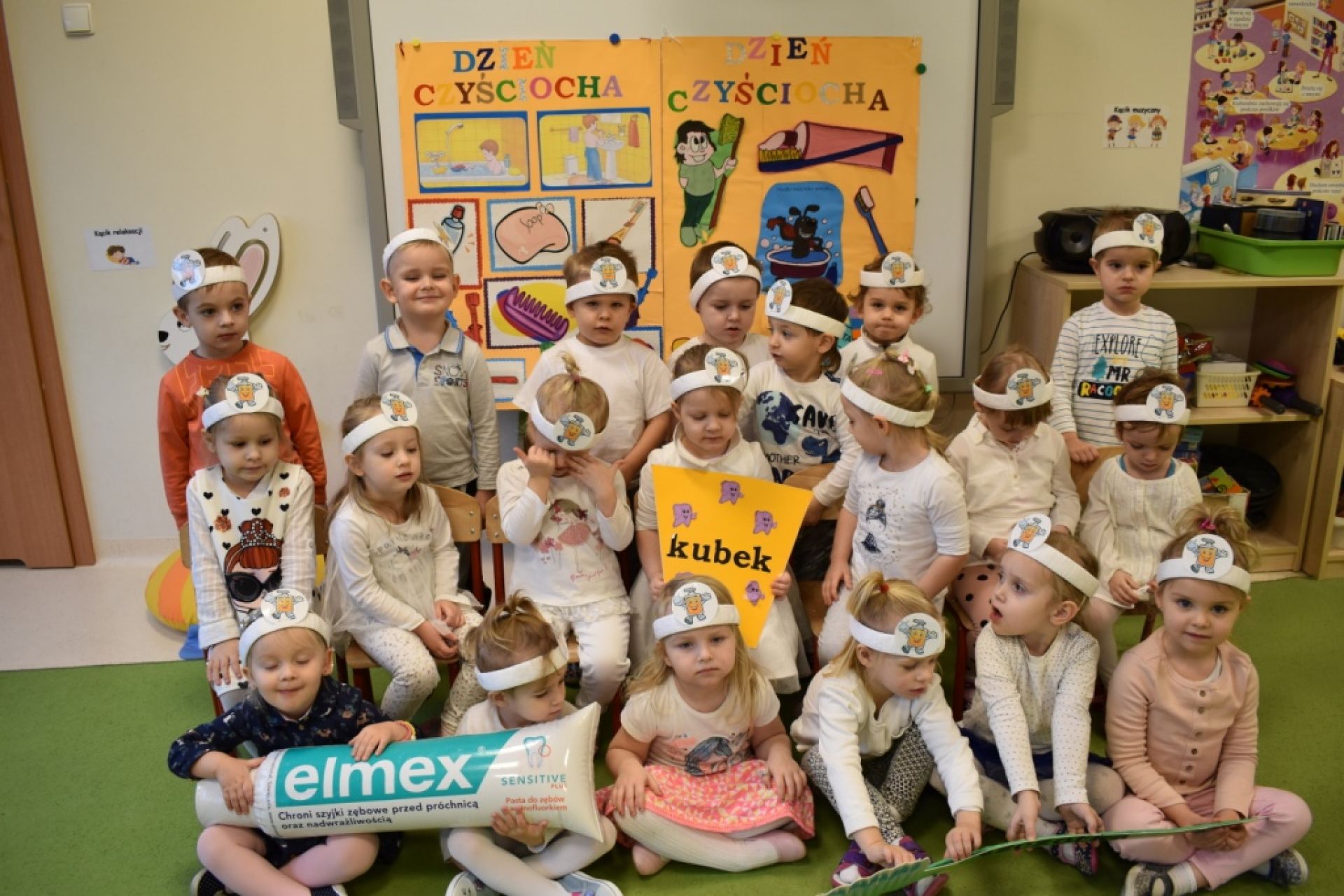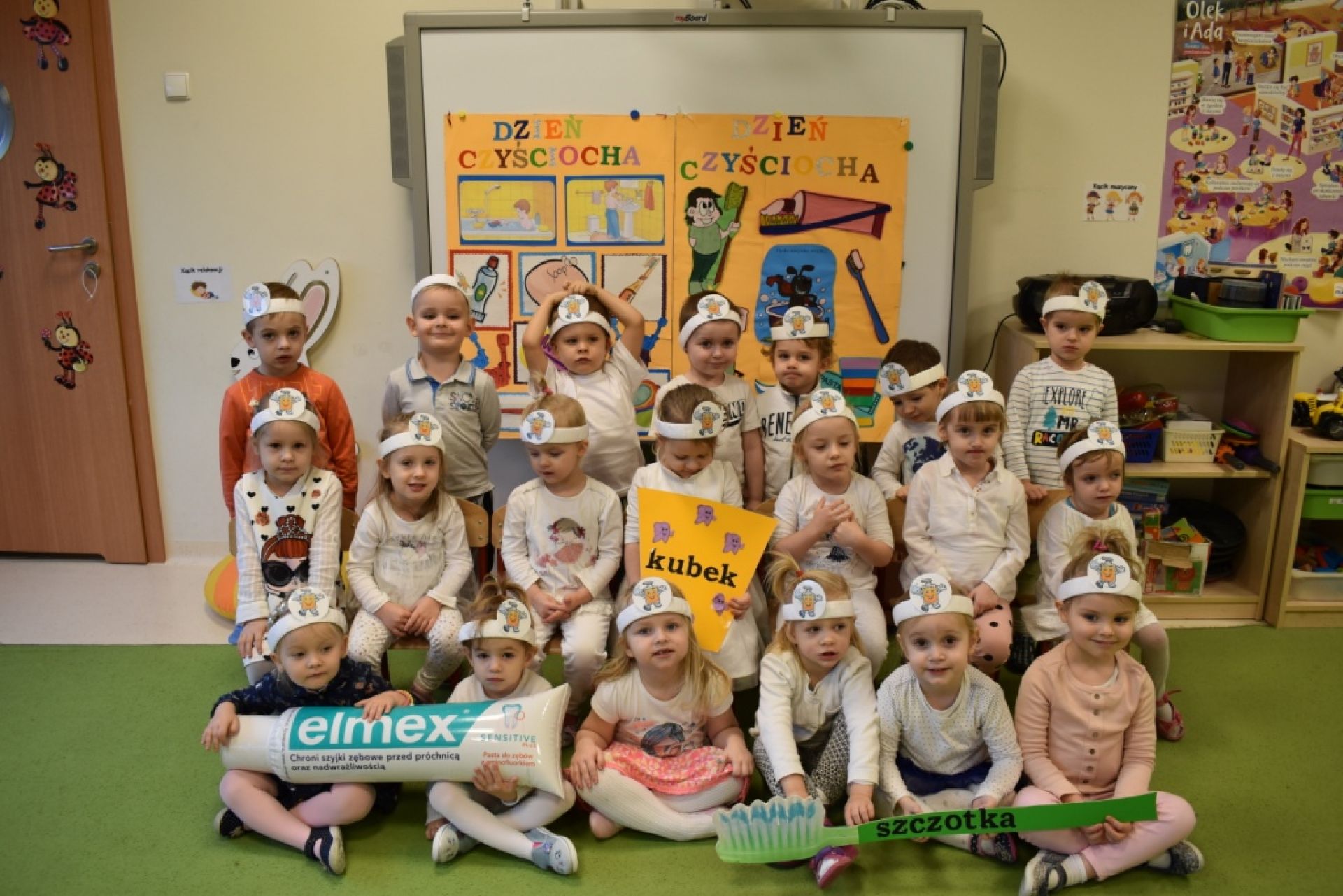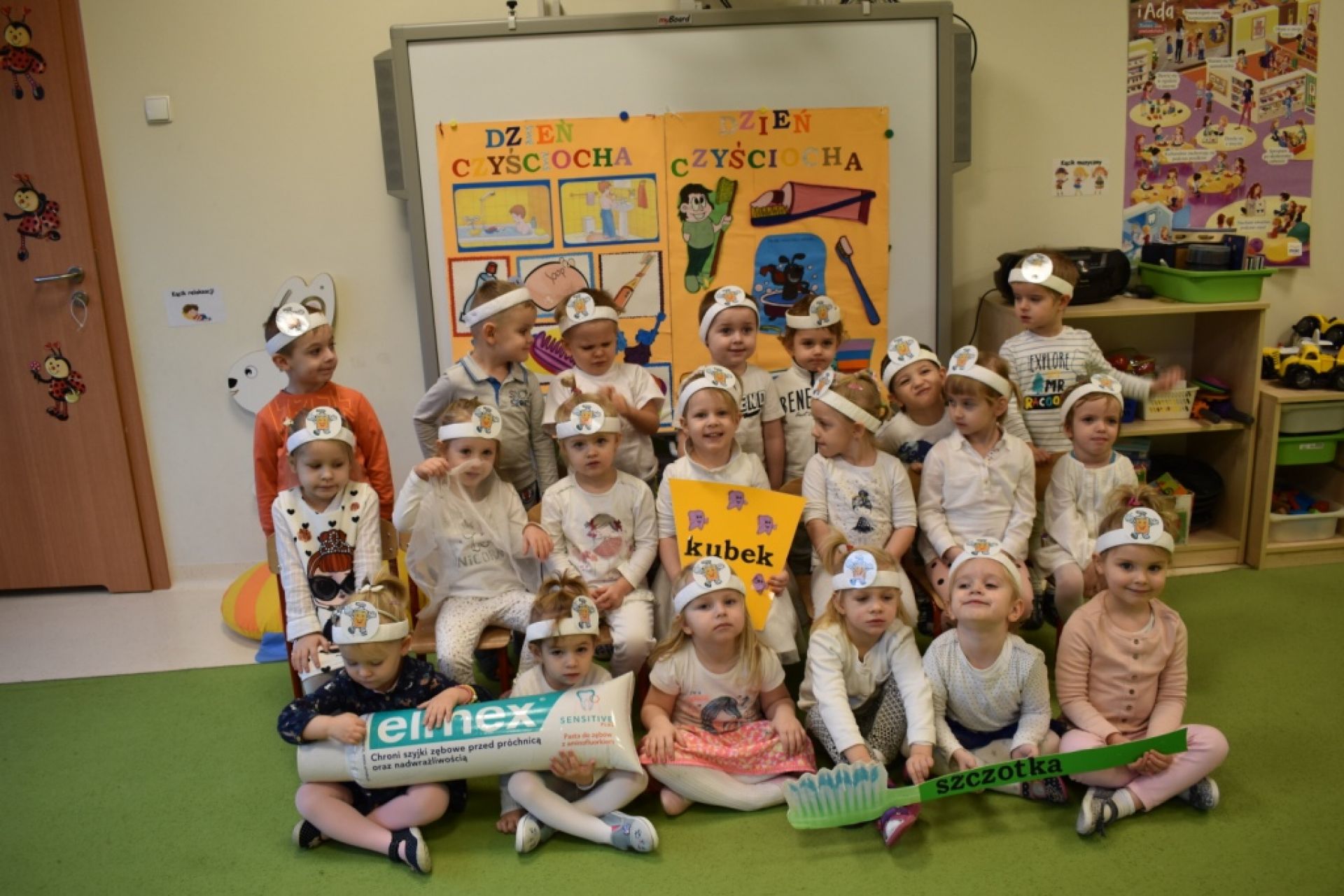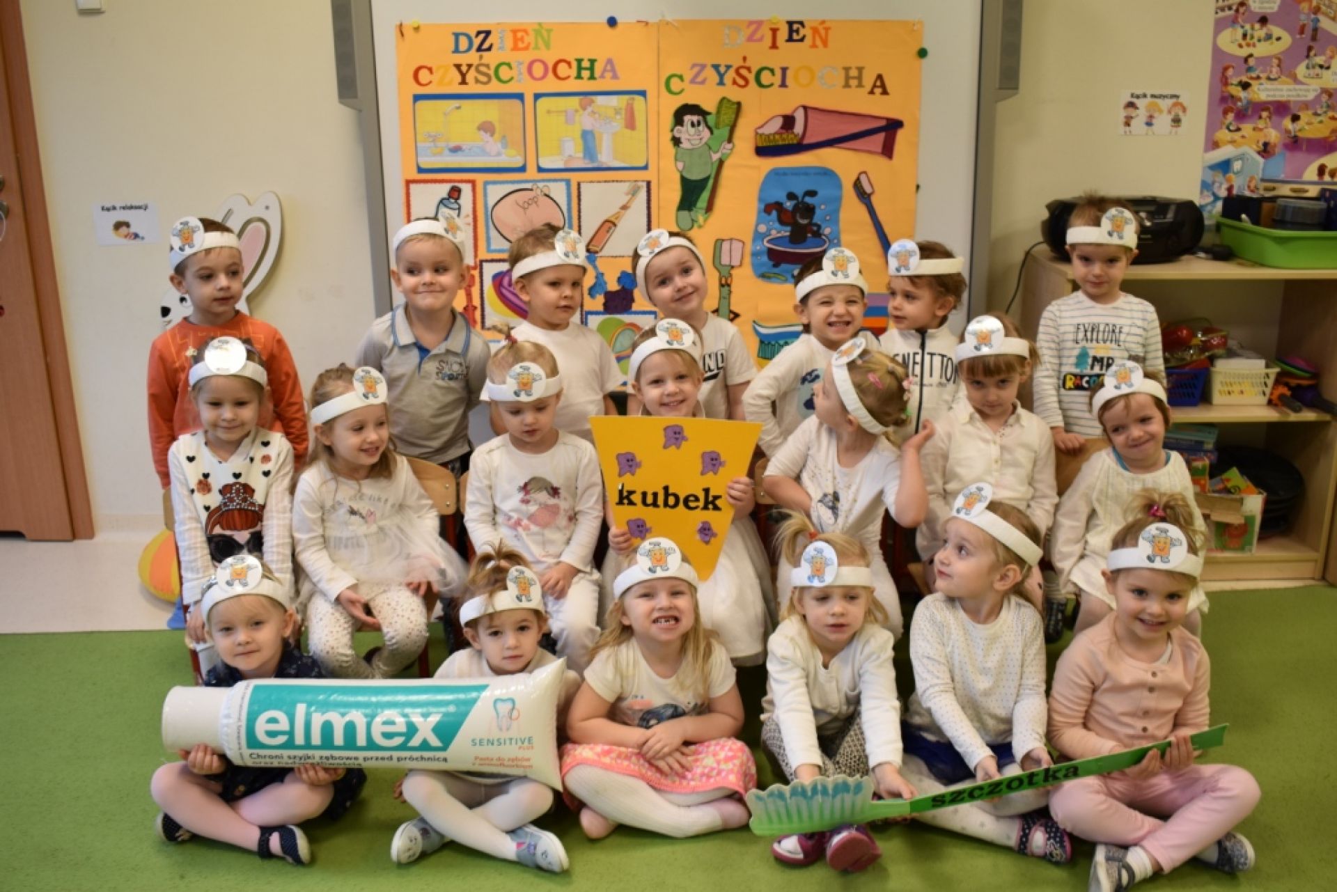 Dzisiaj w naszej grupie świętowaliśmy Dzień Czyściocha. Dzieci słuchały i śpiewały piosenki o czystości, odgadywały zagadki oraz słuchały opowiadań nauczyciela. Na koniec obejrzały audycję o czystości "Domisie".
