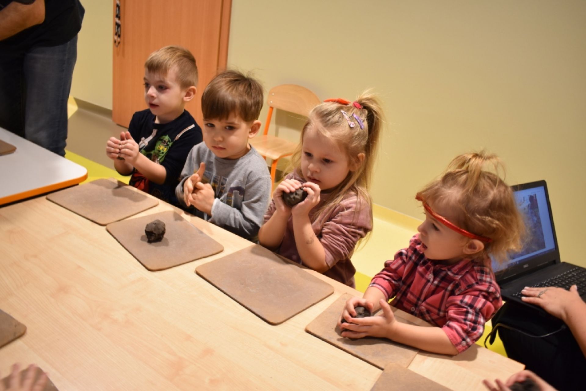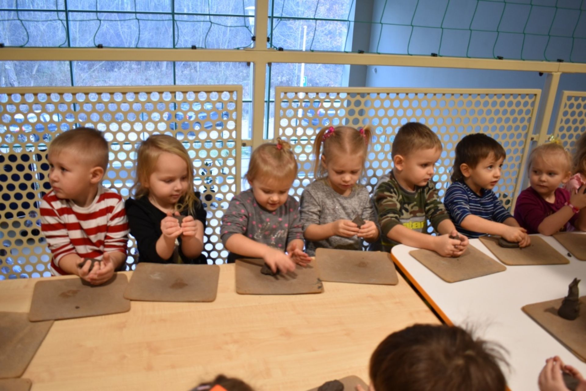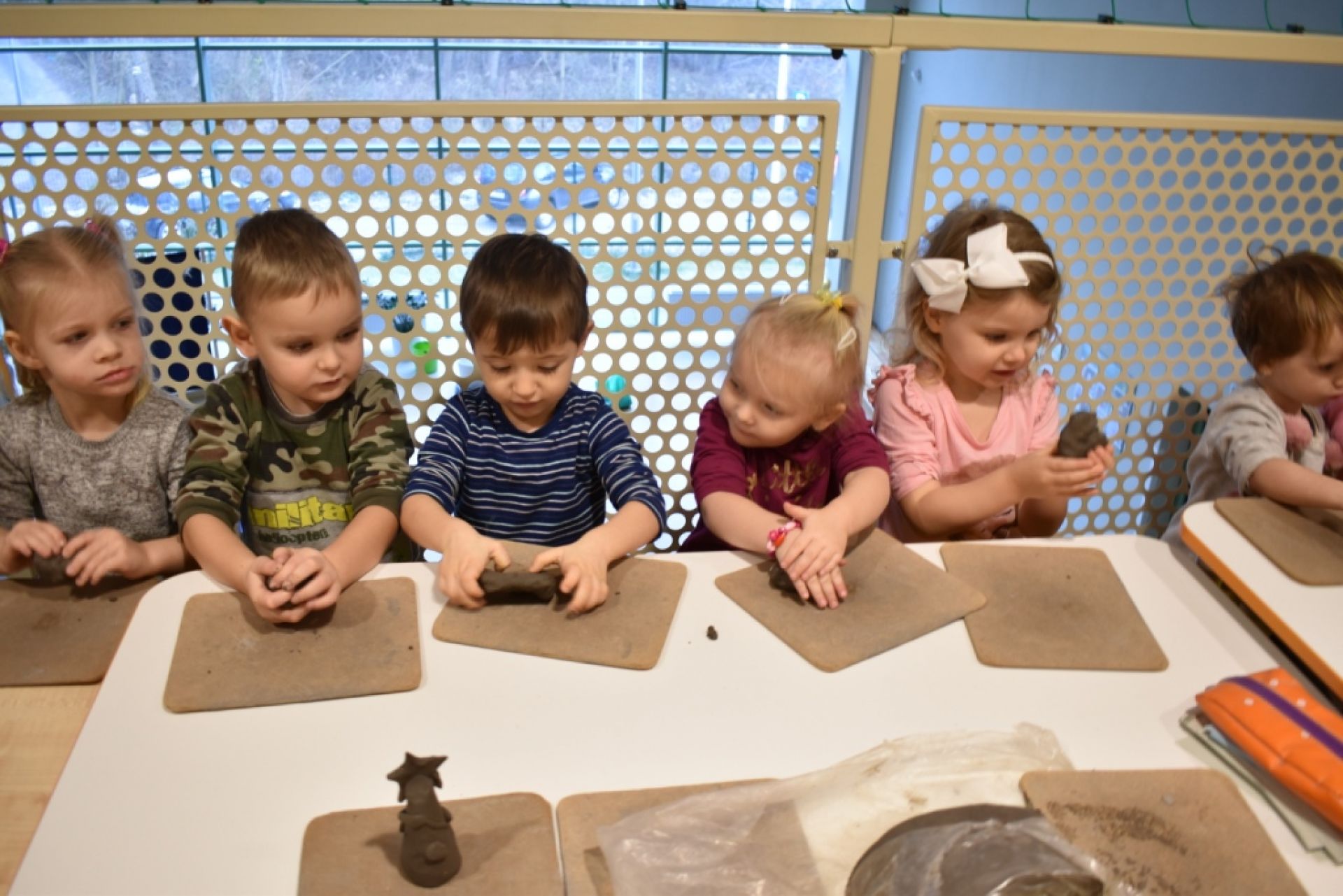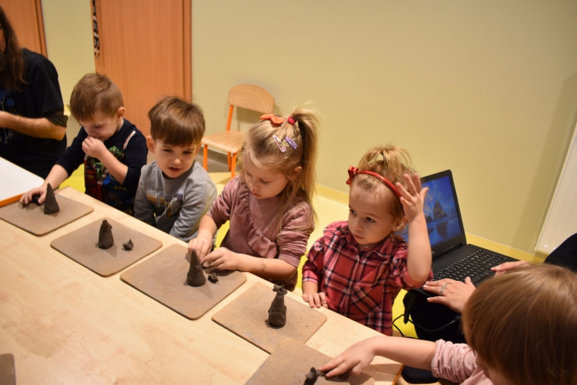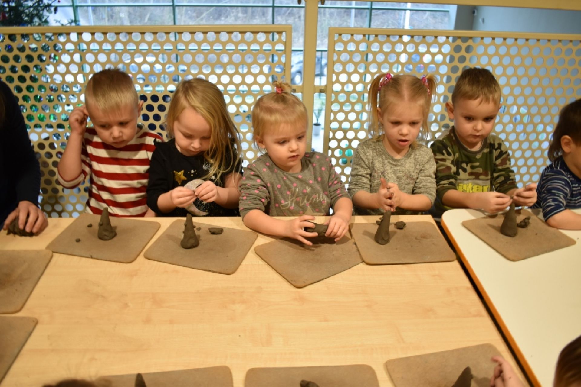 Dzisiaj po raz kolejny odbyły się warsztaty rzeźbiarskie. Dzieci kolejny raz czarowały w glinie, dzisiaj tworzyły świąteczne choinki- piękne dzieła.
