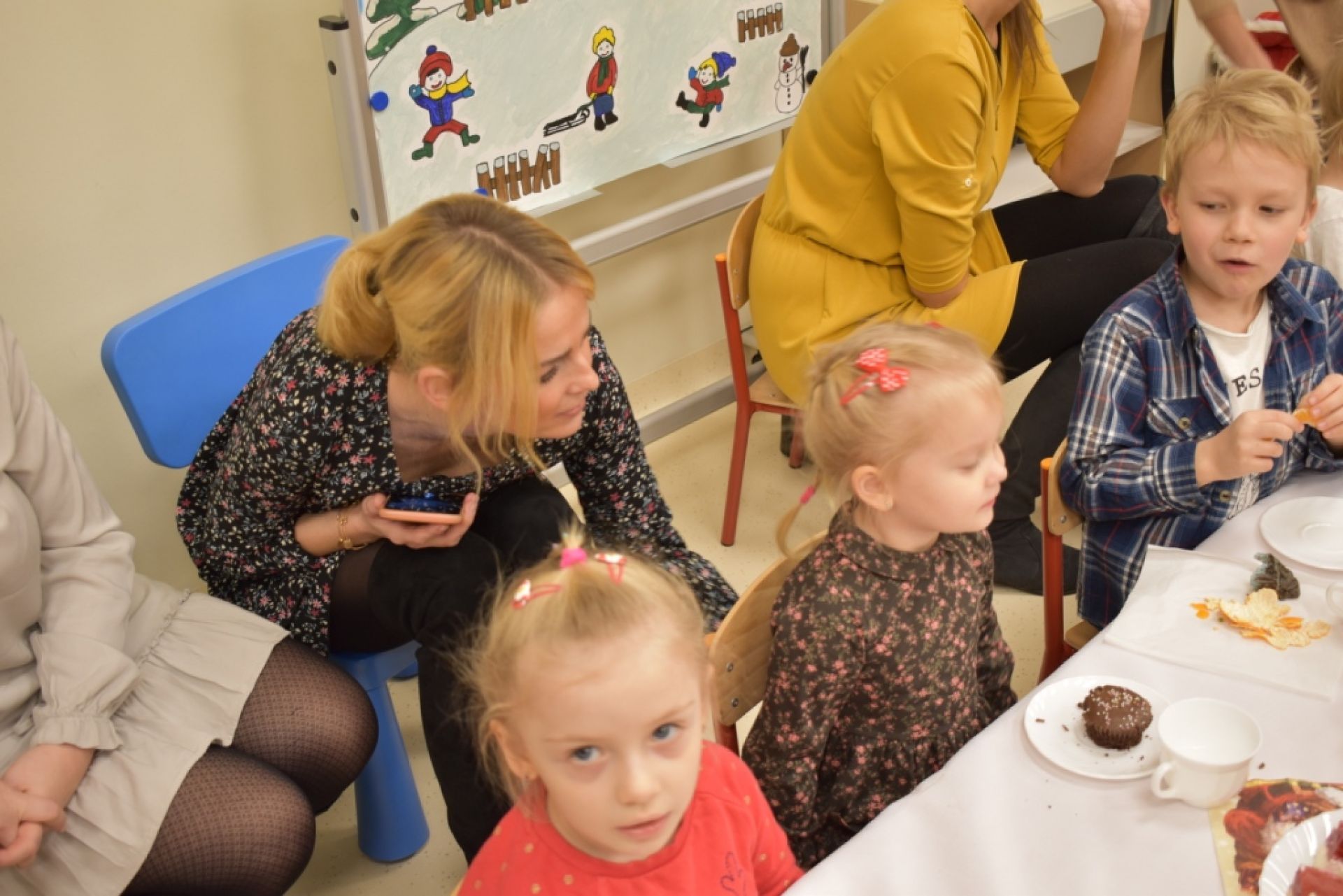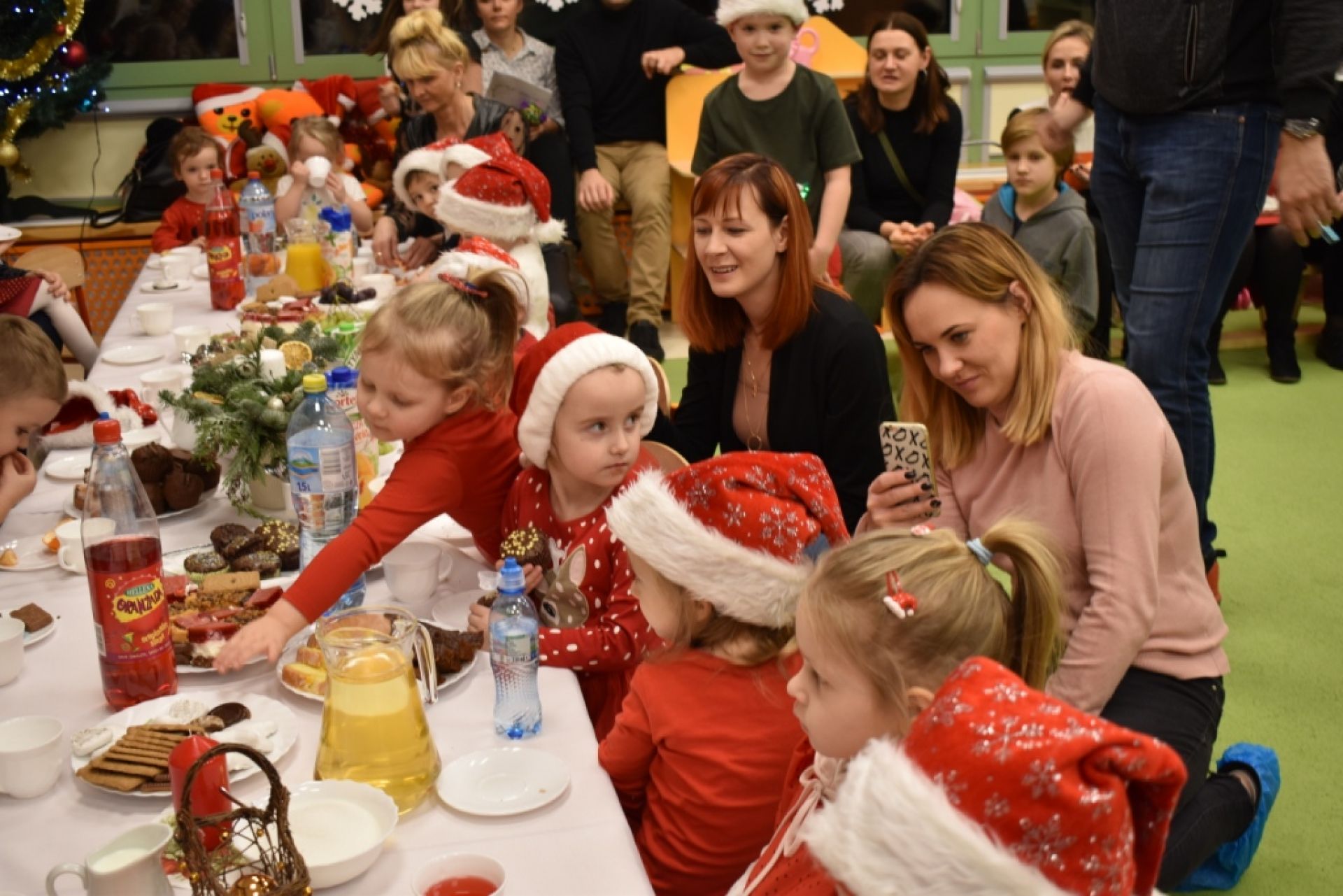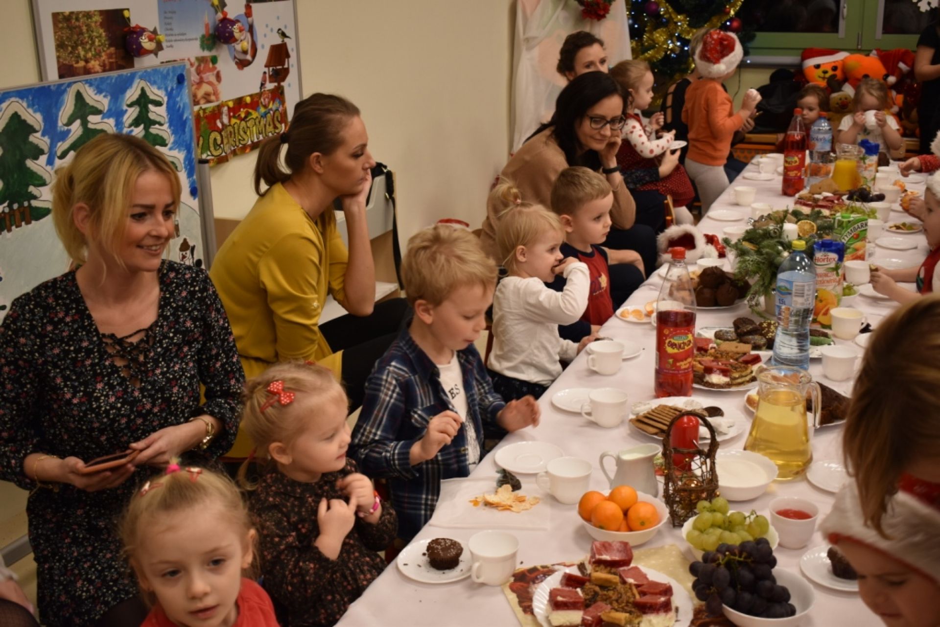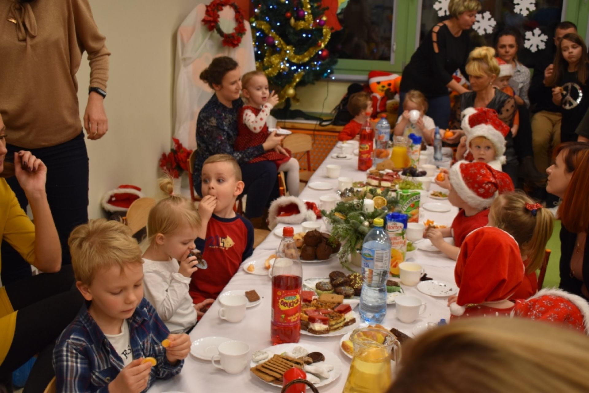 Dzisiaj w naszym przedszkolu odbyło się spotkanie świąteczne z rodzicami. Na początku wspólnie kolędowaliśmy, złożyliśmy sobie życzenia. W sali dzieci zaprezentowały krótki program artystyczny, w którym dominowały piosenki o Mikołaju. Uroczystość przebiegła w miłej i gorącej atmosferze. Rodzicom za wielką pomoc w organizacji tego spotkania bardzo dziękujemy!