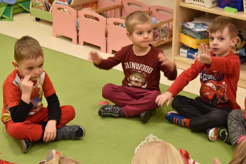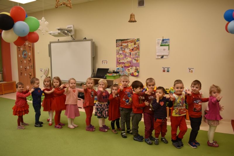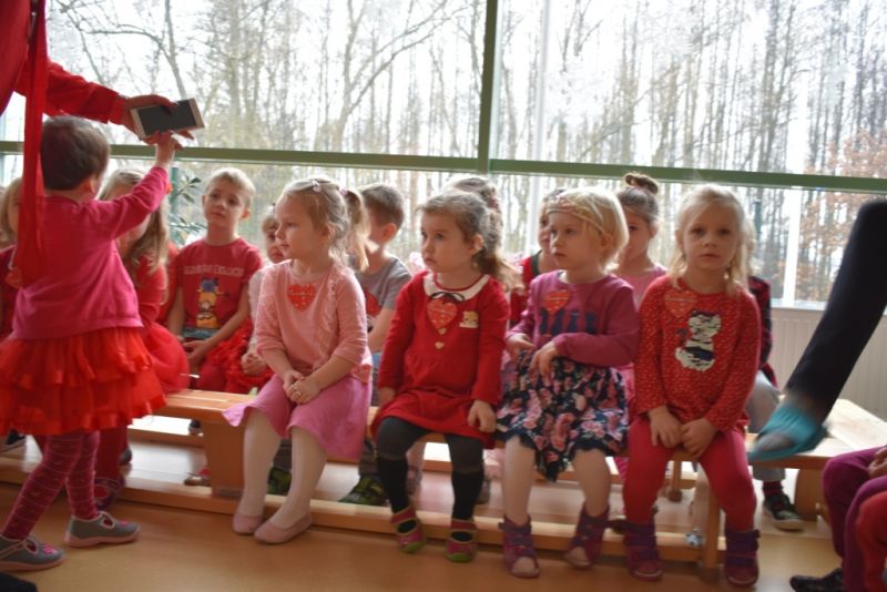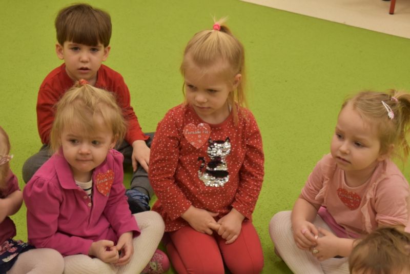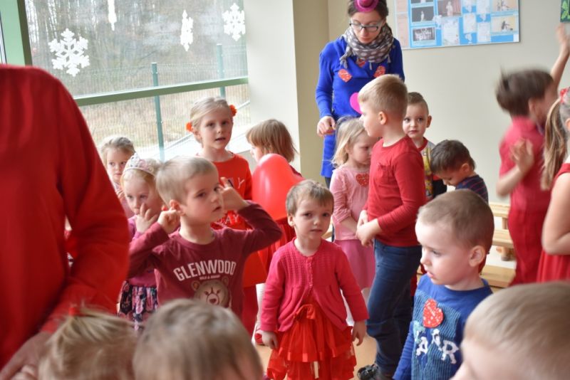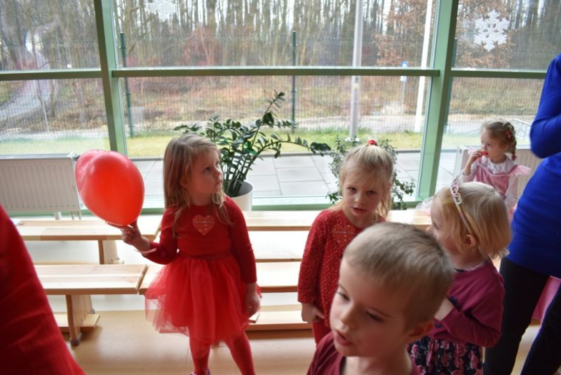 Dnia 14 lutego w naszym przedszkolu odbyły się Walentynki. Dzieci aktywnie brały udział w proponowanych zabawach. Każde otrzymało Walentynkę i słodkiego lizaka w kształcie serca.