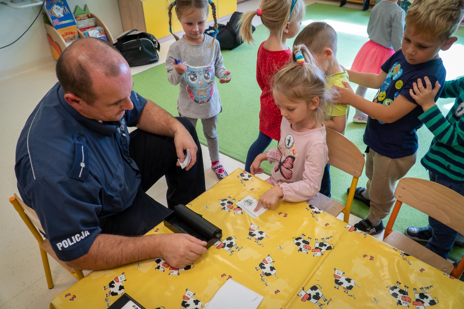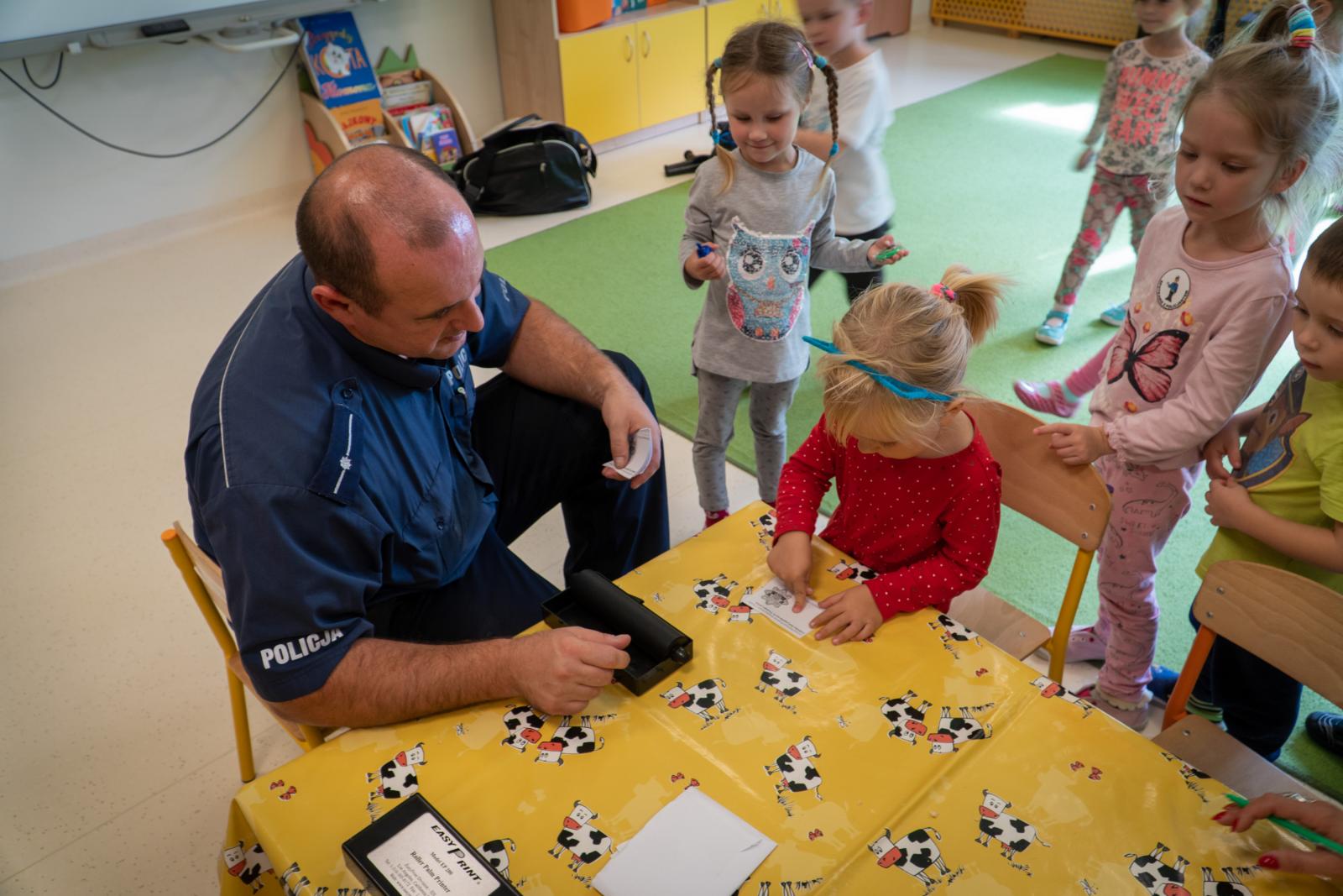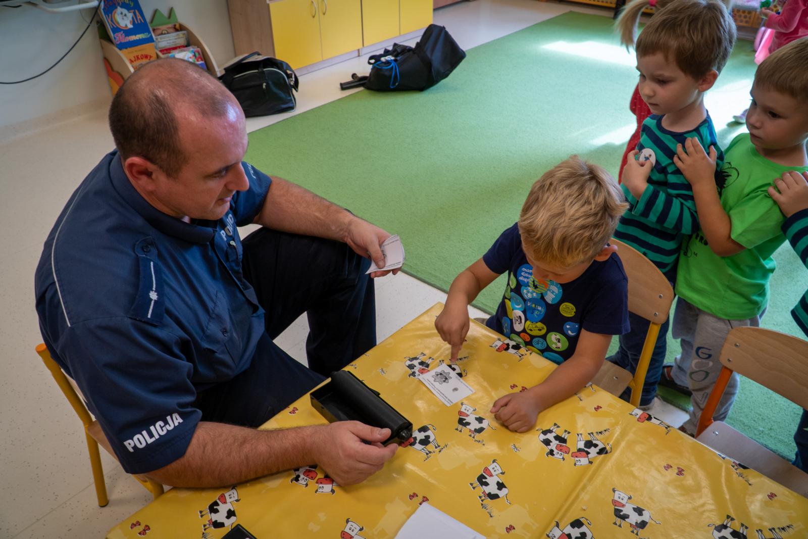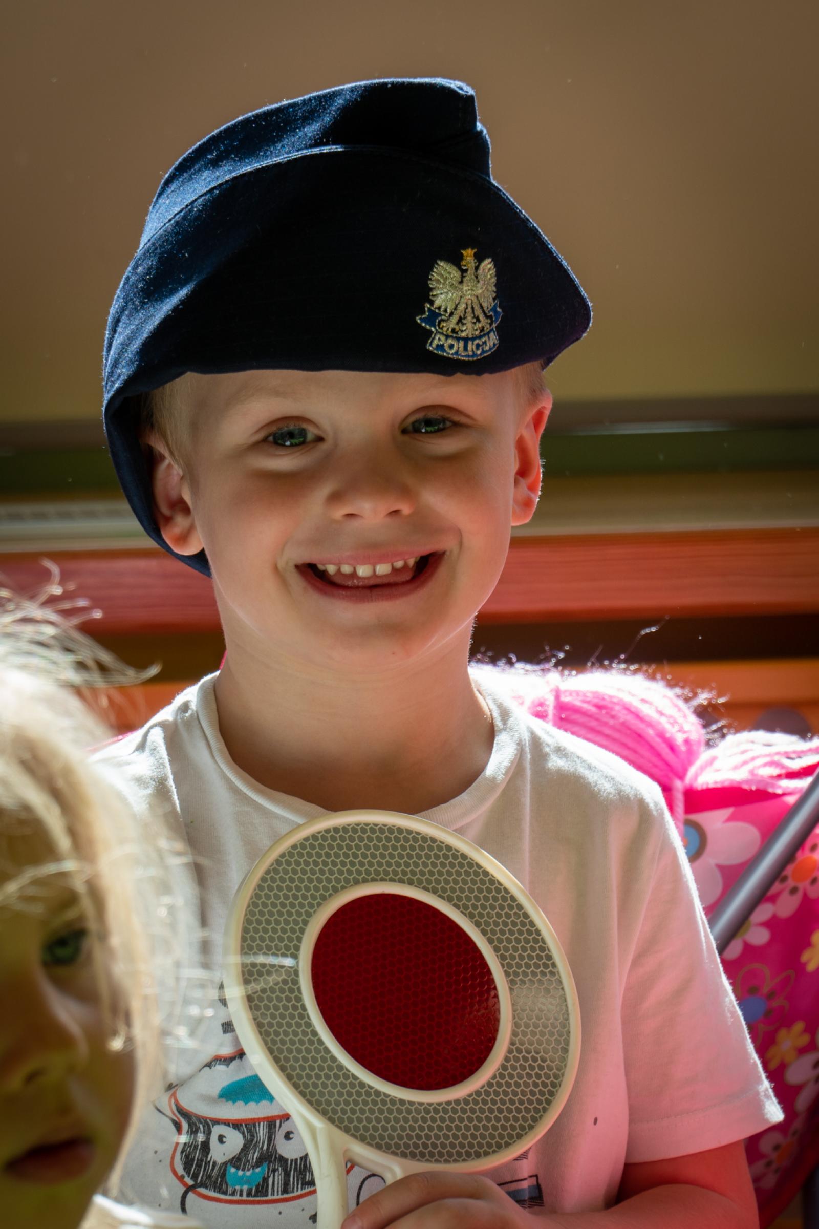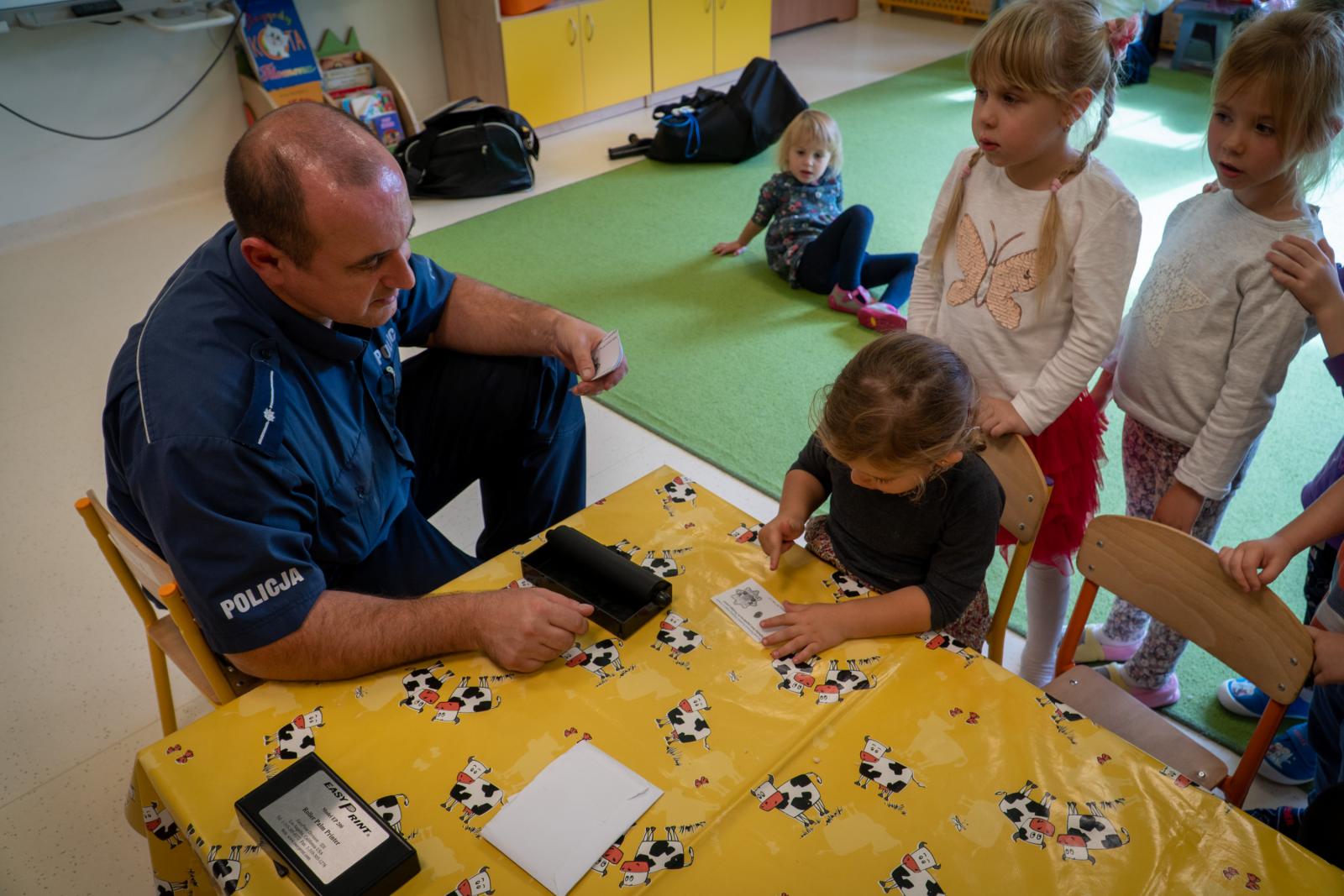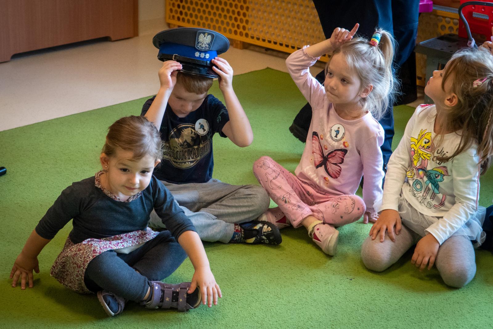 Dnia 20.09.2019r. "Motylki" wraz z innymi grupami obchodziły Dzień Przedszkolaka pod hasłem: "Bezpieczny Przedszkolak". Wzięliśmy udział w zabawach integracyjnych w auli naszego przedszkola, gdzie obecni byli również zaproszeni goście: Panowie policjanci z pobliskiej Komendy Miejskiej Policji "Toruń-Podgórz". Pani Alina zaprosiła dzieci do wspólnej zabawy przy muzyce, rozwiązywaliśmy zagadki dotyczące bezpieczeństwa w ruchu drogowym oraz mieliśmy okazję wysłuchać "lekcji bezpieczeństwa", której udzielili nam policjanci. Dalsza część zajęć z gośćmi odbyła się w sali "Motylków", gdzie poznaliśmy atrybuty każdego policjanta, jego umundurowanie oraz obowiązki służbowe. Każdy z nas odcisnął swoje linie papilarne w "kartotece policyjnej" :) Mamy nadzieję, że Panowie policjanci odwiedzą nas również w przyszłym roku :)