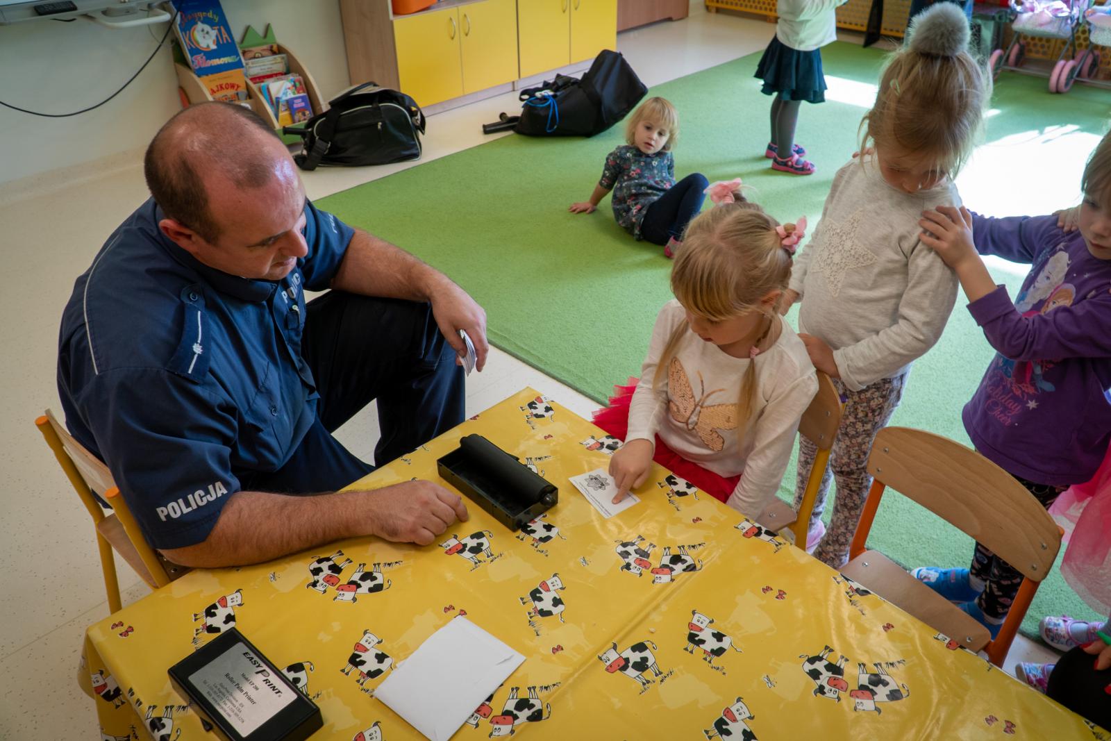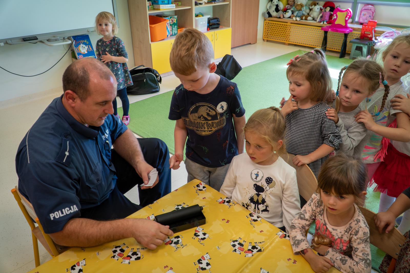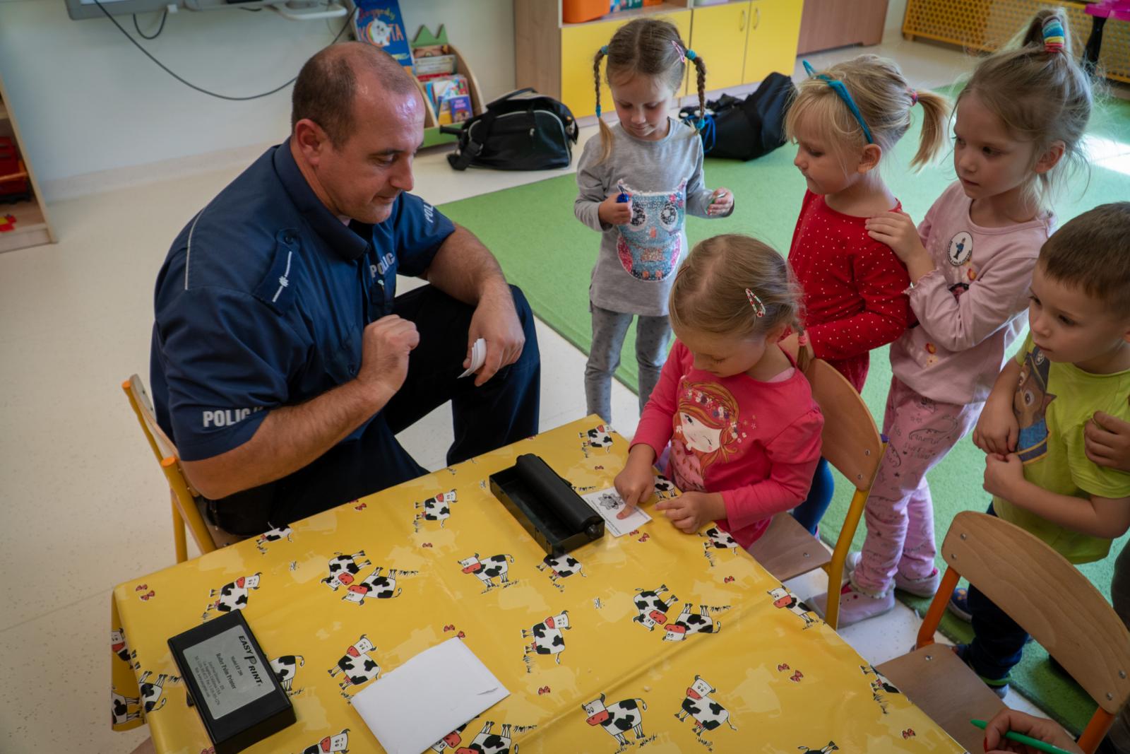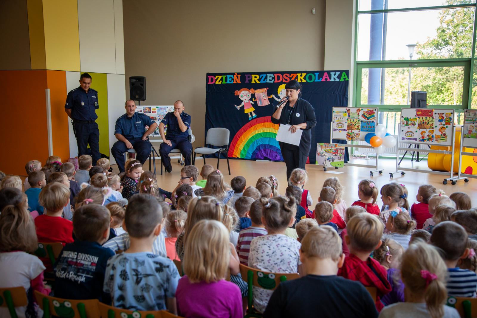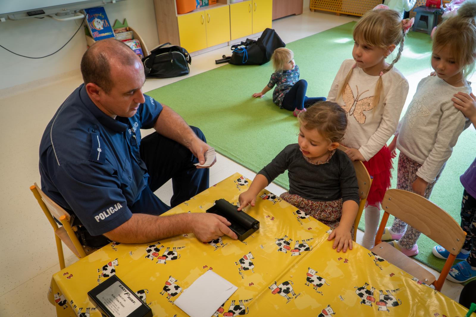 Dnia 20.09.2019r. "Motylki" wraz z innymi grupami obchodziły Dzień Przedszkolaka pod hasłem: "Bezpieczny Przedszkolak". Wzięliśmy udział w zabawach integracyjnych w auli naszego przedszkola, gdzie obecni byli również zaproszeni goście: Panowie policjanci z pobliskiej Komendy Miejskiej Policji "Toruń-Podgórz". Pani Alina zaprosiła dzieci do wspólnej zabawy przy muzyce, rozwiązywaliśmy zagadki dotyczące bezpieczeństwa w ruchu drogowym oraz mieliśmy okazję wysłuchać "lekcji bezpieczeństwa", której udzielili nam policjanci. Dalsza część zajęć z gośćmi odbyła się w sali "Motylków", gdzie poznaliśmy atrybuty każdego policjanta, jego umundurowanie oraz obowiązki służbowe. Każdy z nas odcisnął swoje linie papilarne w "kartotece policyjnej" :) Mamy nadzieję, że Panowie policjanci odwiedzą nas również w przyszłym roku :)