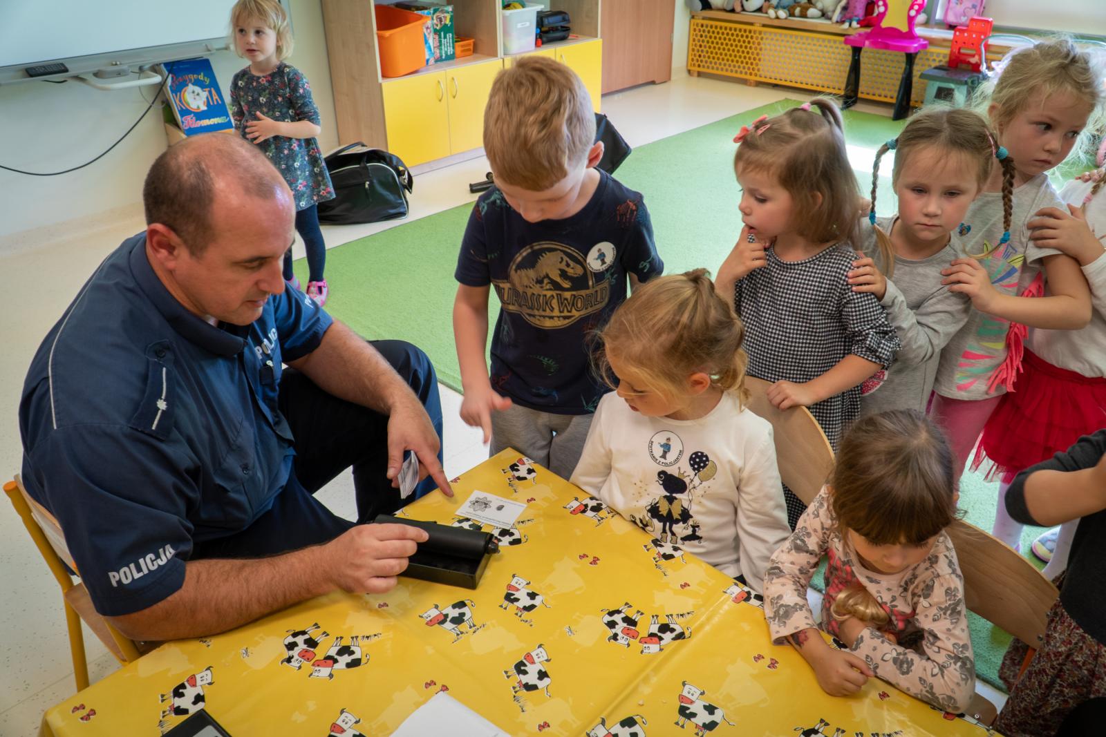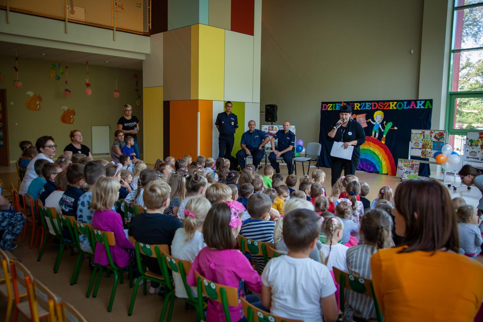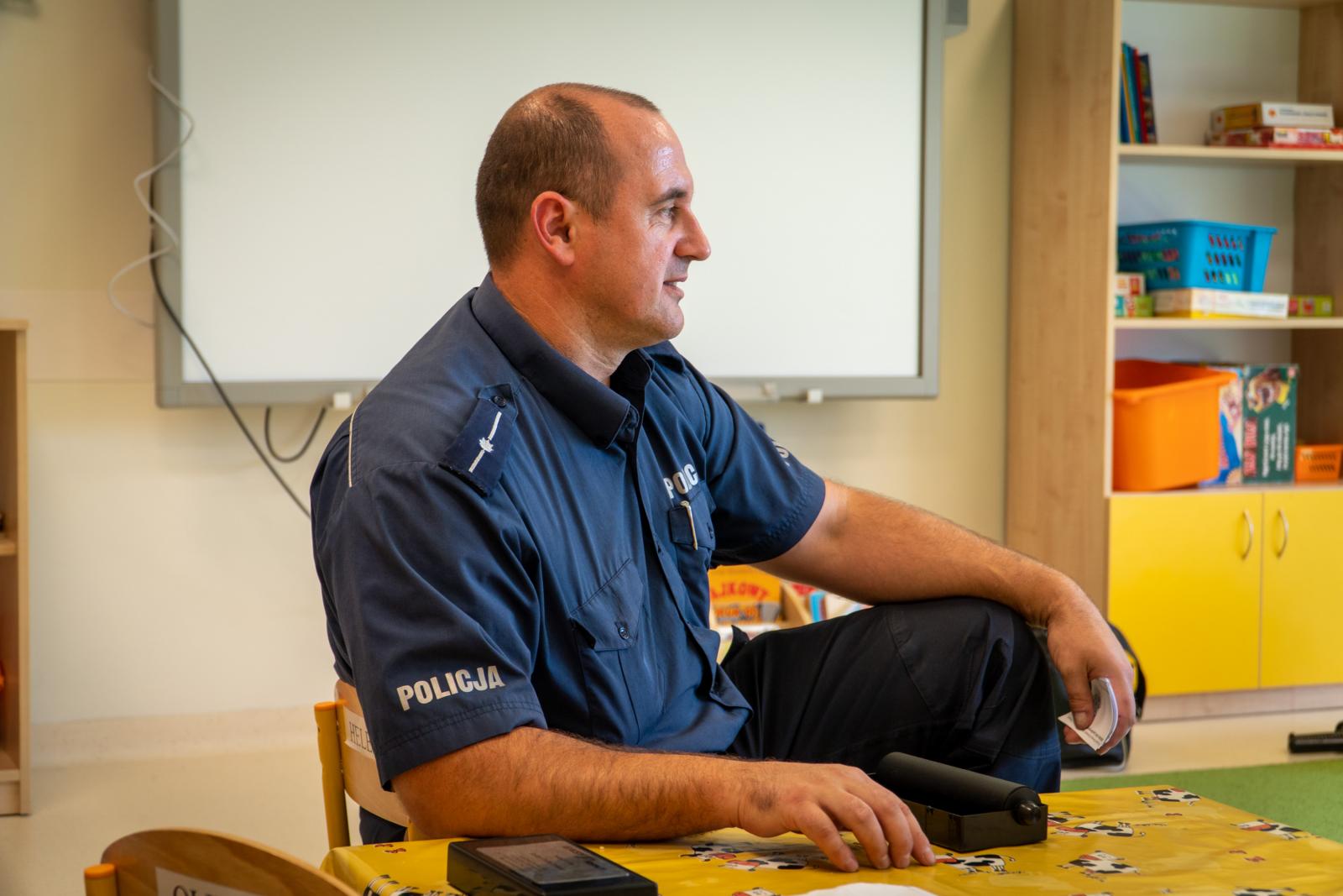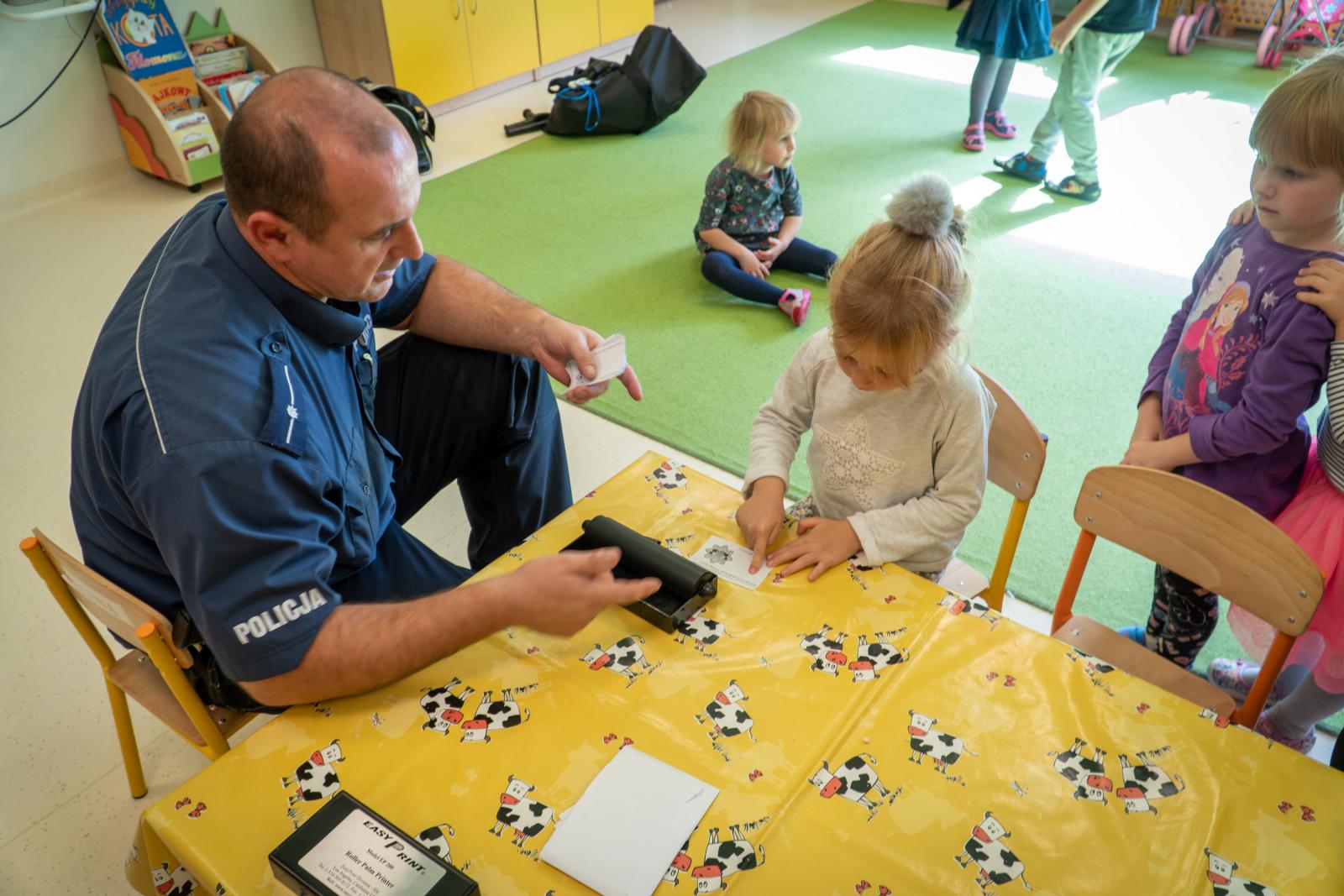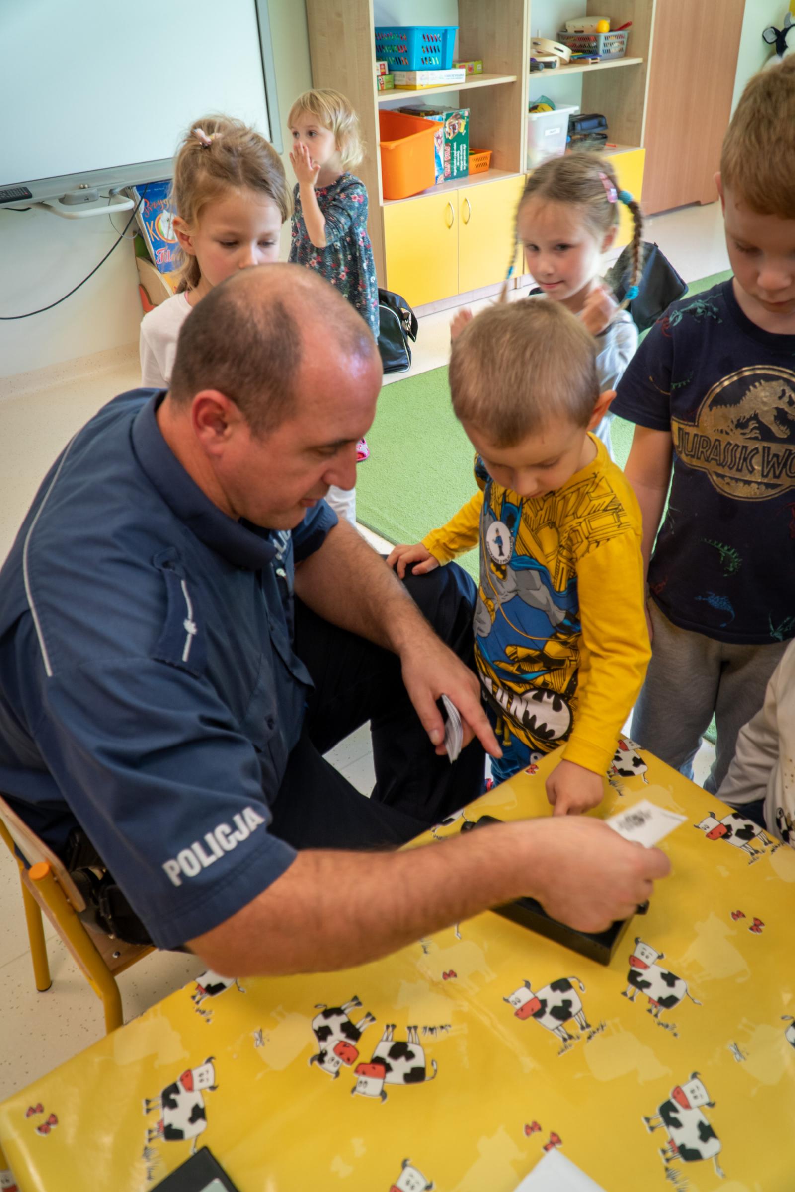 Dnia 20.09.2019r. "Motylki" wraz z innymi grupami obchodziły Dzień Przedszkolaka pod hasłem: "Bezpieczny Przedszkolak". Wzięliśmy udział w zabawach integracyjnych w auli naszego przedszkola, gdzie obecni byli również zaproszeni goście: Panowie policjanci z pobliskiej Komendy Miejskiej Policji "Toruń-Podgórz". Pani Alina zaprosiła dzieci do wspólnej zabawy przy muzyce, rozwiązywaliśmy zagadki dotyczące bezpieczeństwa w ruchu drogowym oraz mieliśmy okazję wysłuchać "lekcji bezpieczeństwa", której udzielili nam policjanci. Dalsza część zajęć z gośćmi odbyła się w sali "Motylków", gdzie poznaliśmy atrybuty każdego policjanta, jego umundurowanie oraz obowiązki służbowe. Każdy z nas odcisnął swoje linie papilarne w "kartotece policyjnej" :) Mamy nadzieję, że Panowie policjanci odwiedzą nas również w przyszłym roku :)