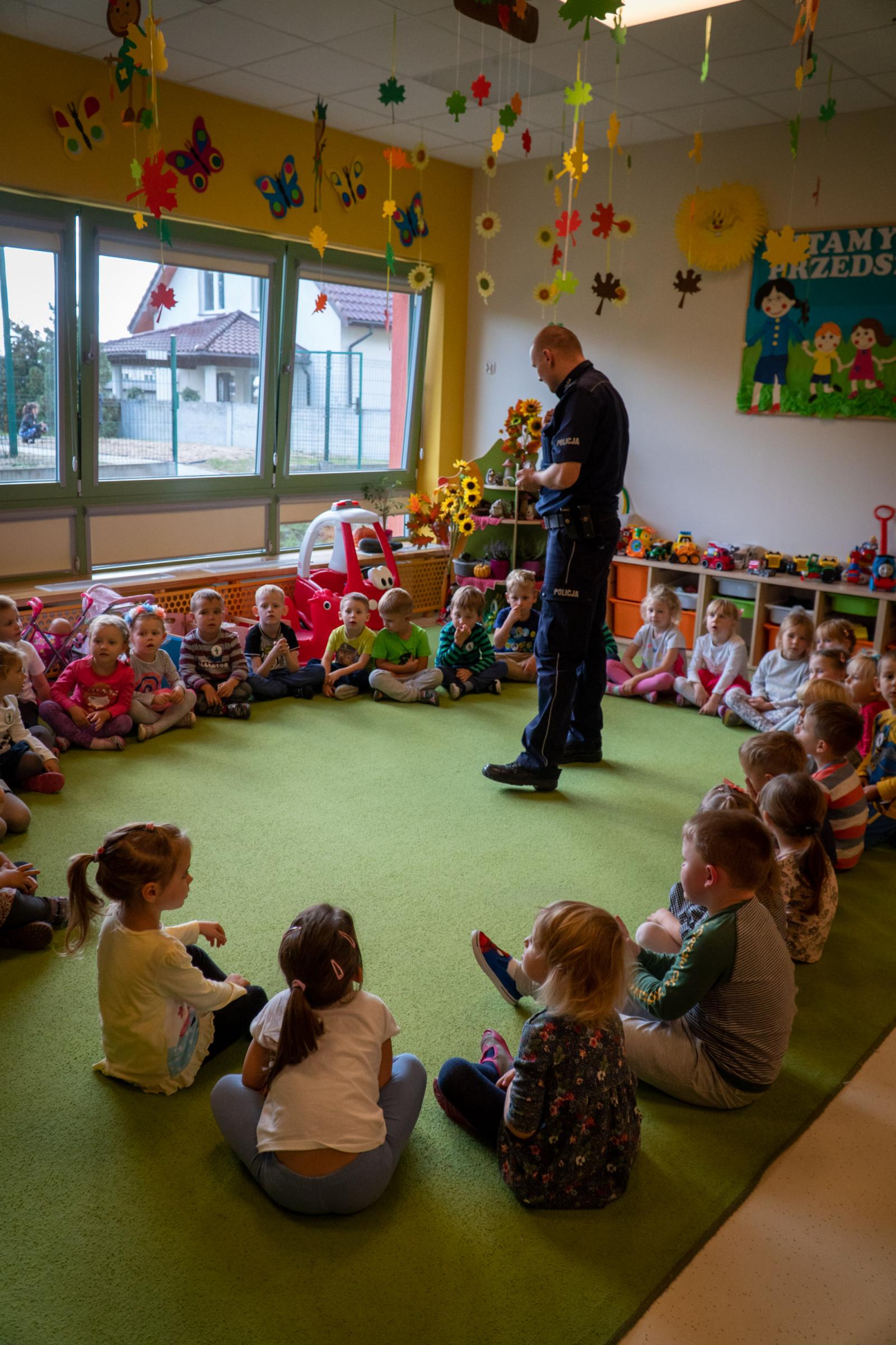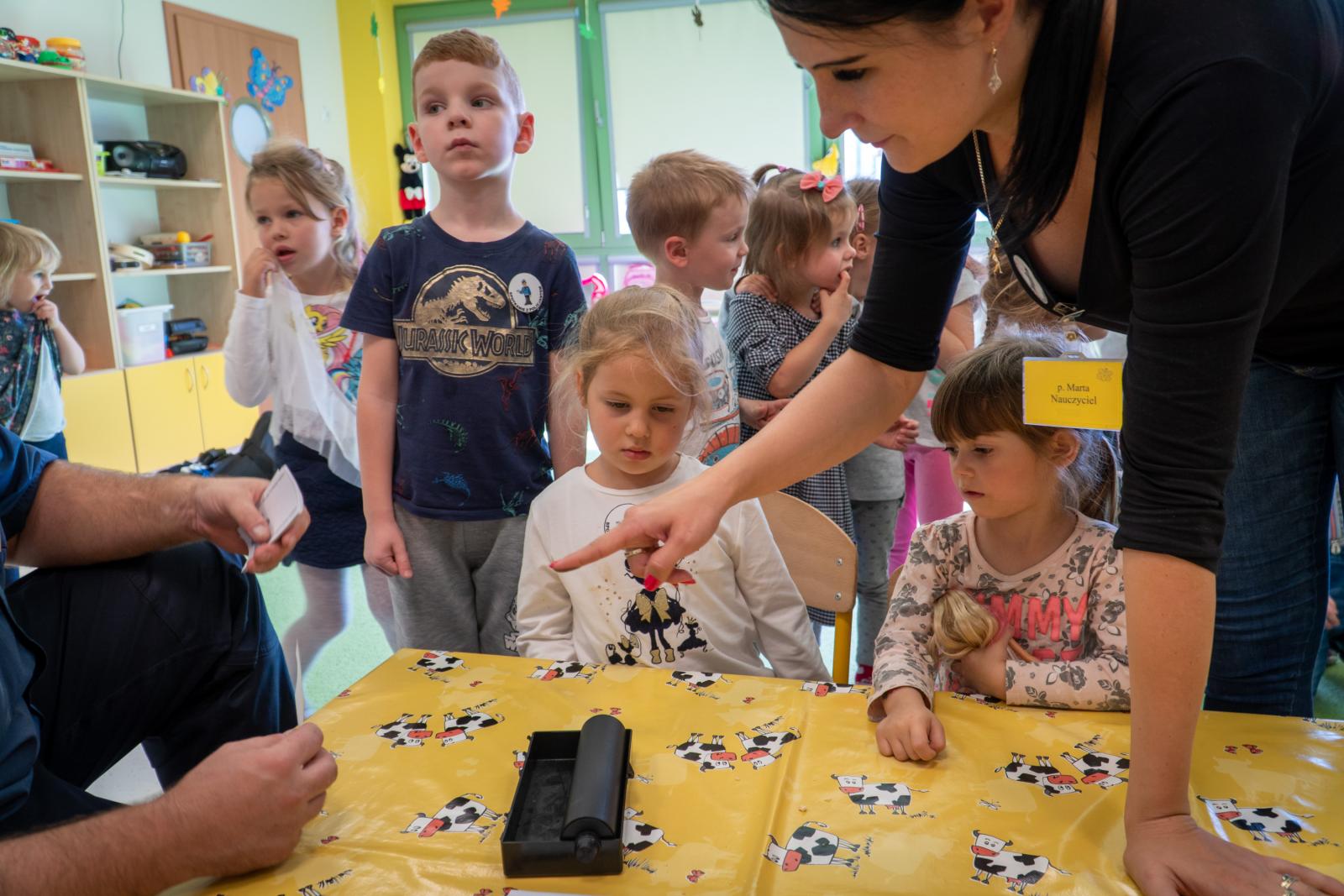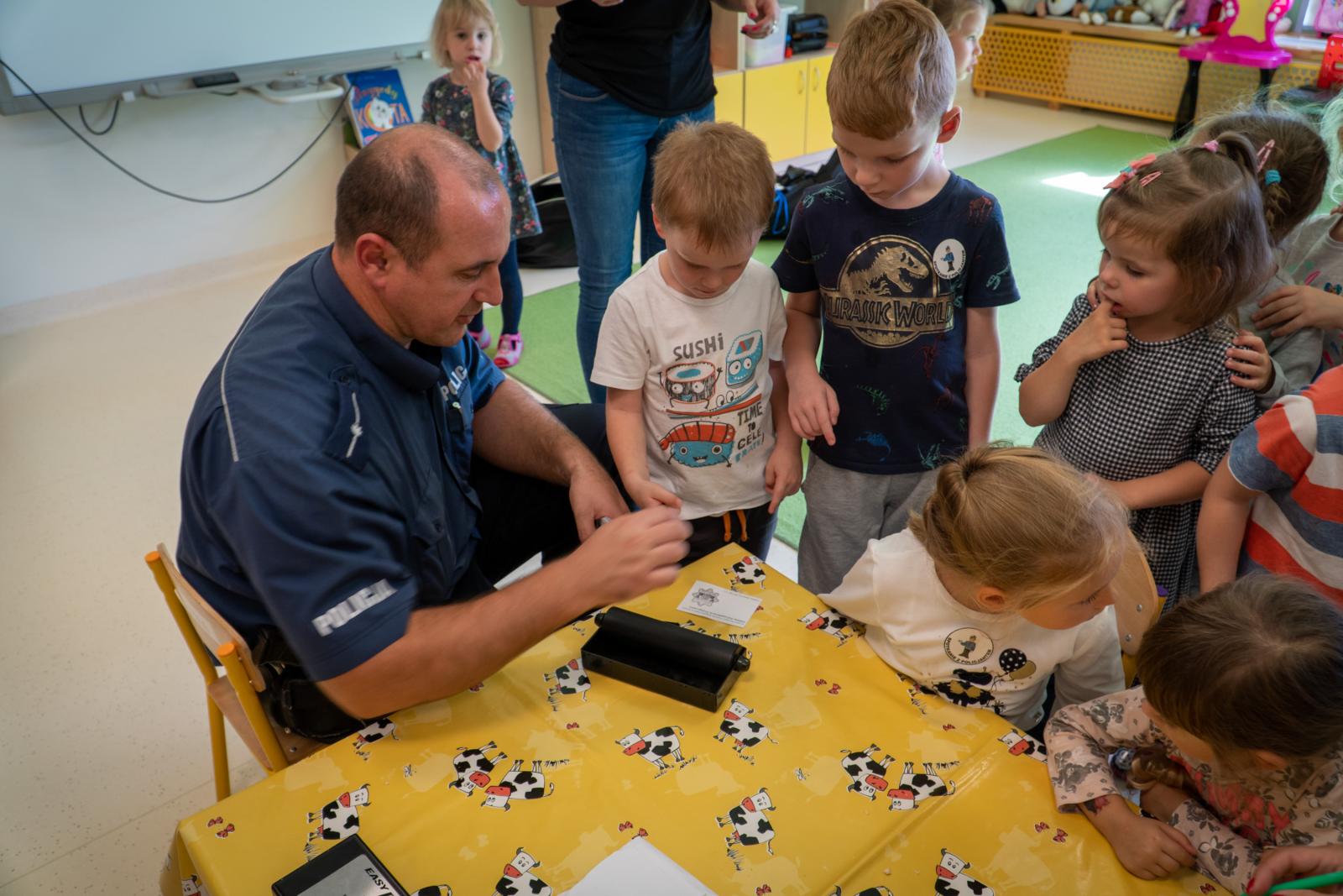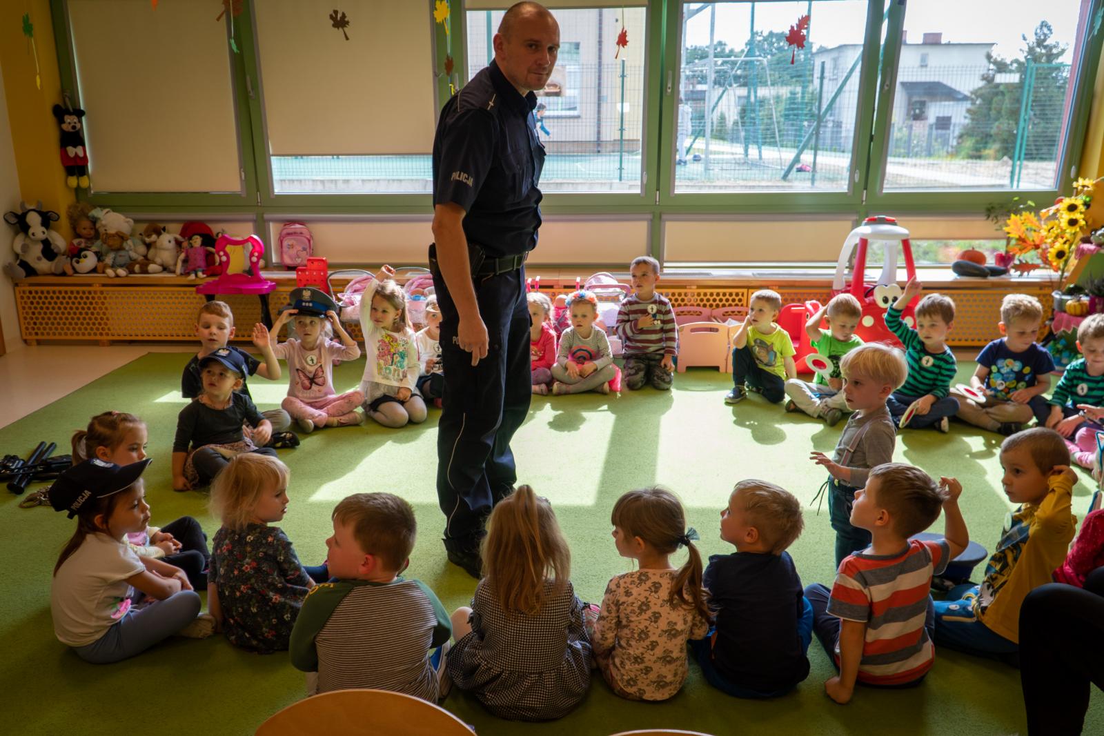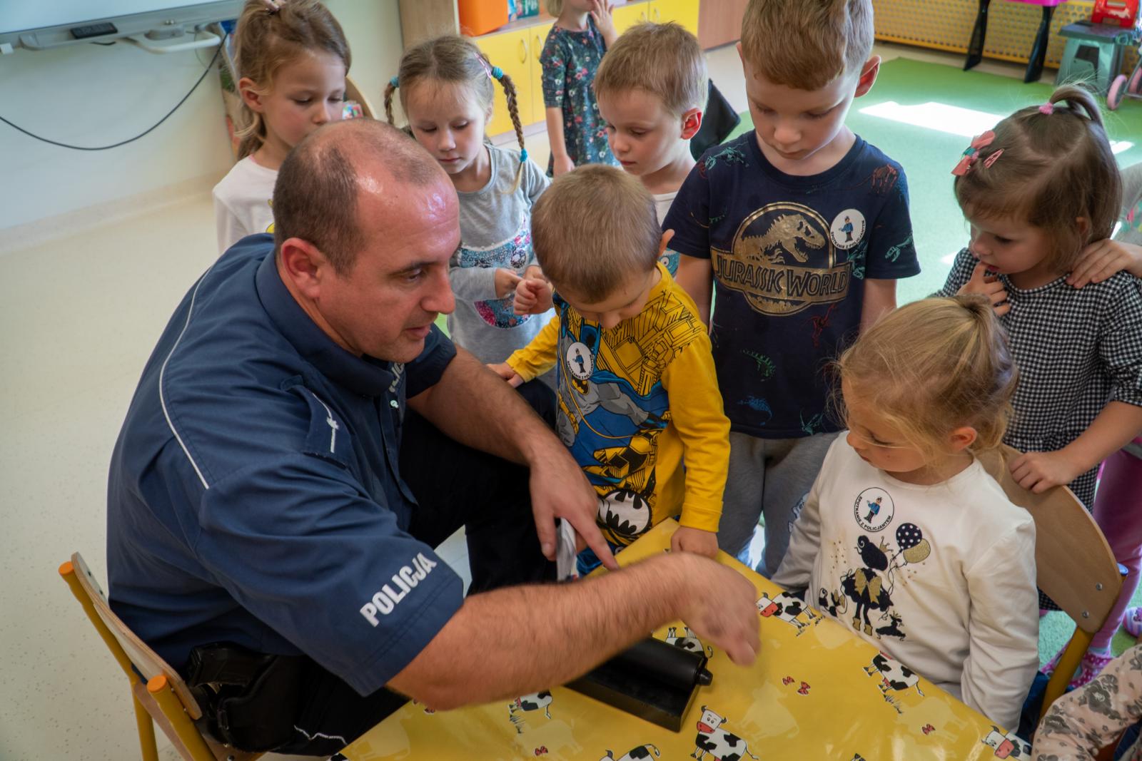 Dnia 20.09.2019r. "Motylki" wraz z innymi grupami obchodziły Dzień Przedszkolaka pod hasłem: "Bezpieczny Przedszkolak". Wzięliśmy udział w zabawach integracyjnych w auli naszego przedszkola, gdzie obecni byli również zaproszeni goście: Panowie policjanci z pobliskiej Komendy Miejskiej Policji "Toruń-Podgórz". Pani Alina zaprosiła dzieci do wspólnej zabawy przy muzyce, rozwiązywaliśmy zagadki dotyczące bezpieczeństwa w ruchu drogowym oraz mieliśmy okazję wysłuchać "lekcji bezpieczeństwa", której udzielili nam policjanci. Dalsza część zajęć z gośćmi odbyła się w sali "Motylków", gdzie poznaliśmy atrybuty każdego policjanta, jego umundurowanie oraz obowiązki służbowe. Każdy z nas odcisnął swoje linie papilarne w "kartotece policyjnej" :) Mamy nadzieję, że Panowie policjanci odwiedzą nas również w przyszłym roku :)