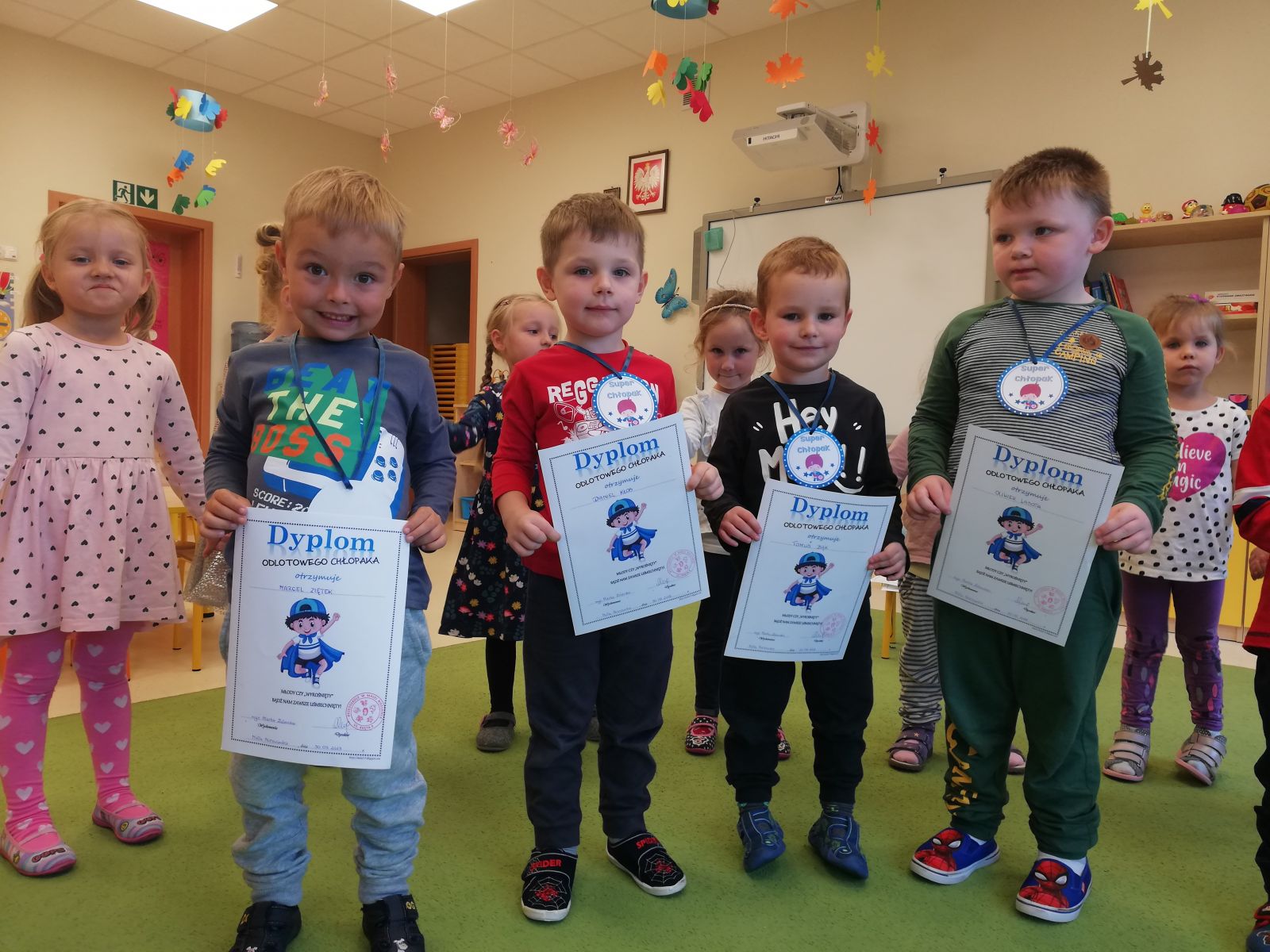 Dnia 30.09.2019r. obchodziliśmy w naszej grupie "Dzień Chłopca". Wszystkie dziewczynki wspólnie z Panią Martą oraz Panią Beatą przygotowały dla chłopców słodki poczęstunek, medale oraz dyplomy. Chłopcy byli mile zaskoczeni z otrzymanych upominków i zaśpiewanego "sto lat" :) Jeszcze raz życzymy wam chłopcy wszystkiego co najlepsze, najmilsze i najpiękniejsze...aby spełniły się wszystkie wasze dziecięce marzenia :)