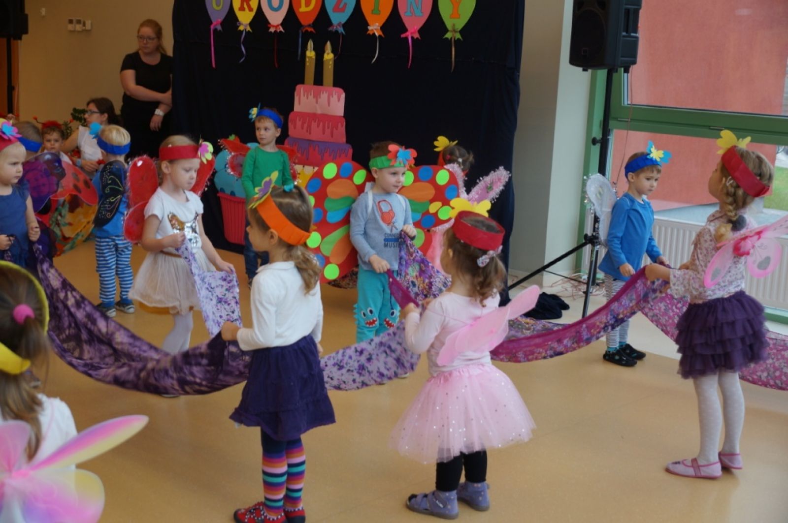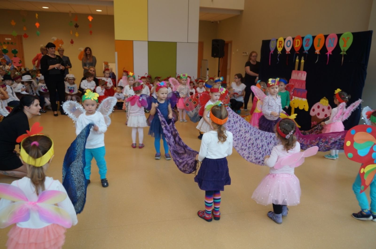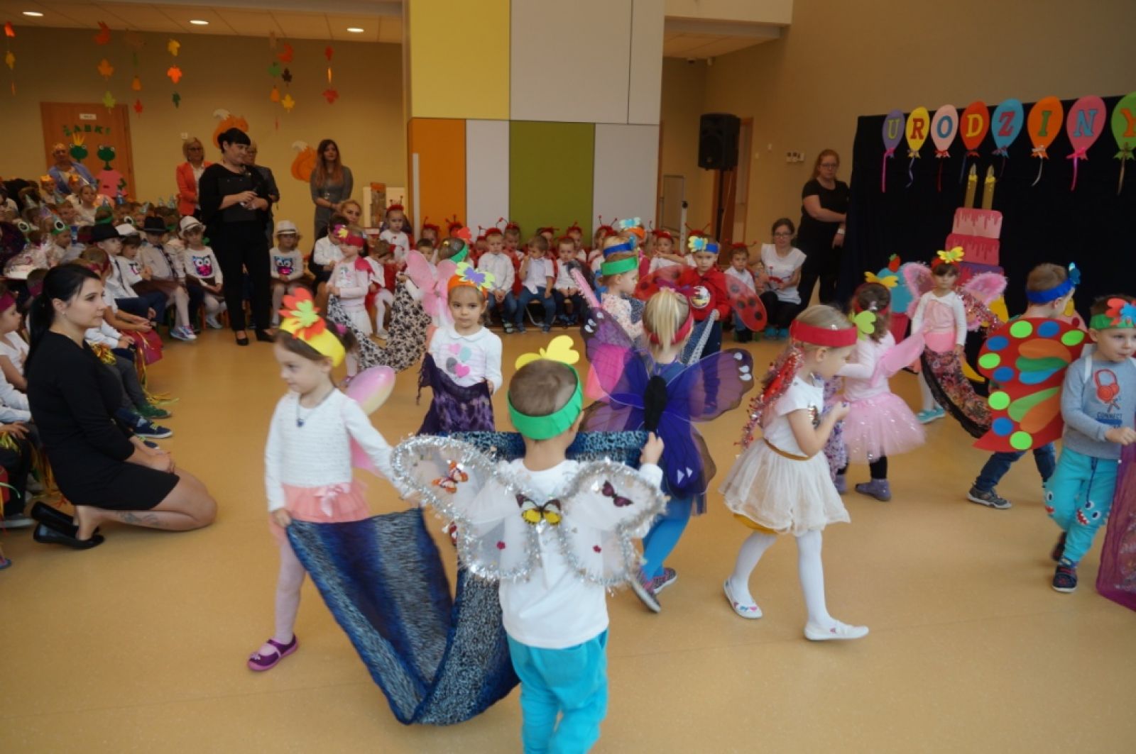 Dnia 25.10.2019r. uroczyście obchodziliśmy II urodziny naszego pięknego przedszkola połączone z obchodami pasowania naszych najmłodszych maluszków na prawdziwych przedszkolaków. Tego dnia przybyło do nas mnóstwo gości z urzędu gminy, kuratorium oświaty, sąsiednich szkół podstawowych, nadleśnictwa oraz gminnego ośrodka kultury. Wszystkie przedszkolaki, ubrane w odświętne stroje z symbolami swoich grup, przygotowały krótkie występy artystyczne, po których odbyło się uroczyste pasowanie "Biedronek" na przedszkolaków. Z okazji urodzin przedszkola prezenty otrzymały dzieci oraz nasza Pani dyrektor, której pracownicy również przygotowali niespodziankę. Chwilom wzruszenia i uśmiechu nie było końca. Kwintesencją uroczystości był przepyszny tort z ozdobnymi racami, który został wniesiony do auli przedszkola przez naszych kucharzy. Już nie możemy doczekać się kolejnych takich urodzin :)