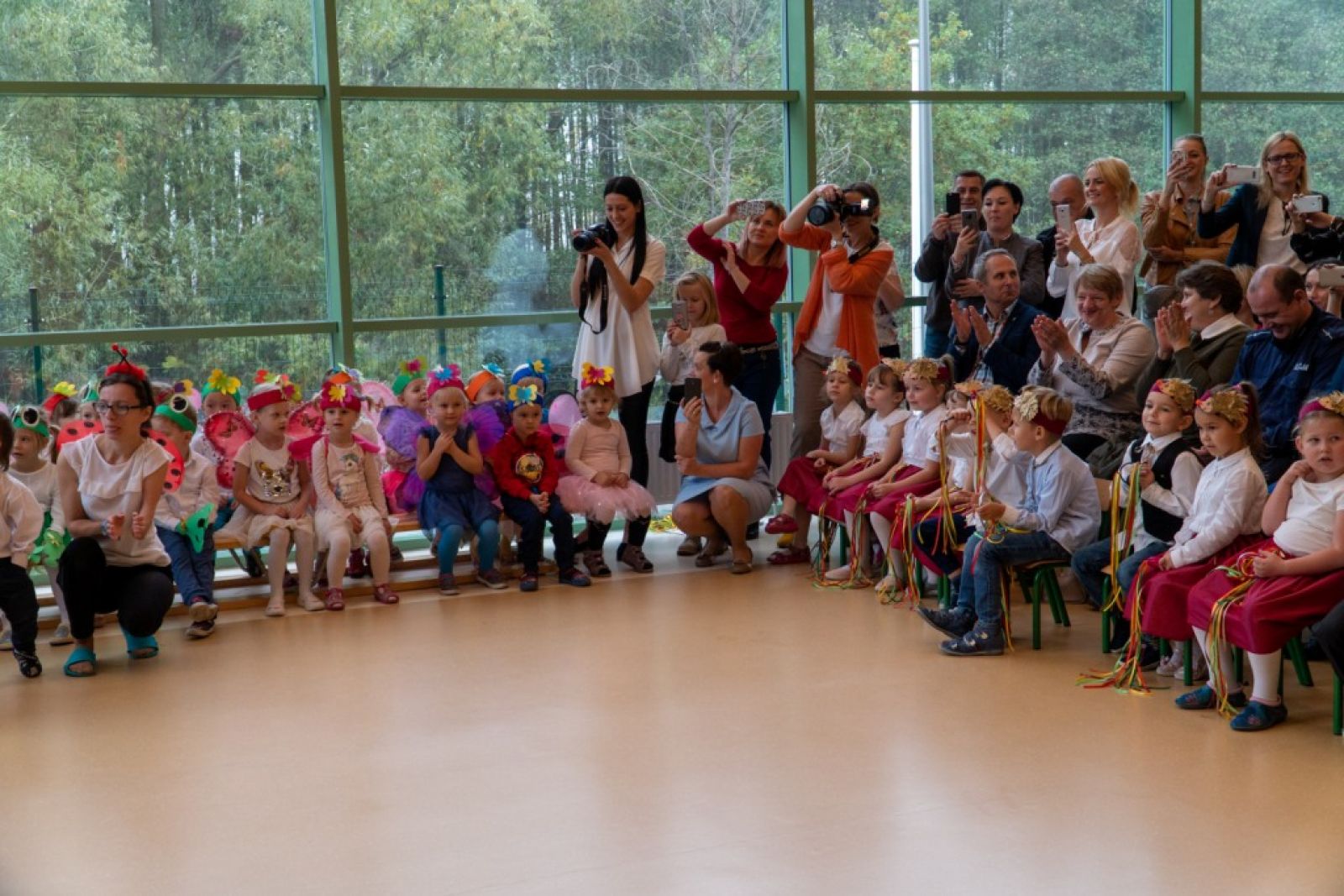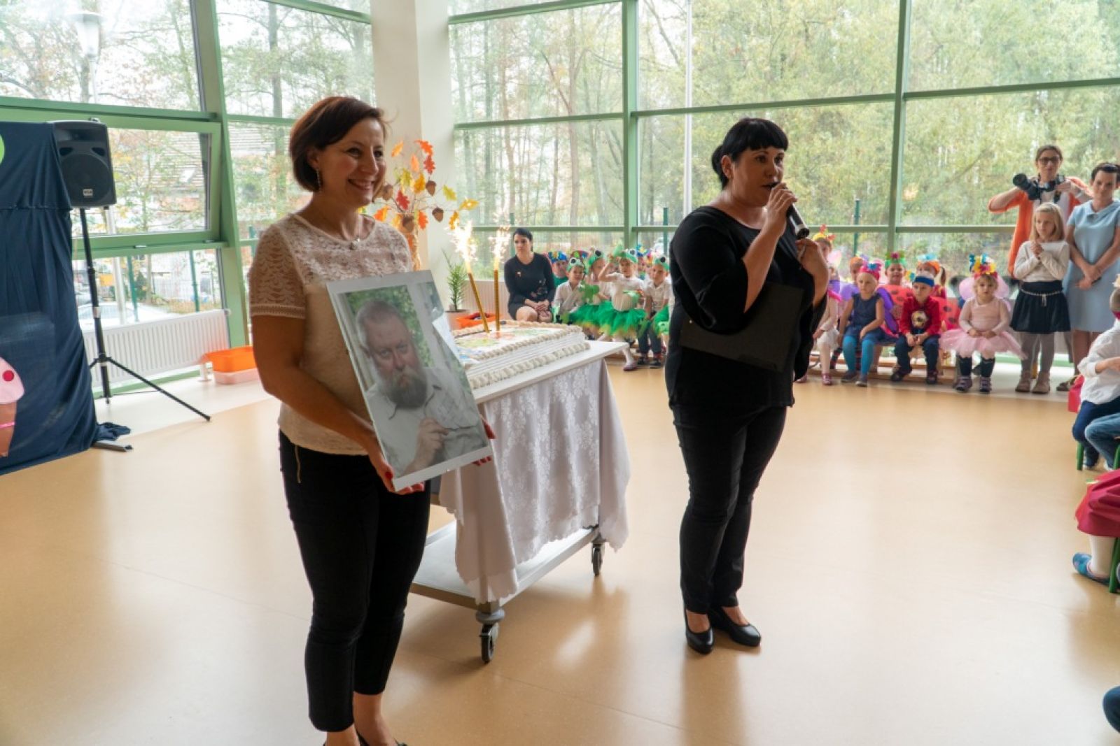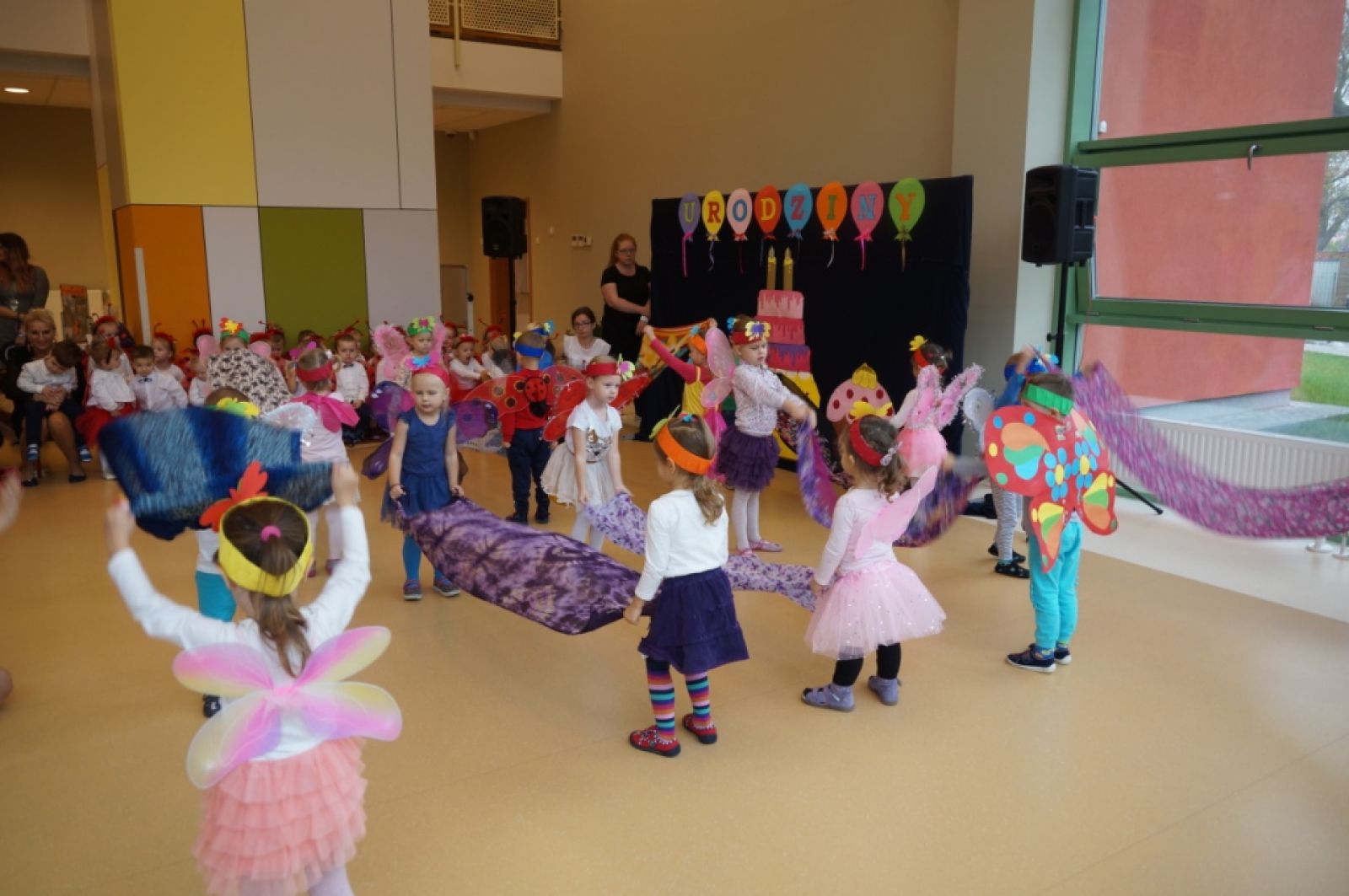 Dnia 25.10.2019r. uroczyście obchodziliśmy II urodziny naszego pięknego przedszkola połączone z obchodami pasowania naszych najmłodszych maluszków na prawdziwych przedszkolaków. Tego dnia przybyło do nas mnóstwo gości z urzędu gminy, kuratorium oświaty, sąsiednich szkół podstawowych, nadleśnictwa oraz gminnego ośrodka kultury. Wszystkie przedszkolaki, ubrane w odświętne stroje z symbolami swoich grup, przygotowały krótkie występy artystyczne, po których odbyło się uroczyste pasowanie "Biedronek" na przedszkolaków. Z okazji urodzin przedszkola prezenty otrzymały dzieci oraz nasza Pani dyrektor, której pracownicy również przygotowali niespodziankę. Chwilom wzruszenia i uśmiechu nie było końca. Kwintesencją uroczystości był przepyszny tort z ozdobnymi racami, który został wniesiony do auli przedszkola przez naszych kucharzy. Już nie możemy doczekać się kolejnych takich urodzin :)
