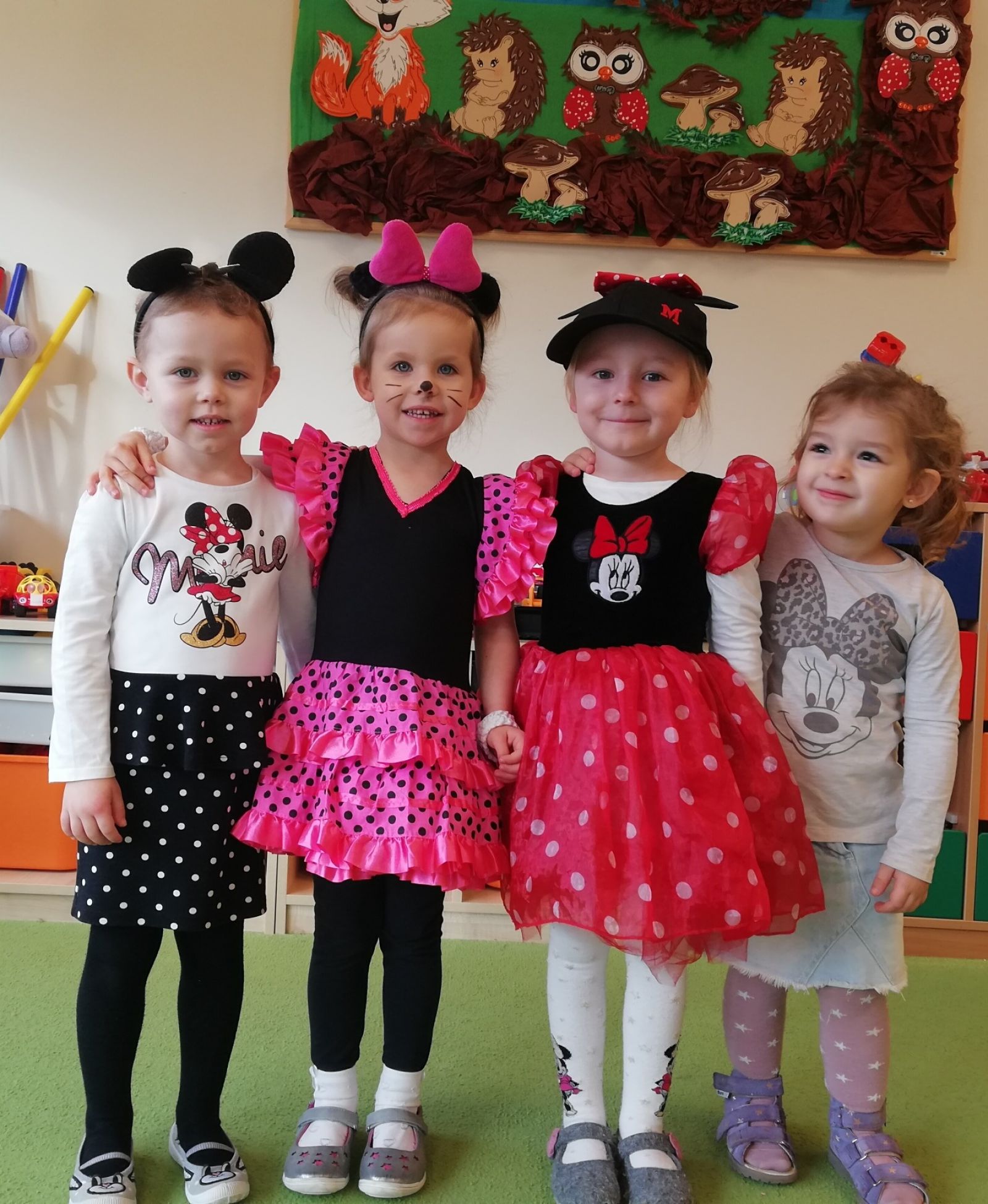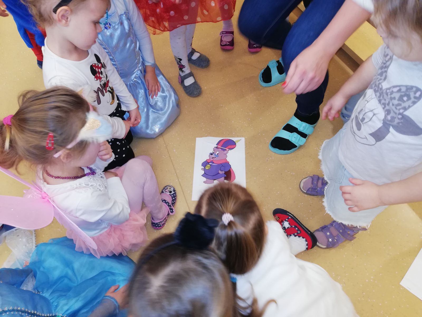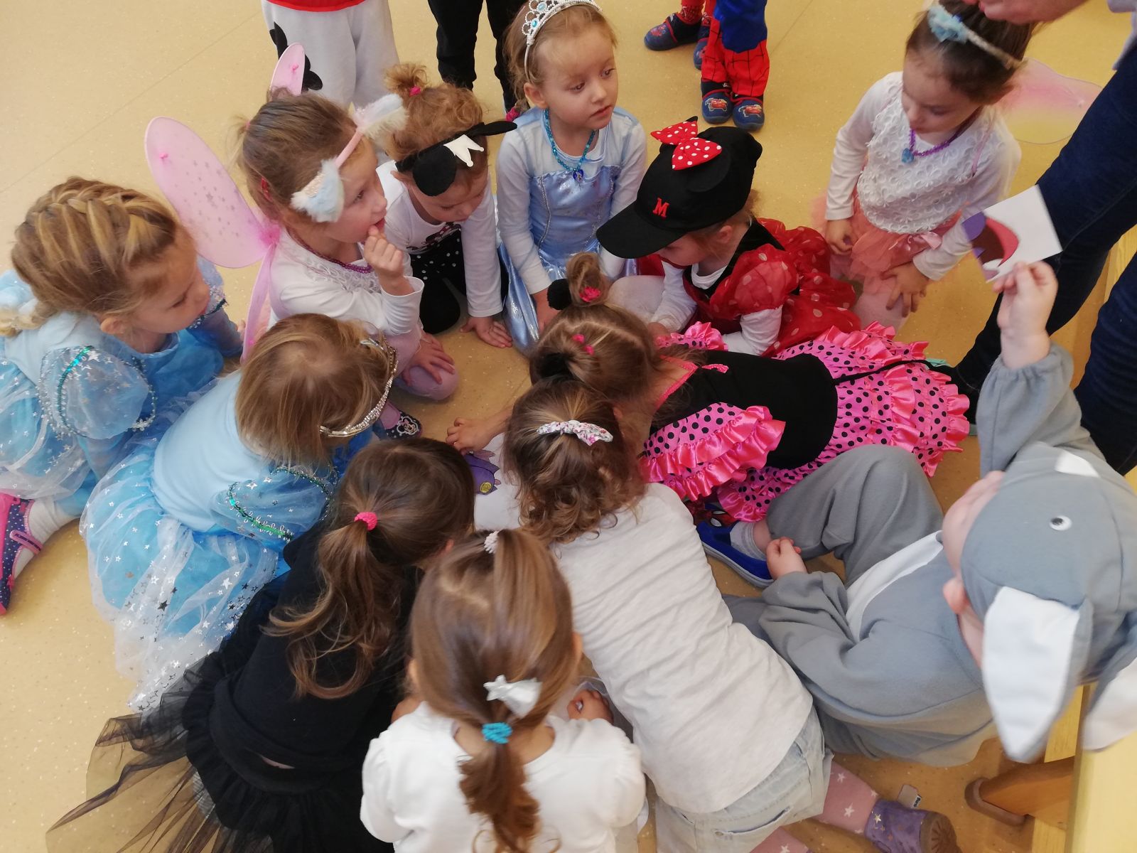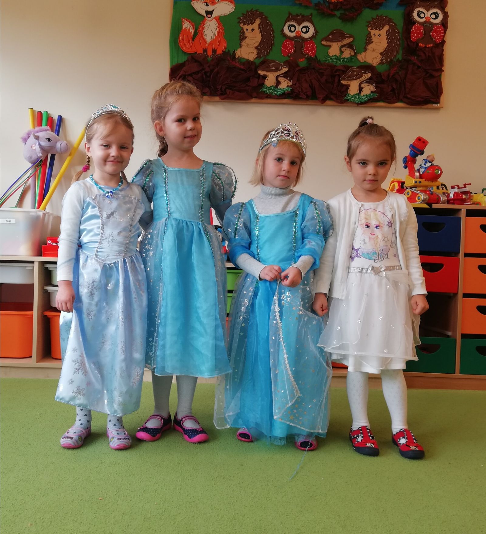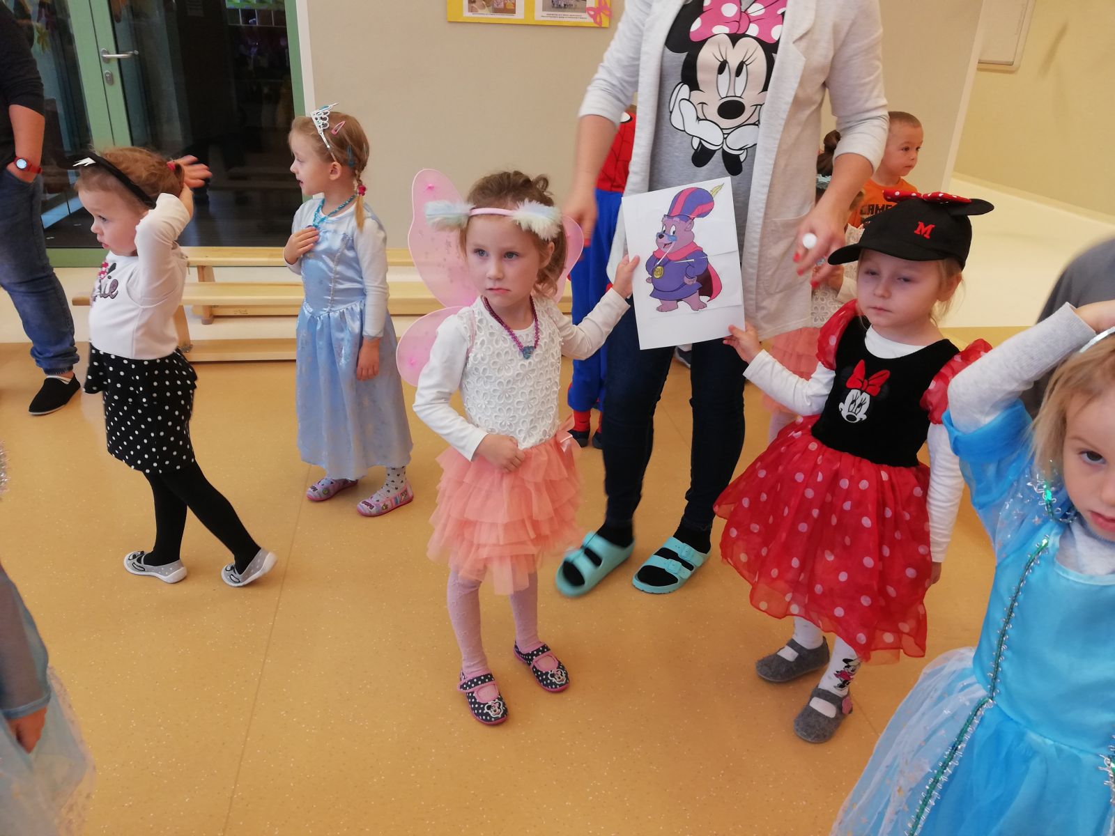 Dnia 05.11.2019r. obchodziliśmy w przedszkolu Dzień Postaci z Bajek. Wszystkie Motylki przybyły do przedszkola przebrane za rozmaitych bohaterów z bajek lub miały na sobie odzież z nadrukami bajkowych postaci. Zaraz po śniadaniu zebraliśmy się w auli, gdzie odbyły się zabawy integracyjne przy muzyce. Mieliśmy okazję rozwiązywać tematyczne zagadki, układać puzzle z bohaterami bajek, rozpoznawać bajki po słyszanej melodii oraz rekwizytach losowanych z kolorowego pudełka. Okazało się, że dzieci znają doskonale wszystkie bajki i są ich miłośnikami. Motylki są zwolennikami takich imprez przedszkolnych.