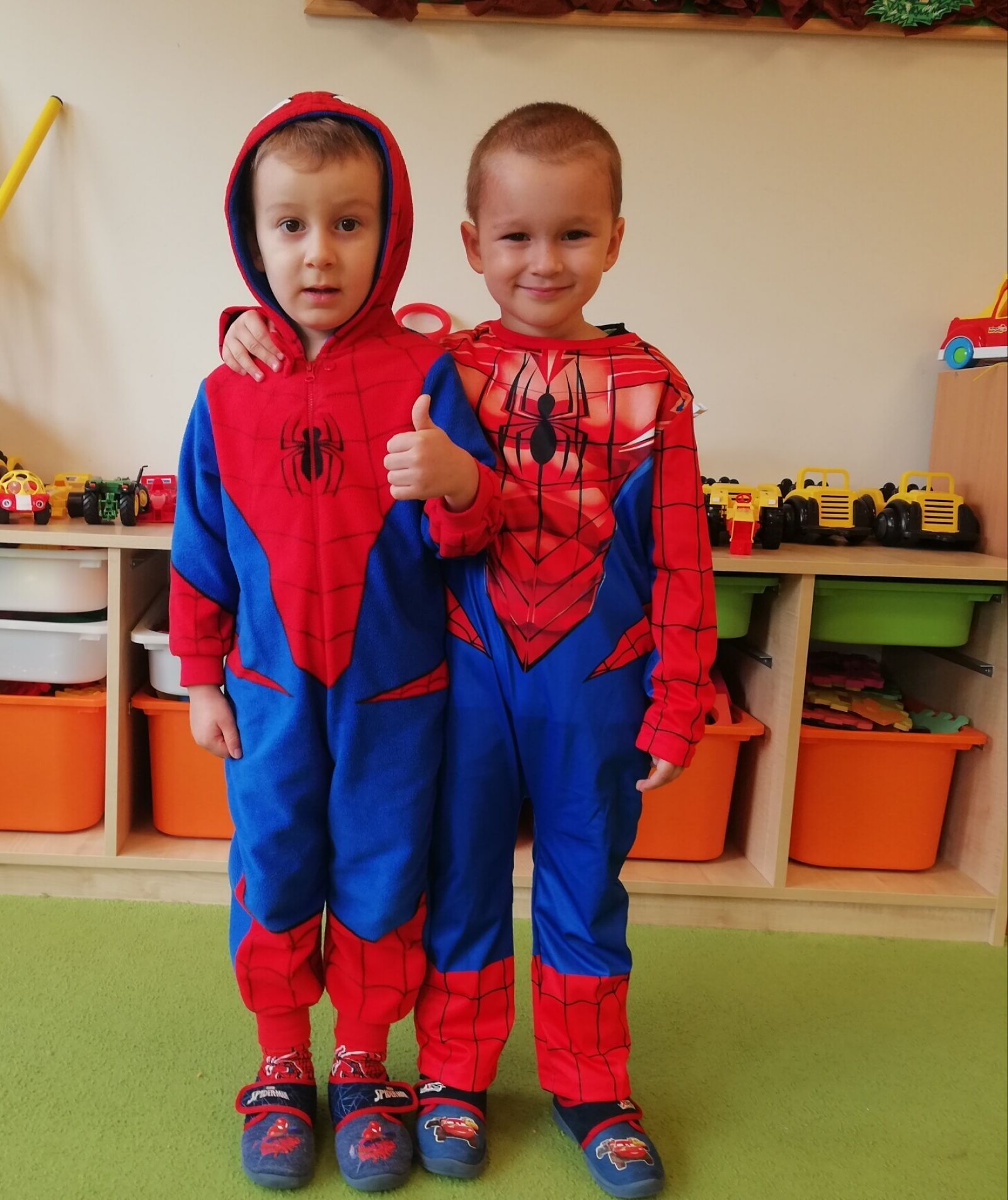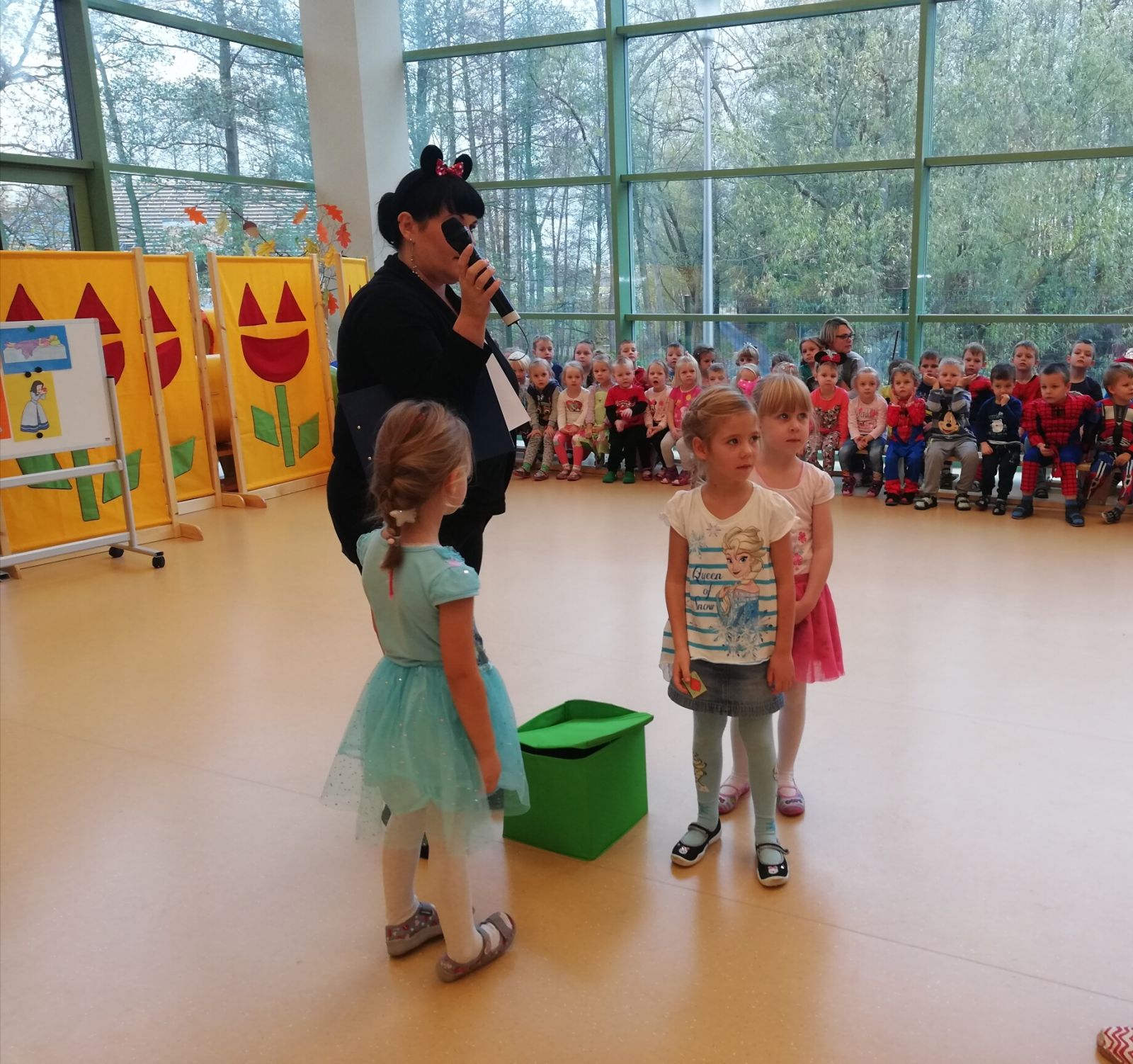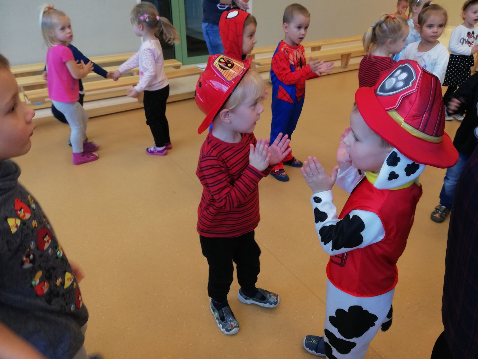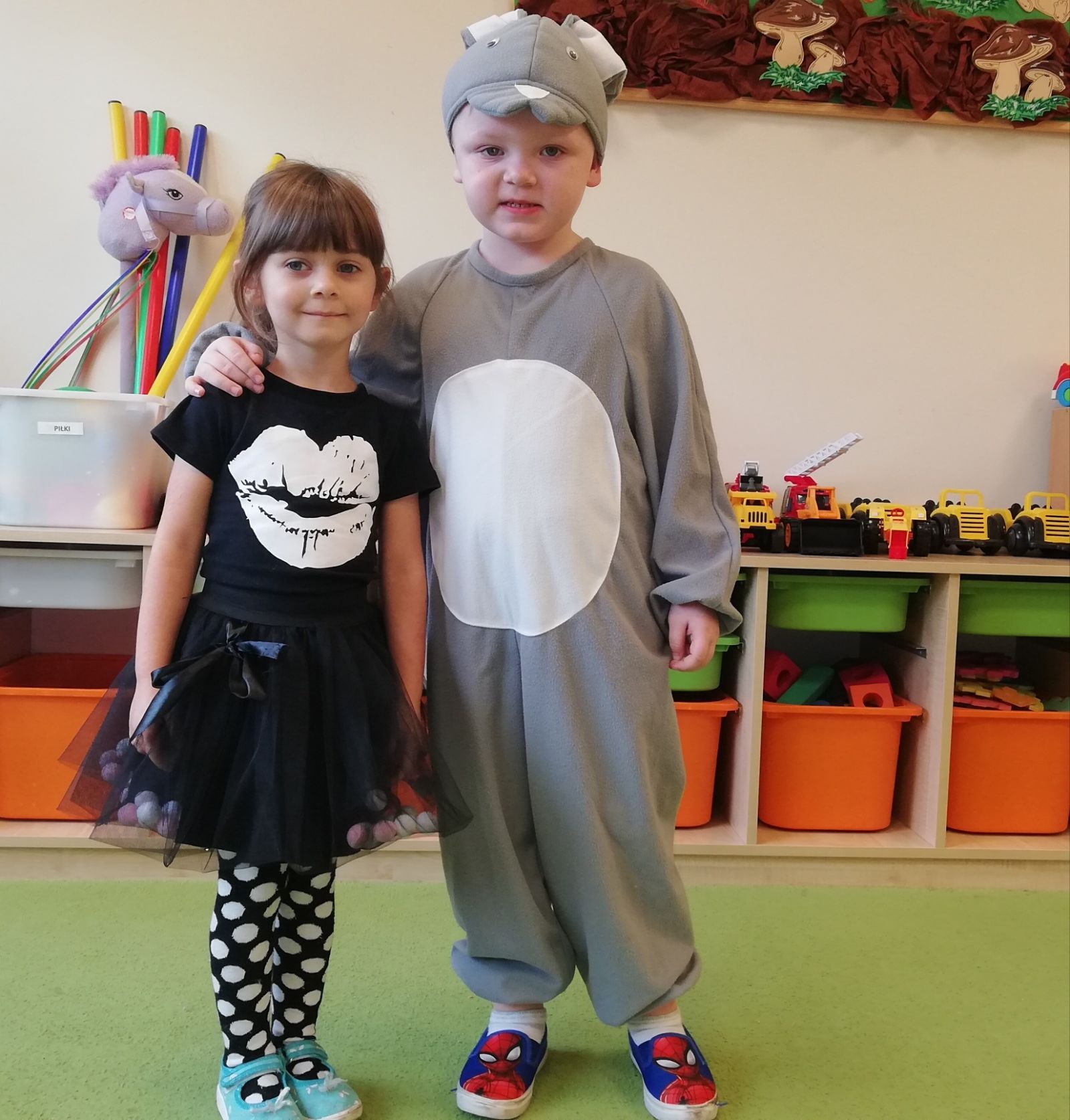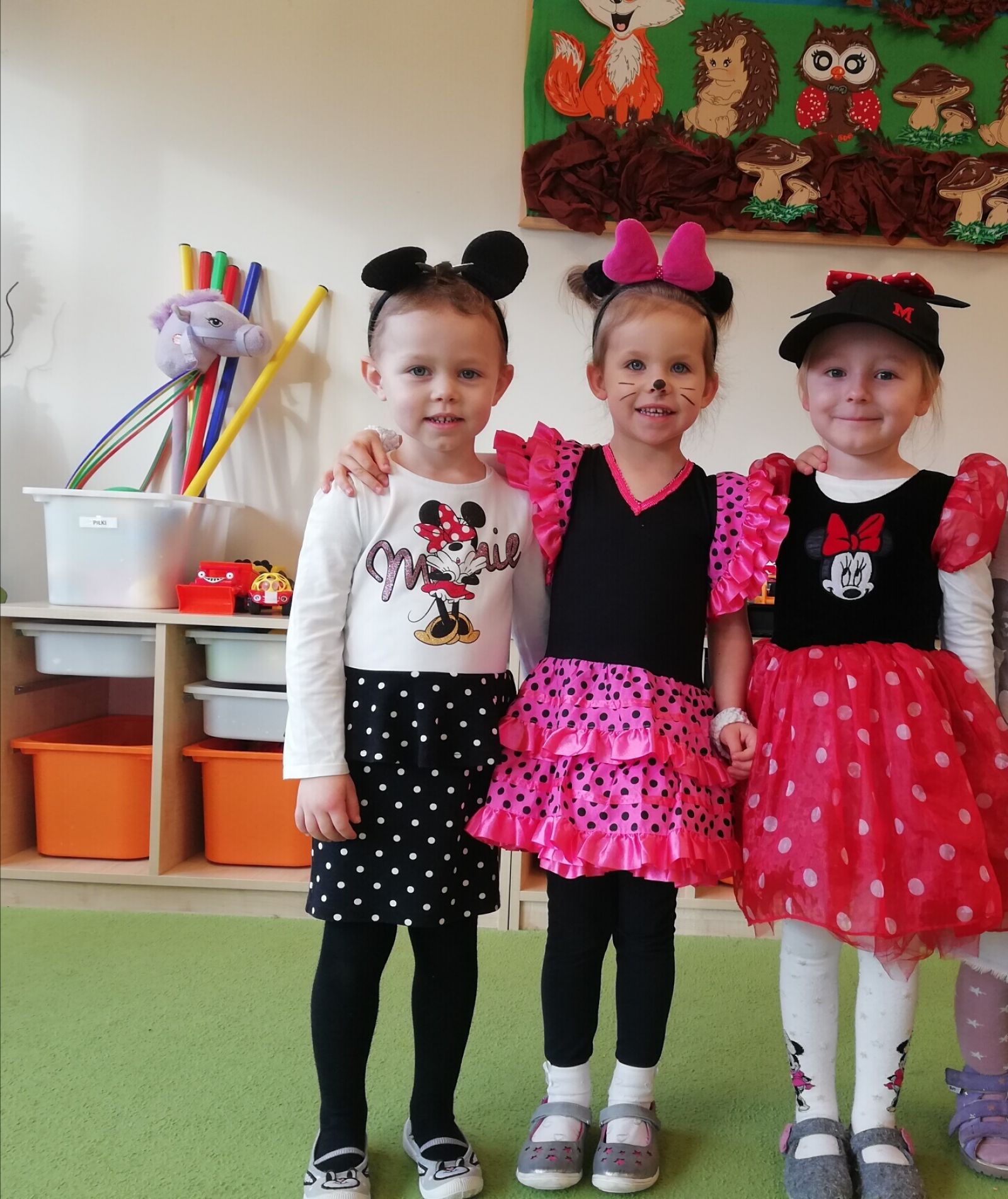 Dnia 05.11.2019r. obchodziliśmy w przedszkolu Dzień Postaci z Bajek. Wszystkie Motylki przybyły do przedszkola przebrane za rozmaitych bohaterów z bajek lub miały na sobie odzież z nadrukami bajkowych postaci. Zaraz po śniadaniu zebraliśmy się w auli, gdzie odbyły się zabawy integracyjne przy muzyce. Mieliśmy okazję rozwiązywać tematyczne zagadki, układać puzzle z bohaterami bajek, rozpoznawać bajki po słyszanej melodii oraz rekwizytach losowanych z kolorowego pudełka. Okazało się, że dzieci znają doskonale wszystkie bajki i są ich miłośnikami. Motylki są zwolennikami takich imprez przedszkolnych.