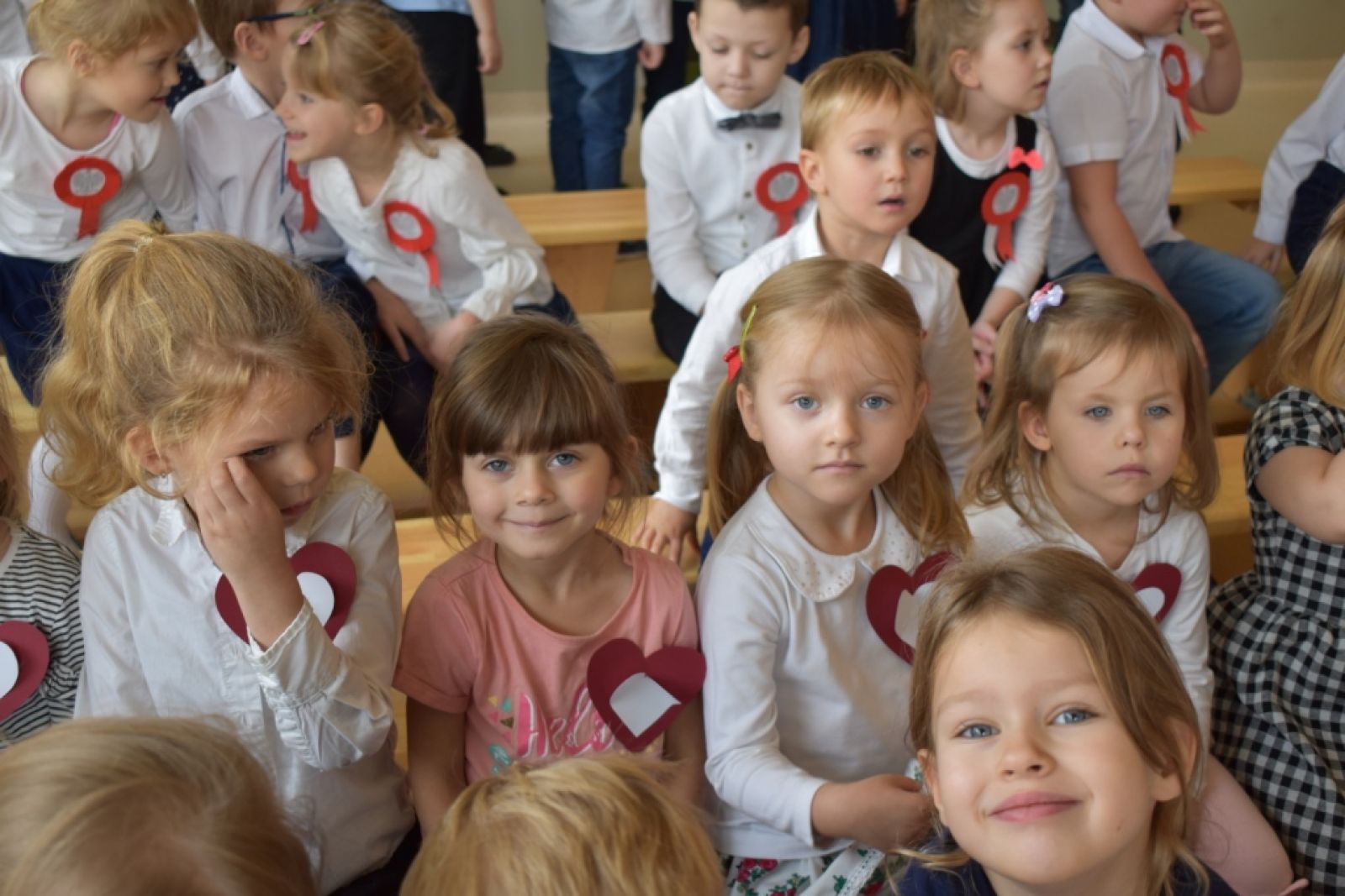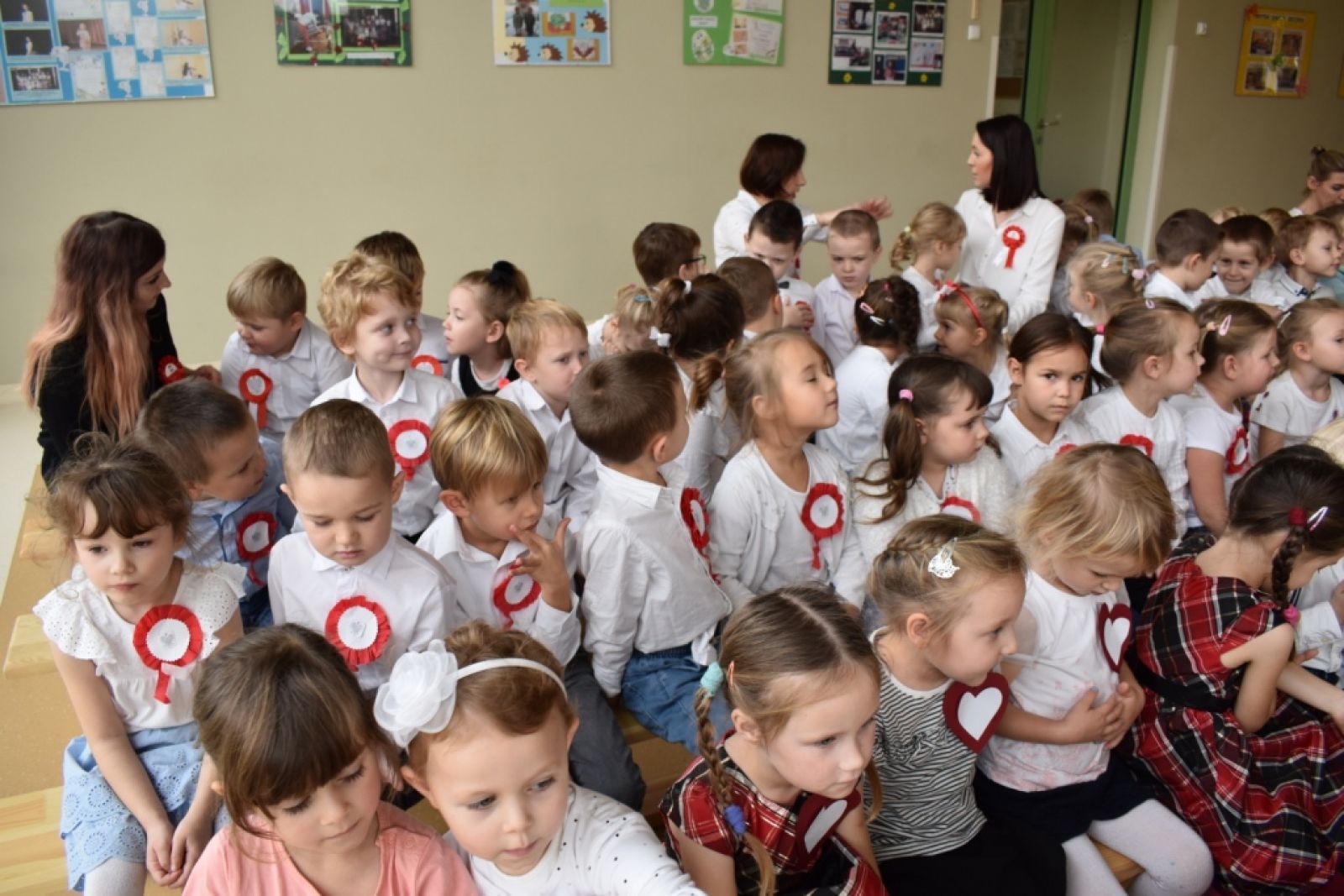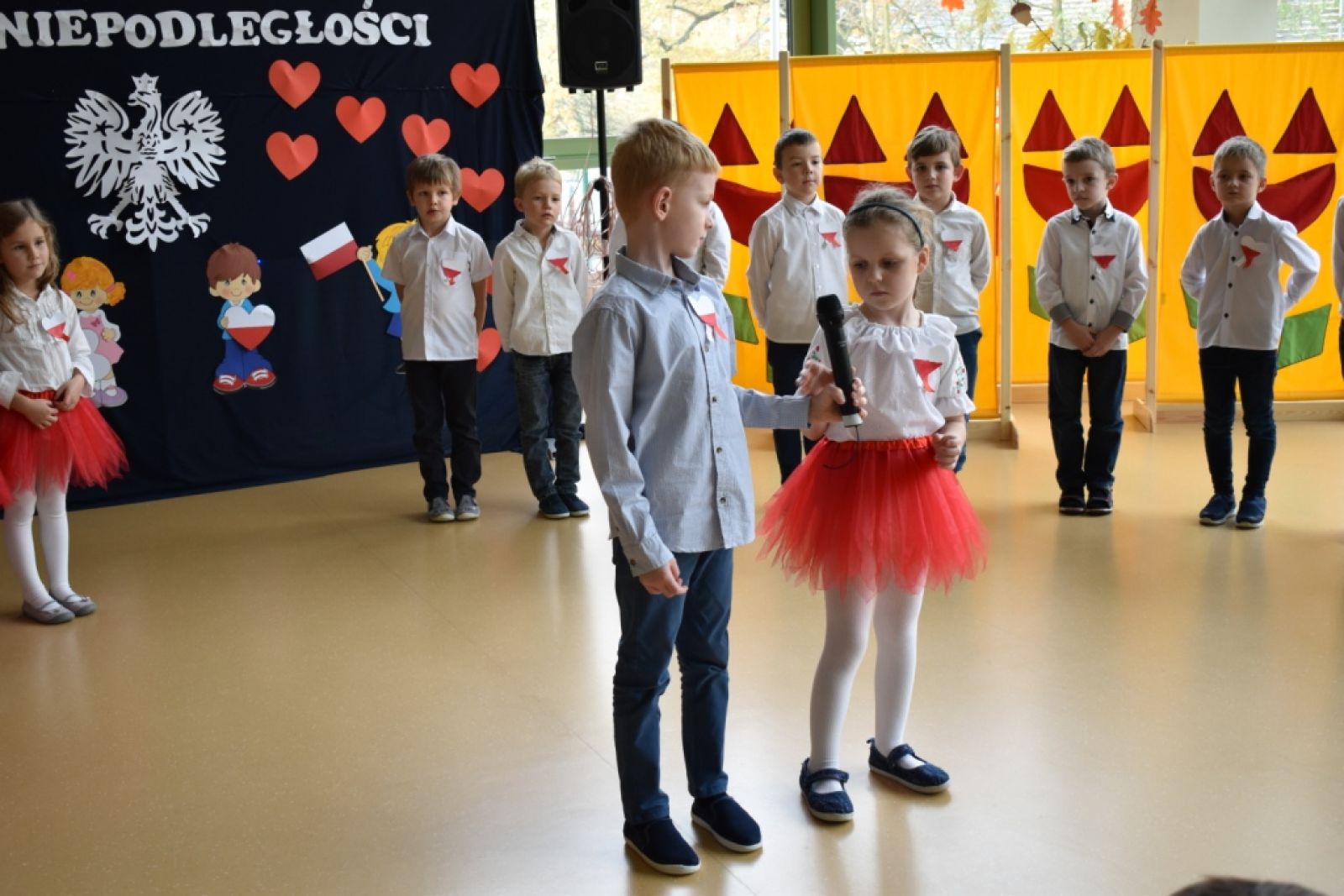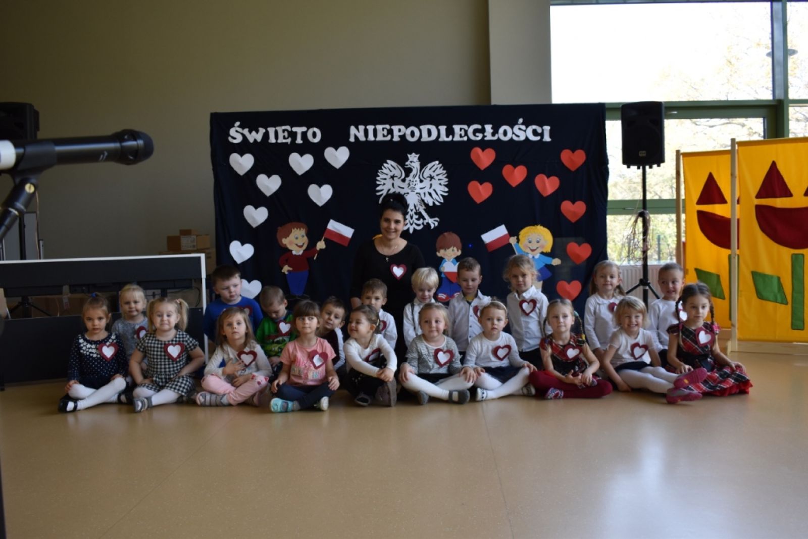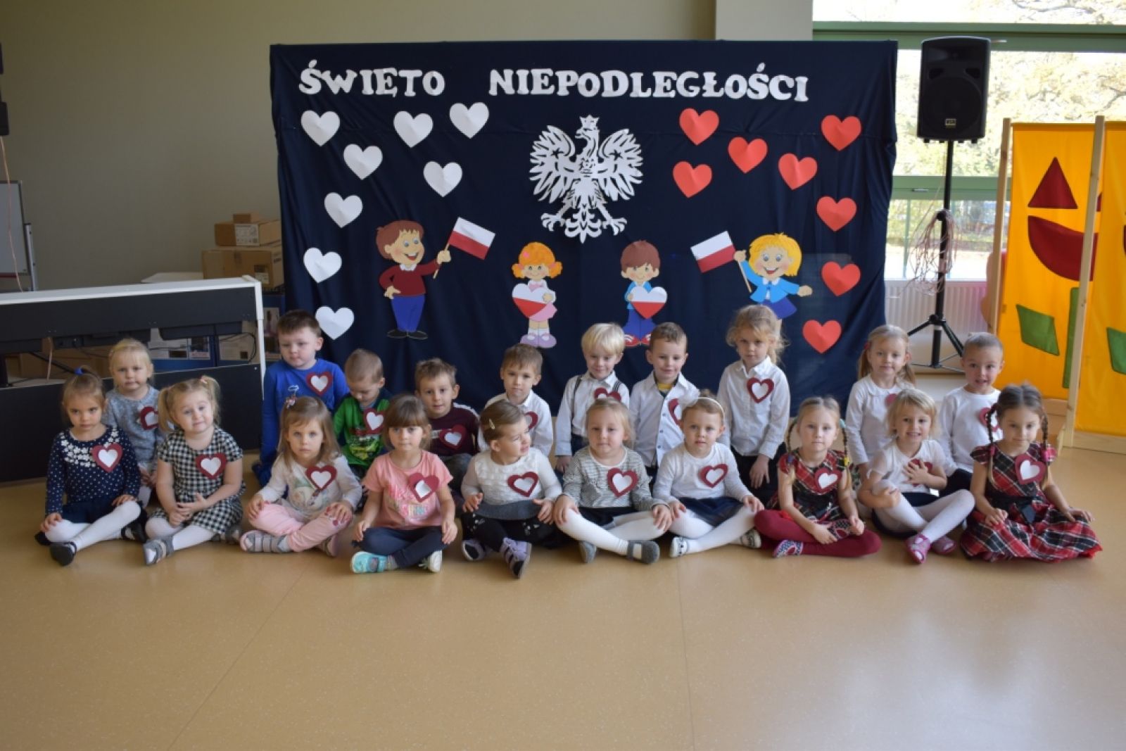 Dnia 08.11.2019r. obchodziliśmy w przedszkolu Narodowe Święto Odzyskania Niepodległości. To już 101 rocznica wolności naszego kraju i z tej okazji najstarsza grupa przedszkolna "Delfinki" pod kierownictwem Pani Eli, przygotowała piękny, uroczysty apel patriotyczny. Uroczystość była niezwykle wzruszająca, ponieważ przypomniała nam o tych wszystkich, którzy zginęli walcząc w obronie naszej ojczyzny. Apel pozwolił nam utrwalić znaczenie naszych symboli narodowych. Wspólnie odśpiewaliśmy hymn narodowy, który mimo tego, że jest trudny, to pięknie wybrzmiał w ust i serc naszych małych patriotów.