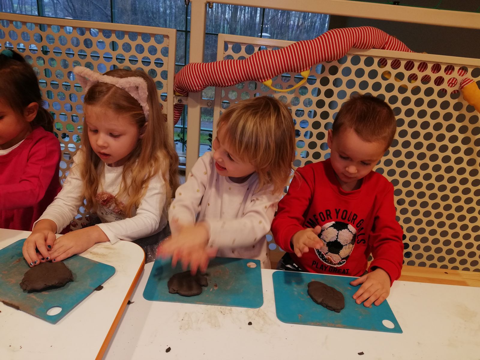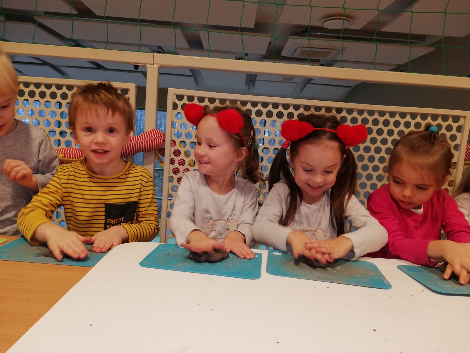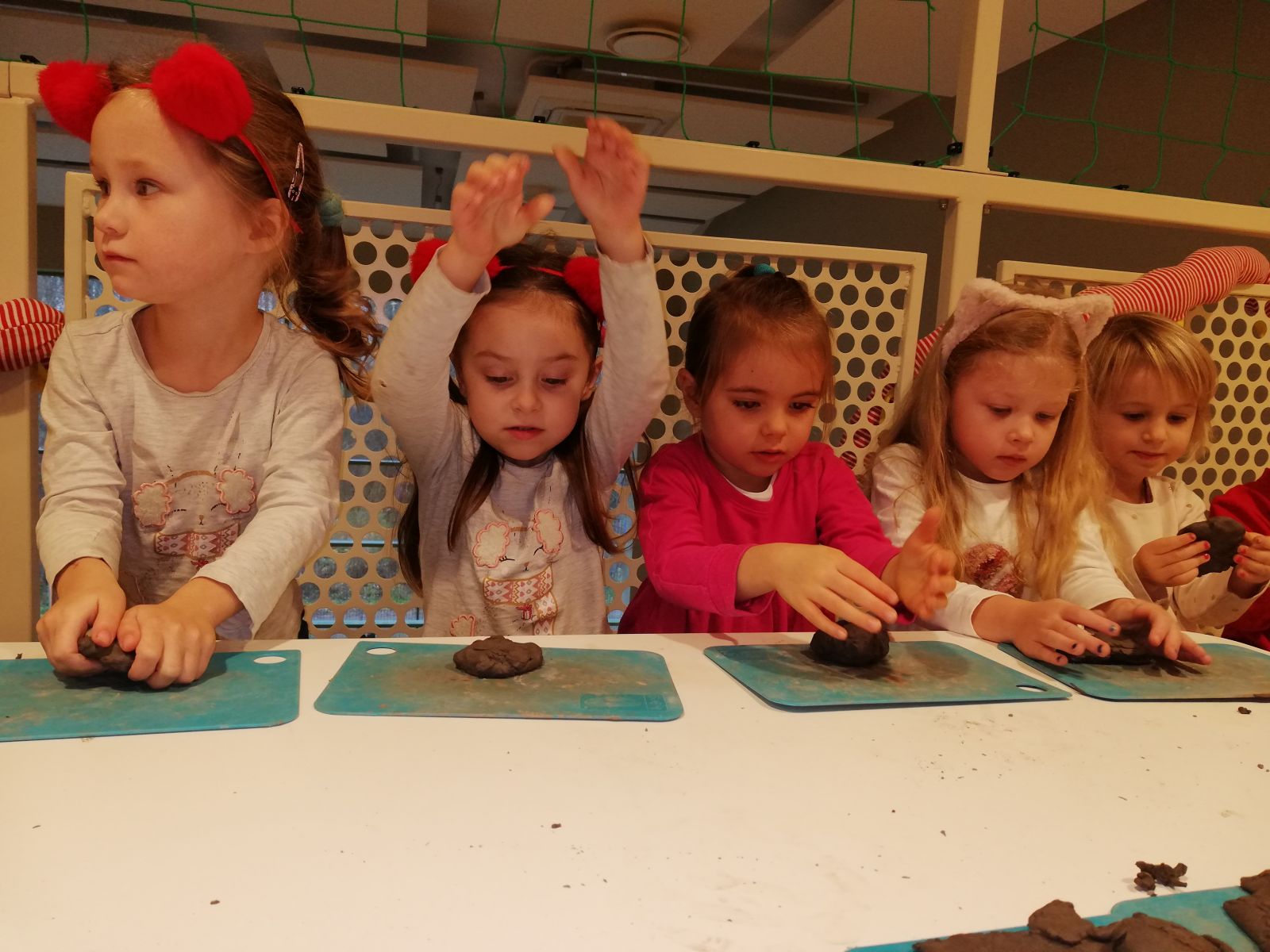 Dnia 21.11.2019r. odbyły się w naszym przedszkolu kolejne z cyklu warsztaty lepienia z gliny, tym razem o tematyce świątecznej. Motylki pracowały w pocie czoła, aby wyrzeźbić świąteczny upominek dla swoich kochanych rodziców. Efekty naszej pracy rodzice będą mogli podziwiać już wkrótce :)