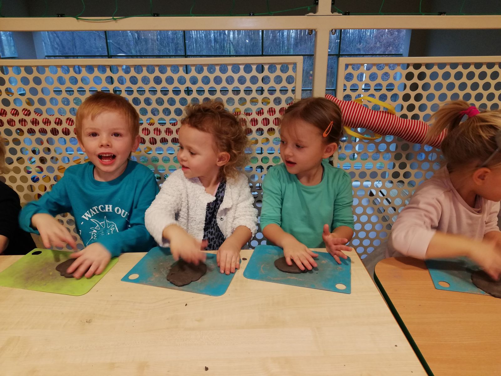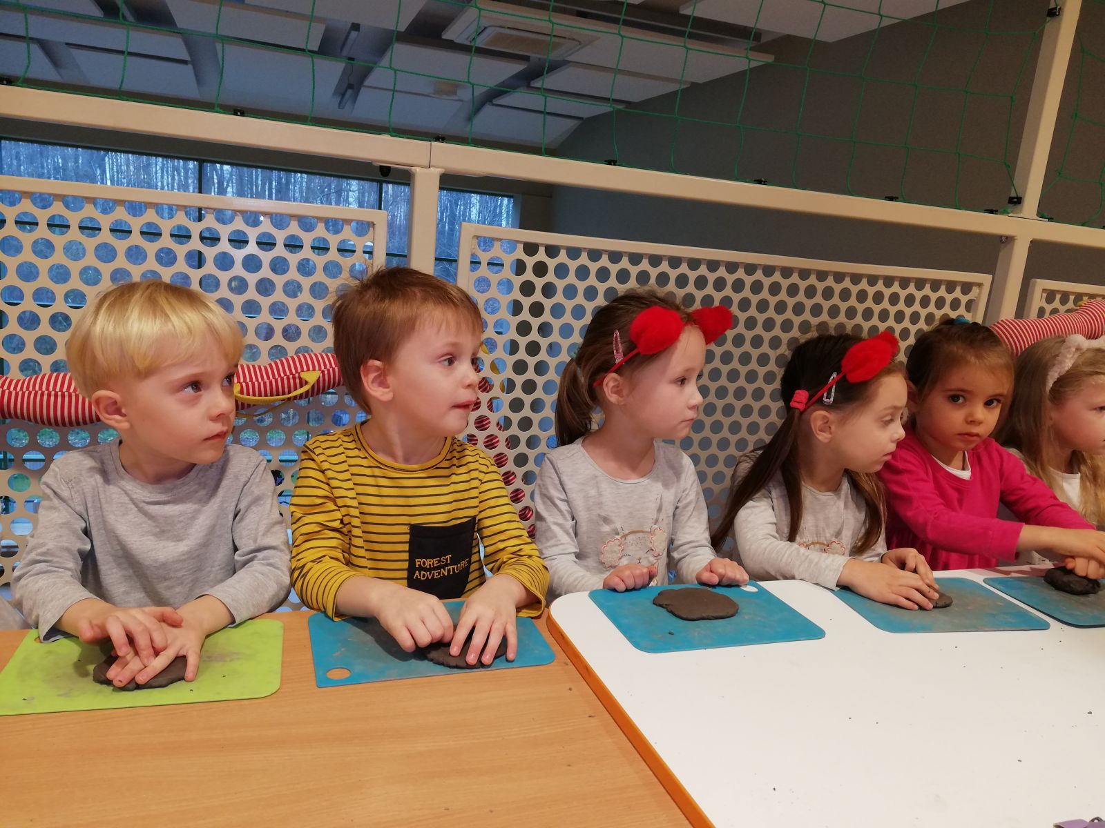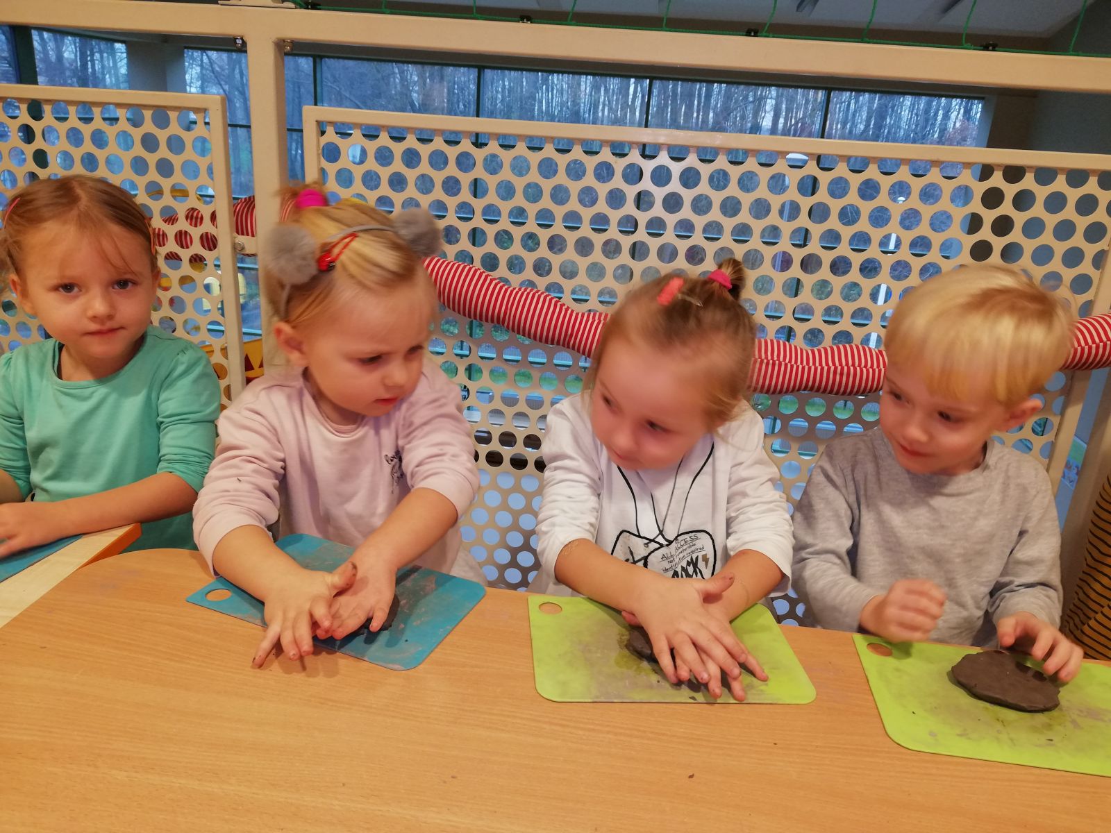 Dnia 21.11.2019r. odbyły się w naszym przedszkolu kolejne z cyklu warsztaty lepienia z gliny, tym razem o tematyce świątecznej. Motylki pracowały w pocie czoła, aby wyrzeźbić świąteczny upominek dla swoich kochanych rodziców. Efekty naszej pracy rodzice będą mogli podziwiać już wkrótce :)