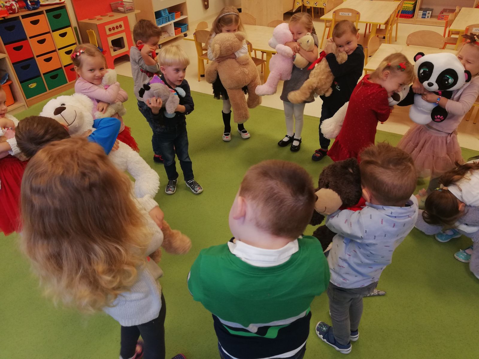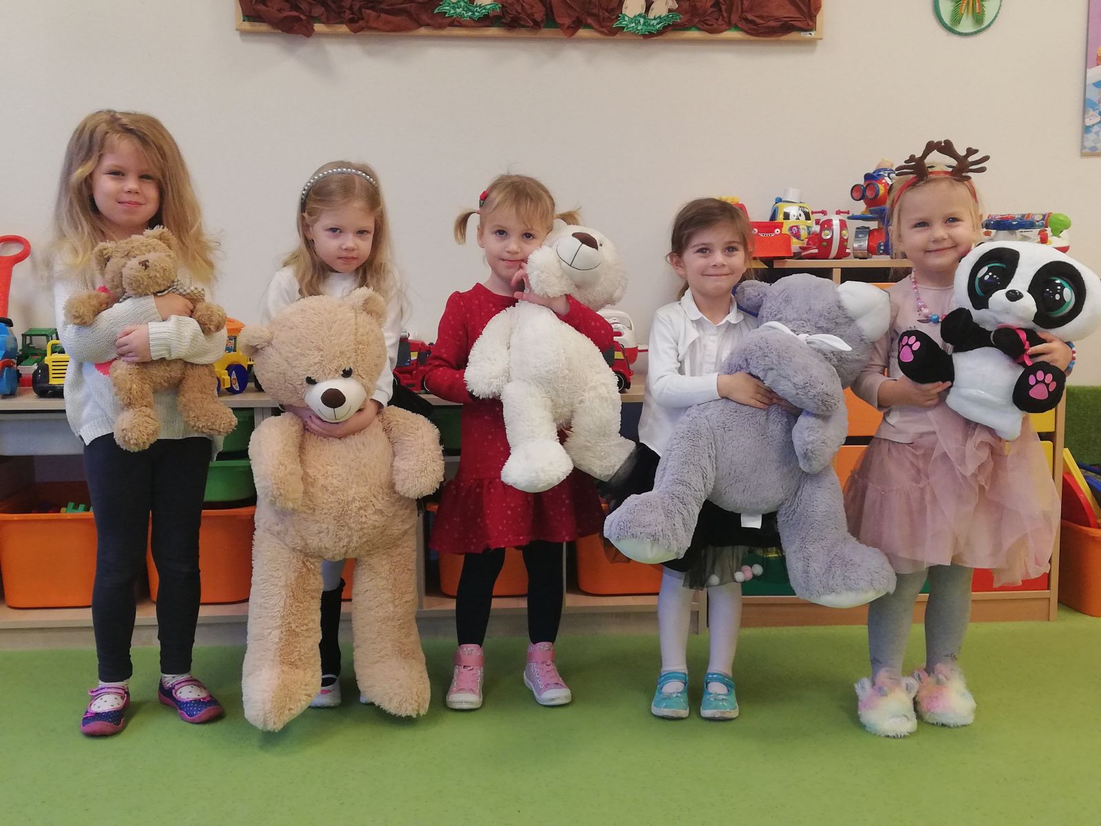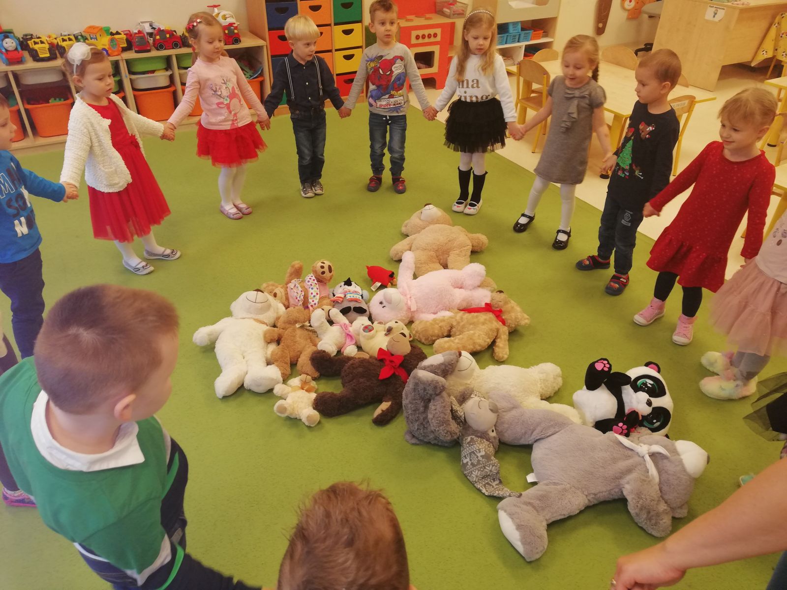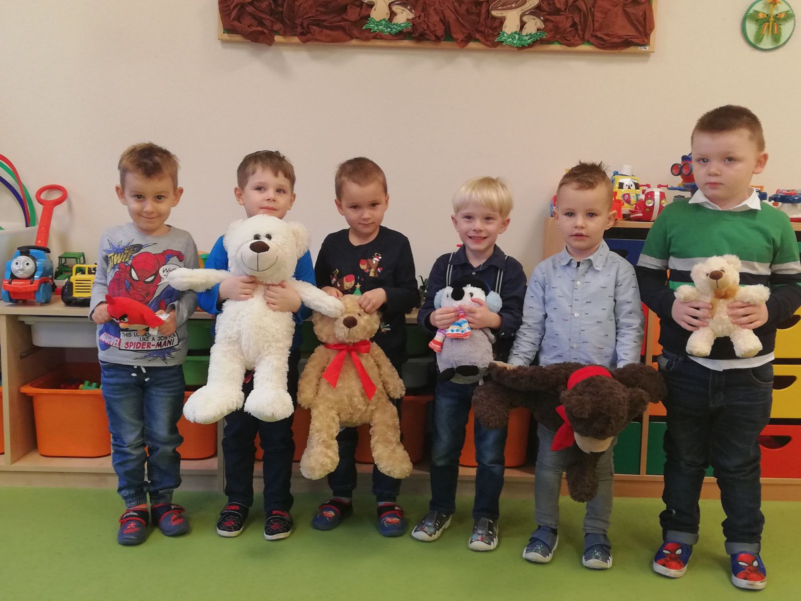 Dnia 25.11.2019r. obchodziliśmy w naszej grupie Dzień Pluszowego Misia. Wszystkie Motylki przyniosły ze sobą swoje ulubione misiowe przytulanki, którym wyprawiliśmy urodziny. Zaśpiewaliśmy misiom "sto lat", porwaliśmy je do tańca oraz wspólnych tematycznych zabaw. Misie bardzo często przychodzą z nami do przedszkola, ale ten dzień był szczególny, bo mieliśmy okazję okazać im jak wiele dla nas znaczą.