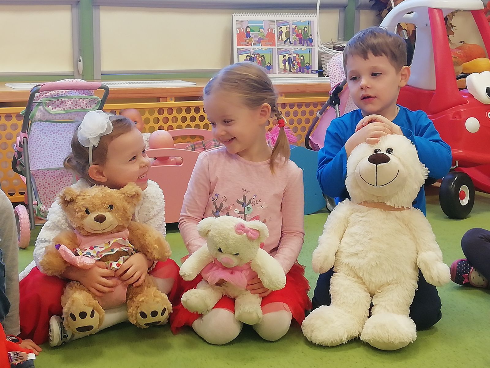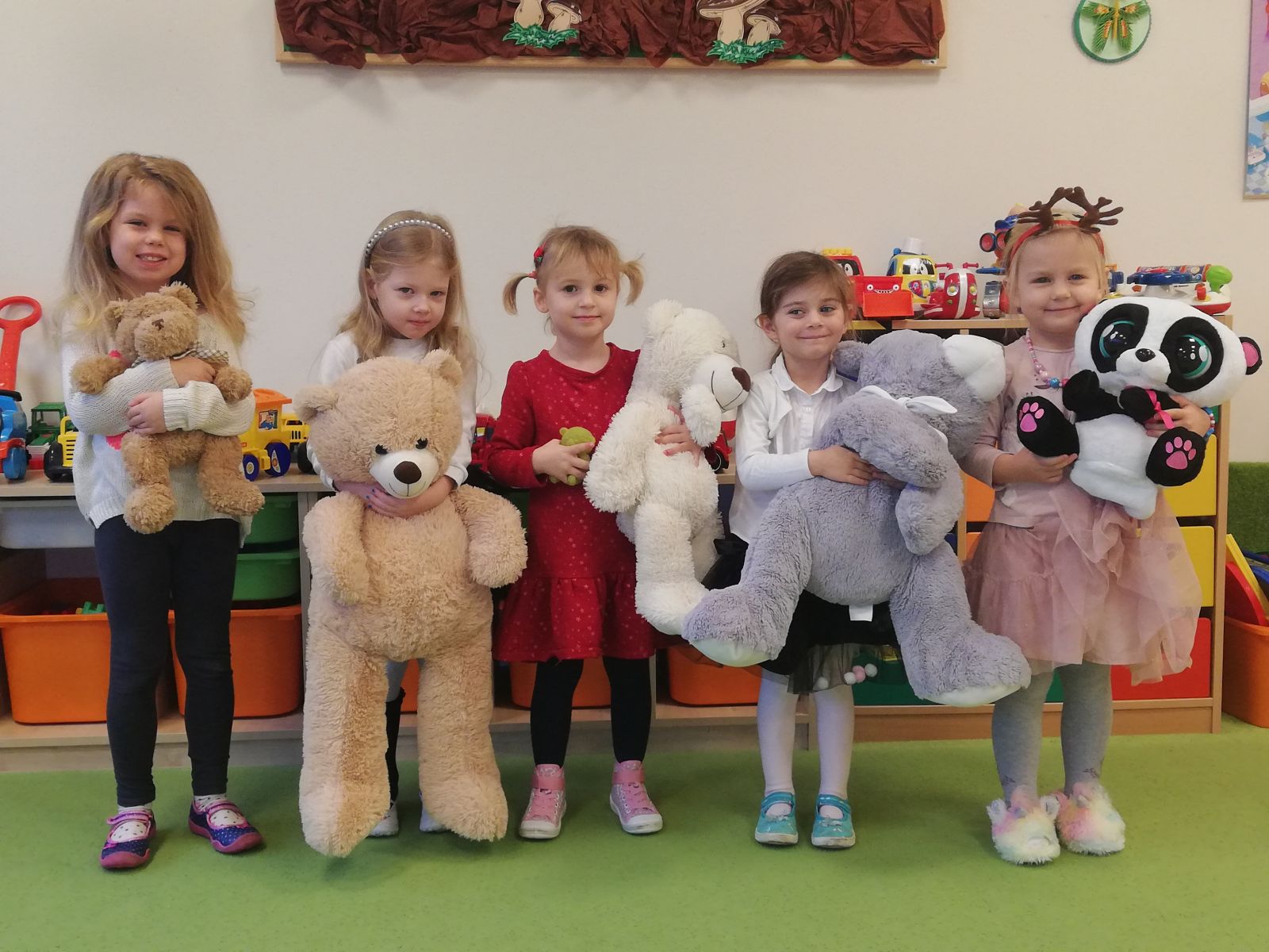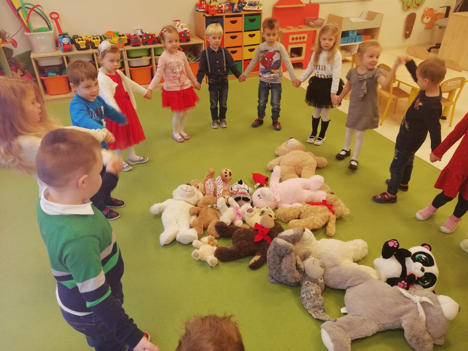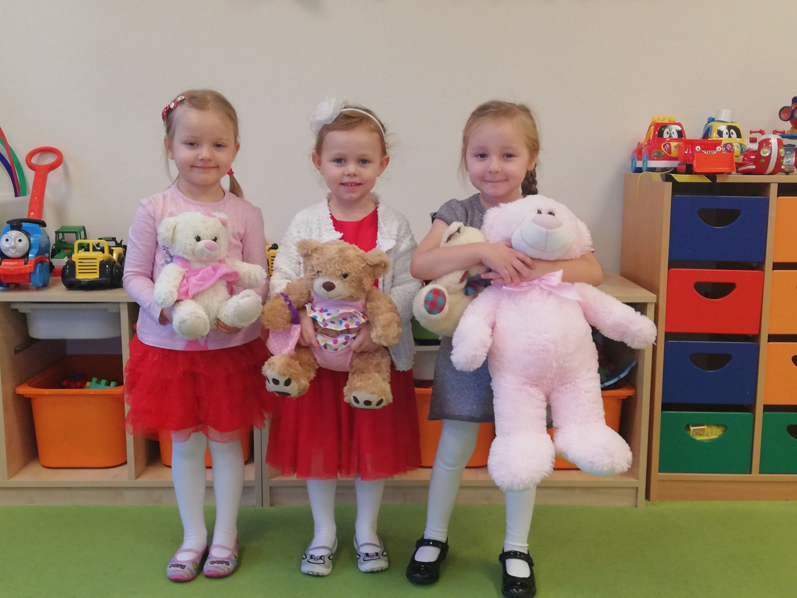 Dnia 25.11.2019r. obchodziliśmy w naszej grupie Dzień Pluszowego Misia. Wszystkie Motylki przyniosły ze sobą swoje ulubione misiowe przytulanki, którym wyprawiliśmy urodziny. Zaśpiewaliśmy misiom "sto lat", porwaliśmy je do tańca oraz wspólnych tematycznych zabaw. Misie bardzo często przychodzą z nami do przedszkola, ale ten dzień był szczególny, bo mieliśmy okazję okazać im jak wiele dla nas znaczą.