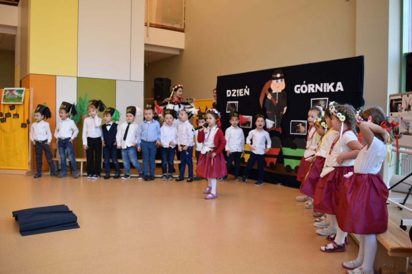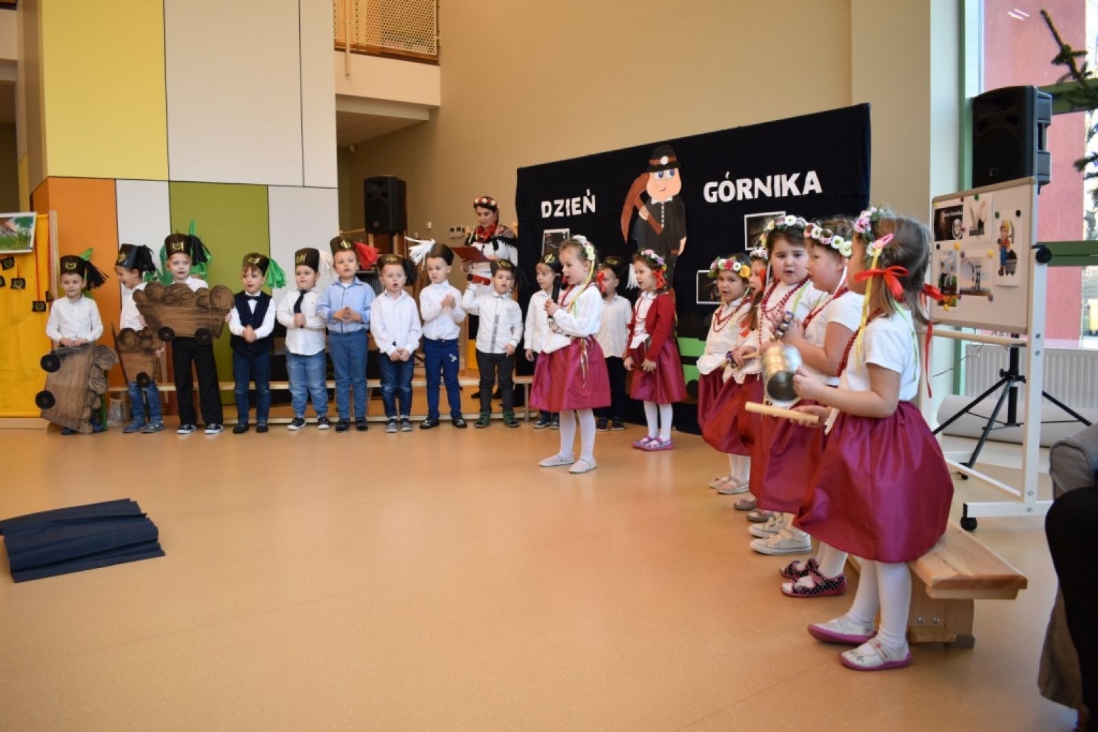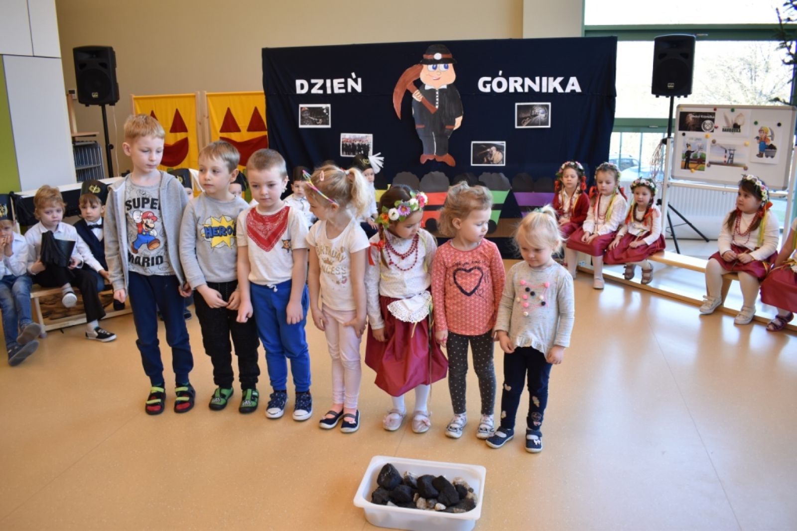 Dnia 05.12.2019r. obchodziliśmy w przedszkolu Dzień Górnika. Odwiedził nas zaproszony gość, Pan Zbigniew- górnik z Zakładu Gazowniczego w Toruniu, który opowiedział nam o swojej pracy, jej trudach, niebezpieczeństwach oraz udzielił odpowiedzi na wszystkie nurtujące nas pytania dotyczące tego nietypowego zawodu. Grupa "Jeżyki" przygotowała dla pozostałych grup przedszkolnych cudowny występ artystyczny nawiązujący do tradycji Śląska, kopalni oraz górników. Pani Martyna i Pani Marta w strojach Ślązaczek poprowadziły z nami zabawy tematyczne i integracyjne przy muzyce. Poznaliśmy historię powstania węgla oraz legendę o patronce górników św. Barbarze. To była pierwsza uroczystość w naszym przedszkolu związana z Dniem Górnika i już na trwałe zapisze się w kalendarium imprez przedszkolnych.