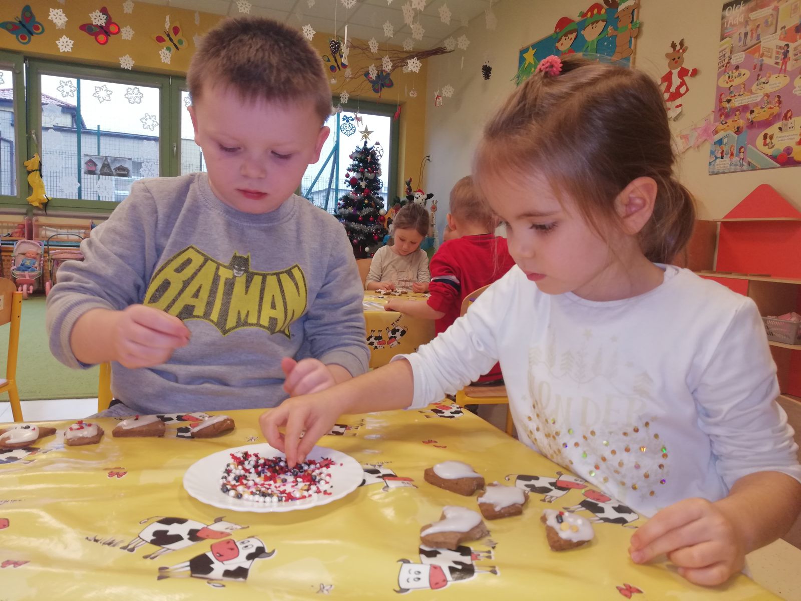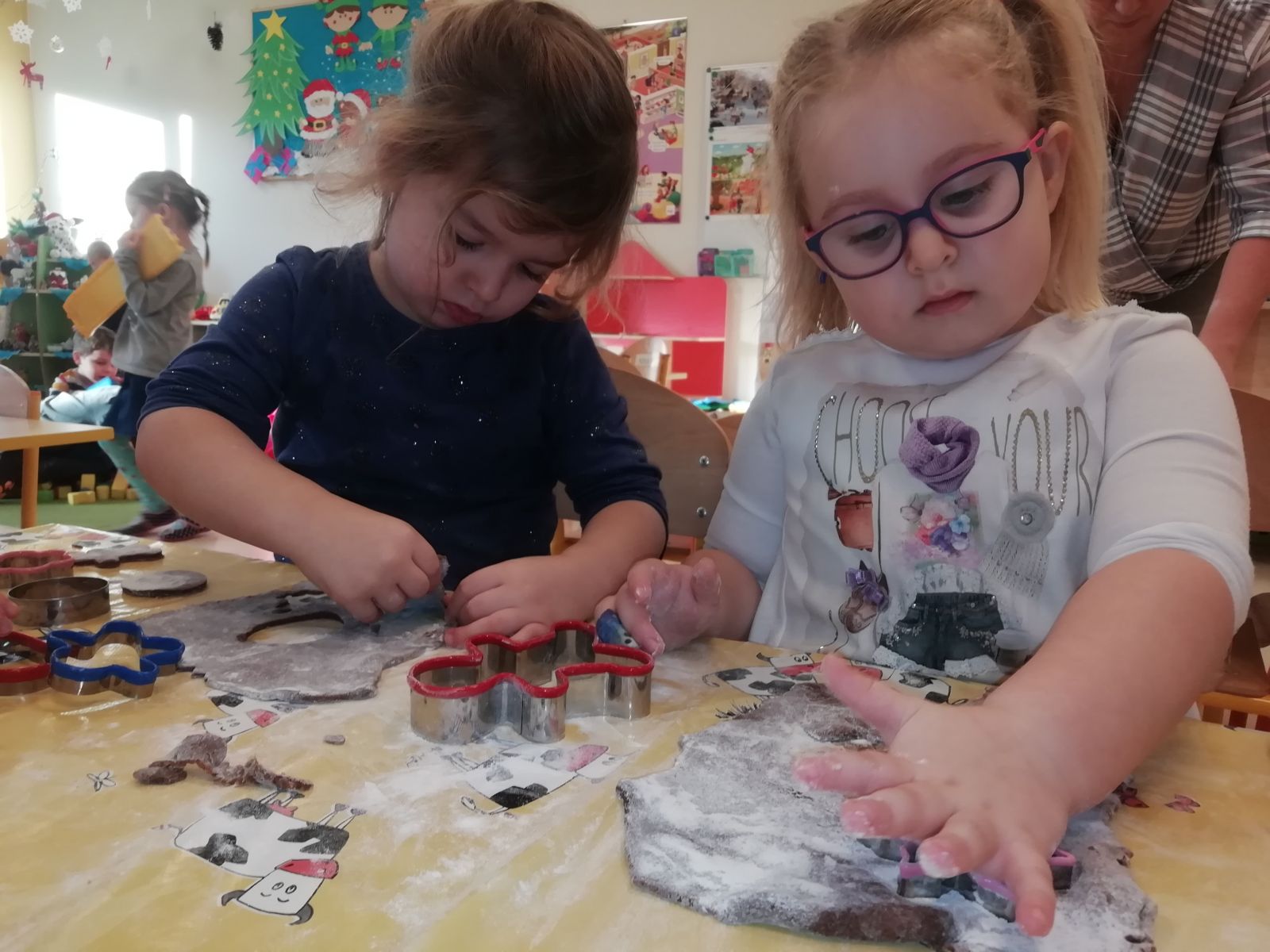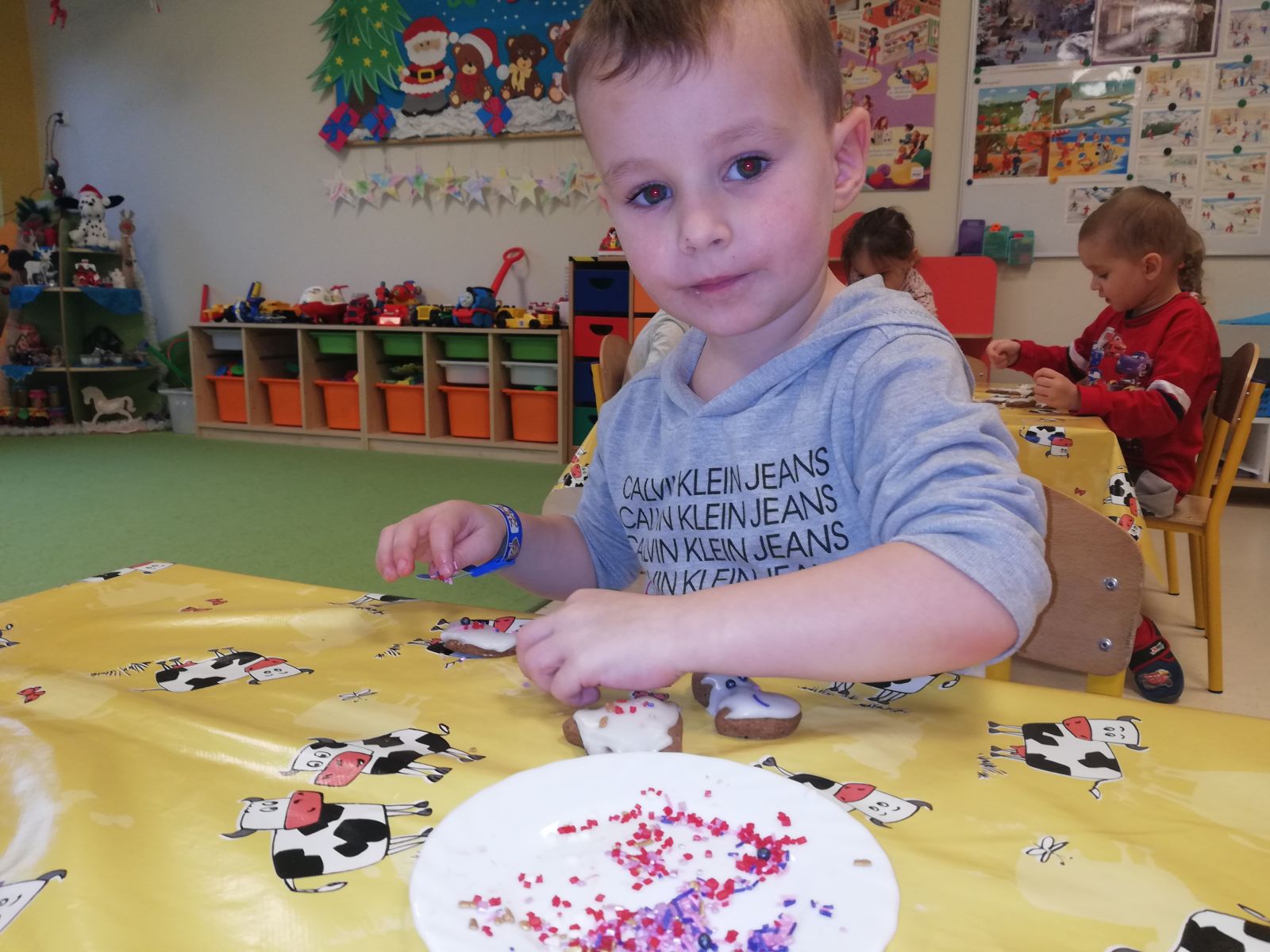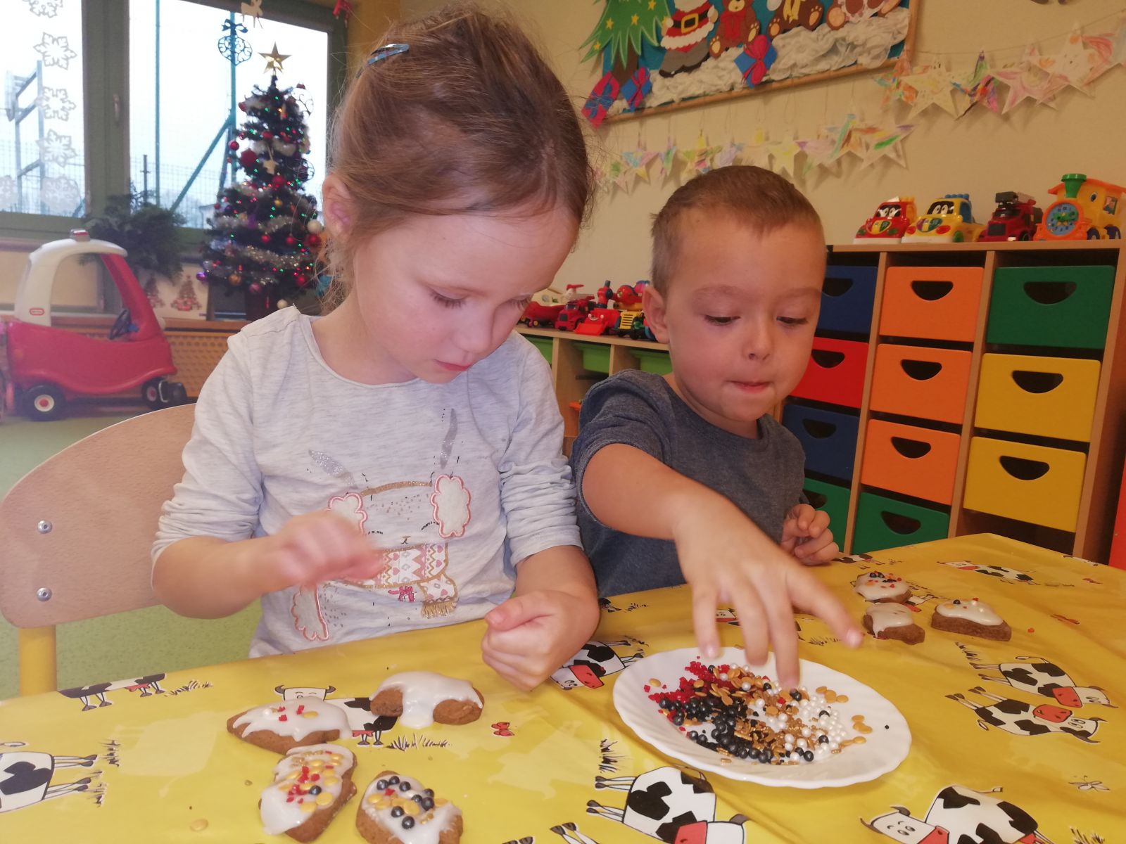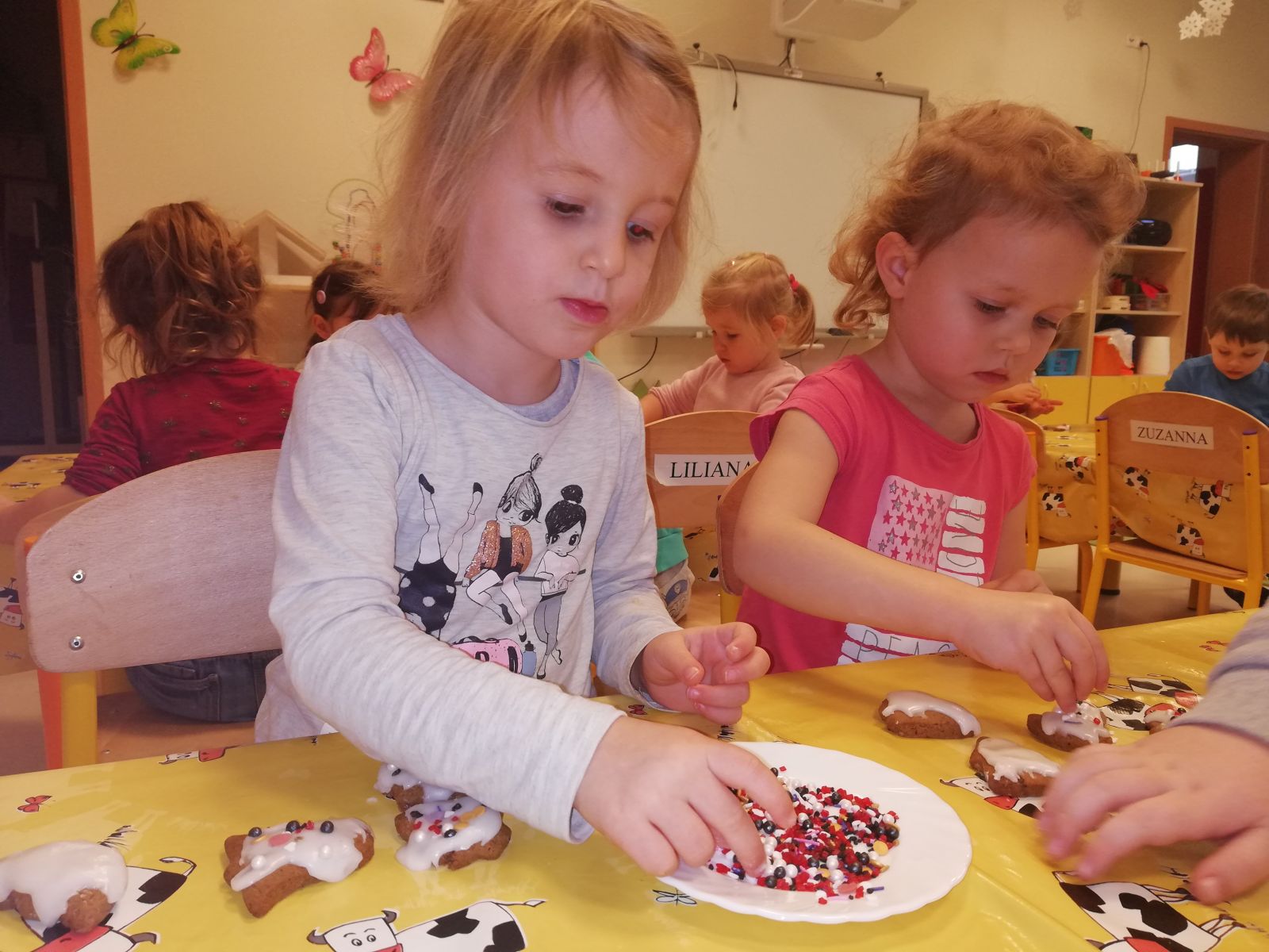 Dnia 11.12.2019r. Motylki ochoczo zabrały się do pieczenia świątecznych pierników. Wyrabiały ciasto, wałkowały i wycinały pierniczki za pomocą foremek. Kolejnego dnia, gdy pierniczki wypiekły się i wystygły zabraliśmy się za ich dekorowanie. To była wspaniała zabawa :) Efekty naszych prac już niebawem ocenią rodzice, którzy na spotkaniu wigilijnym w naszej grupie będą mogli skosztować świątecznych smakołyków.