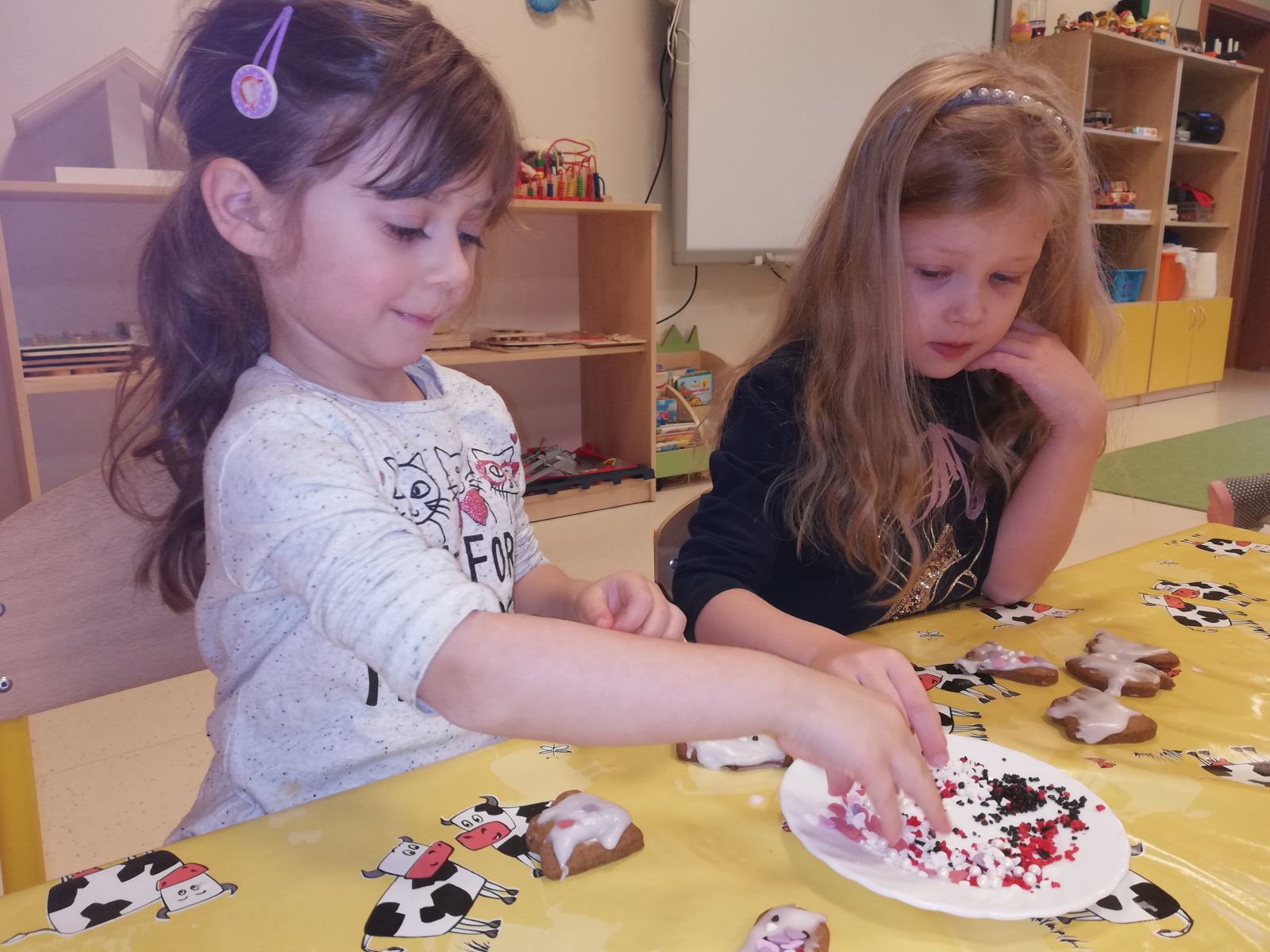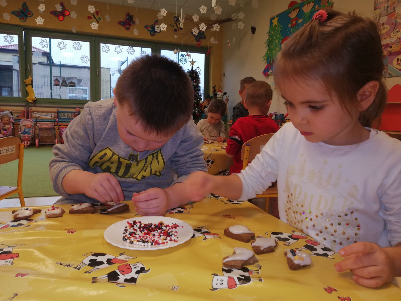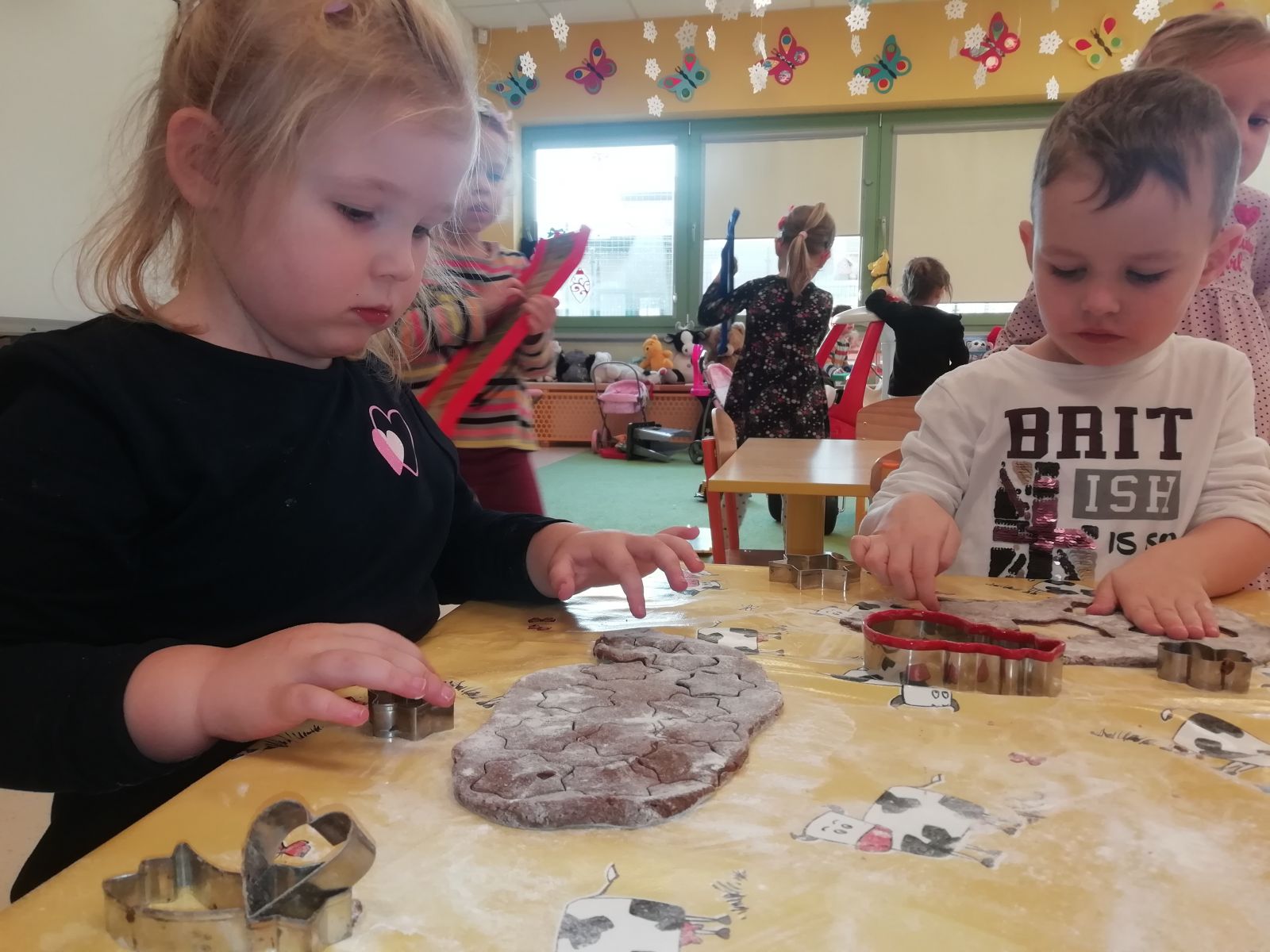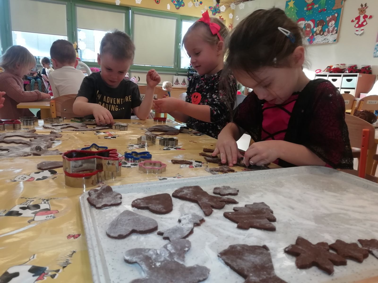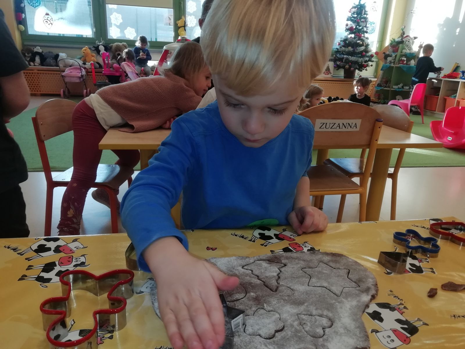 Dnia 11.12.2019r. Motylki ochoczo zabrały się do pieczenia świątecznych pierników. Wyrabiały ciasto, wałkowały i wycinały pierniczki za pomocą foremek. Kolejnego dnia, gdy pierniczki wypiekły się i wystygły zabraliśmy się za ich dekorowanie. To była wspaniała zabawa :) Efekty naszych prac już niebawem ocenią rodzice, którzy na spotkaniu wigilijnym w naszej grupie będą mogli skosztować świątecznych smakołyków.