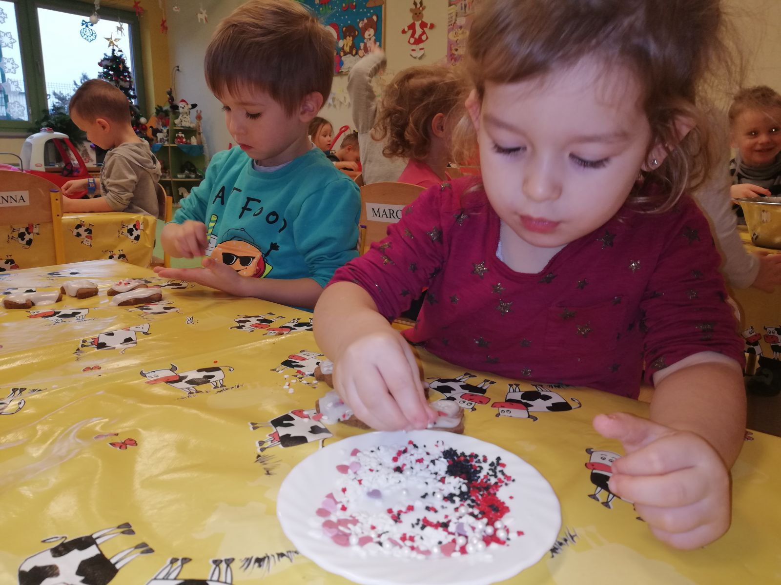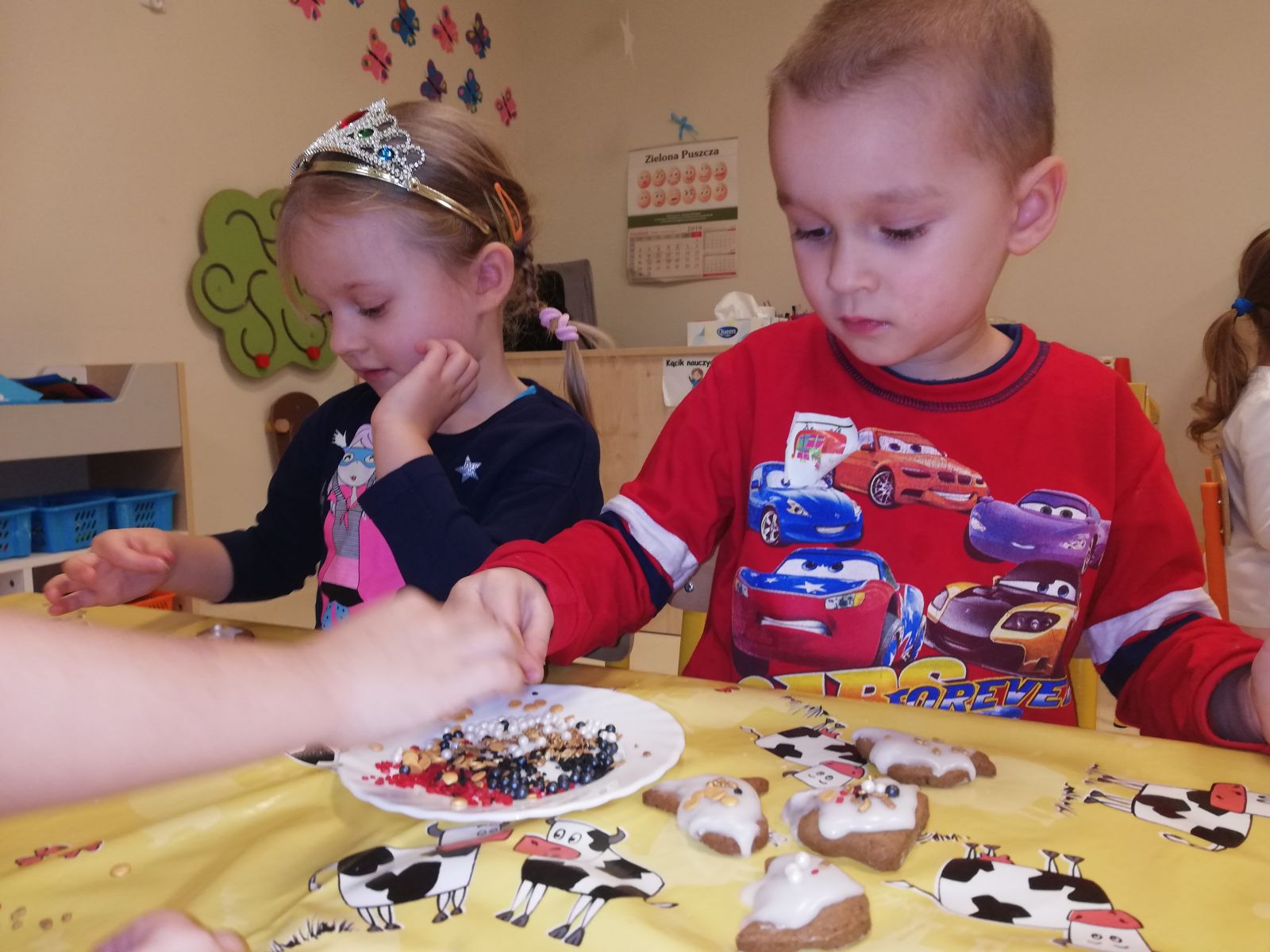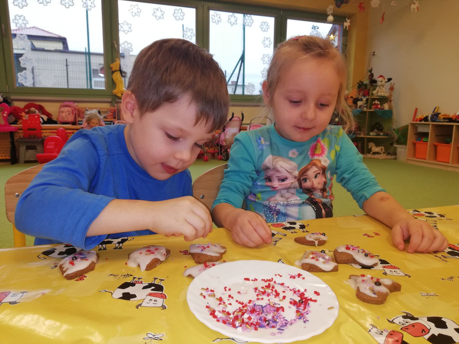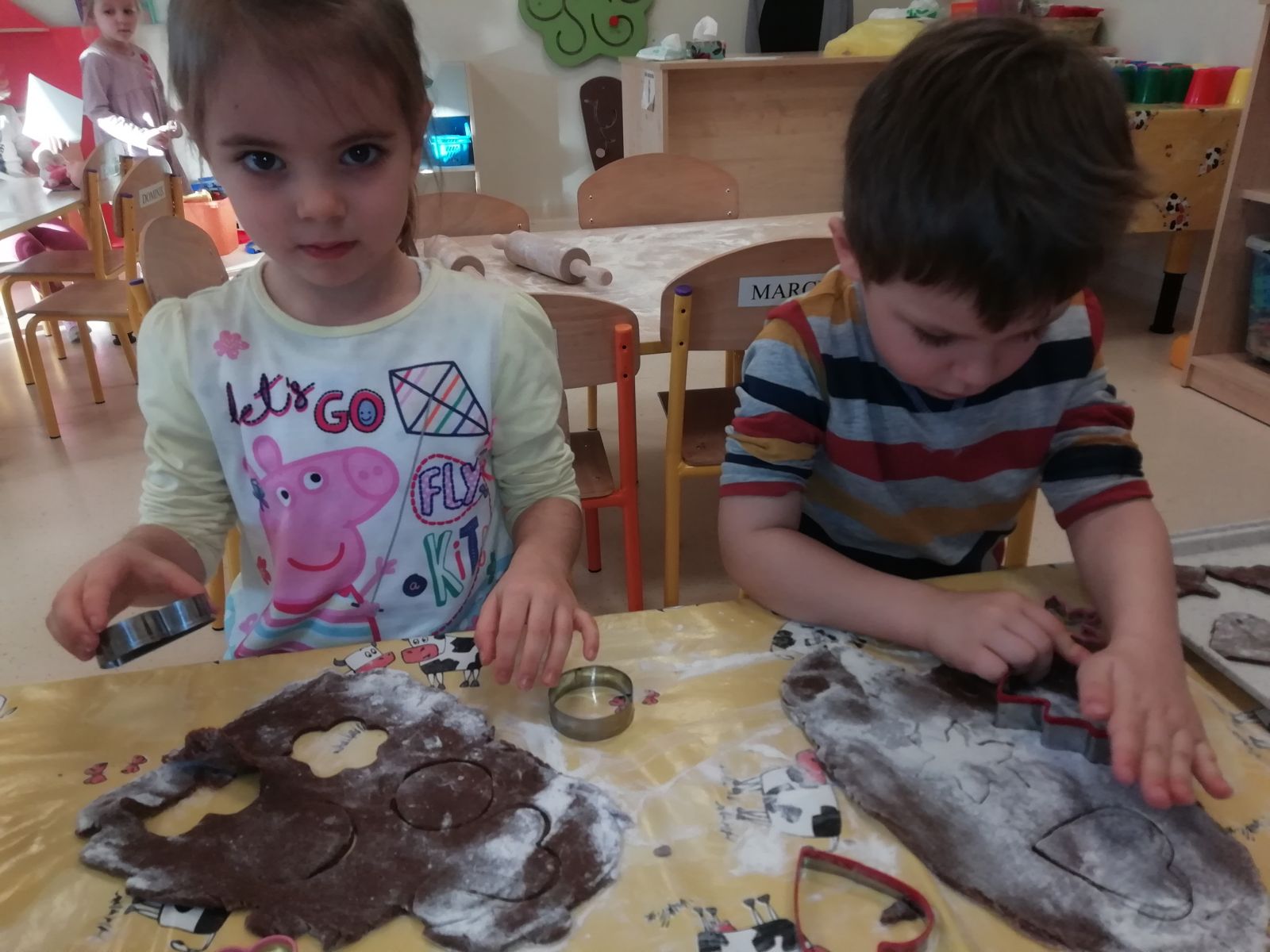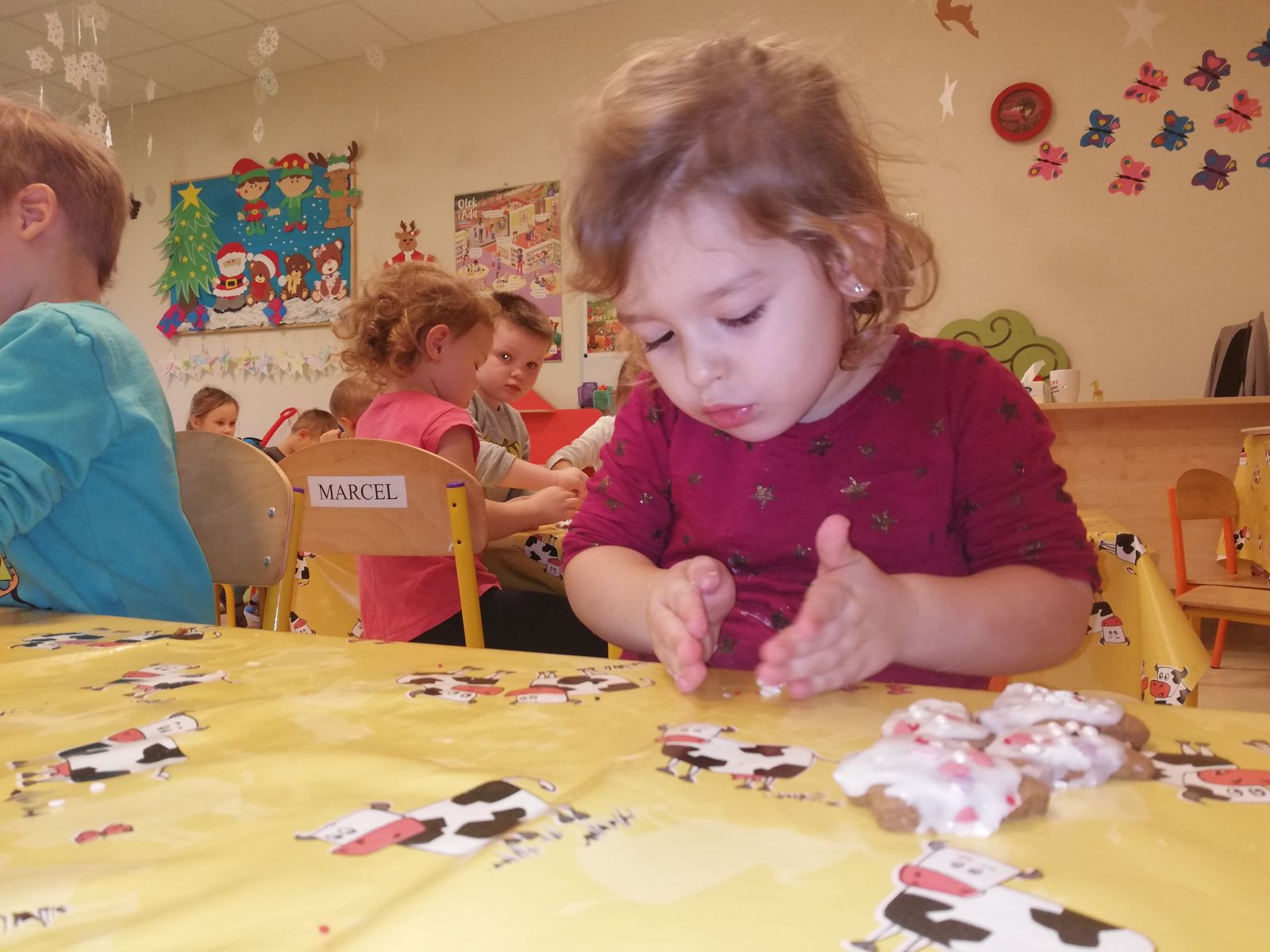 Dnia 11.12.2019r. Motylki ochoczo zabrały się do pieczenia świątecznych pierników. Wyrabiały ciasto, wałkowały i wycinały pierniczki za pomocą foremek. Kolejnego dnia, gdy pierniczki wypiekły się i wystygły zabraliśmy się za ich dekorowanie. To była wspaniała zabawa :) Efekty naszych prac już niebawem ocenią rodzice, którzy na spotkaniu wigilijnym w naszej grupie będą mogli skosztować świątecznych smakołyków.