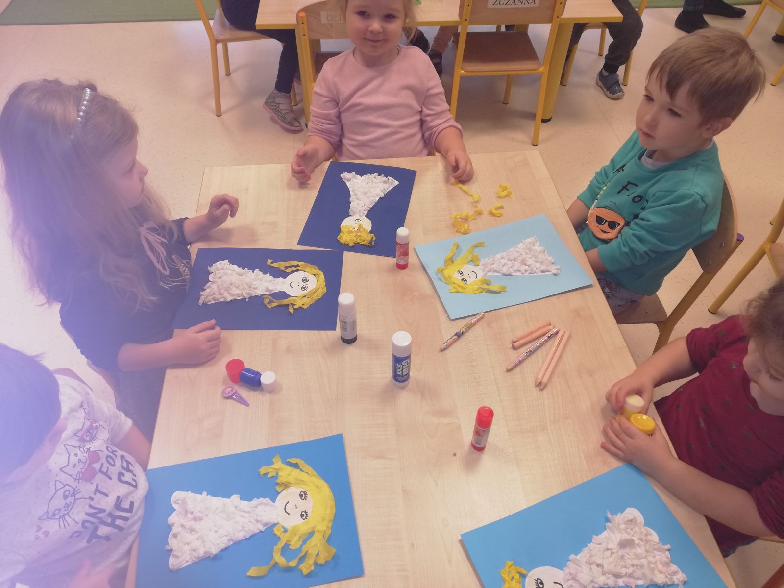 "Motylki" uwielbiają wykonywać rożnego rodzaju prace plastyczne, szczególnie, gdy towarzyszy temu świąteczna atmosfera i akompaniament najpiękniejszych polskich kolęd. Rozpoczął się dla nas wszystkich okres intensywnych przygotowań do świąt...strojenie choinki, pieczenie pierników oraz przygotowywanie przedstawienia Jasełkowego. W chwilach relaksu i odpoczynku znajdujemy również czas na rozwijanie swoich umiejętności plastycznych. Wytwory naszych rąk można już podziwiać na tablicy w szatni naszego przedszkola. Razem z anielskim orszakiem...życzymy wszystkim Wesołych Świąt i szczęśliwego Nowego Roku :)