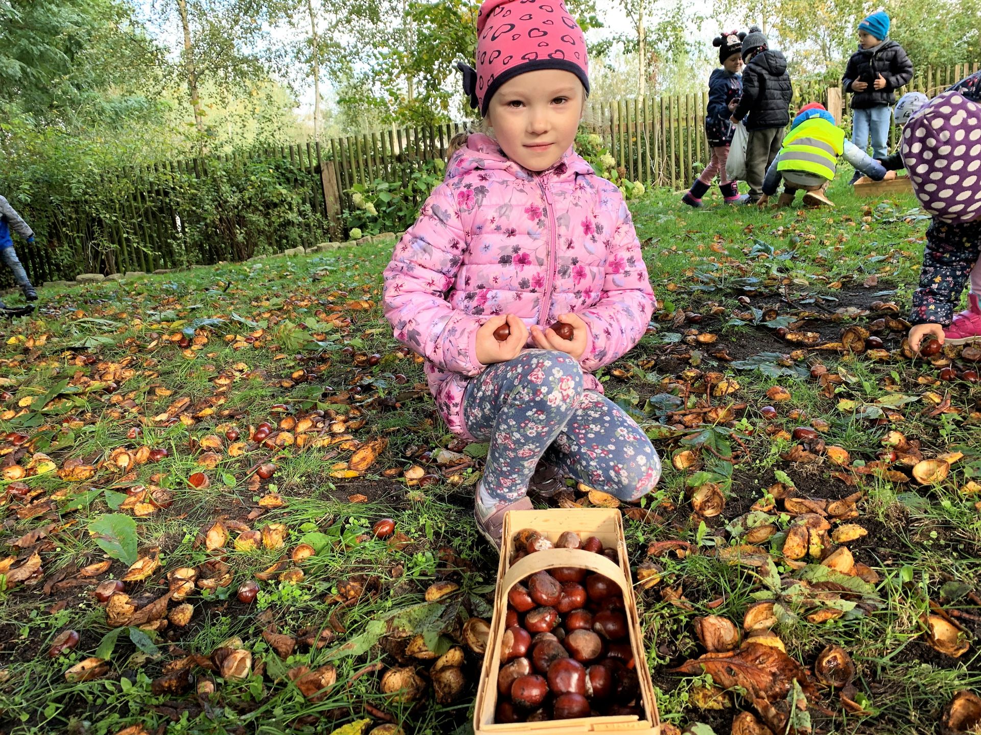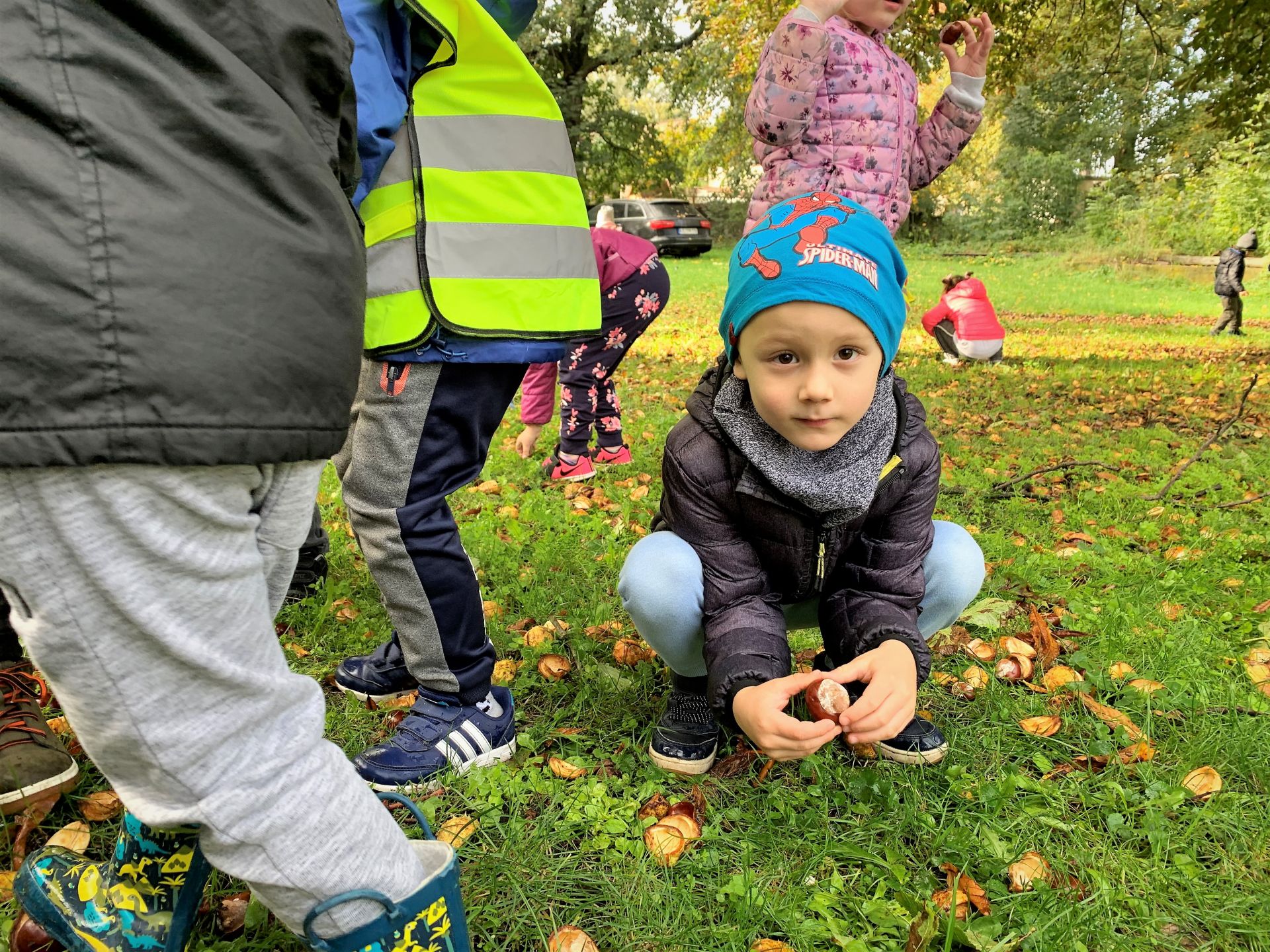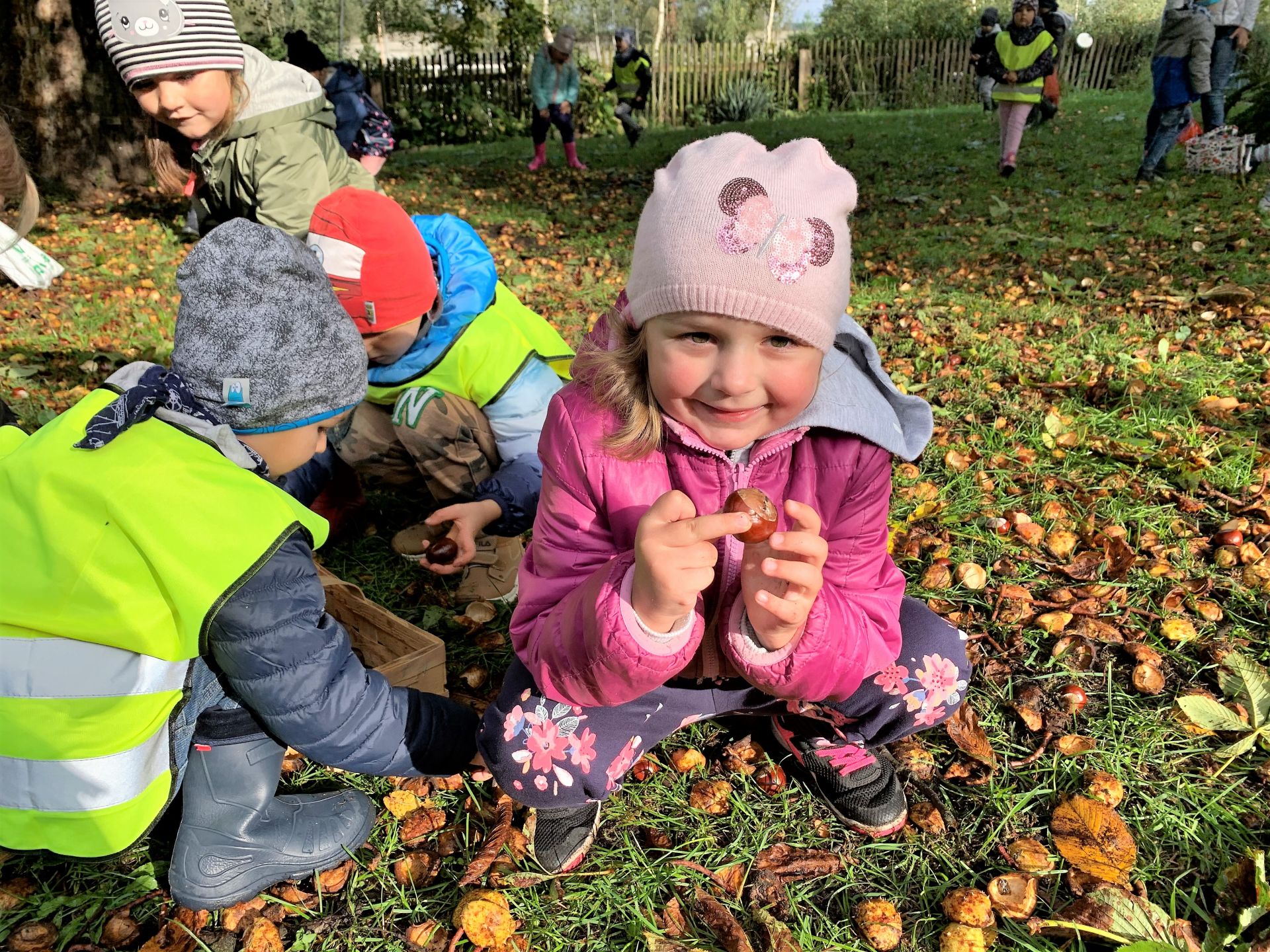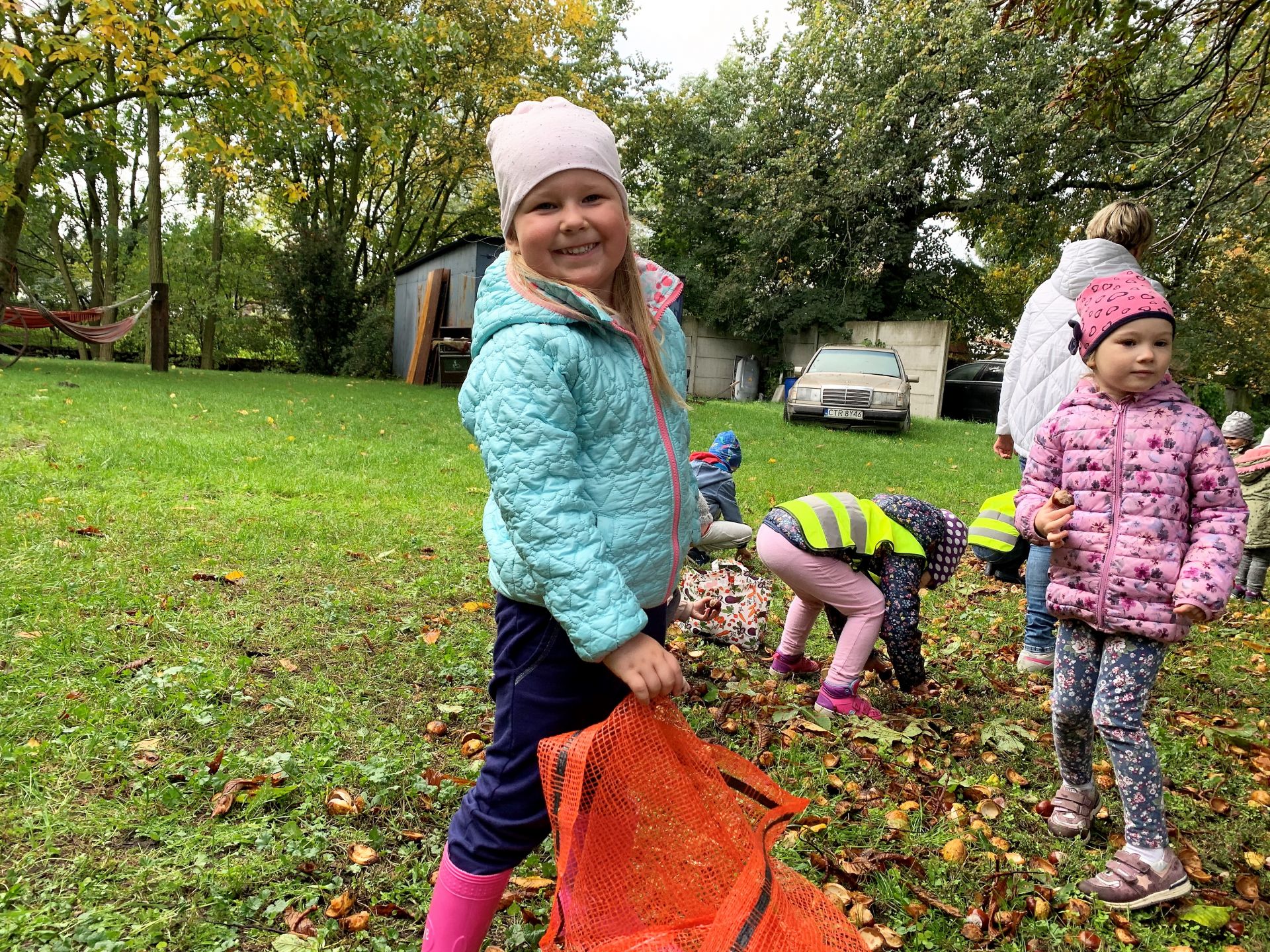 3 października 2019 r. wybraliśmy się na jesienne zbieranie kasztanów. Naszym ulubionym miejscem kasztanobrania jest ogród na terenie stadniny koni "Stajnia" w Małej Nieszawce. Tam, każdego roku zbieramy największe na świecie, błyszczące w słońcu kasztany. Nasza praca okazała się bardzo owocna. Razem z grupą Wiewiórki zebraliśmy 250 kg kasztanów gigantów!