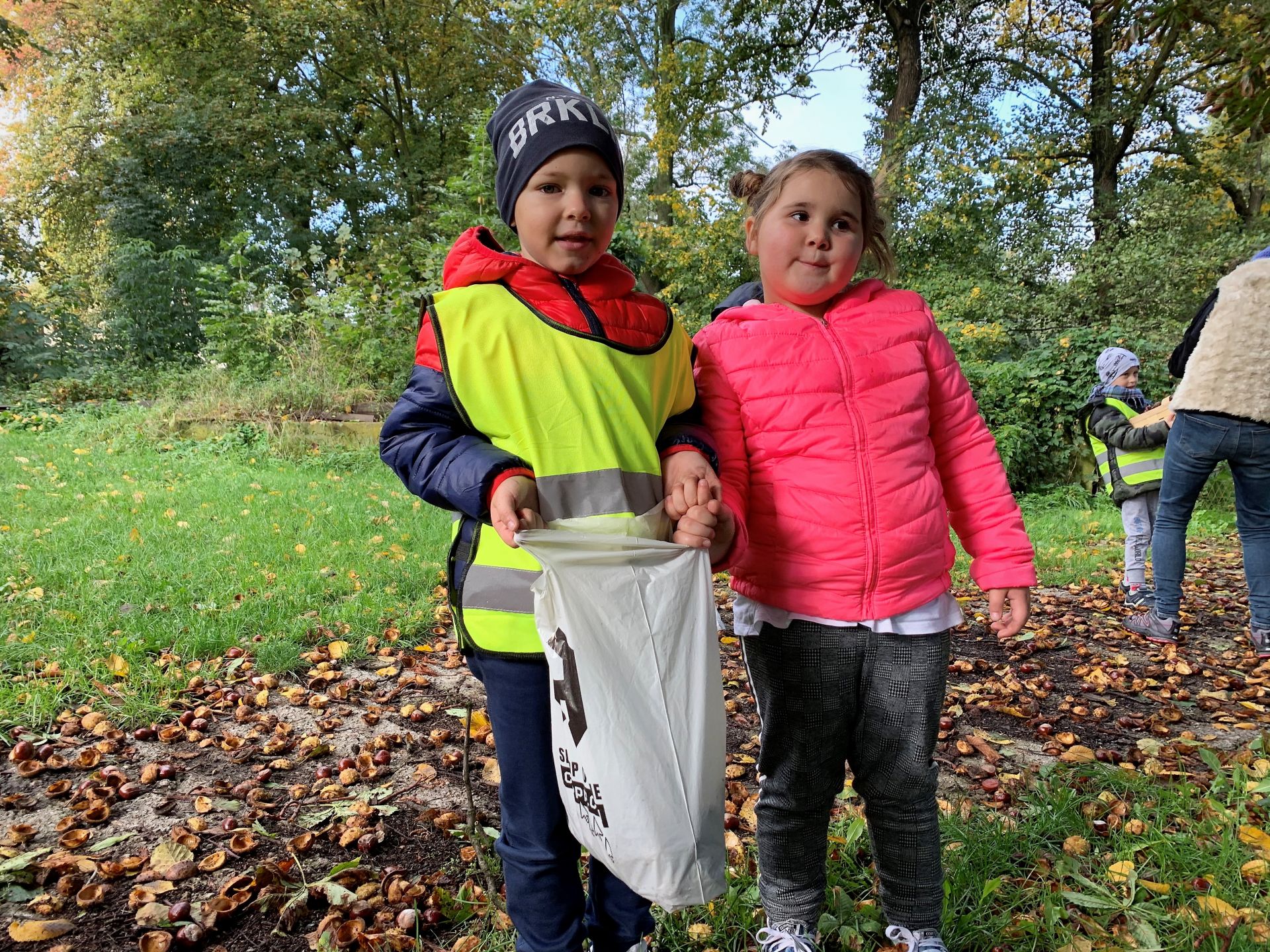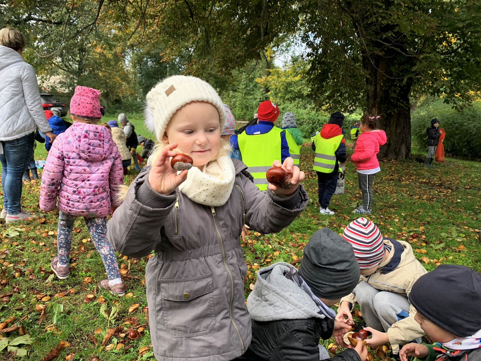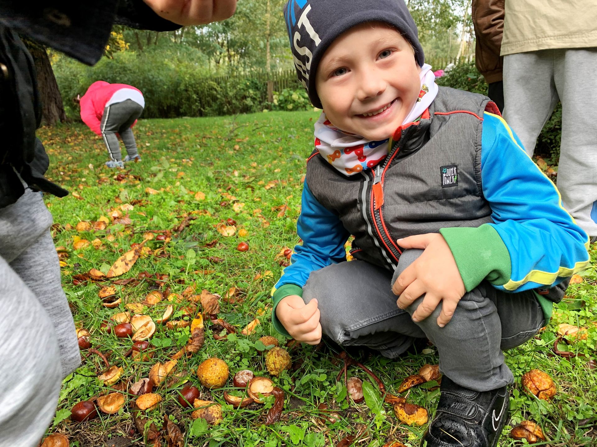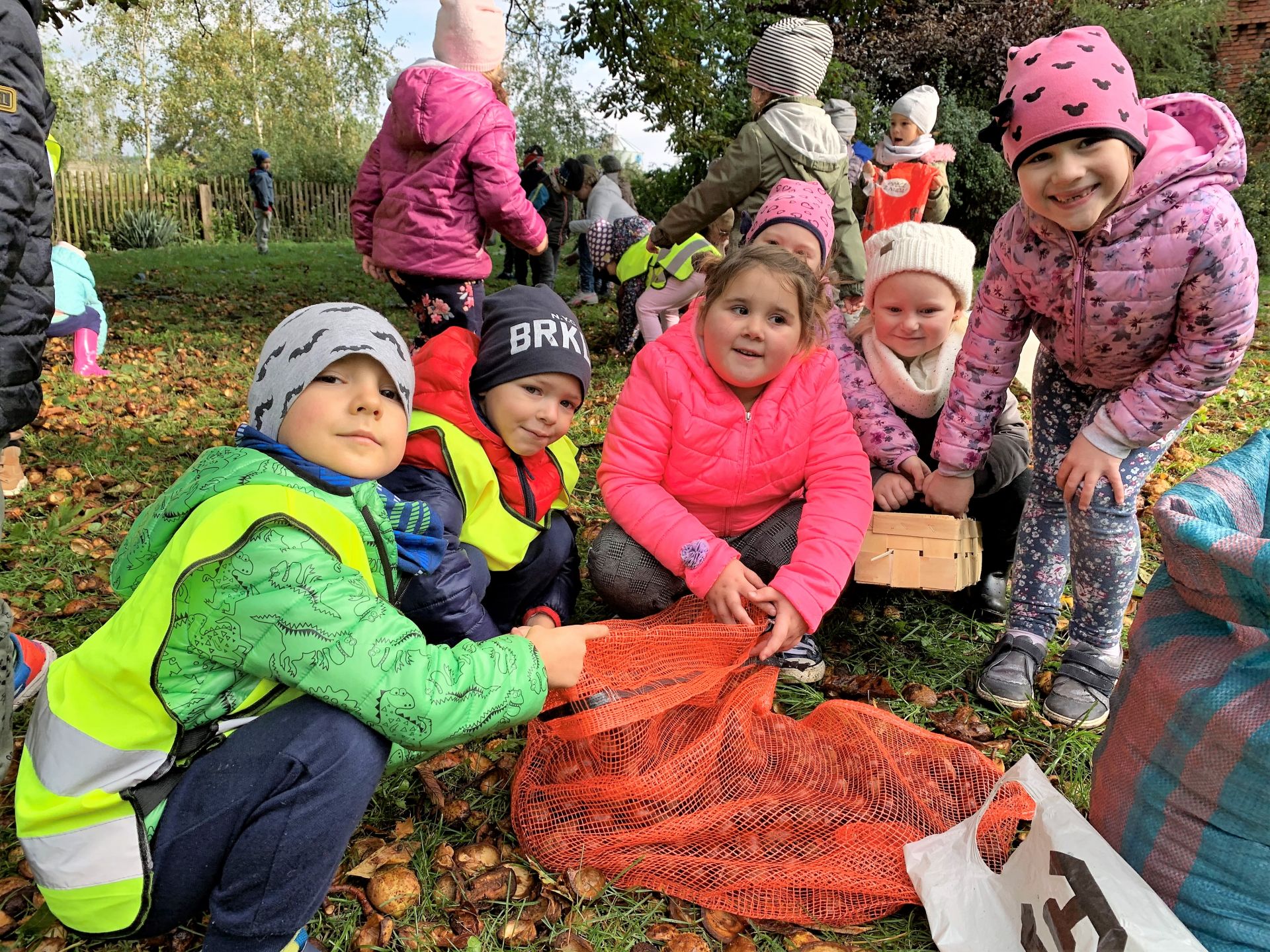 3 października 2019 r. wybraliśmy się na jesienne zbieranie kasztanów. Naszym ulubionym miejscem kasztanobrania jest ogród na terenie stadniny koni "Stajnia" w Małej Nieszawce. Tam, każdego roku zbieramy największe na świecie, błyszczące w słońcu kasztany. Nasza praca okazała się bardzo owocna. Razem z grupą Wiewiórki zebraliśmy 250 kg kasztanów gigantów!