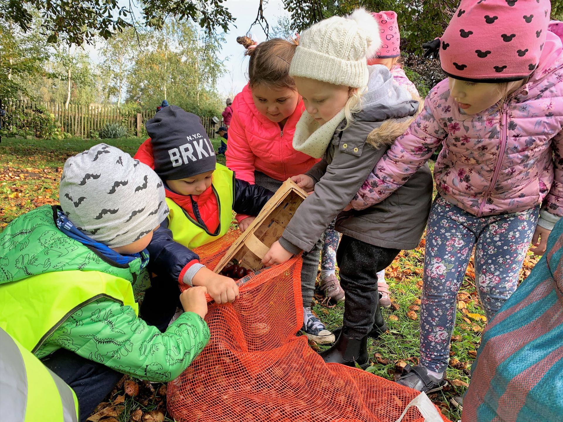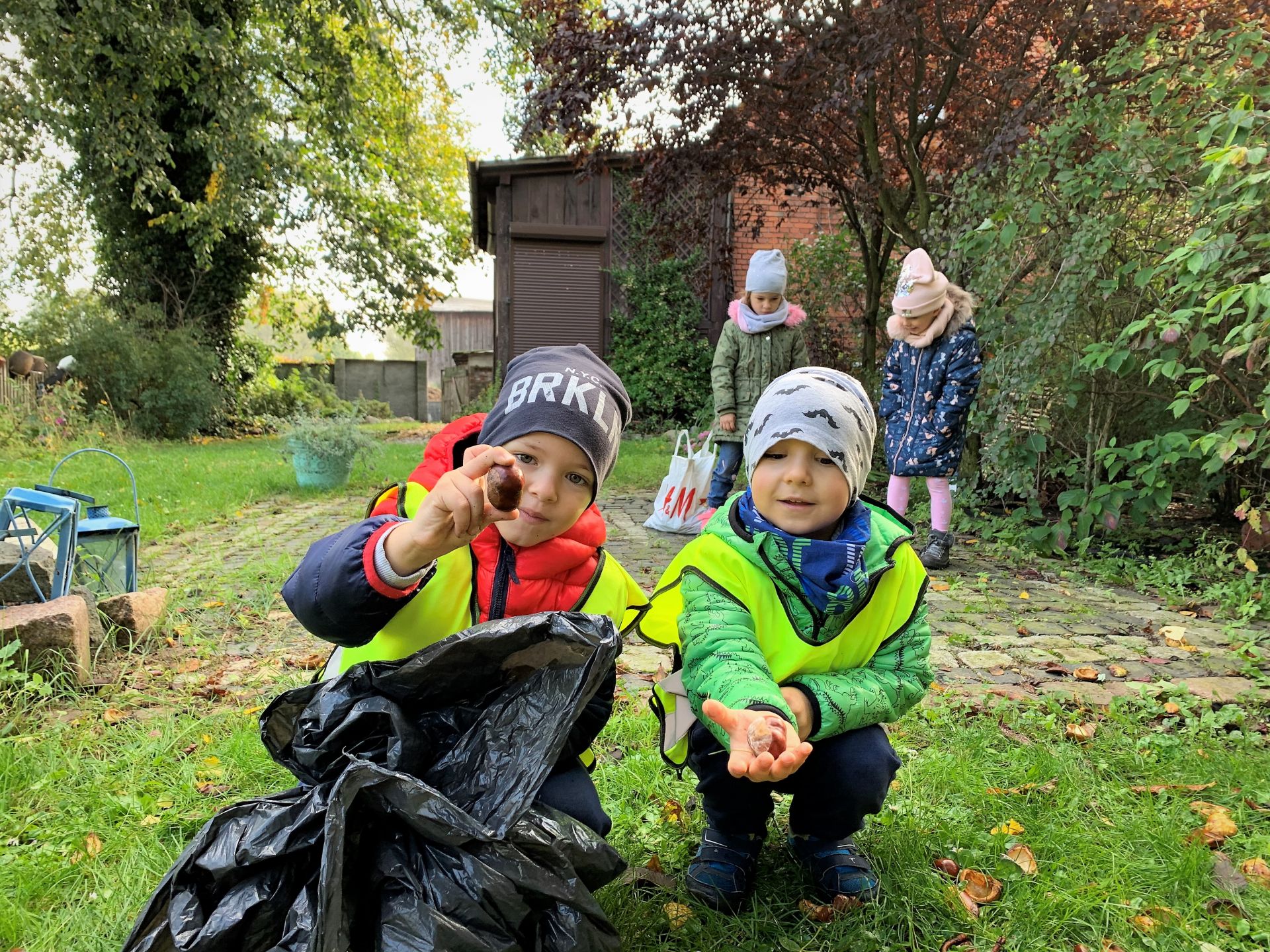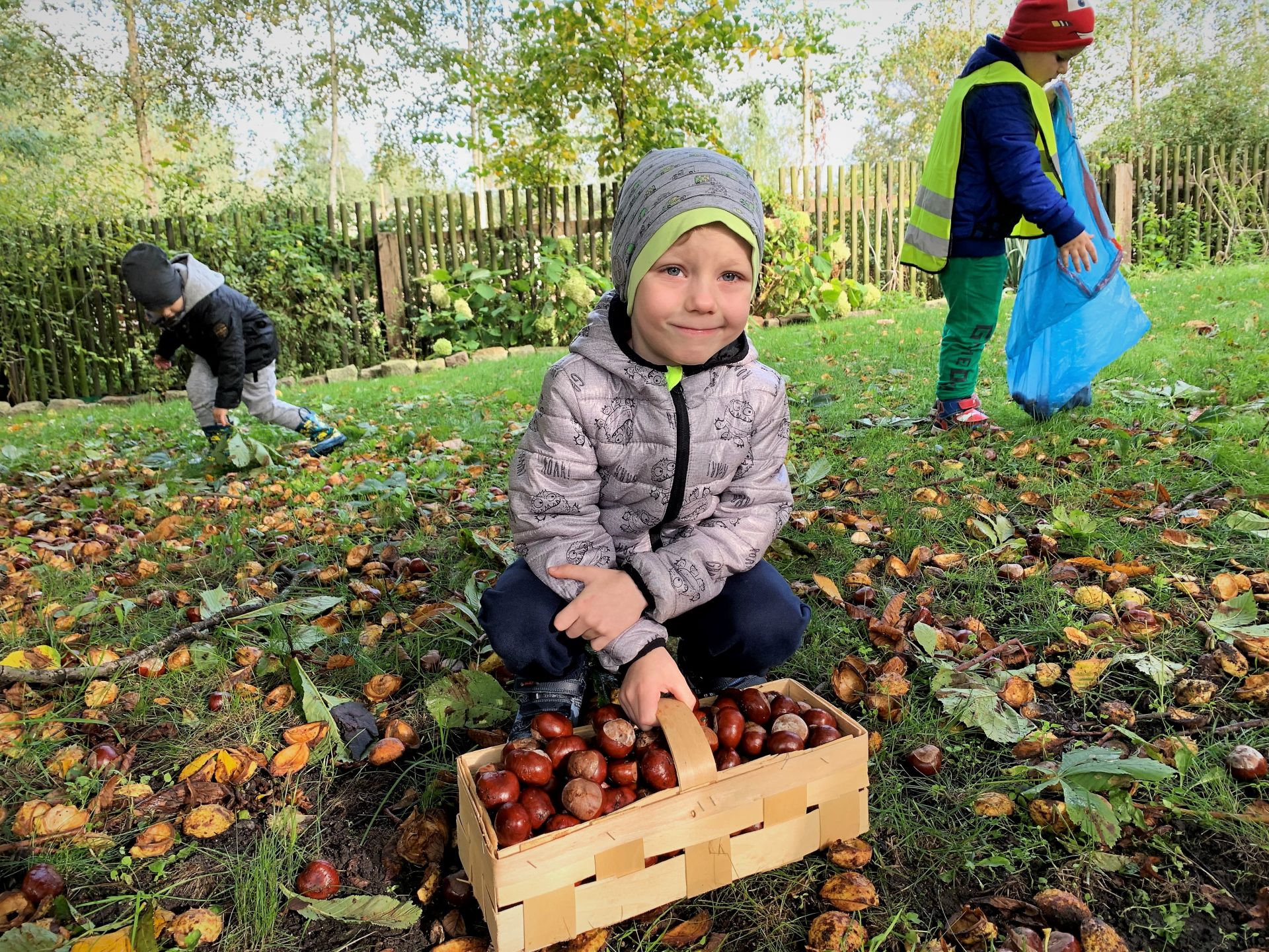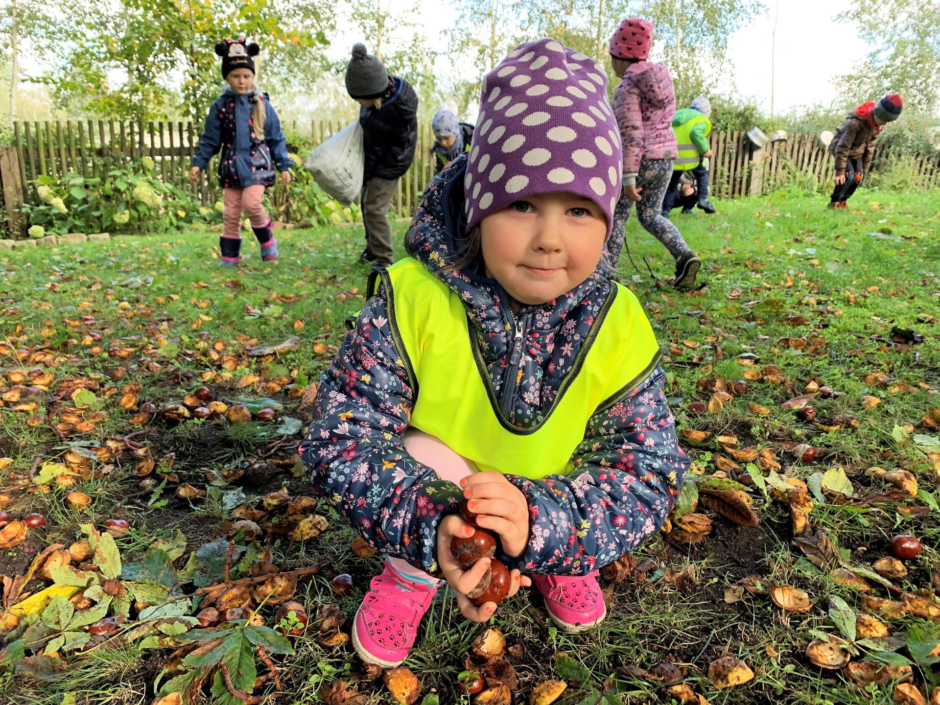 3 października 2019 r. wybraliśmy się na jesienne zbieranie kasztanów. Naszym ulubionym miejscem kasztanobrania jest ogród na terenie stadniny koni "Stajnia" w Małej Nieszawce. Tam, każdego roku zbieramy największe na świecie, błyszczące w słońcu kasztany. Nasza praca okazała się bardzo owocna. Razem z grupą Wiewiórki zebraliśmy 250 kg kasztanów gigantów!