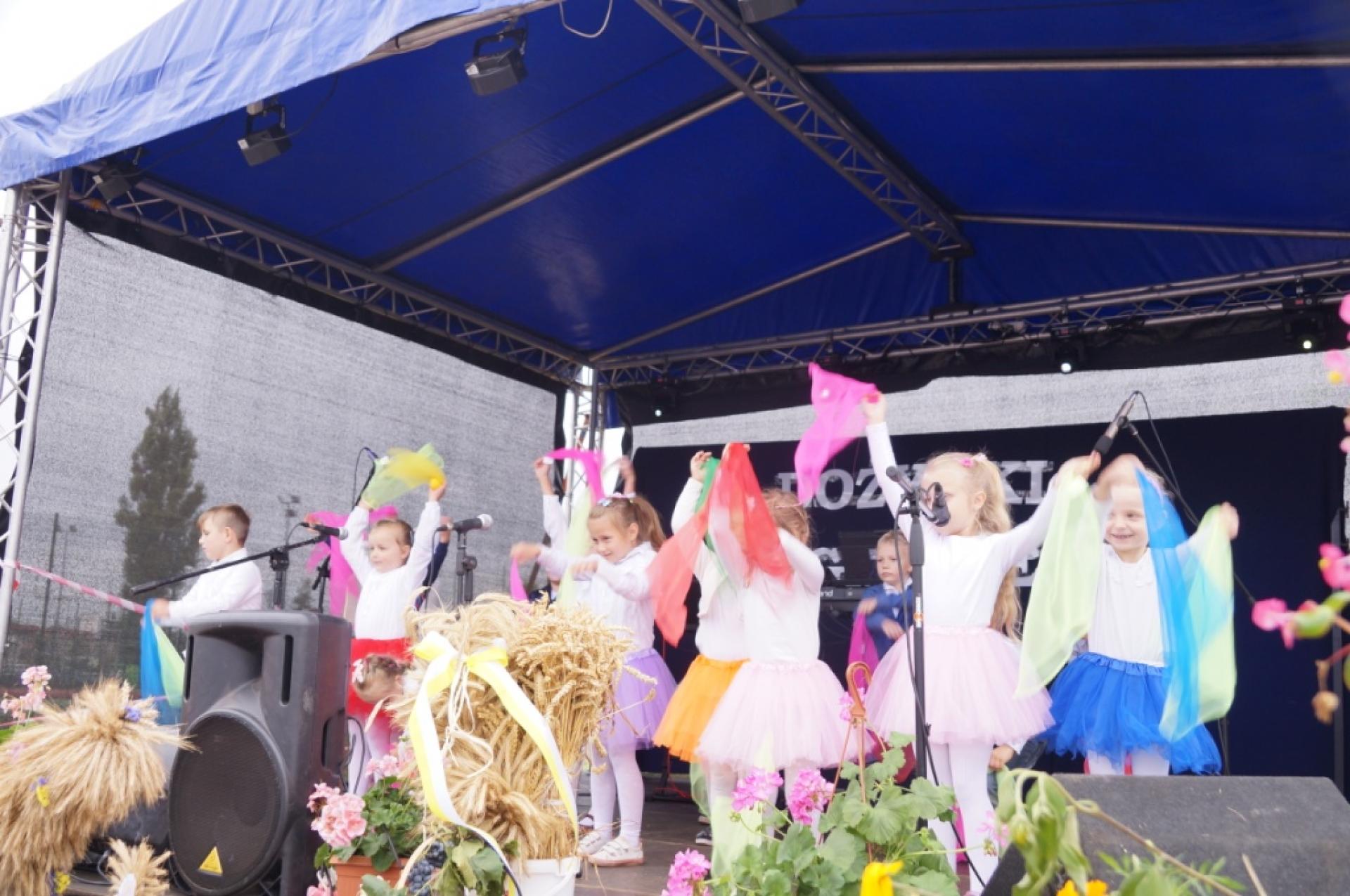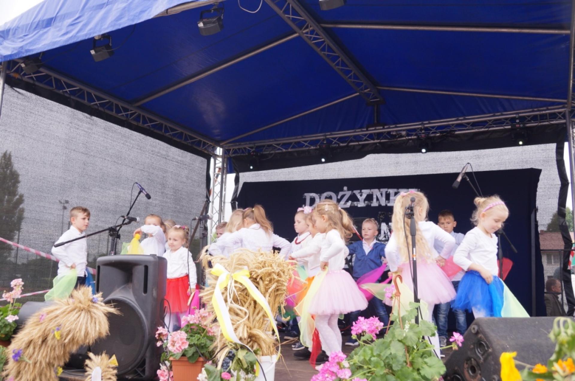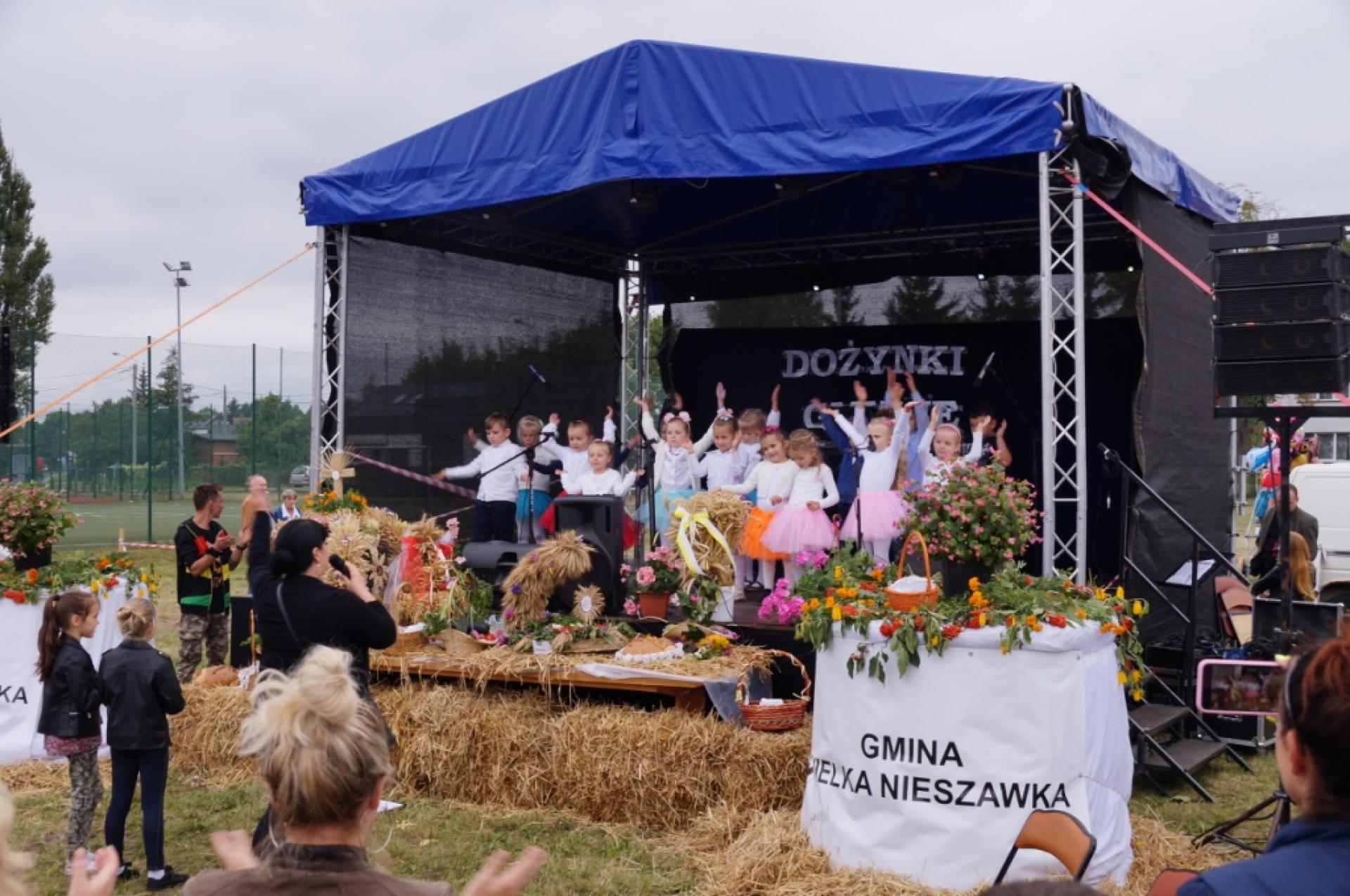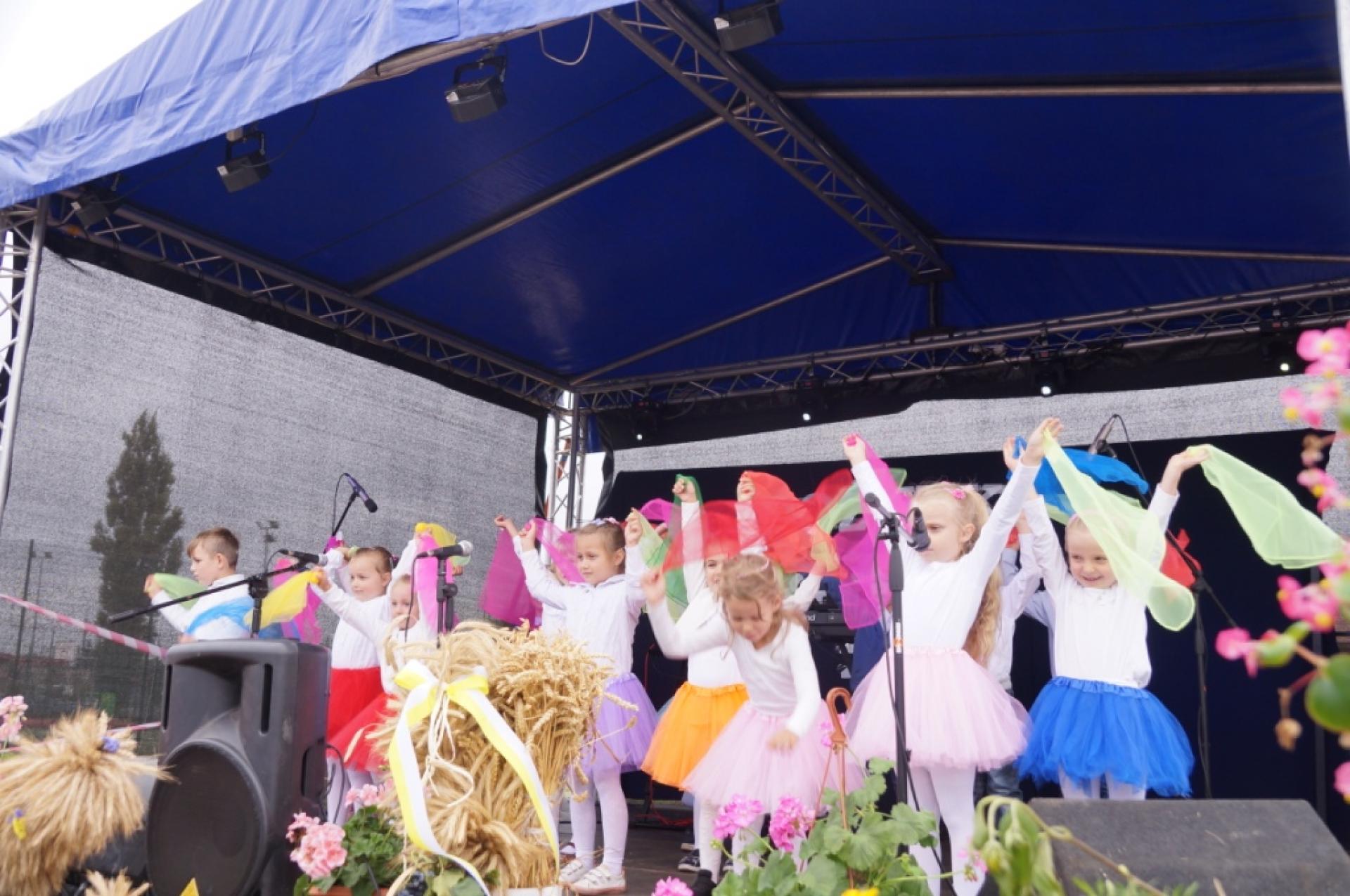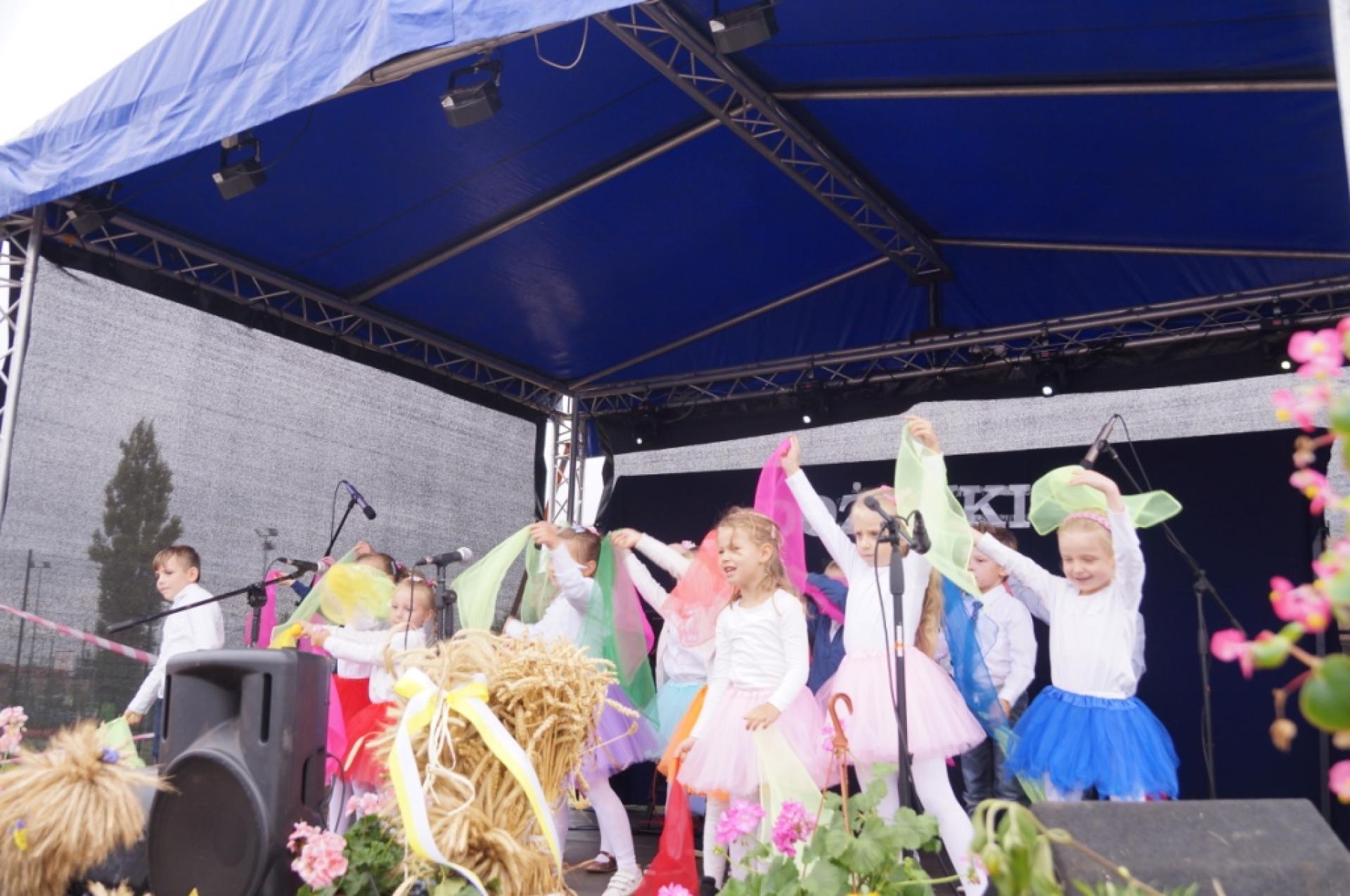 Dzisiaj dzieci z naszej grupy zaprezentowały 30 minutowy program artystyczny podczas Dożynek Gminnych w Małej Nieszawce. Przedszkolaki wystąpiły rewelacyjnie, zatańczyły, zaśpiewały i za swój występ otrzymały duże brawa. Wcześniej w korowodzie z transparentem uroczyście maszerowały ze sztandarem na plac. Dziękujemy wszystkim dzieciom i ich rodzicom za godne reprezentowanie naszego przedszkola.